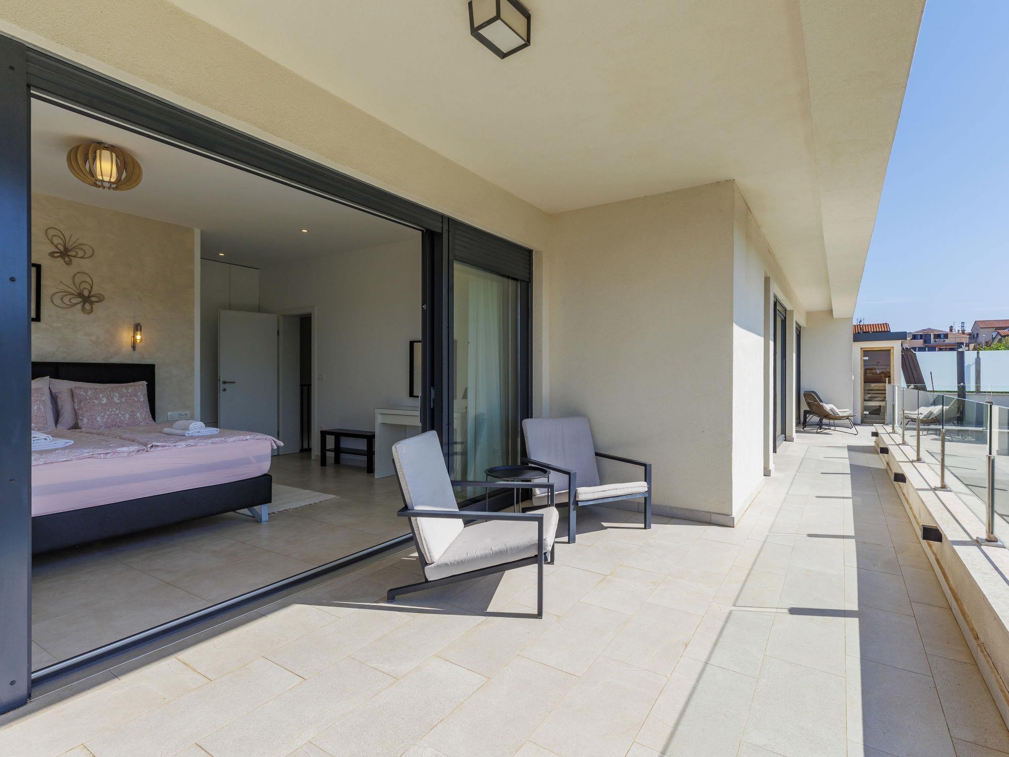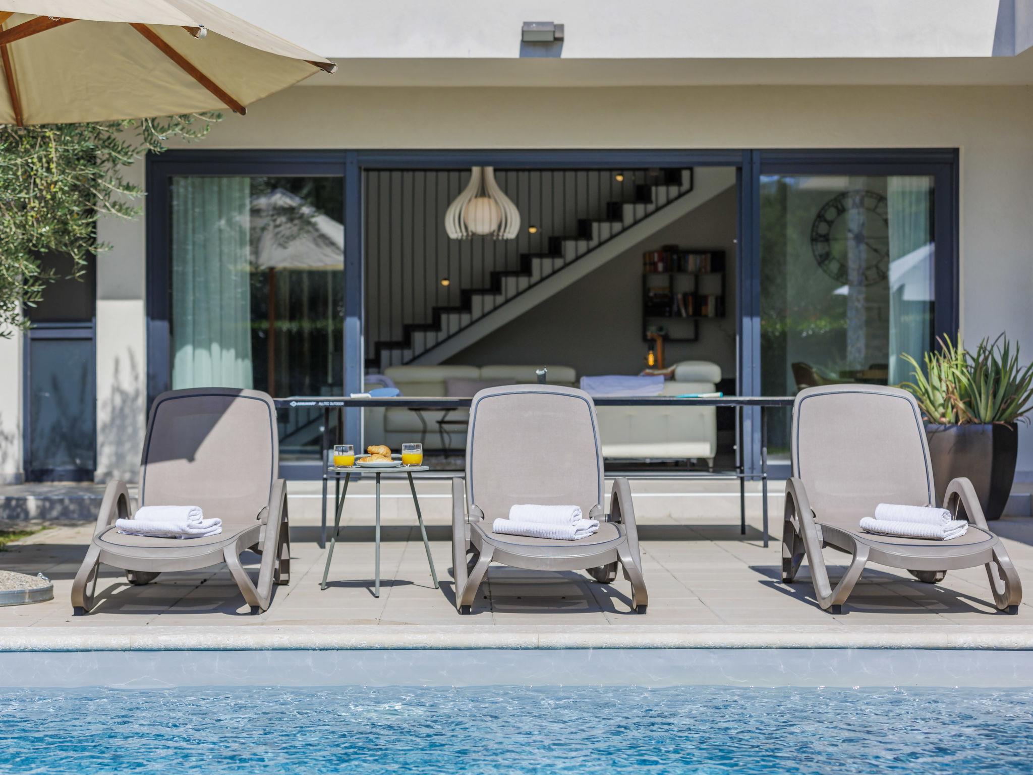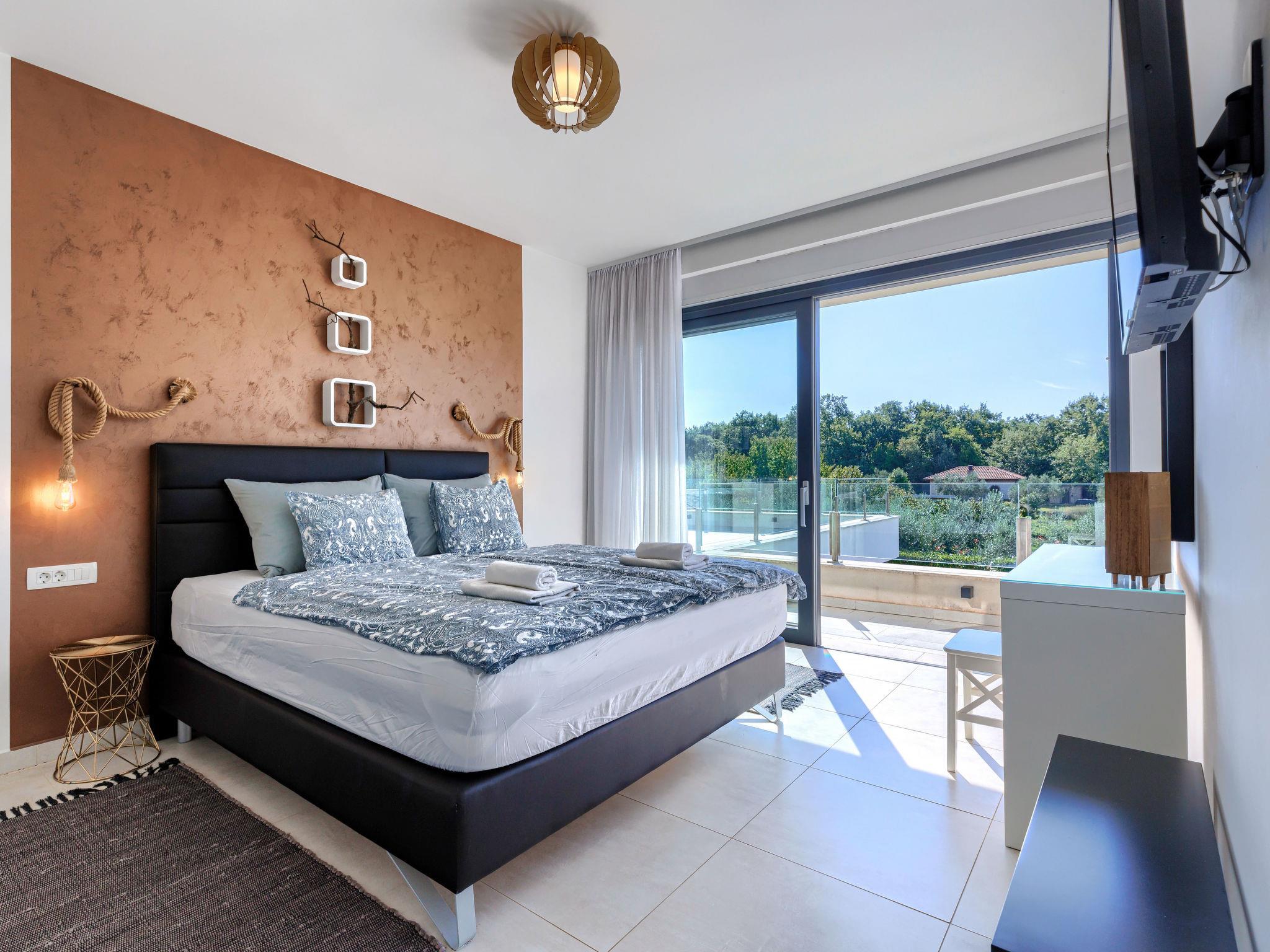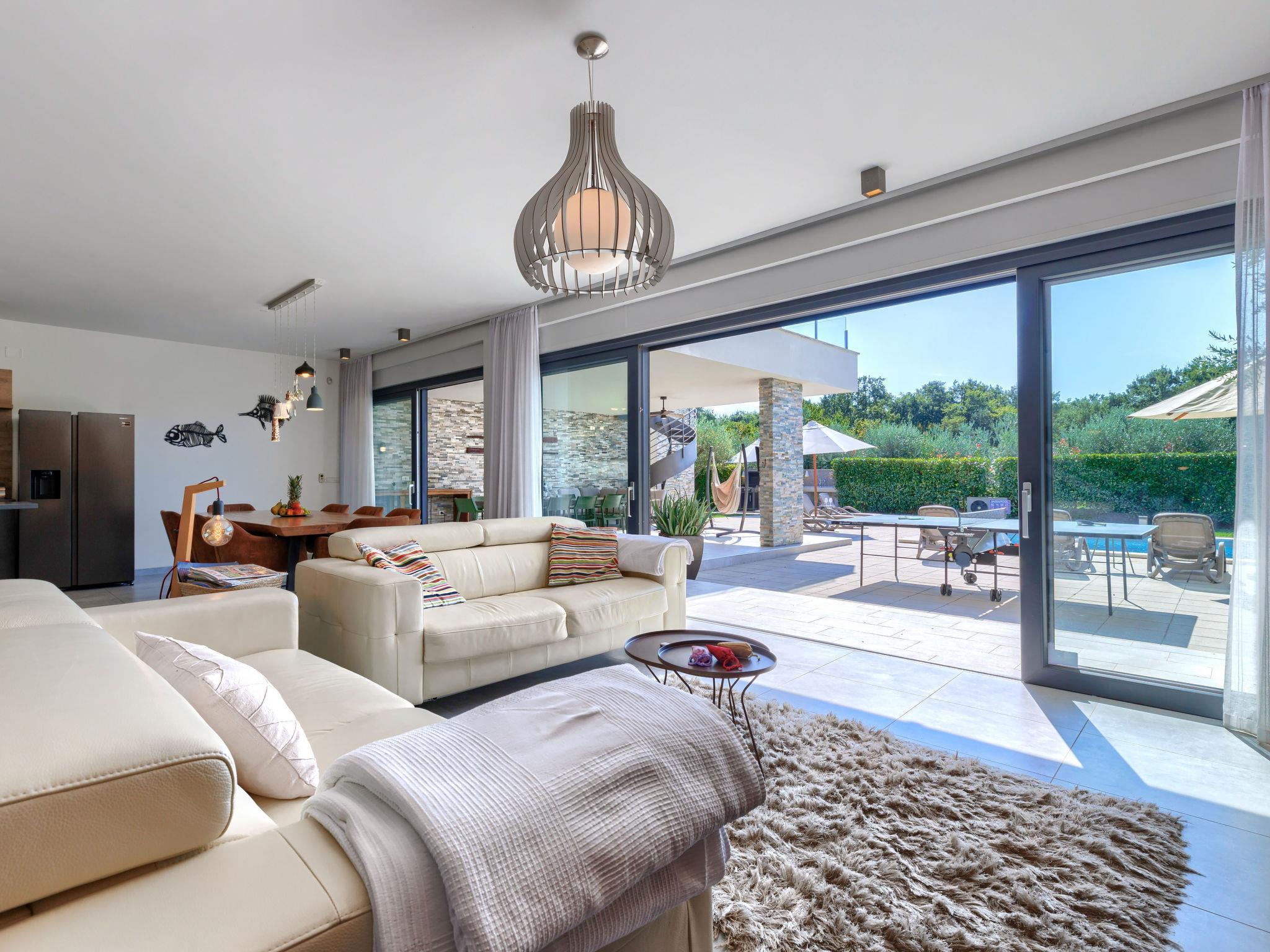 Luxuriöse Villa "Bianca", auf 2 Stockwerken. Im Ortsteil Sveti Servul, 2 km vom Zentrum von Novigrad, ruhige, sonnige Lage, 3 km vom Meer, 3 km vom Strand. Zur Alleinbenutzung: Grundstück 1'000 m2 mit Pflanzen und Bäumen, Schwimmbad eckig, beheizt (10 x 4 m, 140 cm tief, saisonale Verfügbarkeit: 01.Apr. - 30.Okt.) mit Innentreppe und Salzelektrolyse-Reinigungssystem. Aussendusche, Sprudelbad, Terrasse (50 m2), Gartenmöbel, Grill. Im Hause: Internetzugang, Sauna, Tischtennis, Waschmaschine, Wäschetrockner. Zur Verfügung: Fahrräder (3). Parkplatz (für 3 Autos) beim Haus auf dem Grundstück. E-Ladestation. Einkaufsgeschäft 1.5 km, Supermarkt 1.5 km, Restaurant 500 m, Bushaltestelle 2 km, Kieselstrand 3 km, Felsstrand 3 km. Golfplatz (18 Loch) 25 km, Tennis 2 km, Wanderwege ab Haus 500 m, Radweg 550 m. Nahe gelegene Sehenswürdigkeiten: Aquapark 5 km. Bitte beachten: Flugplatz 60 km vom Haus. Schwimmbad beheizt (extra). Es ist notwendig 7 Tage im Voraus bekannt zu geben, ob die Schwimmbadheizung eingeschaltet werden soll.