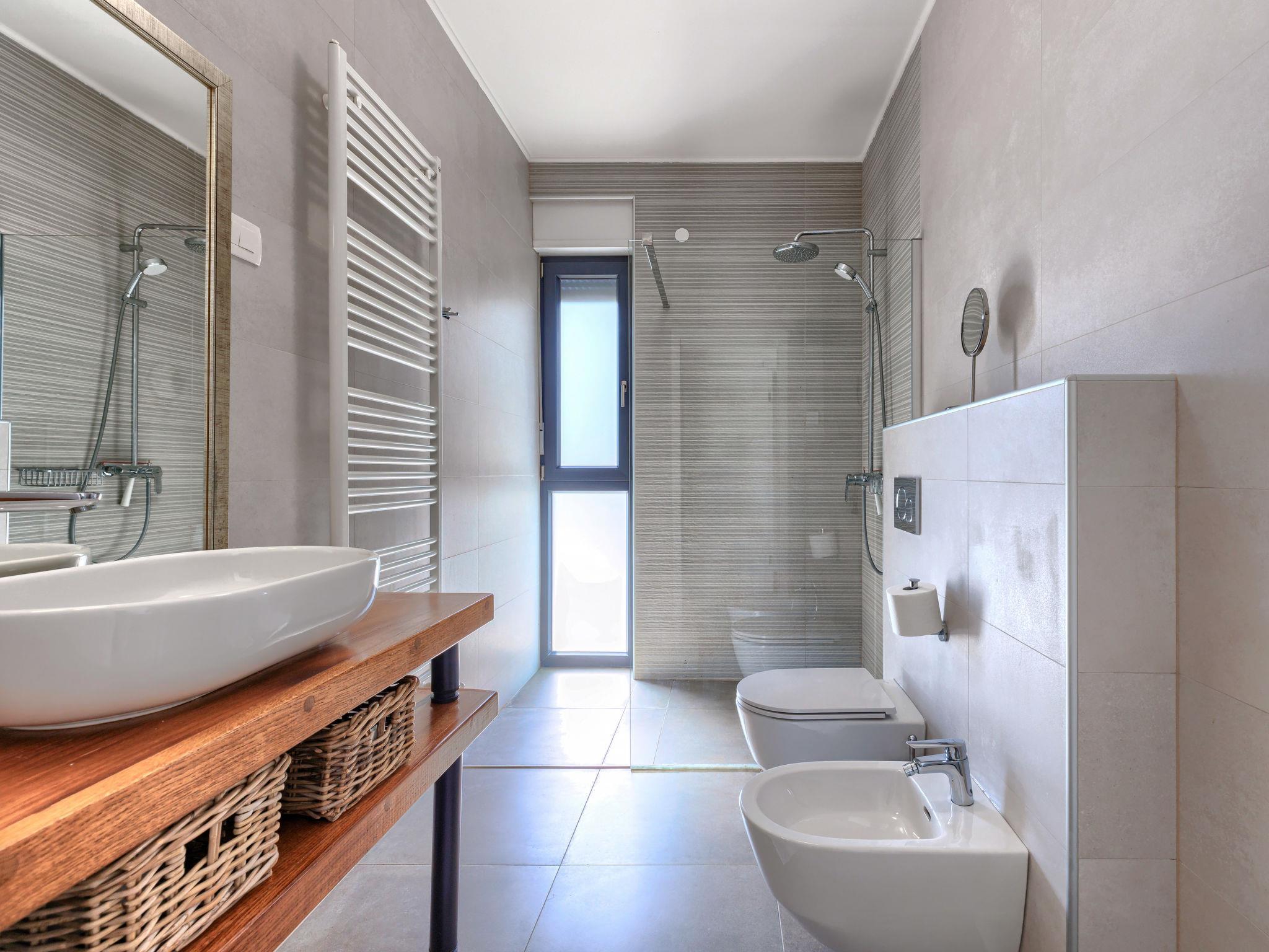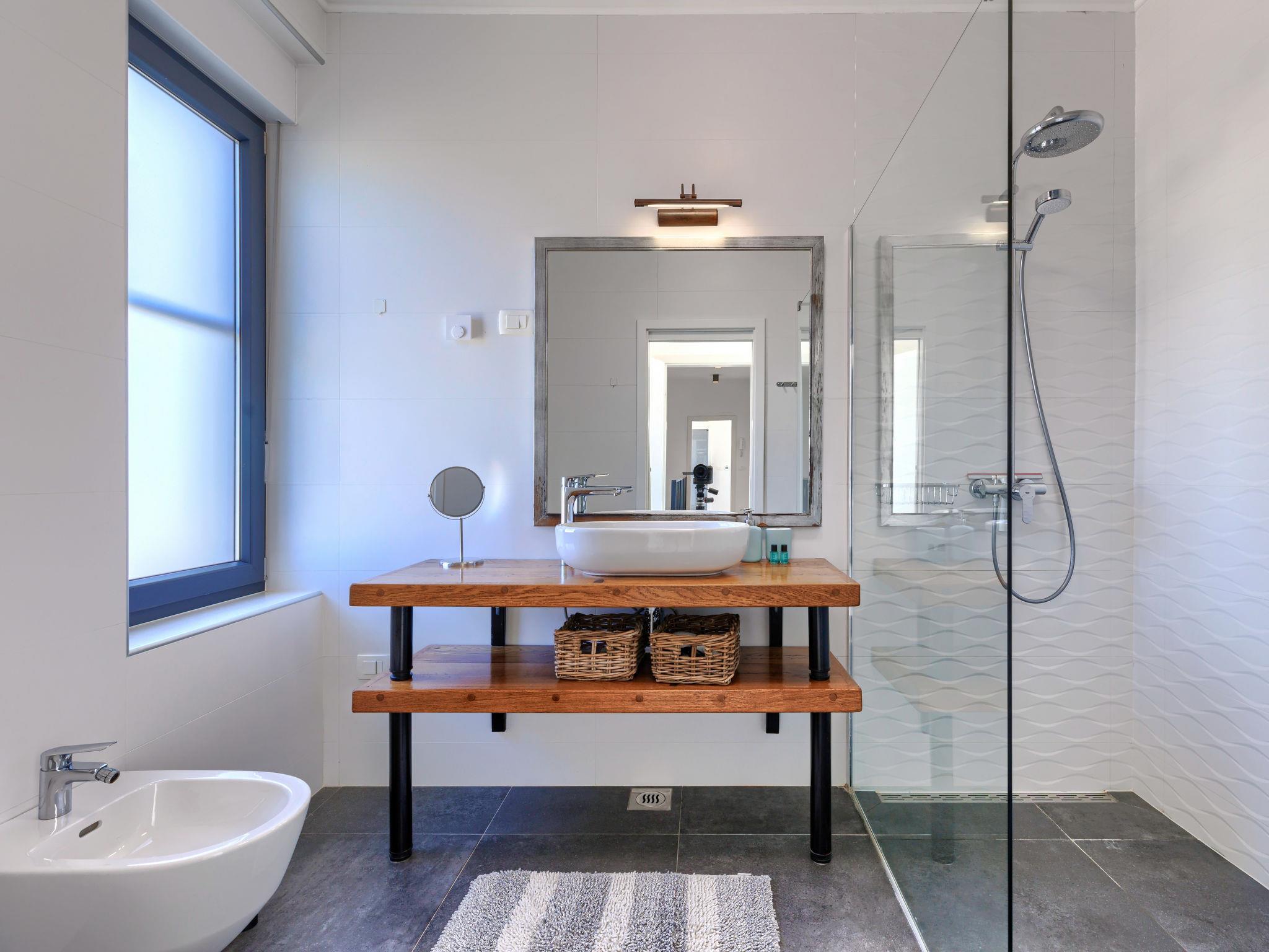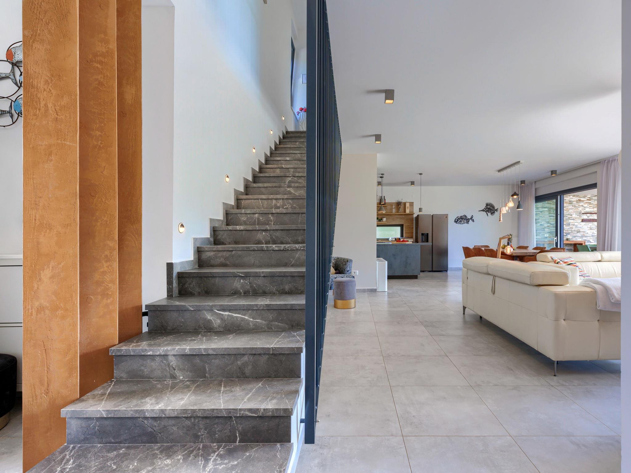 5-Zimmer-Villa 250 m2 auf 2 Stockwerken. Modern und stilvoll eingerichtet: Wohn-/Esszimmer mit Sat-TV und Klimaanlage. Ausgang zum Schwimmbad. 1 Zimmer mit 1 franz. Bett (180 cm, Länge 200 cm), Dusche/Bidet/WC, Sat-TV und Klimaanlage. Ausgang zum Schwimmbad. Offene Küche (4 Kochplatten, Backofen, Geschirrspüler, Toaster, Wasserkocher, Mikrowelle, Tiefkühler, elektrische Kaffeemaschine). Sep. WC. Obergeschoss: 3 Zimmer, jedes Zimmer mit 1 franz. Bett (180 cm, Länge 200 cm), Dusche/Bidet/WC, Sat-TV und Klimaanlage. Ausgang zur Terrasse. Bodenheizung. Terrassenmöbel, Liegestühle. Fernsicht auf das Meer. Zur Verfügung: Safe, Bügeleisen, Babybett, Haartrockner. Internet (WLAN, gratis). Maximal 1 kleines Haustier/Hund erlaubt.