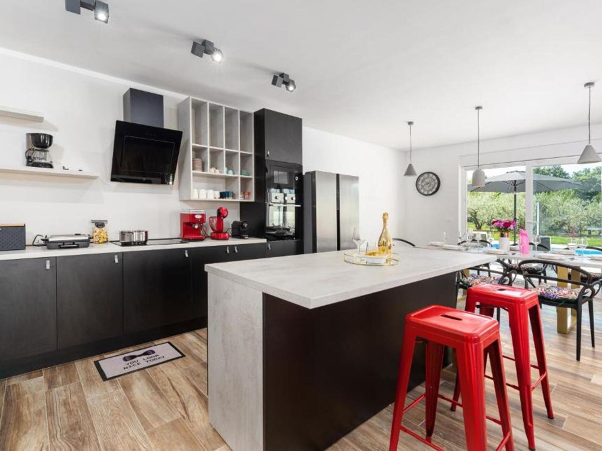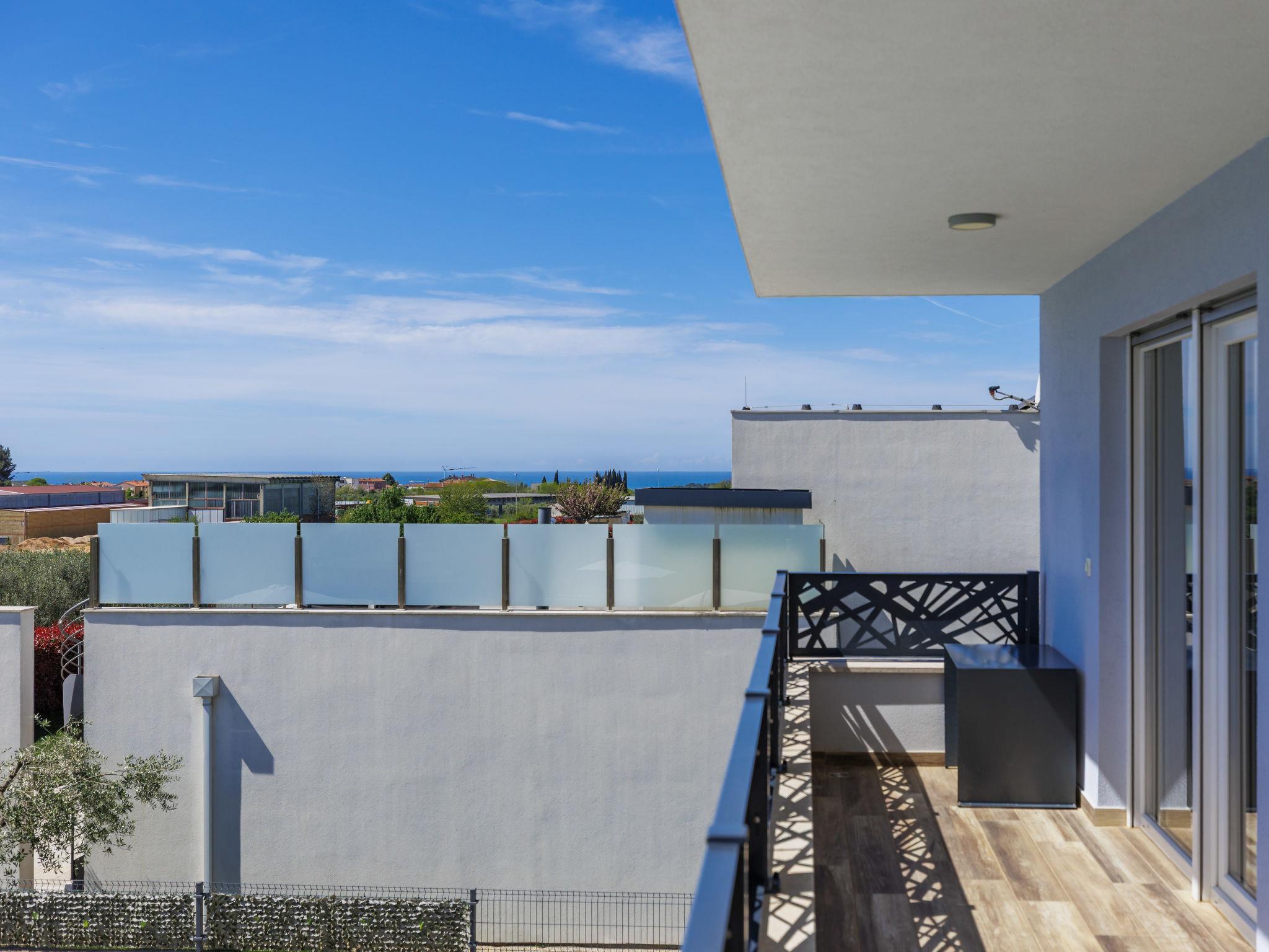 5-Zimmer-Villa 150 m2 auf 2 Stockwerken. Modern und geschmackvoll eingerichtet: Wohn-/Esszimmer mit Sat-TV und Klimaanlage. Ausgang zum Schwimmbad. 1 Zimmer mit 2 Betten (90 cm, Länge 200 cm), Sat-TV und Klimaanlage. Offene Küche (Backofen, Geschirrspüler, 4 Induktionskochplatten, Toaster, Wasserkocher, Mikrowelle, Tiefkühler). Dusche/WC. Obergeschoss: 1 Zimmer mit 1 franz. Bett (180 cm, Länge 200 cm), Sat-TV und Klimaanlage. Ausgang zur Terrasse. 1 Zimmer mit 2 Betten (90 cm, Länge 200 cm), Sat-TV und Klimaanlage. Ausgang zur Terrasse. 1 Zimmer mit 1 franz. Bett (180 cm, Länge 200 cm), Dusche/WC, Sat-TV und Klimaanlage. Ausgang zur Terrasse. Bad/Dusche/WC, Doppelwaschbecken. Warmluftheizung. Terrasse 10 m2, Terrasse 2 m2. Liegestühle. Fernsicht auf das Meer. Zur Verfügung: Bügeleisen, Kinderhochstuhl, Babybett, Haartrockner. Internet (Wireless LAN, gratis). 2 kleine Haustiere/Hunde erlaubt.