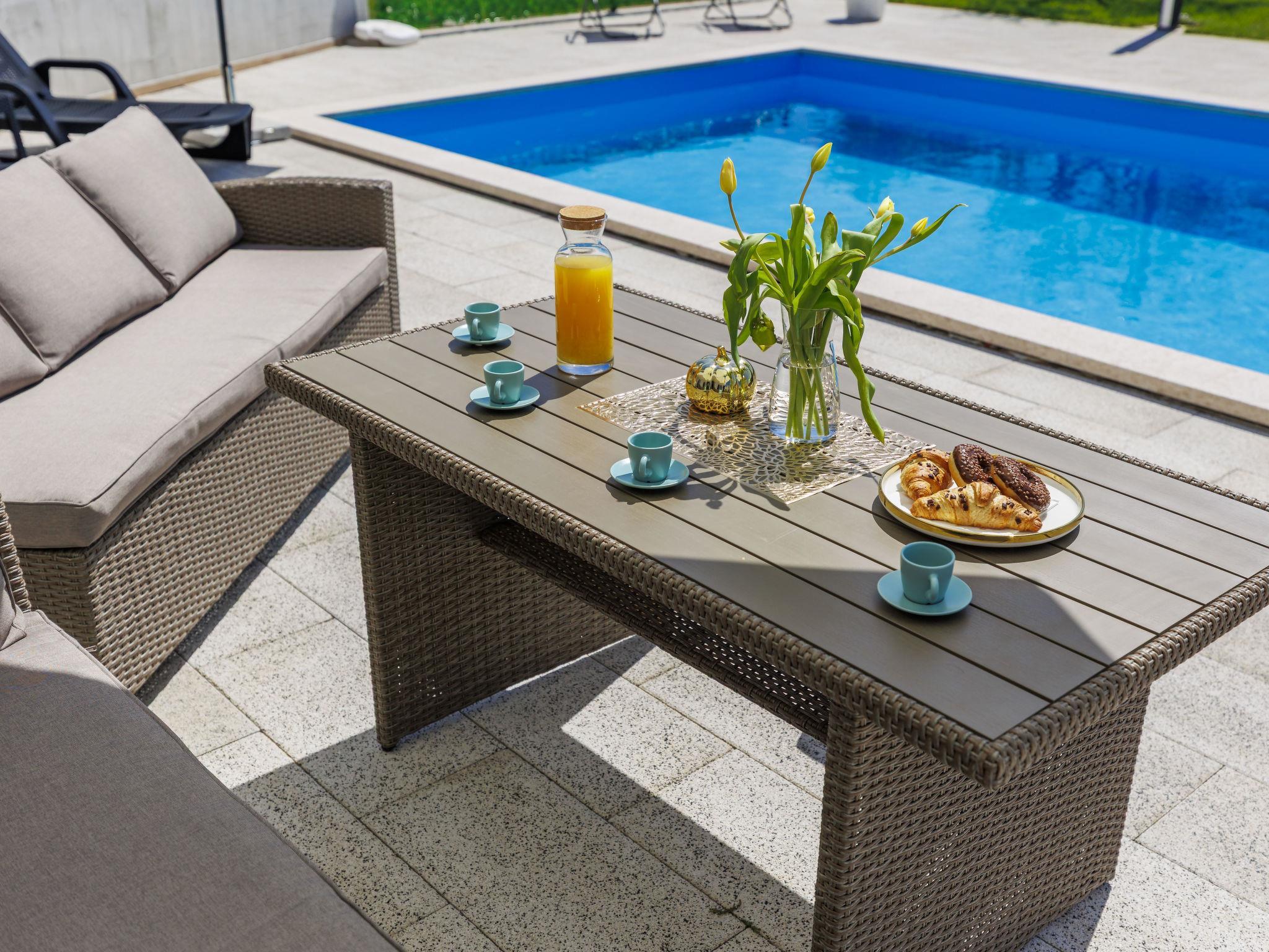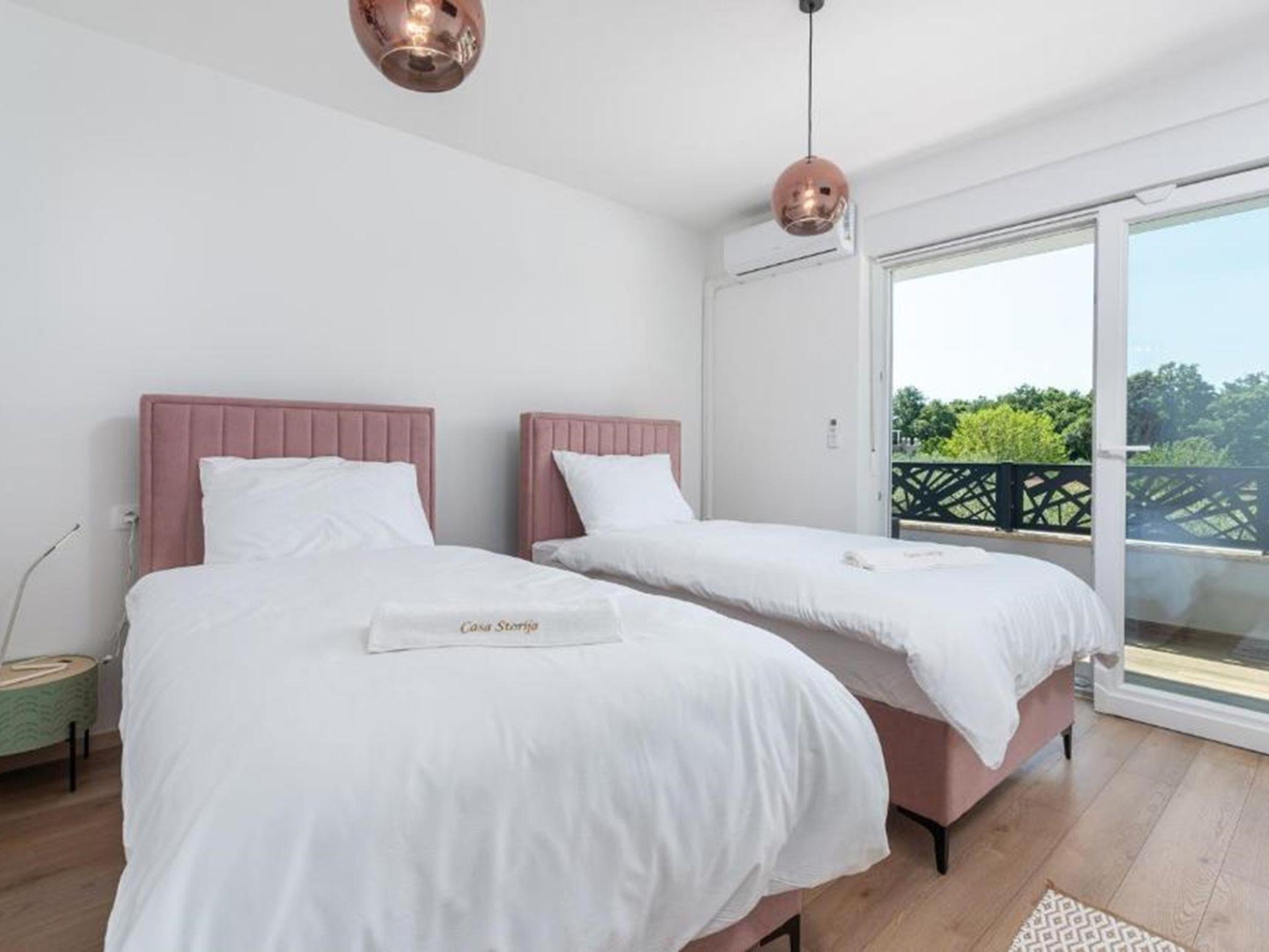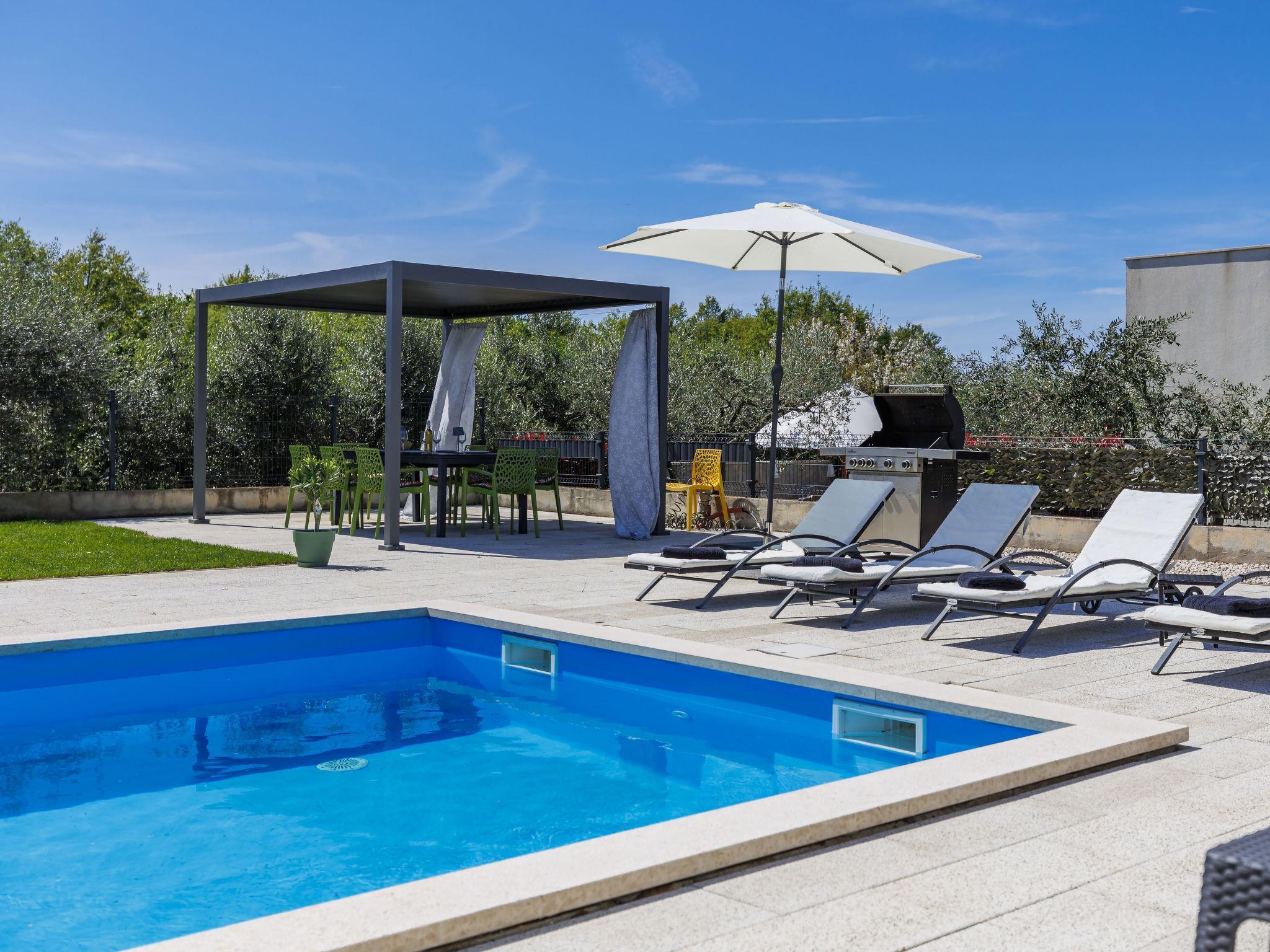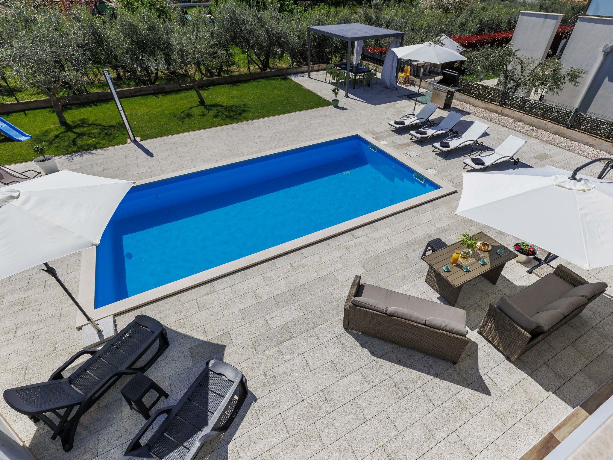 Schönes Doppelhaus "Storija", auf 2 Stockwerken. Im Ortsteil Sveti Servul, 2 km vom Zentrum von Novigrad, ruhige, sonnige Lage, 3 km vom Meer, 3 km vom Strand. Zur Alleinbenutzung: Grundstück 500 m2 (eingezäunt) mit Rasen, Schwimmbad eckig (8 x 6 m, 150 cm tief, saisonale Verfügbarkeit: 01.Apr. - 01.Nov.) mit Innentreppe. Aussendusche, Terrasse, Gartenmöbel, Grill. Im Hause: Internetzugang, Waschmaschine. Parkplatz (für 2 Autos) beim Haus. Einkaufsgeschäft 1.5 km, Supermarkt 1.5 km, Restaurant 500 m, Bushaltestelle 2 km, Kieselstrand 3 km, Felsstrand 3 km. Golfplatz (18 Loch) 25 km, Tennis 2 km, Wanderwege ab Haus 500 m, Radweg 550 m. Nahe gelegene Sehenswürdigkeiten: Aquapark 5 km. Bitte beachten: Flugplatz 60 km vom Haus.