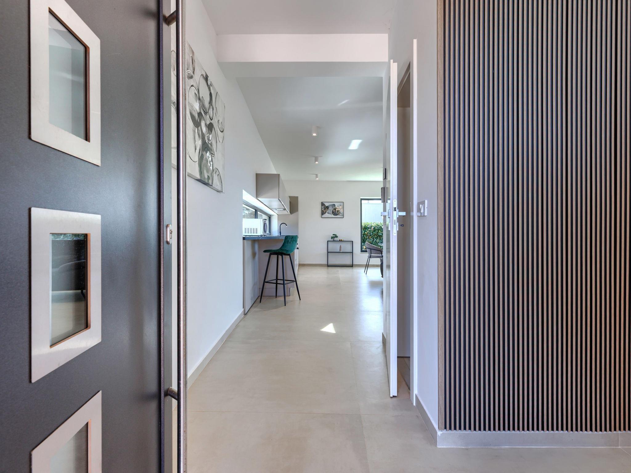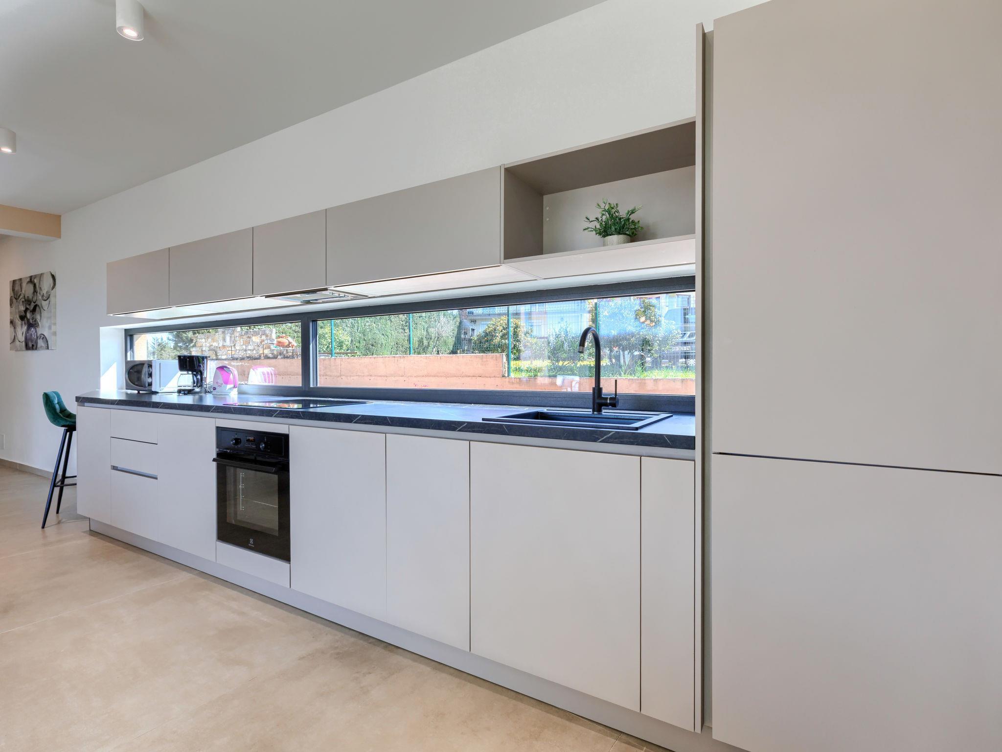 4-Zimmer-Villa 150 m2 auf 3 Stockwerken. Sehr komfortabel und modern eingerichtet: Wohn-/Esszimmer mit Klimaanlage. Ausgang zum Schwimmbad. Offene Küche (4 Kochplatten, Backofen, Geschirrspüler, Toaster, Mikrowelle, Tiefkühler, elektrische Kaffeemaschine). Dusche/WC. Unteres Geschoss: 1 Zimmer mit 1 franz. Bett (180 cm, Länge 200 cm), Dusche/WC, Doppelwaschbecken, Sat-TV und Klimaanlage. Ausgang zum Schwimmbad. Obergeschoss: 1 Zimmer mit 1 franz. Bett (160 cm, Länge 200 cm), Sat-TV und Klimaanlage. 1 Zimmer mit 1 Doppelbett (2 x 90 cm, Länge 200 cm), Sat-TV und Klimaanlage. Dusche/WC. Heizung. Terrasse 30 m2, überdacht. Terrassenmöbel, Liegestühle. Fernsicht auf das Meer. Zur Verfügung: Waschmaschine, Safe, Haartrockner. Internet (WLAN). Bitte beachten: Nichtraucher-Haus. Maximal 1 Haustier/Hund erlaubt.