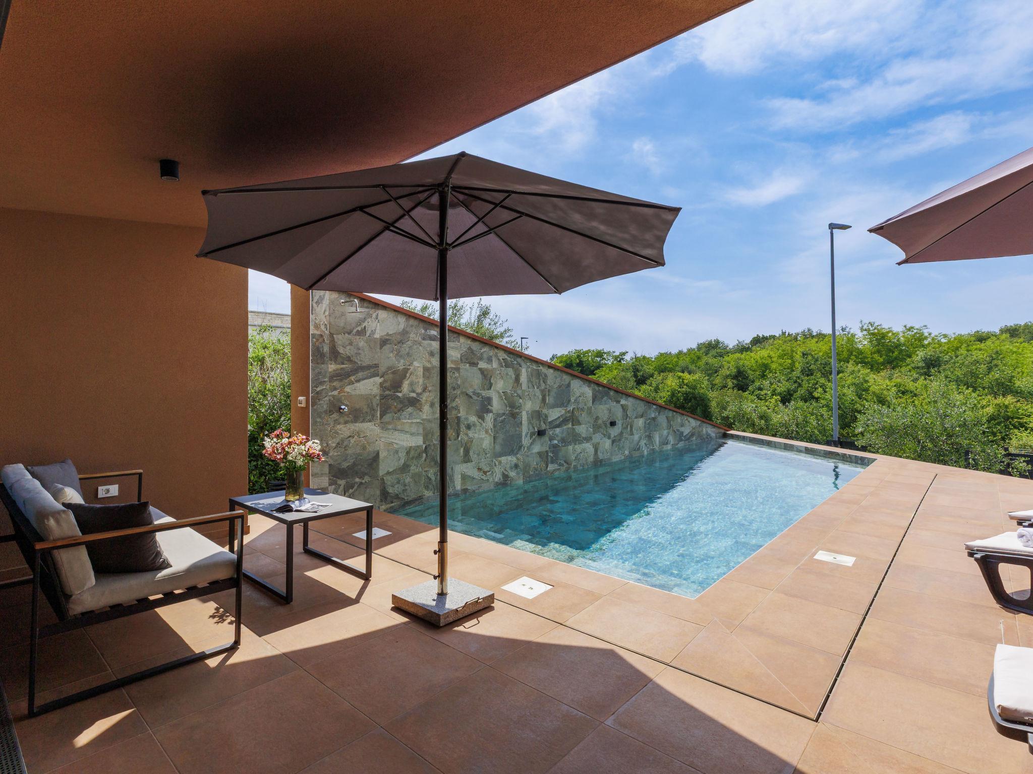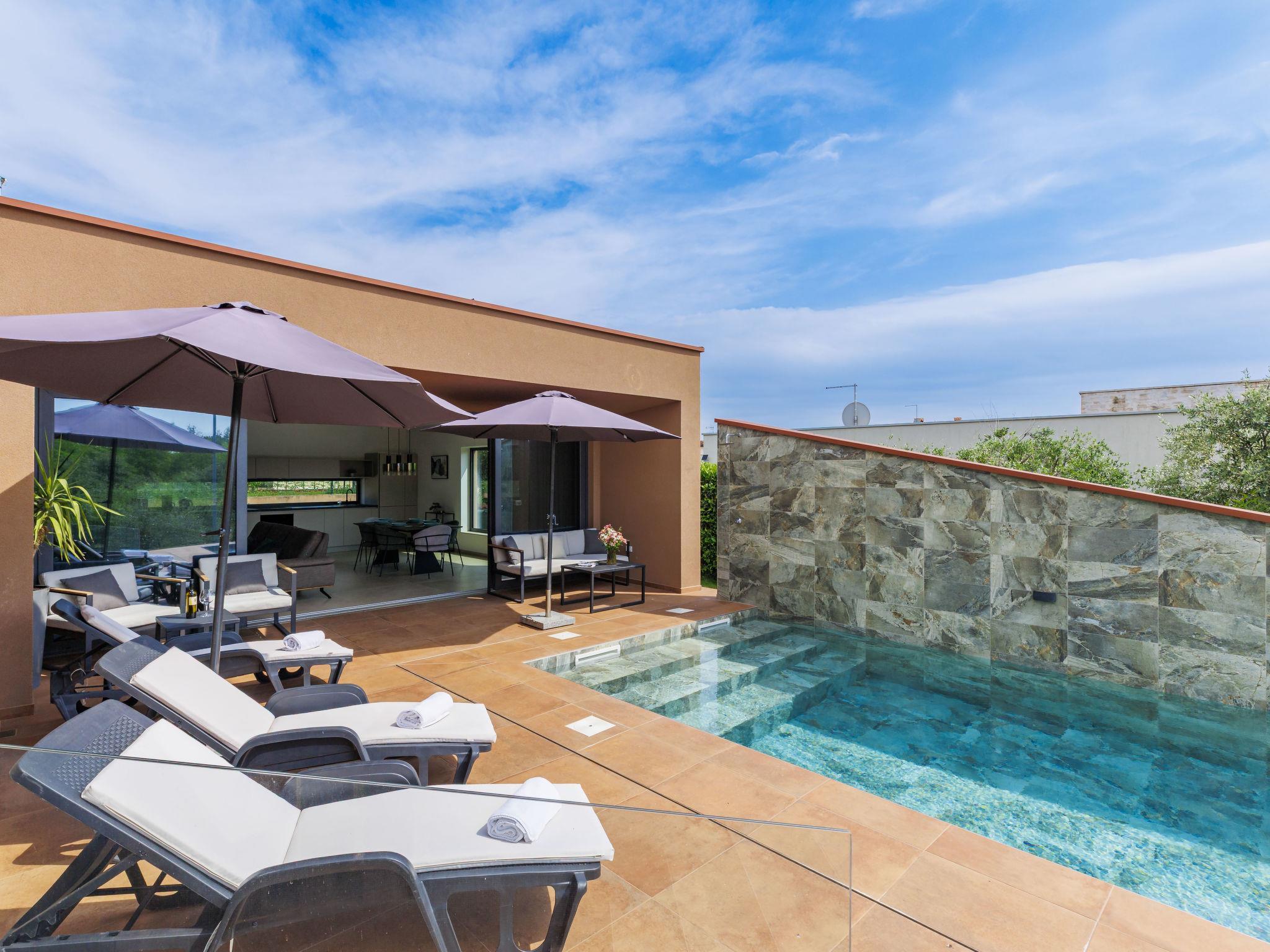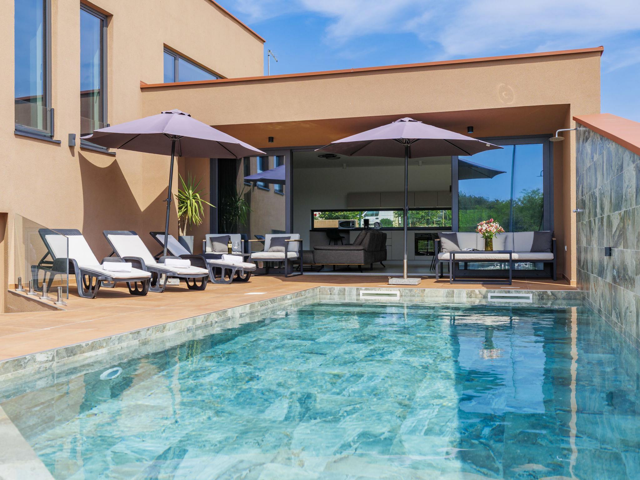 Stancijeta 3 km von Novigrad: Sehr moderne, komfortable Villa "Villa Ana", auf 3 Stockwerken. Stancijeta, 18 km vom Zentrum von Porec, 15 km vom Zentrum von Umag, sonnige Lage, 3 km vom Meer, 3 km vom Strand. Zur Alleinbenutzung: Grundstück 900 m2, Garten mit Rasen, Schwimmbad (32 m2, 150 cm tief, saisonale Verfügbarkeit: 01.Mai. - 01.Okt.) mit Innentreppe. Aussendusche, Grill. Im Hause: Internetzugang. Parkplatz (für 3 Autos) beim Haus. Einkaufsgeschäft 3 km, Restaurant 300 m, Bushaltestelle 3 km, Bahnstation 35 km, Kieselstrand 3 km. Golfplatz (18 Loch) 25 km, Wanderwege ab Haus, Radweg 100 m. Nahe gelegene Sehenswürdigkeiten: Aquapark 4 km. Der Besitzer akzeptiert keine Gruppen.