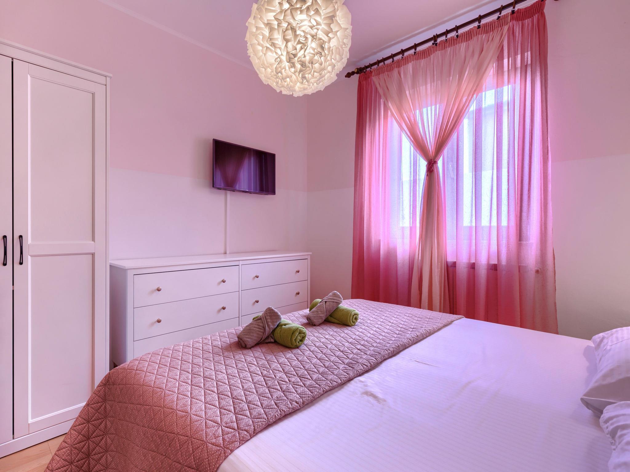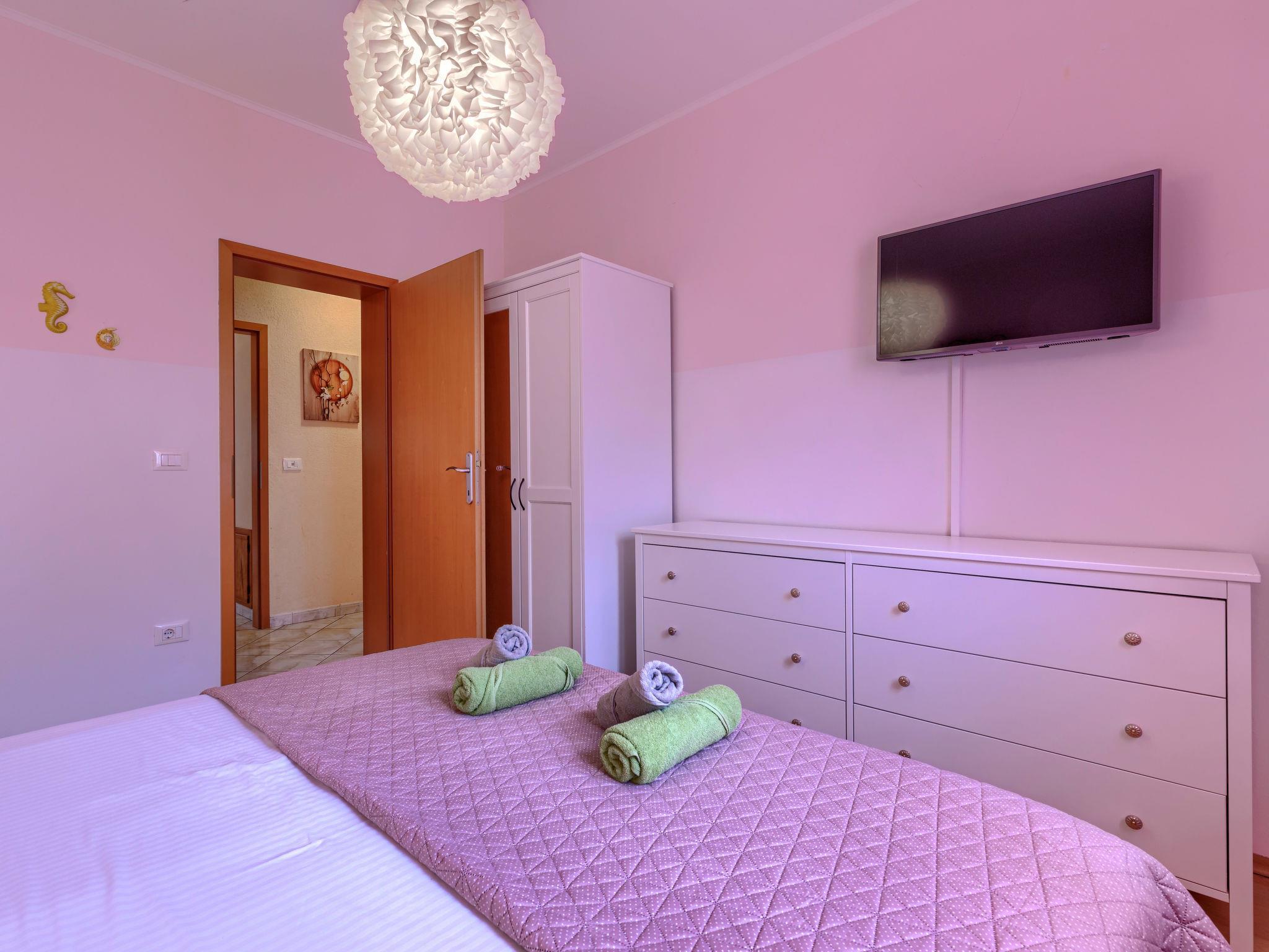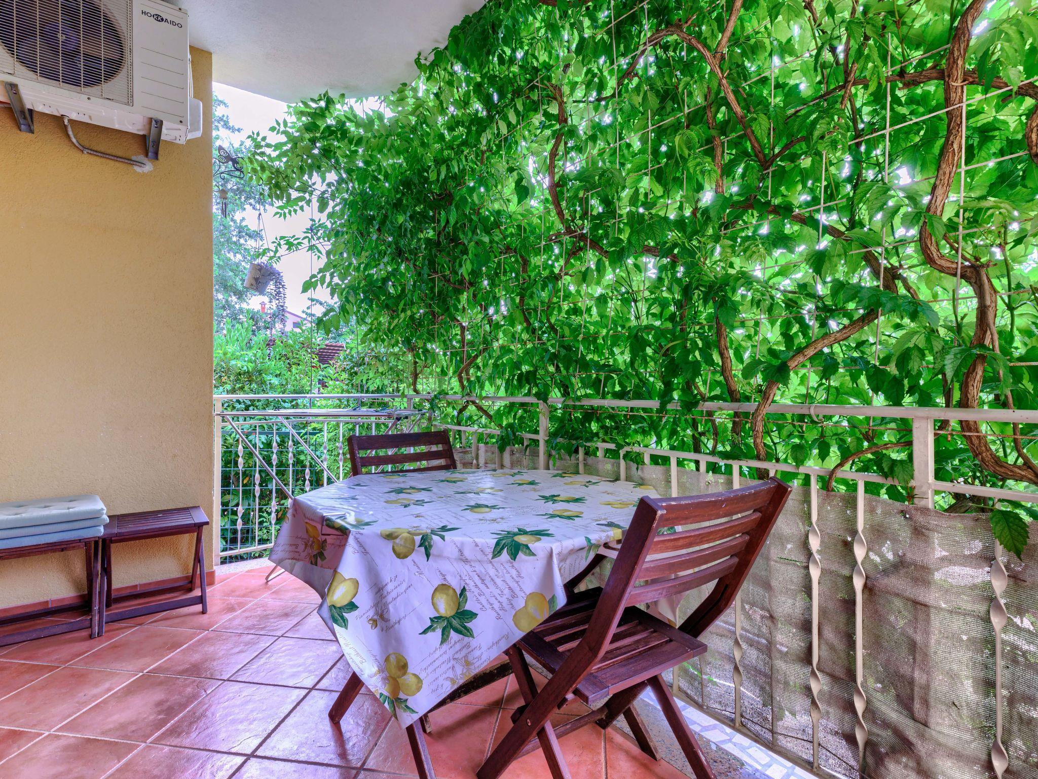 2-Zimmer-Wohnung 45 m2, im Erdgeschoss. Wohn-/Esszimmer mit 1 Doppeldiwanbett (140 cm, Länge 190 cm), Sat-TV (Flachbildschirm). 1 Zimmer mit 1 franz. Bett (180 cm, Länge 200 cm). Offene Küche (Backofen, Geschirrspüler, 4 Induktionskochplatten, Wasserkocher, Mikrowelle, Tiefkühler, elektrische Kaffeemaschine) mit Klimaanlage. Ausgang zum Balkon. Dusche/WC. Balkon 5 m2. Balkonmöbel. Zur Verfügung: Haartrockner. Internet (WLAN, gratis).