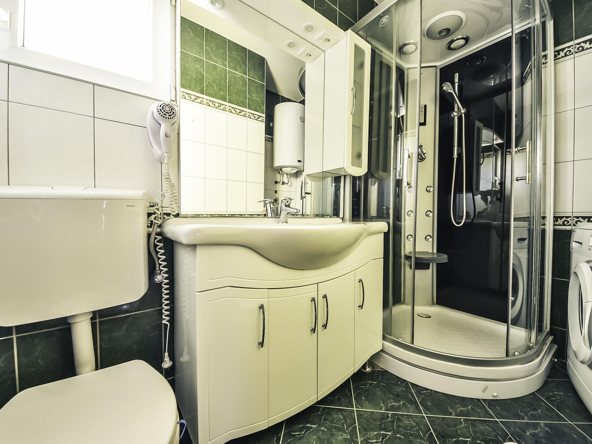 Ribnica 15 km von Novigrad: Mehrfamilienhaus "Anic". 8 km vom Zentrum von Obrovac, ruhige, sonnige, erhöhte Lage, 50 m vom Meer, 50 m vom Strand. Zur Mitbenutzung: Grundstück (eingezäunt). Aussendusche, Grill. Im Hause: Internetzugang. Parkplatz beim Haus auf dem Grundstück. Einkaufsgeschäft 200 m, Restaurant 1 km, Bar 150 m, Bushaltestelle 25.3 km, Sandstrand 300 m, Kieselstrand 50 m.