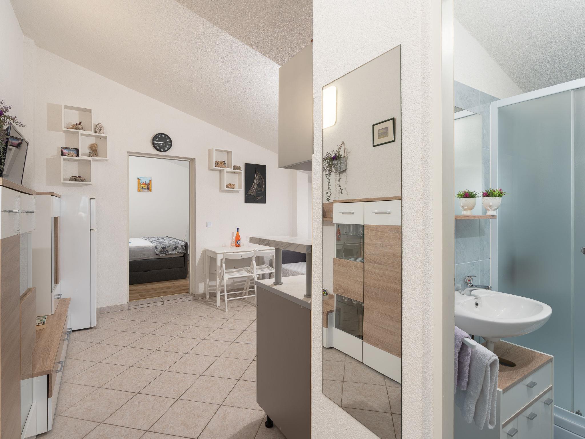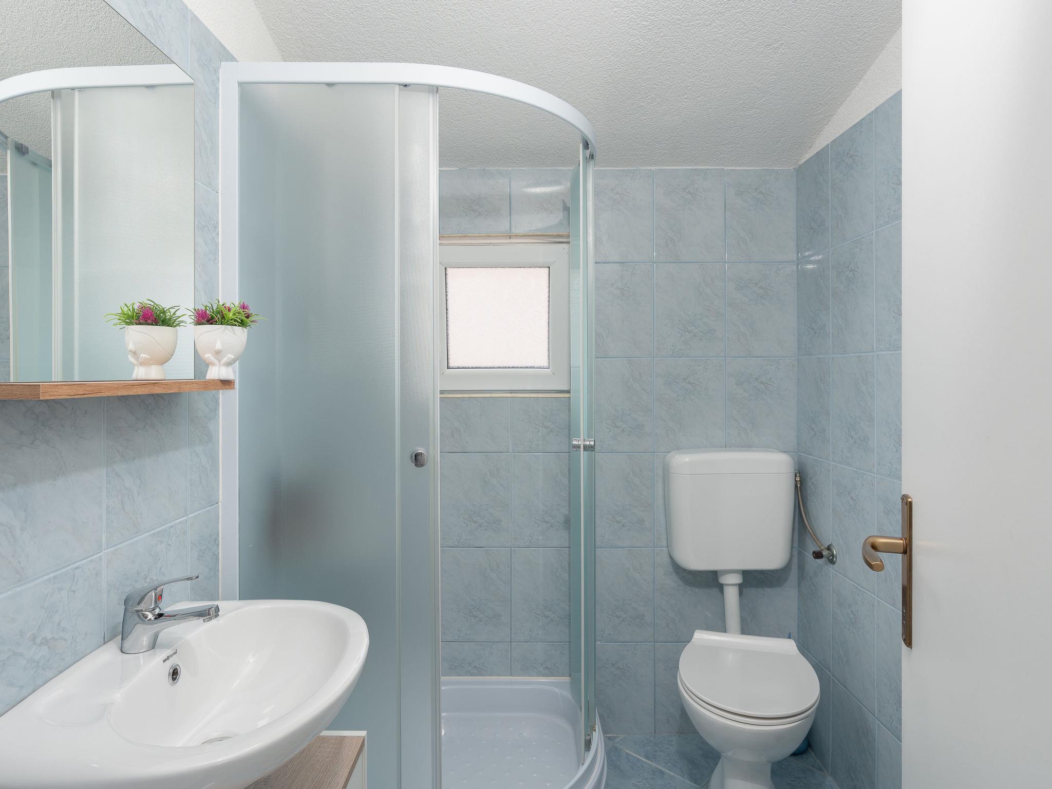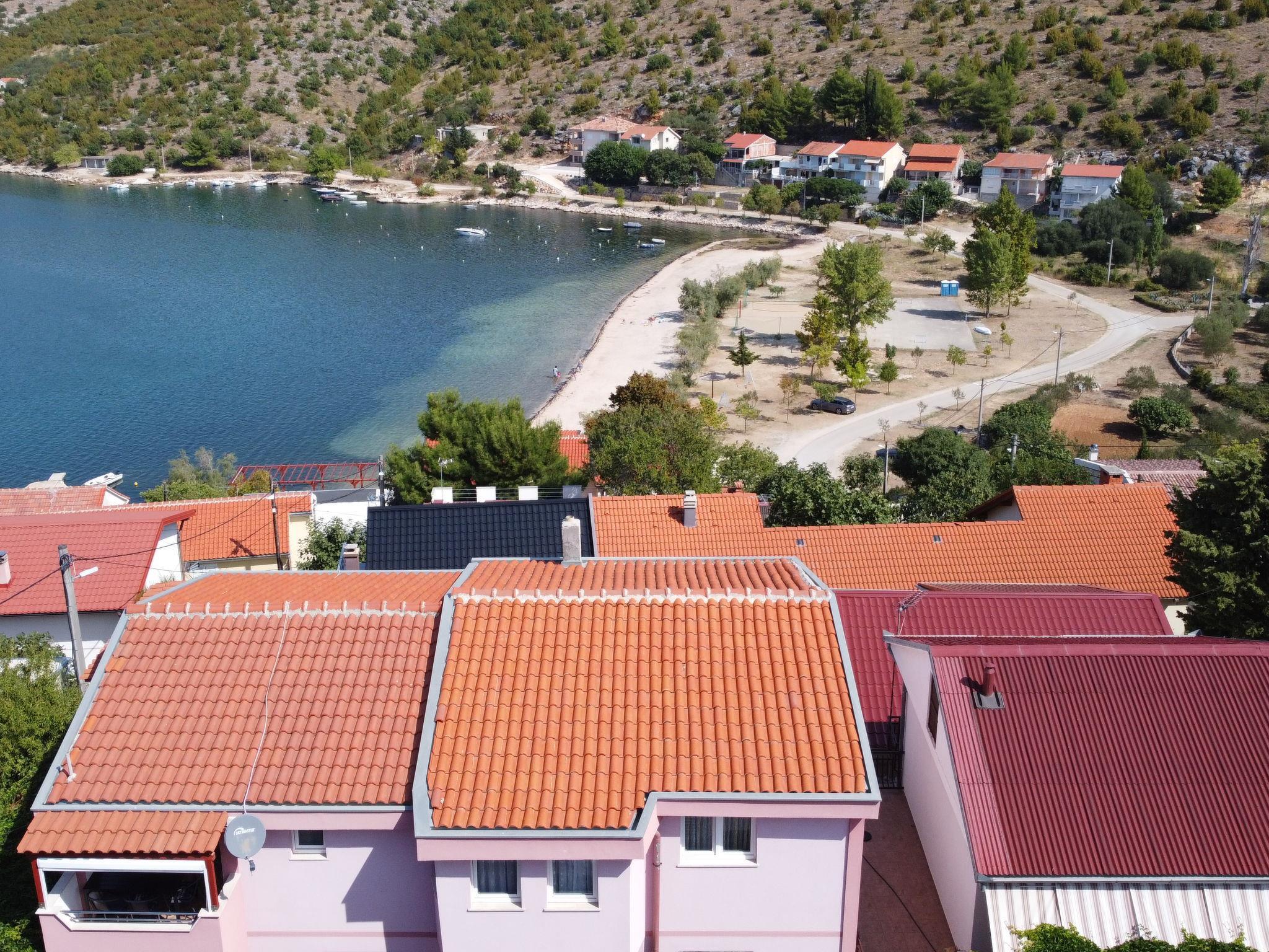 Ribnica 15 km von Novigrad: Dreifamilienhaus "Mia". 12 km vom Zentrum von Obrovac, ruhige, sonnige, erhöhte Lage, 80 m vom Meer, 80 m vom Strand. Zur Mitbenutzung: Grundstück 160 m2 (eingezäunt). Gartenmöbel, Grill. Im Hause: Internetzugang. Parkplatz beim Haus auf dem Grundstück. Einkaufsgeschäft 1 km, Restaurant 1 km, Bushaltestelle 25.1 km, Kieselstrand 80 m. Zugang zum Strand über 30 Stufen.