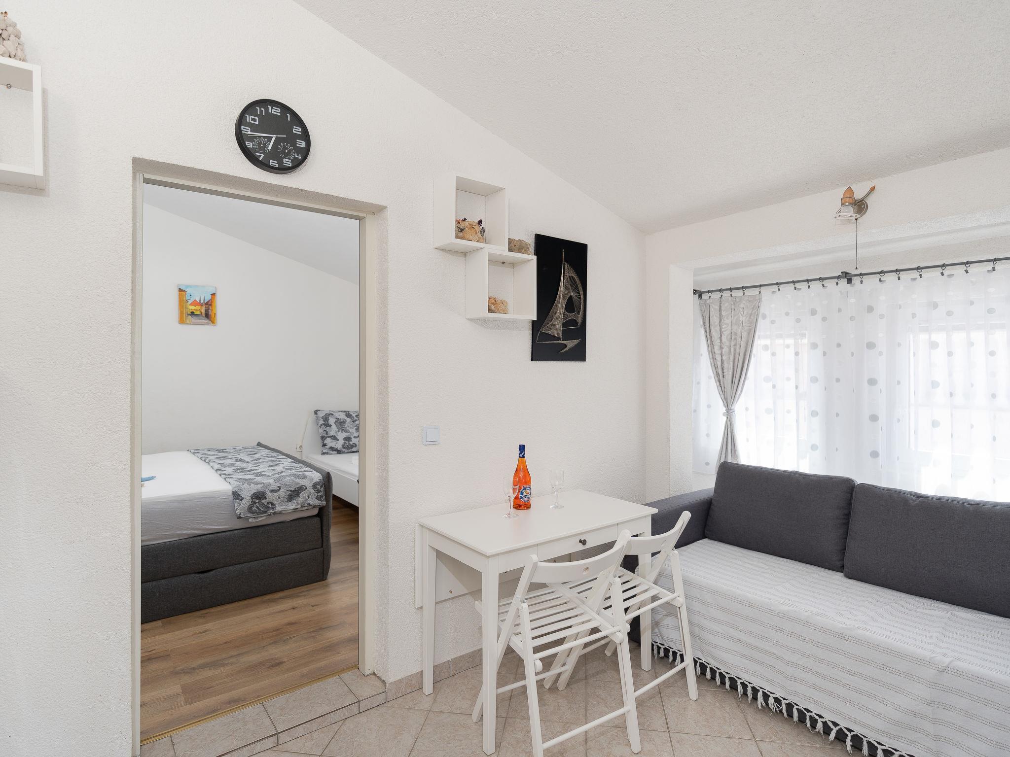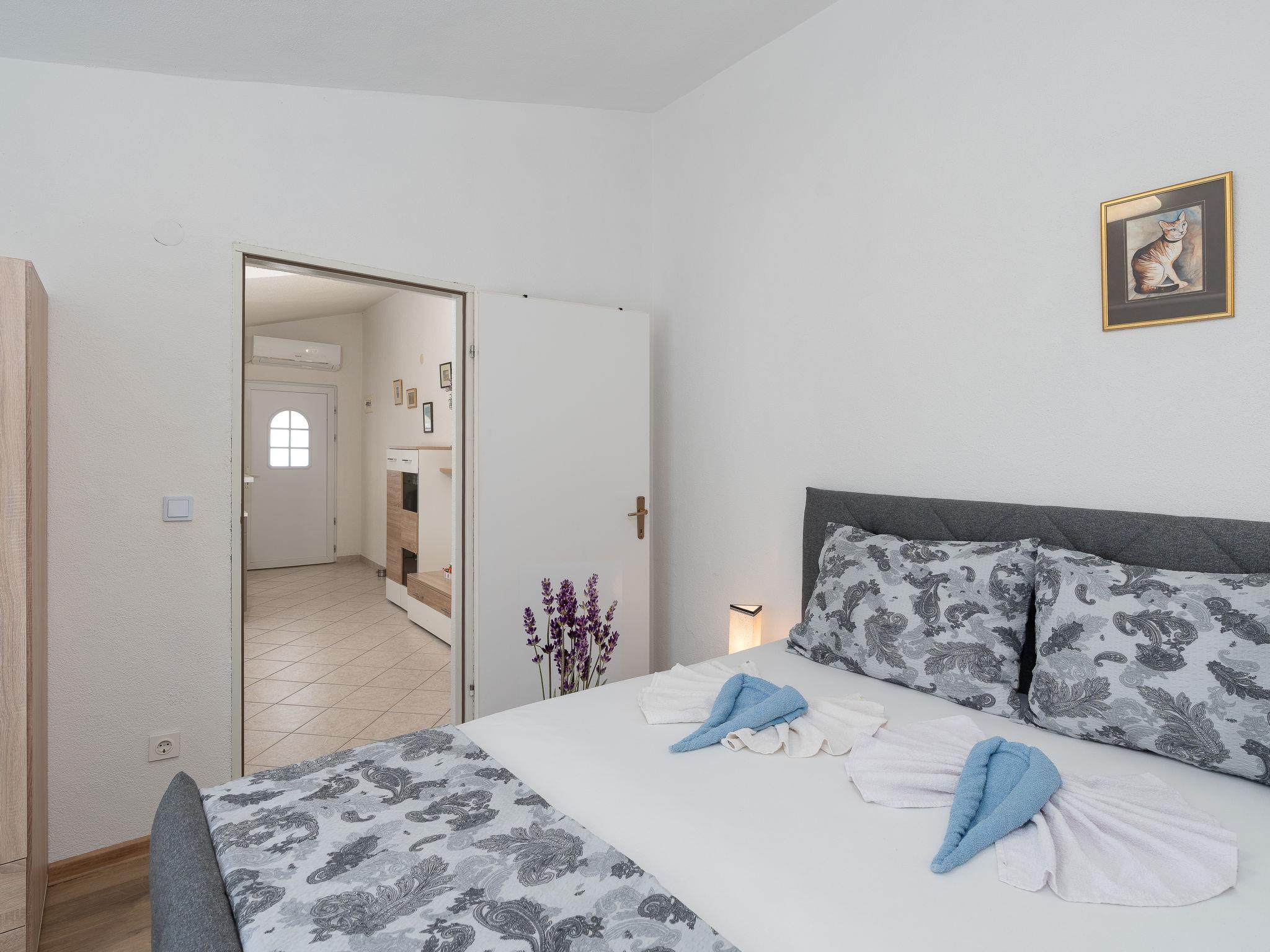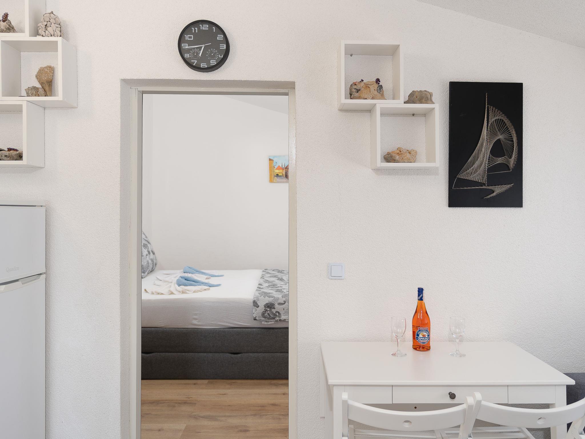 2-Zimmer-Wohnung 30 m2 im 2. Stock, Südwestlage. Wohn-/Esszimmer 15 m2 mit 1 Doppeldiwanbett (140 cm, Länge 200 cm), Sat-TV (Flachbildschirm), Klimaanlage. Ausgang zur Terrasse. 1 Zimmer mit 1 Bett (90 cm, Länge 200 cm), 1 franz. Bett (160 cm, Länge 200 cm). Offene Küche (2 Kochplatten, Backofen, 2 Flammen, Mikrowelle, Tiefkühler, elektrische Kaffeemaschine). Dusche/WC. Keine Heizmöglichkeit. Zur Verfügung: Internet (Wireless LAN, gratis).