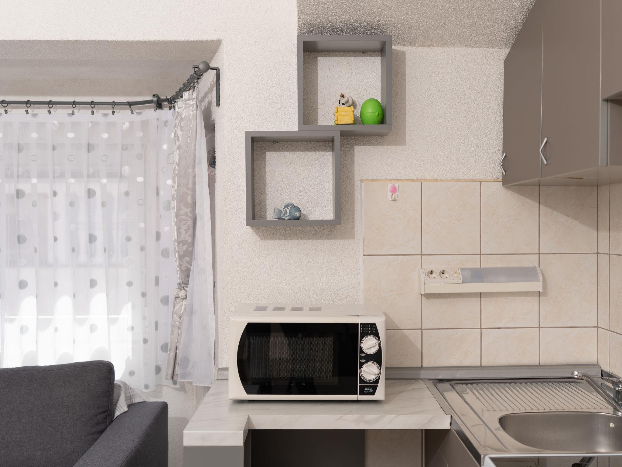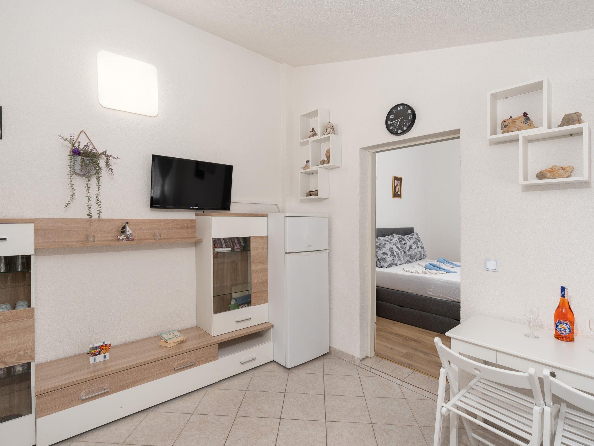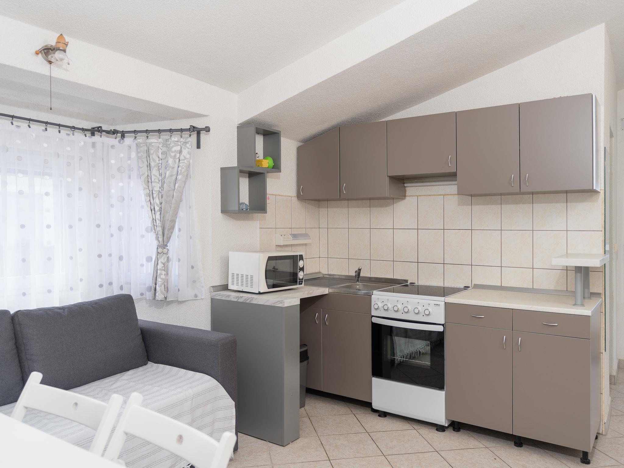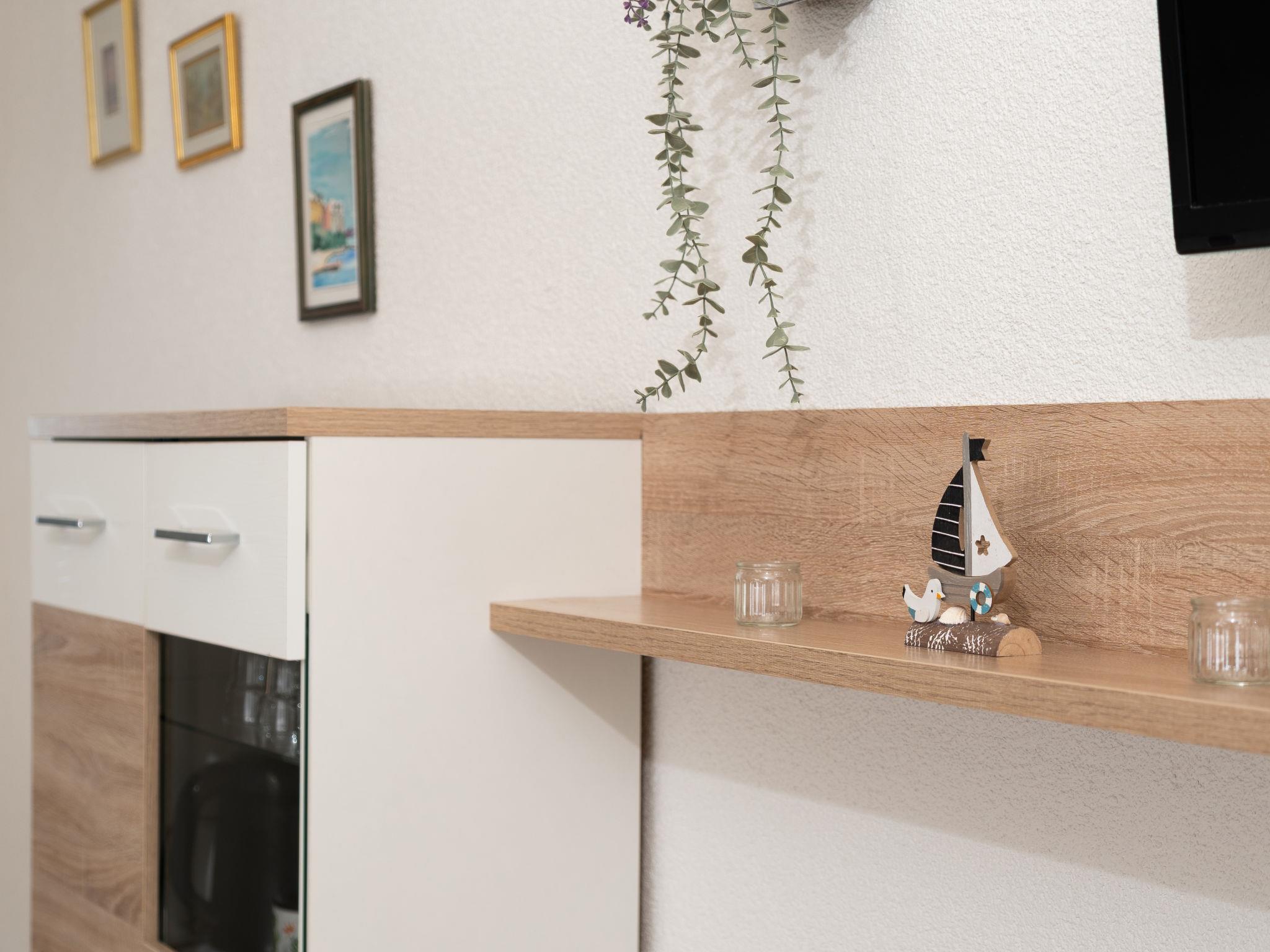 2-Zimmer-Wohnung 30 m2 im 2. Stock, Südwestlage. Wohn-/Esszimmer 15 m2 mit 1 Doppeldiwanbett (140 cm, Länge 200 cm), Sat-TV (Flachbildschirm), Klimaanlage. Ausgang zur Terrasse. 1 Zimmer mit 1 Bett (90 cm, Länge 200 cm), 1 franz. Bett (160 cm, Länge 200 cm). Offene Küche (2 Kochplatten, Backofen, 2 Flammen, Mikrowelle, Tiefkühler, elektrische Kaffeemaschine). Dusche/WC. Keine Heizmöglichkeit. Zur Verfügung: Internet (Wireless LAN, gratis).