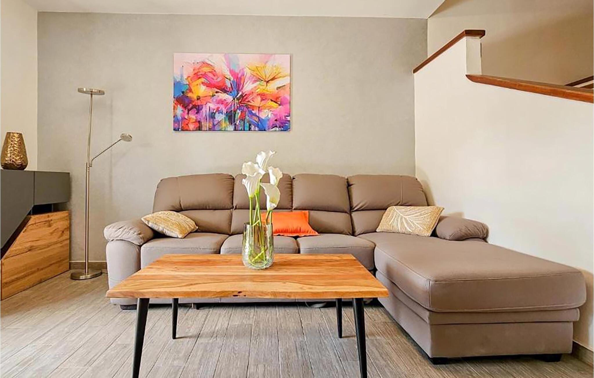 Willkommen in diesem geräumigen und geschmackvoll eingerichteten Ferienhaus. Freuen Sie sich auf eine angenehme und entspannende Wohnatmosphäre bei gemeinsamen Mahlzeiten und harmonischen Spieleabenden. Zaubern Sie leckere Gerichte in der einladenden Küche und planen Sie Ihre Unternehmungen auf dem gemütlichen Sofa.