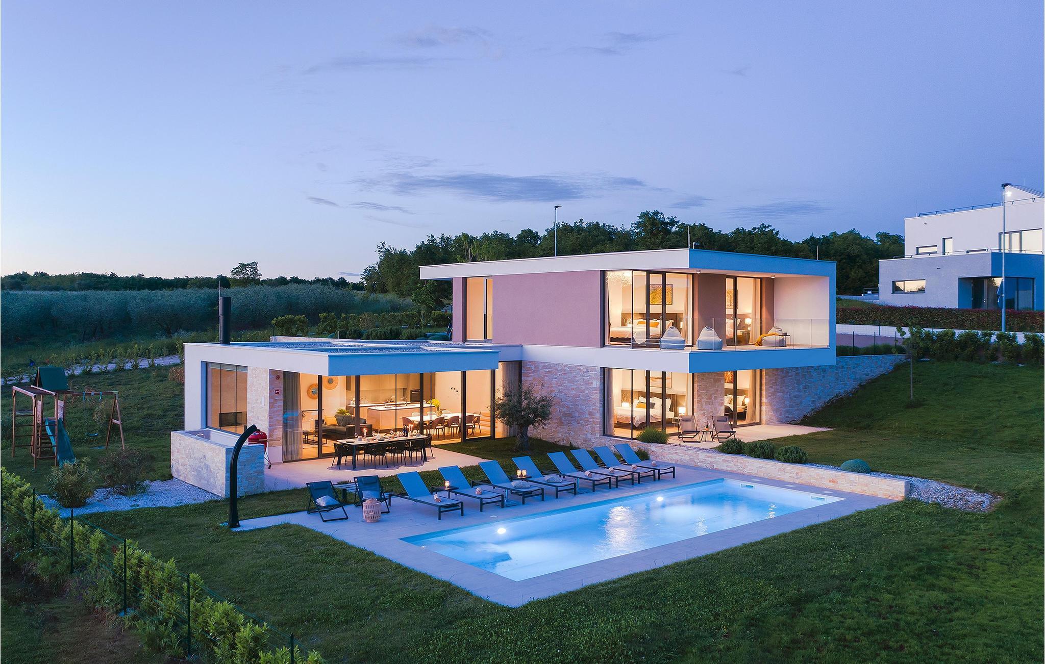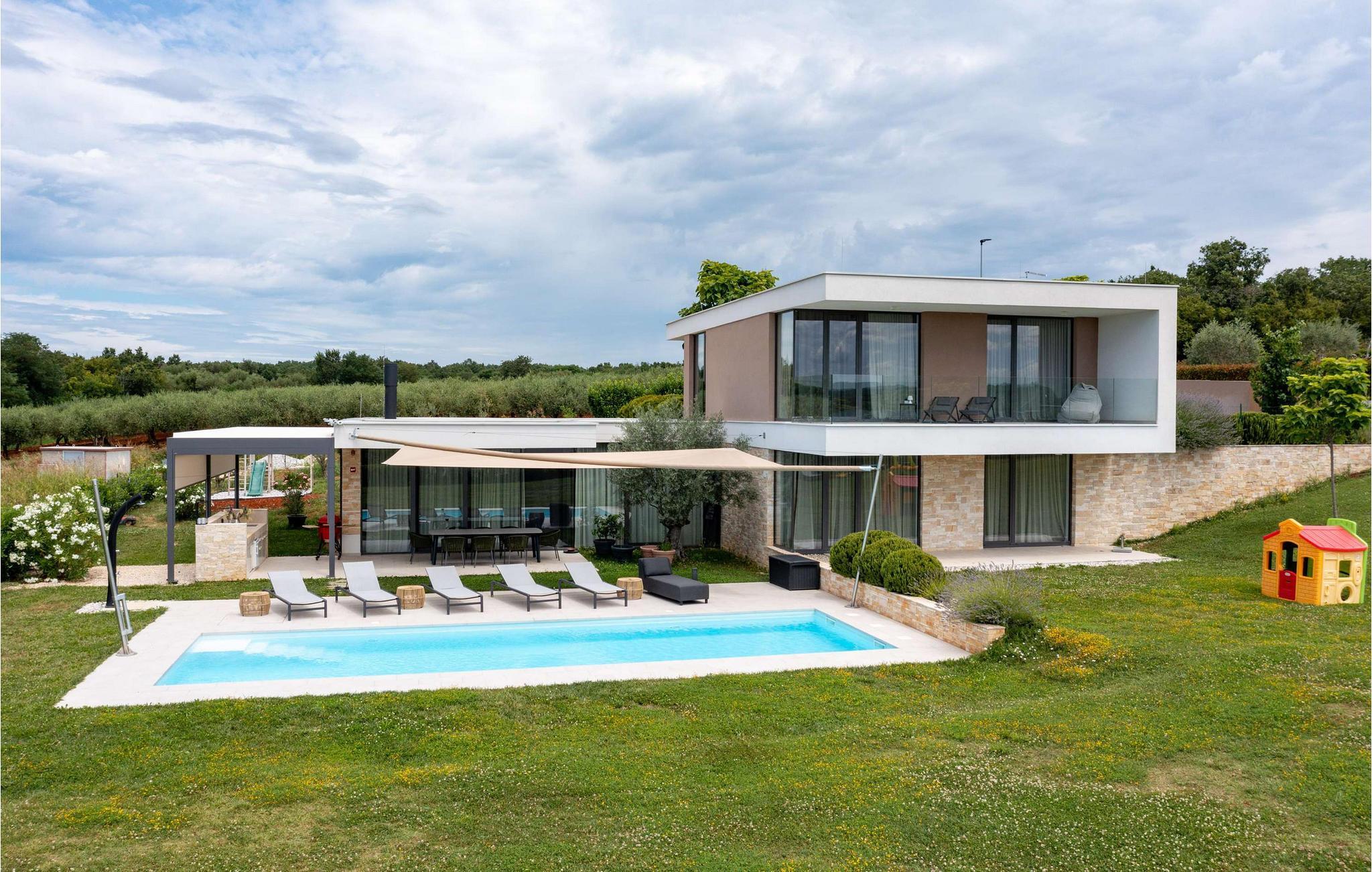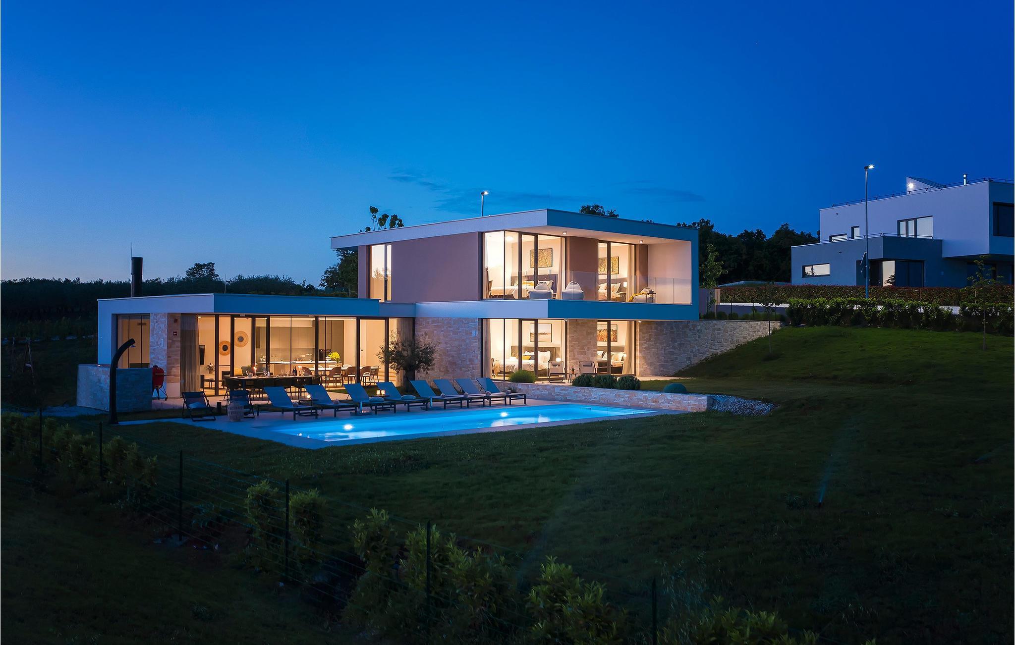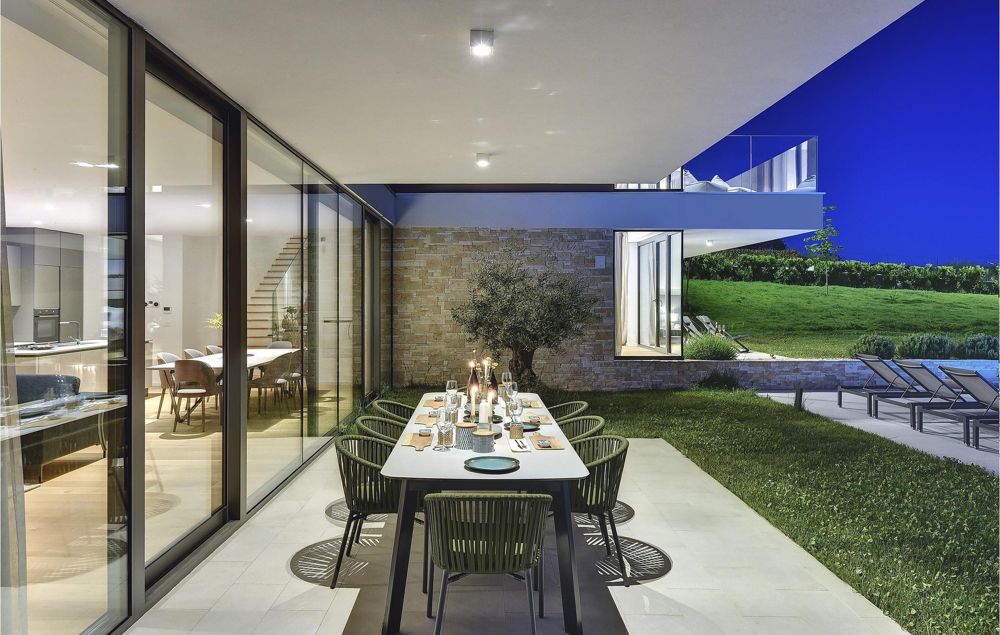 Die wunderschöne Villa Rošinjola im kleinen istrischen Ort Nova Vas beeindruckt durch ihre minimalistische Schlichtheit und isolierte Lage, die Ihnen Ruhe und Privatsphäre bietet. Der zeitgenössische Baustil umfasst große Glaswände in jedem Raum der Villa, die für Luftigkeit und Helligkeit im Innenraum sorgen. Die Unterkunftskapazität der Villa beträgt maximal 8 Personen. Von den insgesamt 4 Schlafzimmern verfügen zwei über ein Doppelbett und die restlichen zwei über jeweils zwei Einzelbetten, die auch zu Doppelbetten zusammengestellt werden können. 2 weitere Personen können in der Villa übernachten: zwei Kinder bis 7 Jahre nutzen ein Zustellbett. Im Obergeschoss der Villa befinden sich zwei Schlafzimmer mit eigenem Bad, und im Erdgeschoss der Villa gibt es zwei weitere Schlafzimmer, ebenfalls mit eigenem Bad, ein geräumiges Wohnzimmer, eine moderne Küche und ein offenes Esszimmer. Außerdem stehen Ihnen eine Waschmaschine, ein Bügeleisen und Bügelbrett sowie ein Futterspender und ein Babybett zur Verfügung. Auf der großen Terrasse und im von viel Grün umgebenen Innenhof der Villa befindet sich ein großer Pool von 40 m2 und einer Tiefe von 1,5 m. Rund um den Pool stehen 10 Liegestühle bereit, auf denen Sie angenehme Sommermomente in Gesellschaft Ihrer Lieben verbringen können. Es gibt auch einen Kamado-Grill im Freien und einen Esstisch im Freien. Für die Kleinsten gibt es einen Kinderspielplatz mit Rodelbahn, Tischtennis, Darts oder Badminton, der Ihren Urlaub mit interessanten Aktivitäten abrunden wird. Im komplett umzäunten Hof der Villa stehen 4 Parkplätze zur Verfügung. In Novigrad, einer wunderschönen Stadt an der Küste Istriens, liegt etwas weiter von der Villa entfernt der nächste Strand namens Maestral, an dem Sie Wassersportarten wie Tauchen, Schwimmen und Segeln nachgehen können. Istrien ist vor allem für sein hervorragendes öno-gastronomisches Angebot bekannt. Versäumen Sie es daher nicht, einige der Spitzenspezialitäten wie frischen Fisch, verschiedene Nudelsorten, istrisches Boškarin-Fleisch, Olivenöl oder lokale Weine wie Malvasia, Teran und Cabernet Sauvignon zu probieren . Eine weitere besondere istrische Gourmetspezialität ist der Trüffel, eine unterirdische Wildknolle, die entlang der Wurzeln von Bäumen wächst. Obwohl es besonders bitter im Geschmack ist, ist dieses unterirdische Juwel eine sehr teure Gourmet-Delikatesse, die hauptsächlich in Italien und Frankreich wächst, aber auch in Istrien zu finden ist. All dies können Sie bei den Trüffeljagdtouren sehen und erleben, die in den Herbstmonaten in ganz Istrien organisiert werden. In Istrien finden Sie in den Sommermonaten verschiedene Unterhaltungs- und Kulturveranstaltungen. Im benachbarten Brtonigla, einem malerischen Ort auf einem von Weinbergen umgebenen Hügel, können Sie im Sommer an verschiedenen Gastro-Festivals wie dem Schokoladen- und Weinfest, den Pilztagen oder der Ethno-Veranstaltung „In den Farben der Tradition“ teilnehmen ". Wenn Sie dennoch lieber kulturelle und historische Denkmäler und interessante Straßen erkunden möchten, finden Sie an der istrischen Küste viele historische Städte wie das nahegelegene Umag oder Porec, deren Straßen verschiedene antike Denkmäler verbergen. In Porec, einer Stadt mit einer mehr als 2000-jährigen Geschichte, gibt es beispielsweise eine monumentale frühchristliche Euphrasius-Basilika aus dem 6. Jahrhundert. Aufgrund seiner außergewöhnlichen architektonischen und stilistischen Merkmale wurde es in die Liste des UNESCO-Weltkulturerbes aufgenommen. Genießen Sie alle Vorzüge des wunderschönen und magischen Istriens und entspannen Sie sich im bezaubernden Luxus der Villa Rošinjola! Eine Poolheizung ist gegen eine zusätzliche Gebühr verfügbar, die vor Ort zu zahlen ist.