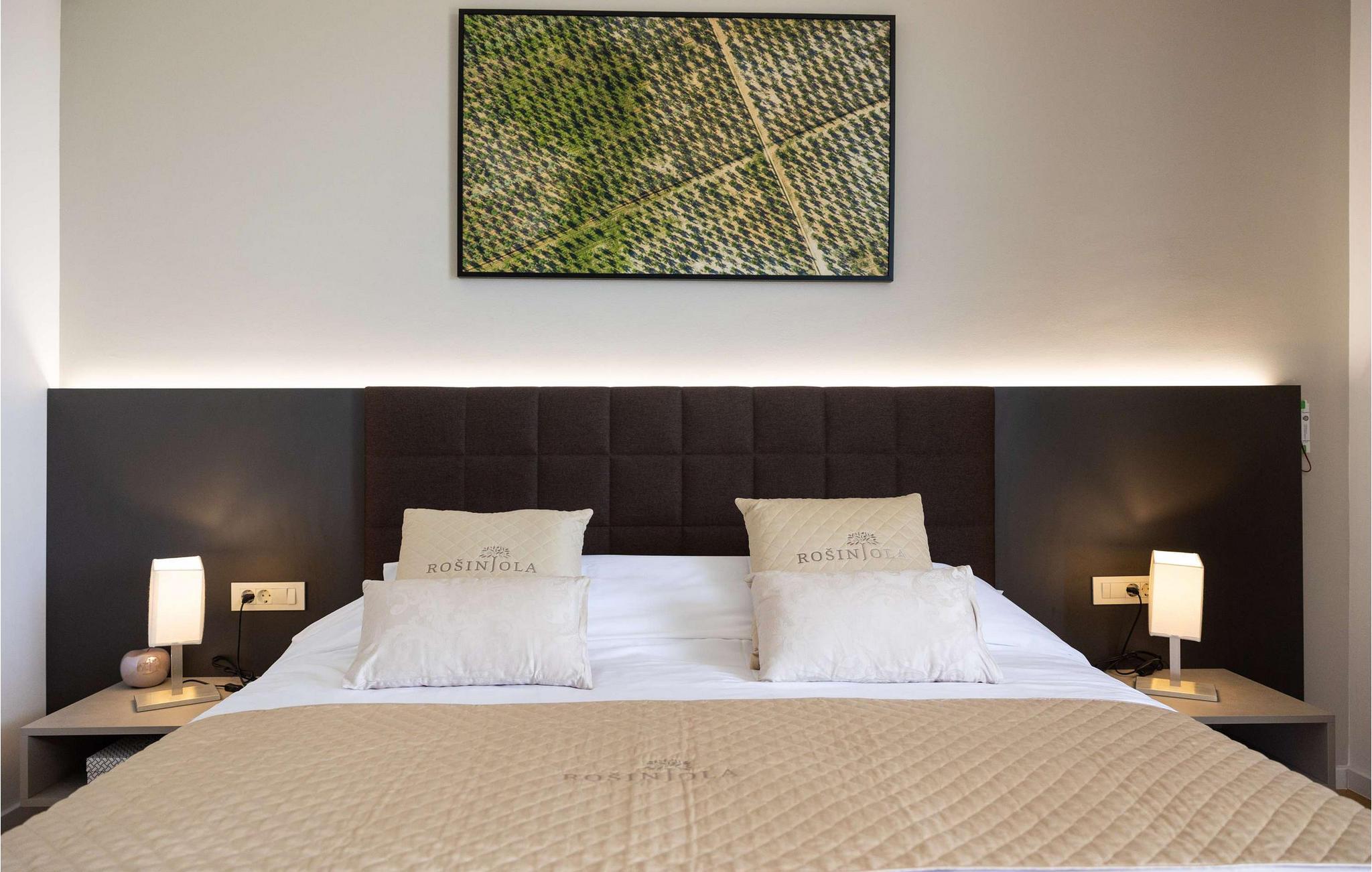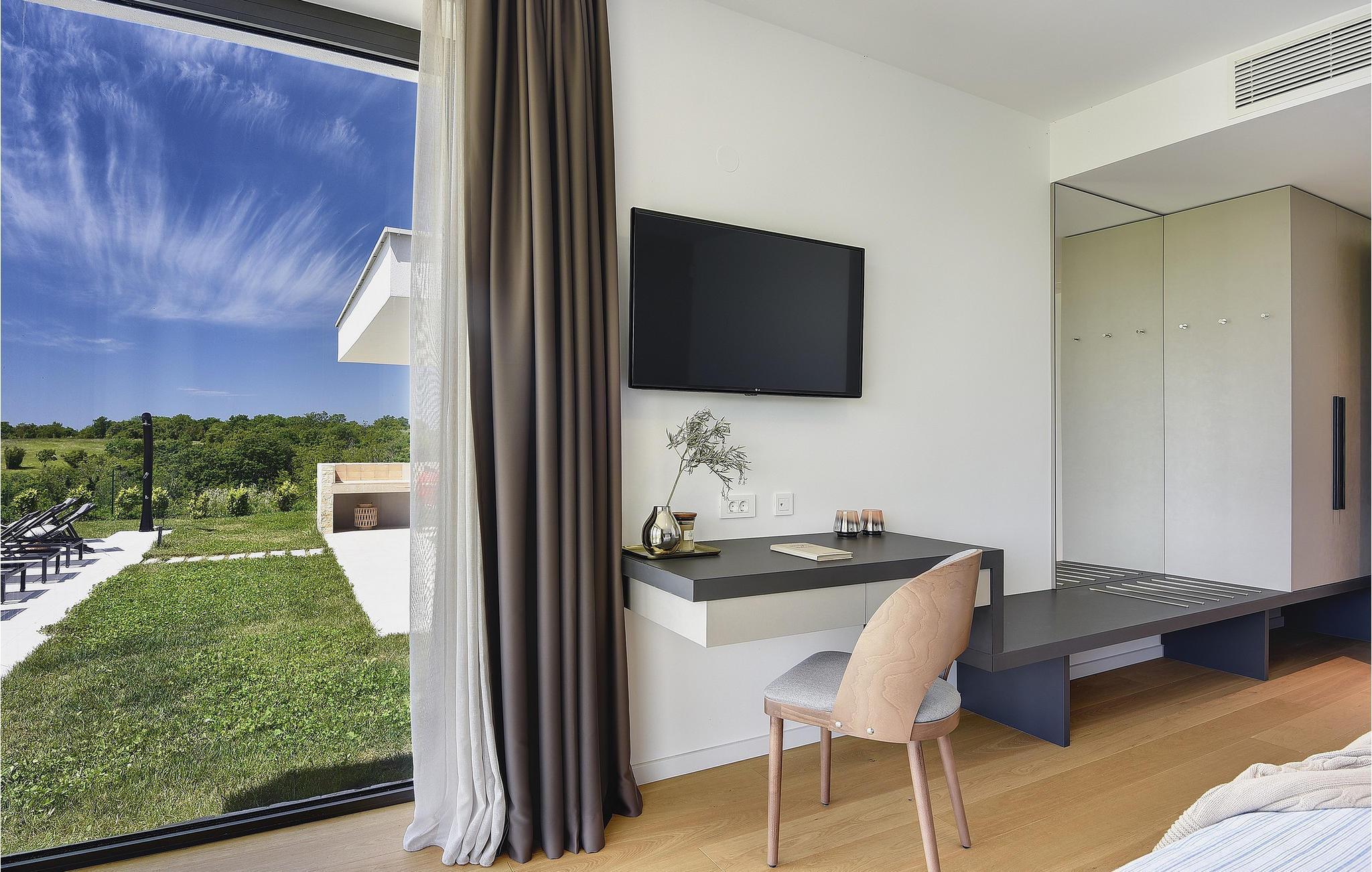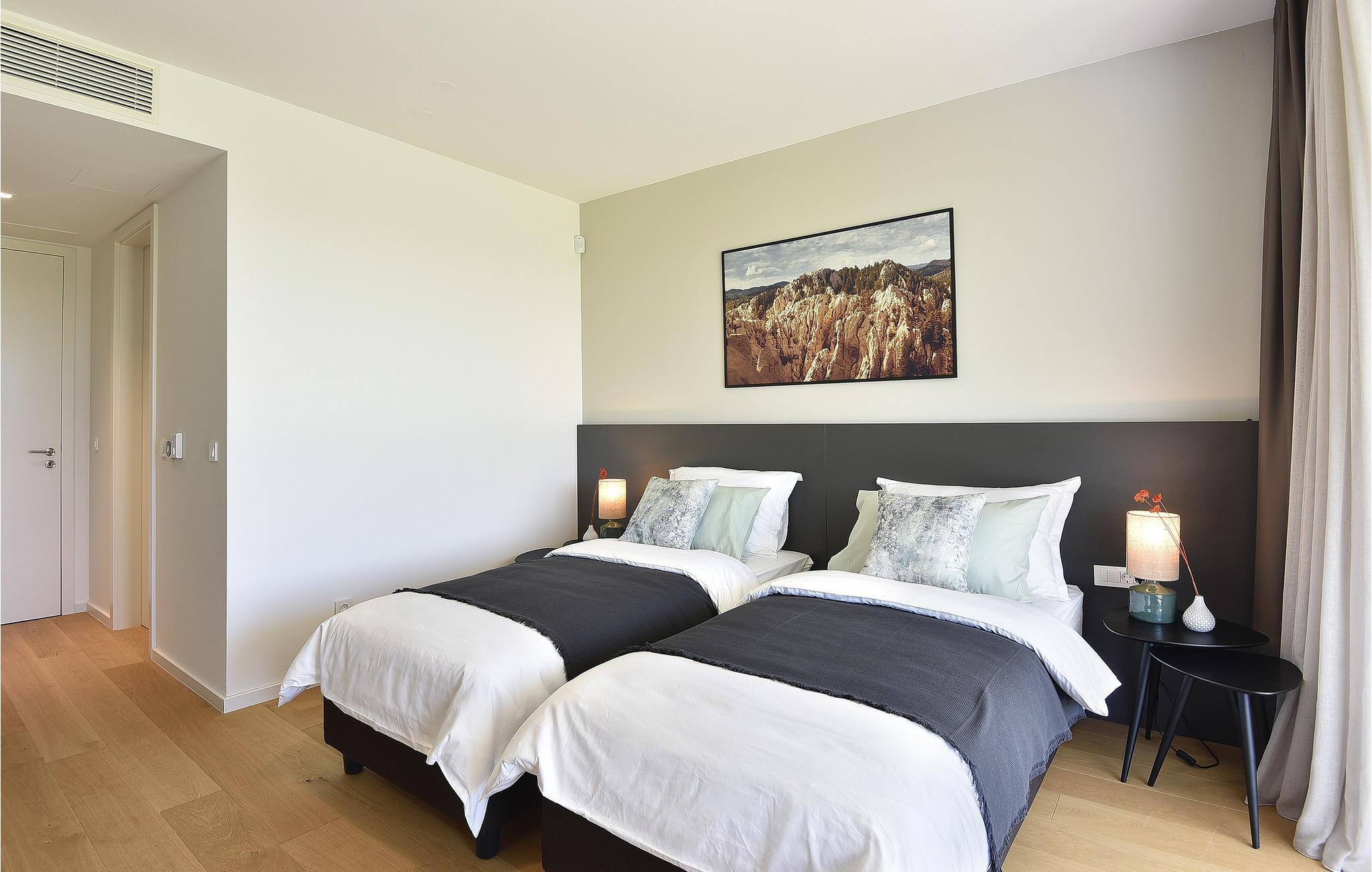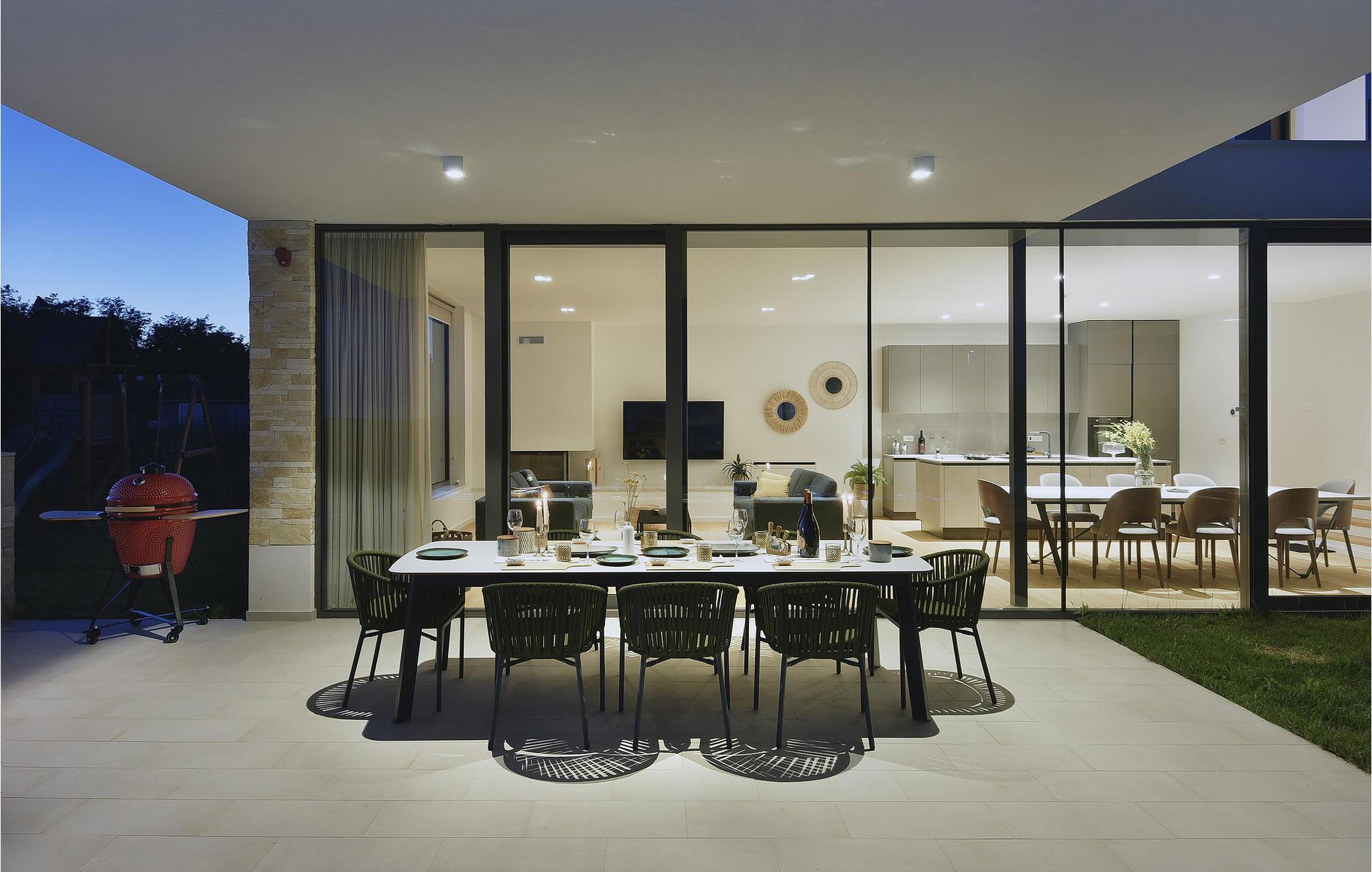 Die wunderschöne Villa Rošinjola im kleinen istrischen Ort Nova Vas beeindruckt durch ihre minimalistische Schlichtheit und isolierte Lage, die Ihnen Ruhe und Privatsphäre bietet. Der zeitgenössische Baustil umfasst große Glaswände in jedem Raum der Villa, die für Luftigkeit und Helligkeit im Innenraum sorgen. Die Unterkunftskapazität der Villa beträgt maximal 8 Personen. Von den insgesamt 4 Schlafzimmern verfügen zwei über ein Doppelbett und die restlichen zwei über jeweils zwei Einzelbetten, die auch zu Doppelbetten zusammengestellt werden können. 2 weitere Personen können in der Villa übernachten: zwei Kinder bis 7 Jahre nutzen ein Zustellbett. Im Obergeschoss der Villa befinden sich zwei Schlafzimmer mit eigenem Bad, und im Erdgeschoss der Villa gibt es zwei weitere Schlafzimmer, ebenfalls mit eigenem Bad, ein geräumiges Wohnzimmer, eine moderne Küche und ein offenes Esszimmer. Außerdem stehen Ihnen eine Waschmaschine, ein Bügeleisen und Bügelbrett sowie ein Futterspender und ein Babybett zur Verfügung. Auf der großen Terrasse und im von viel Grün umgebenen Innenhof der Villa befindet sich ein großer Pool von 40 m2 und einer Tiefe von 1,5 m. Rund um den Pool stehen 10 Liegestühle bereit, auf denen Sie angenehme Sommermomente in Gesellschaft Ihrer Lieben verbringen können. Es gibt auch einen Kamado-Grill im Freien und einen Esstisch im Freien. Für die Kleinsten gibt es einen Kinderspielplatz mit Rodelbahn, Tischtennis, Darts oder Badminton, der Ihren Urlaub mit interessanten Aktivitäten abrunden wird. Im komplett umzäunten Hof der Villa stehen 4 Parkplätze zur Verfügung. In Novigrad, einer wunderschönen Stadt an der Küste Istriens, liegt etwas weiter von der Villa entfernt der nächste Strand namens Maestral, an dem Sie Wassersportarten wie Tauchen, Schwimmen und Segeln nachgehen können. Istrien ist vor allem für sein hervorragendes öno-gastronomisches Angebot bekannt. Versäumen Sie es daher nicht, einige der Spitzenspezialitäten wie frischen Fisch, verschiedene Nudelsorten, istrisches Boškarin-Fleisch, Olivenöl oder lokale Weine wie Malvasia, Teran und Cabernet Sauvignon zu probieren . Eine weitere besondere istrische Gourmetspezialität ist der Trüffel, eine unterirdische Wildknolle, die entlang der Wurzeln von Bäumen wächst. Obwohl es besonders bitter im Geschmack ist, ist dieses unterirdische Juwel eine sehr teure Gourmet-Delikatesse, die hauptsächlich in Italien und Frankreich wächst, aber auch in Istrien zu finden ist. All dies können Sie bei den Trüffeljagdtouren sehen und erleben, die in den Herbstmonaten in ganz Istrien organisiert werden. In Istrien finden Sie in den Sommermonaten verschiedene Unterhaltungs- und Kulturveranstaltungen. Im benachbarten Brtonigla, einem malerischen Ort auf einem von Weinbergen umgebenen Hügel, können Sie im Sommer an verschiedenen Gastro-Festivals wie dem Schokoladen- und Weinfest, den Pilztagen oder der Ethno-Veranstaltung „In den Farben der Tradition“ teilnehmen ". Wenn Sie dennoch lieber kulturelle und historische Denkmäler und interessante Straßen erkunden möchten, finden Sie an der istrischen Küste viele historische Städte wie das nahegelegene Umag oder Porec, deren Straßen verschiedene antike Denkmäler verbergen. In Porec, einer Stadt mit einer mehr als 2000-jährigen Geschichte, gibt es beispielsweise eine monumentale frühchristliche Euphrasius-Basilika aus dem 6. Jahrhundert. Aufgrund seiner außergewöhnlichen architektonischen und stilistischen Merkmale wurde es in die Liste des UNESCO-Weltkulturerbes aufgenommen. Genießen Sie alle Vorzüge des wunderschönen und magischen Istriens und entspannen Sie sich im bezaubernden Luxus der Villa Rošinjola! Eine Poolheizung ist gegen eine zusätzliche Gebühr verfügbar, die vor Ort zu zahlen ist.