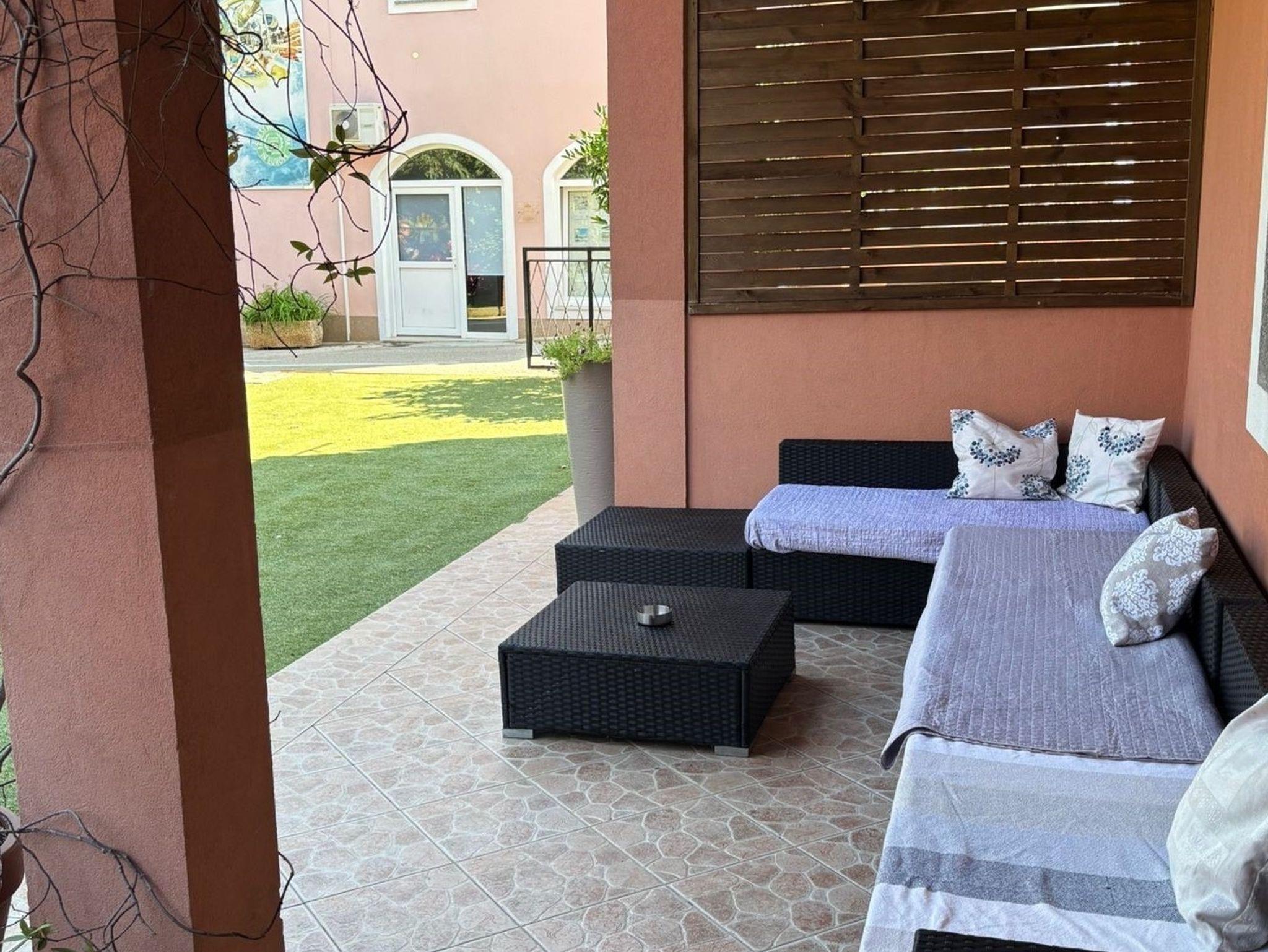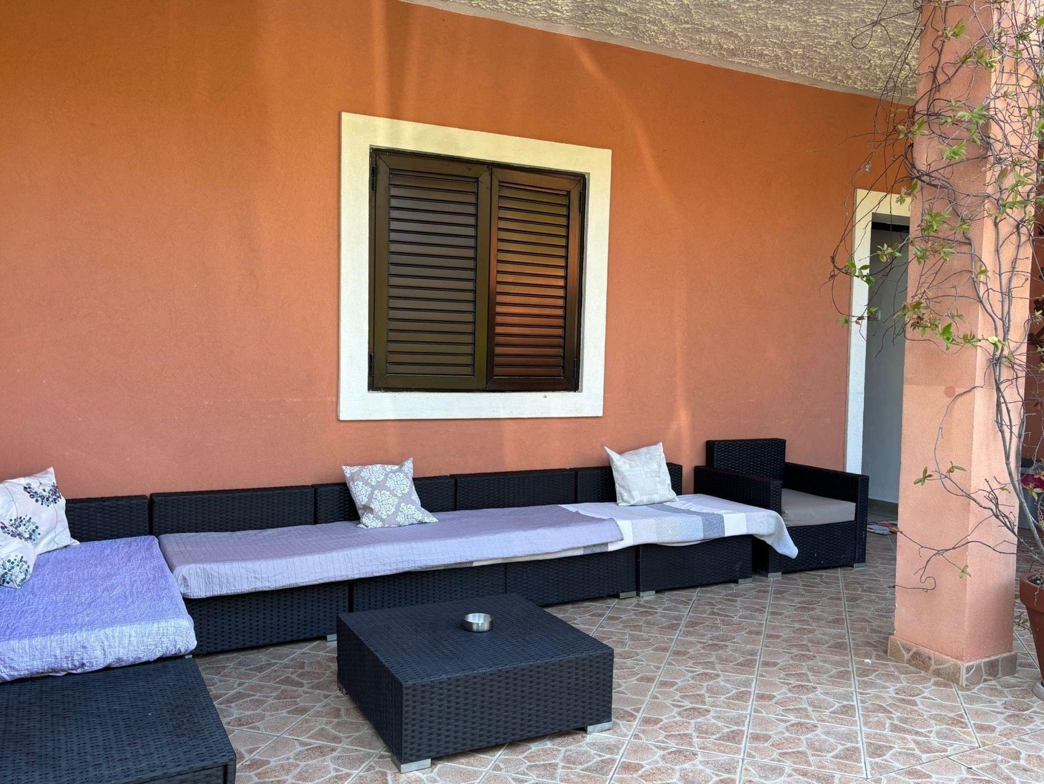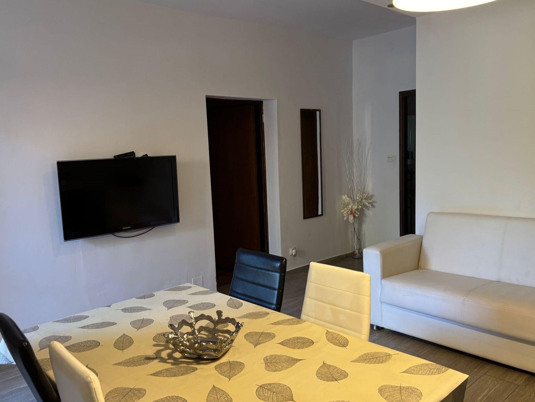 Ferienwohnung bietet Platz für 5 Gäste. Die Betten sind in Schlafzimmern, die es 2 gibt, innerhalb einer Gesamtfläche von 45m2, angeordnet. Die Gäste haben eine eigene Terrasse zur Verfügung, auf der sie in warmen Sommernächten genießen können. Es ist erlaubt, Speisen auf dem Gemeinschafts-Grill vorzubereiten. In der Unterkunftseinheit besteht die Möglichkeit des Mitbringens von Haustieren gegen Aufpreis. IM PREIS INBEGRIFFEN: Kurtaxe, Endreinigung, Klimatisierung, Parkplatz, Internet, Föhn. VERBINDLICHE ZUSÄTZLICHE KOSTEN: Aufzahlung für Kurzaufenthalte (prozentualer Zuschlag pro Nächtigungsanzahl: 30% - 1, 20% - 2, 10% - 3). UNVERBINDLICHE ZUSÄTZLICHE KOSTEN: Haustiere (10,00 € pro Nacht), Zusatzbett (15,00 € pro Nacht). Die Verfügbarkeit zusätzlicher Dienstleistungen in Ihrem reservierten Termin und die Preise derselben (falls nicht aufgeführt) müssen im Voraus überprüft werden. Zusätzliche Dienstleistungen die in der Zahlungsaufforderung nicht aufgeführt sind werden direkt beim Vermieter bezahlt, angenommen der Gast nutzt auch diese.