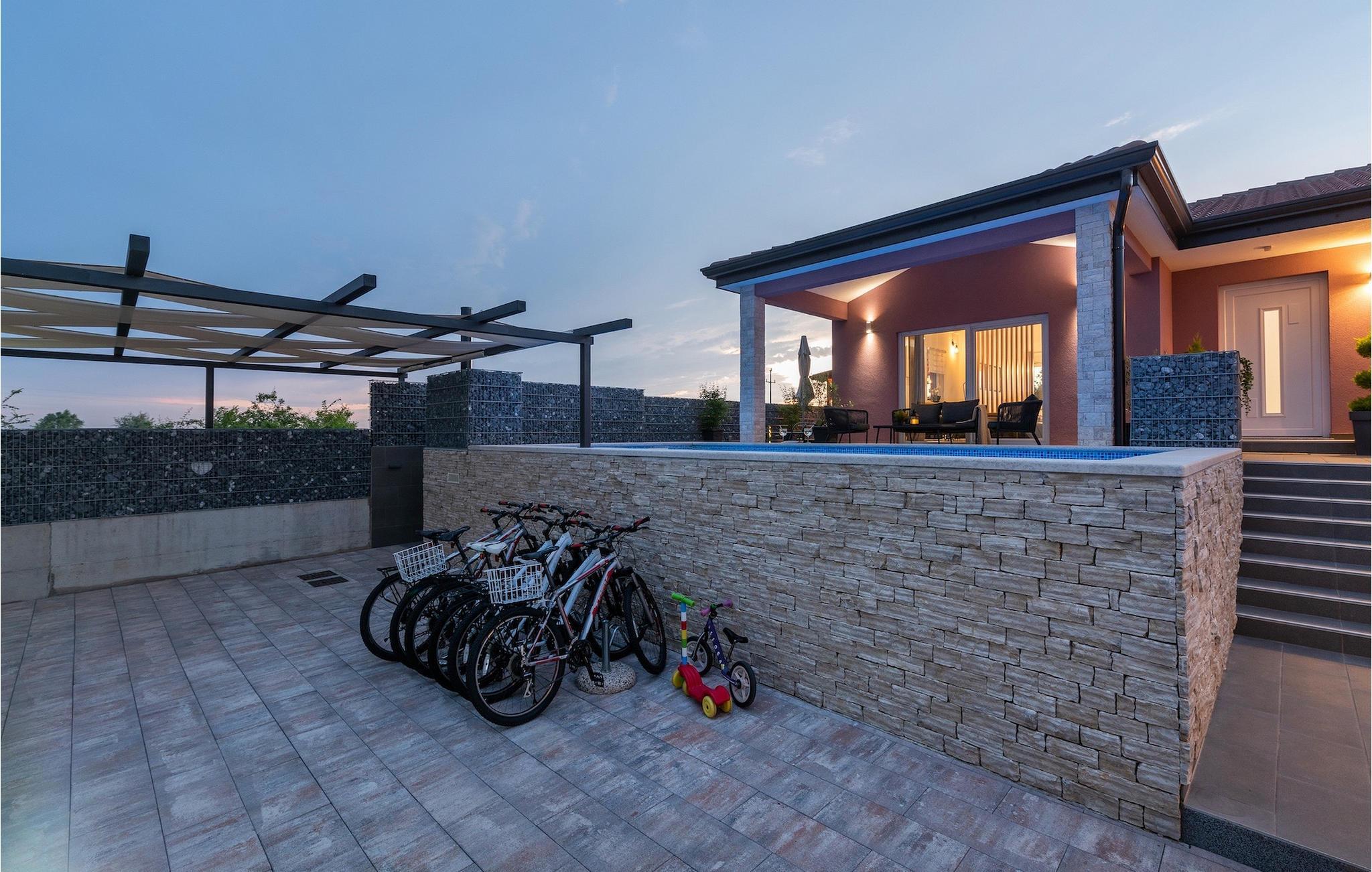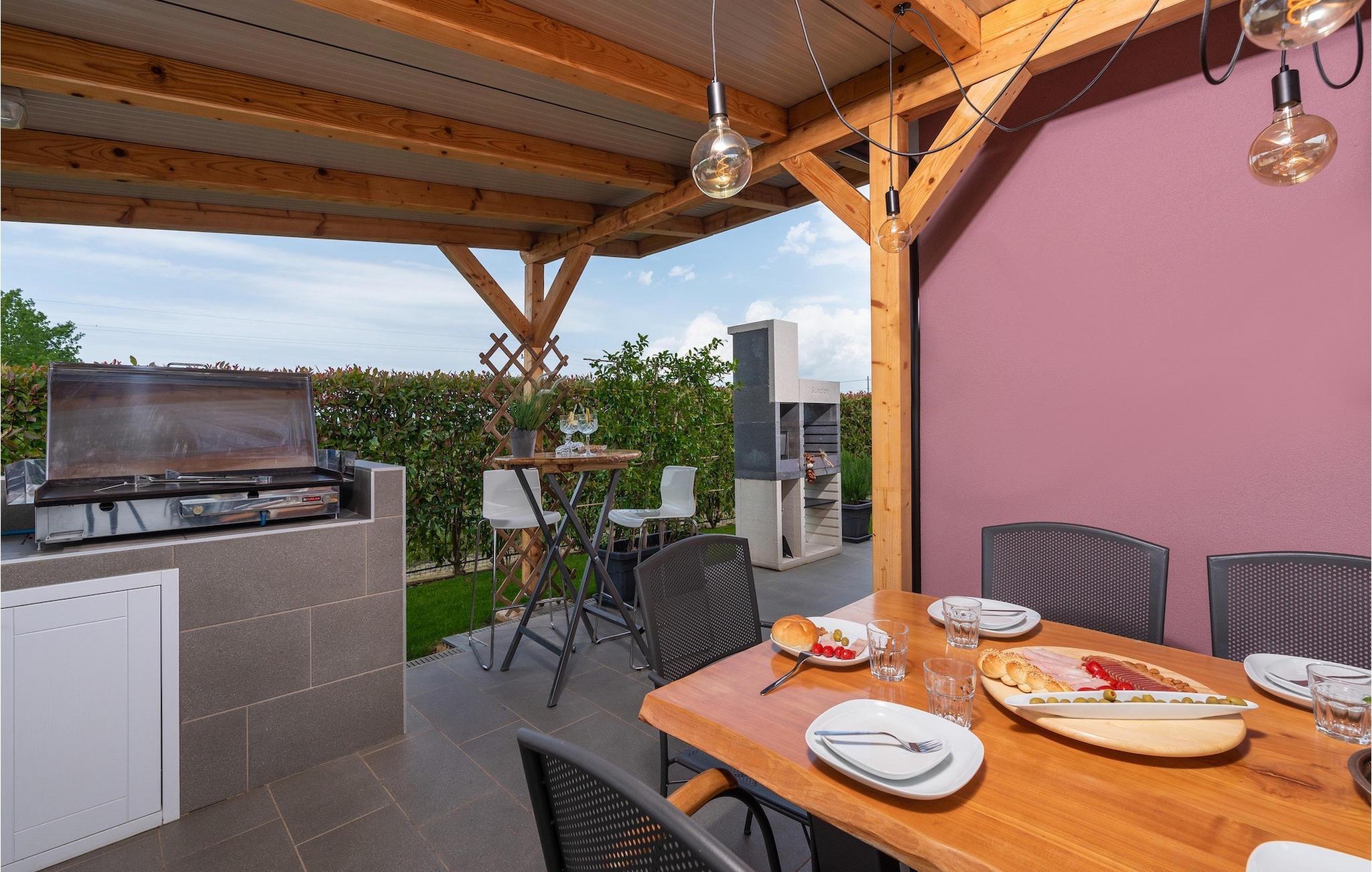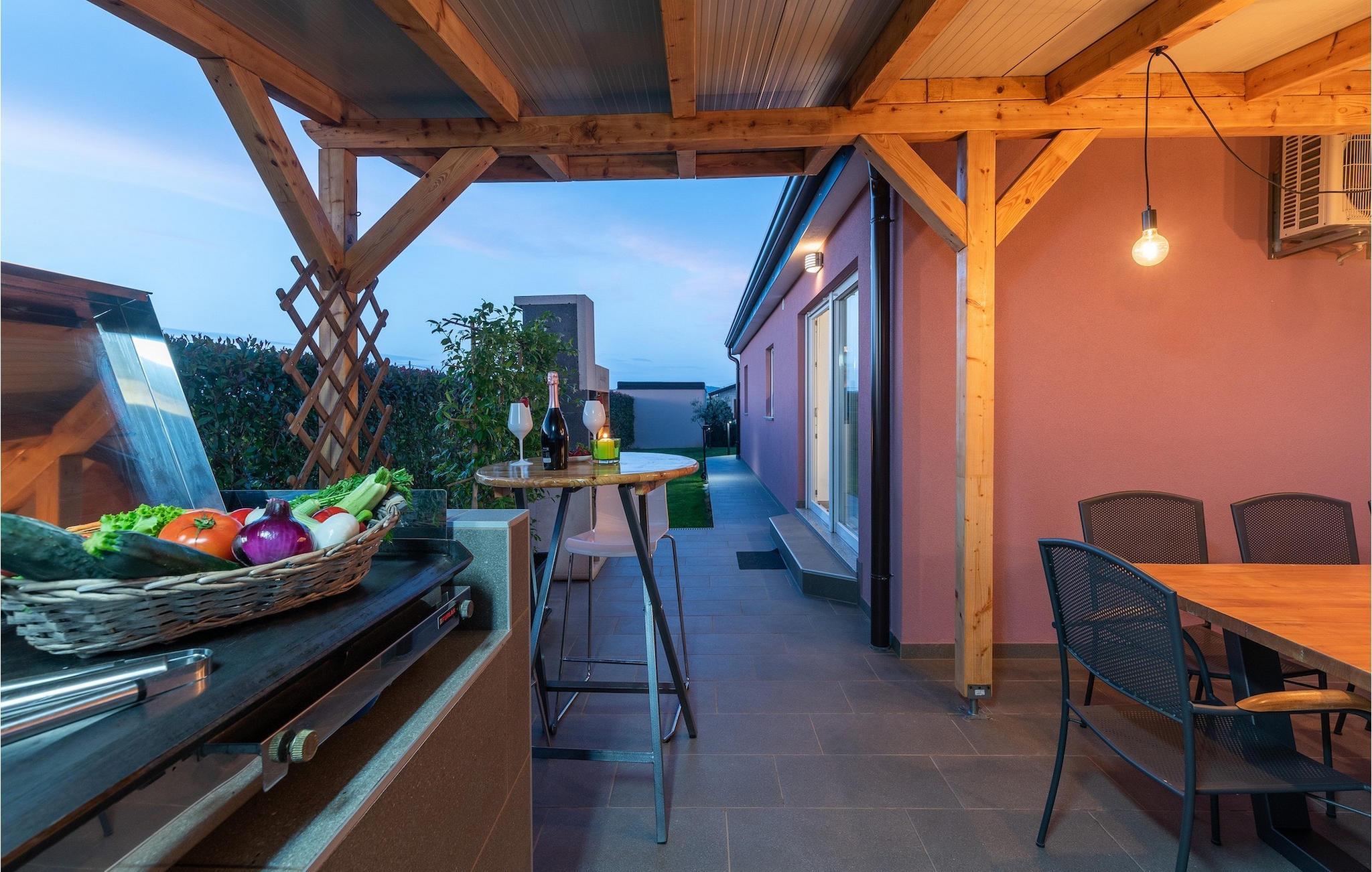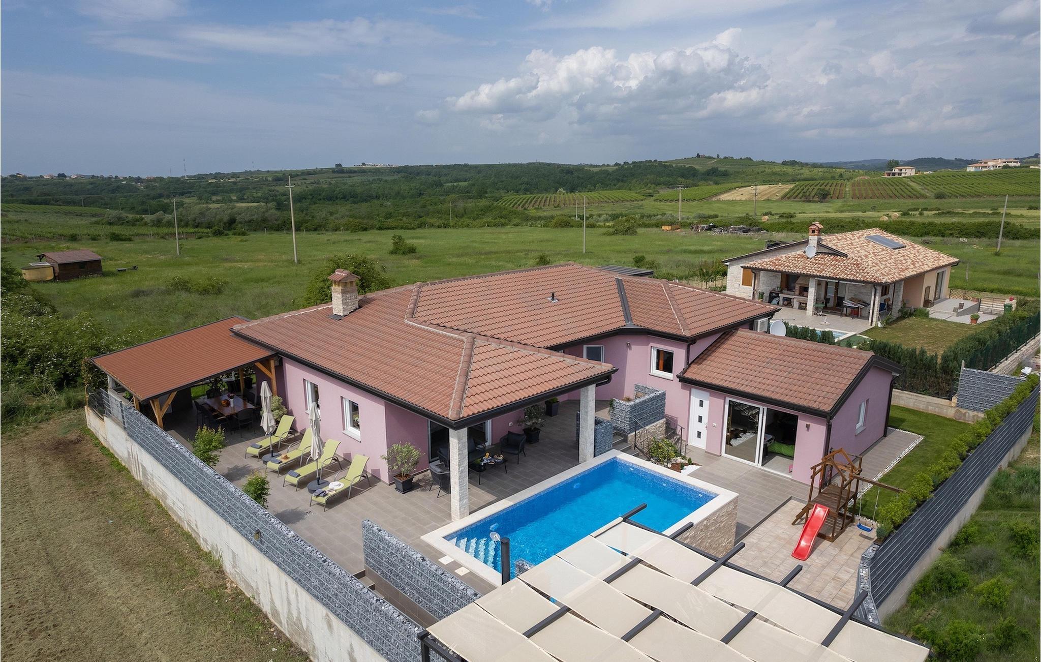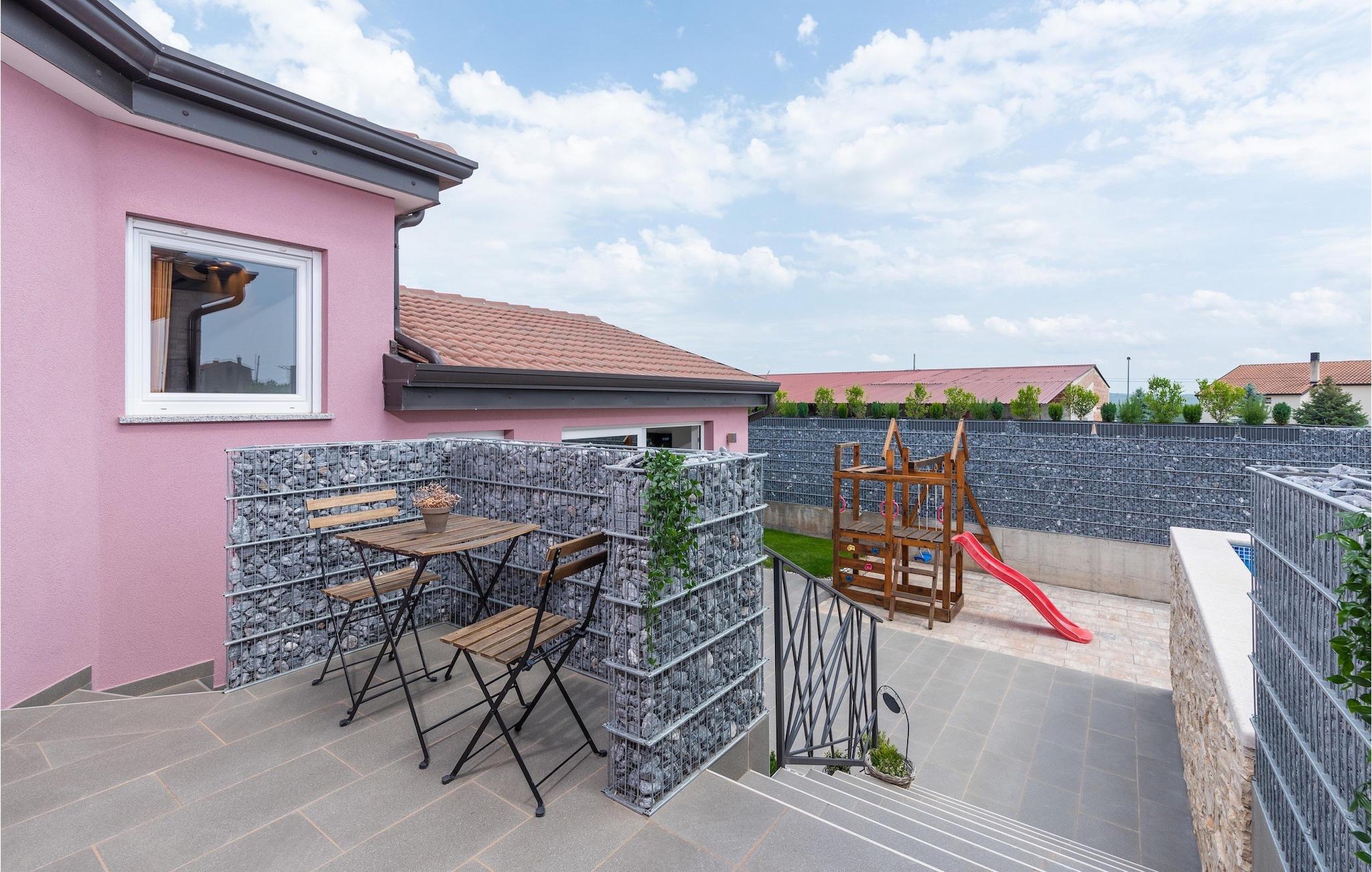 Die Villa verfügt über einen Kinderspielplatz, eigenen Fahrrädern, die den Gästen kostenlos zur Verfügung gestellt werden, und einem tollen Spielzimmer mit separatem Eingang. Während die kleinen Gäste spielen, können die restlichen Gäste ein erfrischendes Bad im Pool genießen oder auf einen der Liegestühle die Sonne Istriens genießen. Freunde des Grillens werden sich über die schöne Außenküche freuen. Dort können Sie die Augen über das unendliche Grün der Felder schweifen lassen, während sie ein schönes Gericht zubereiten. Der Essbereich auf der Terrasse bietet Platz für eine ganze Familie.