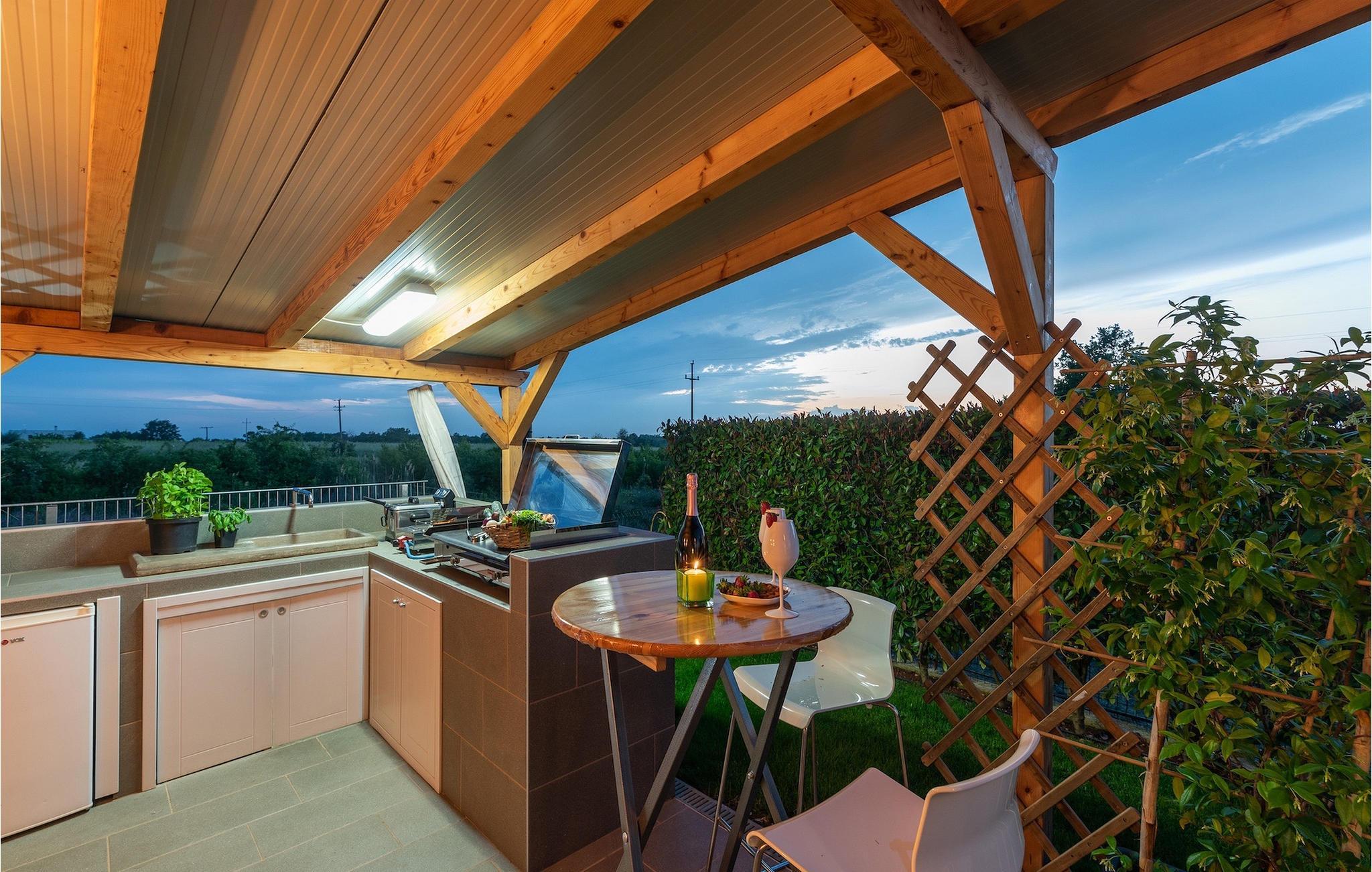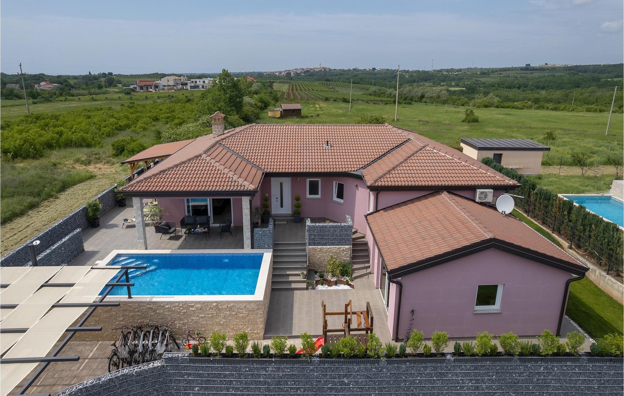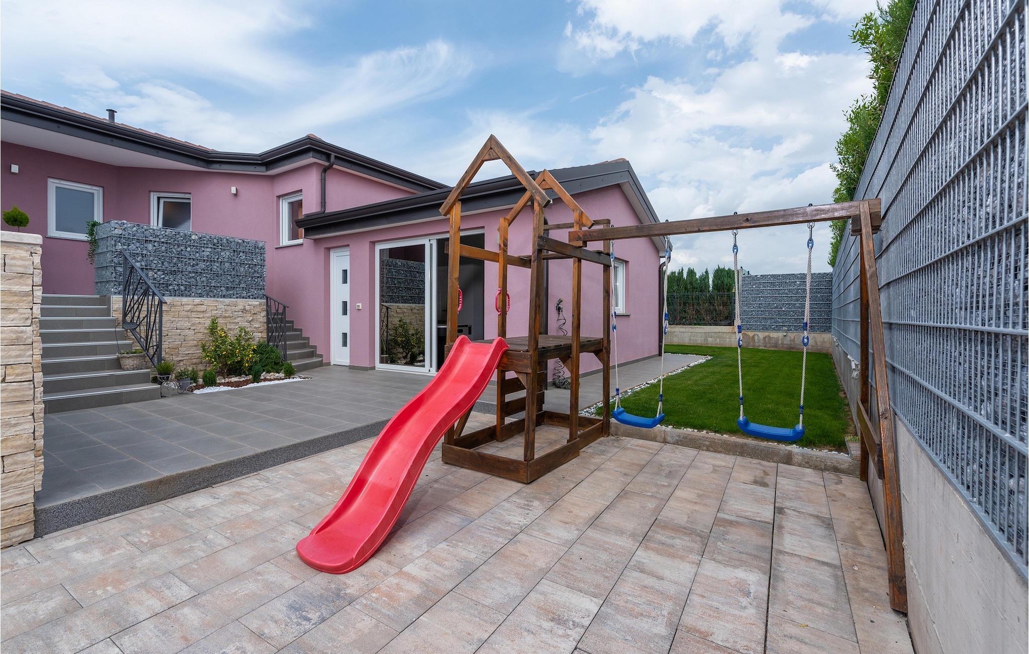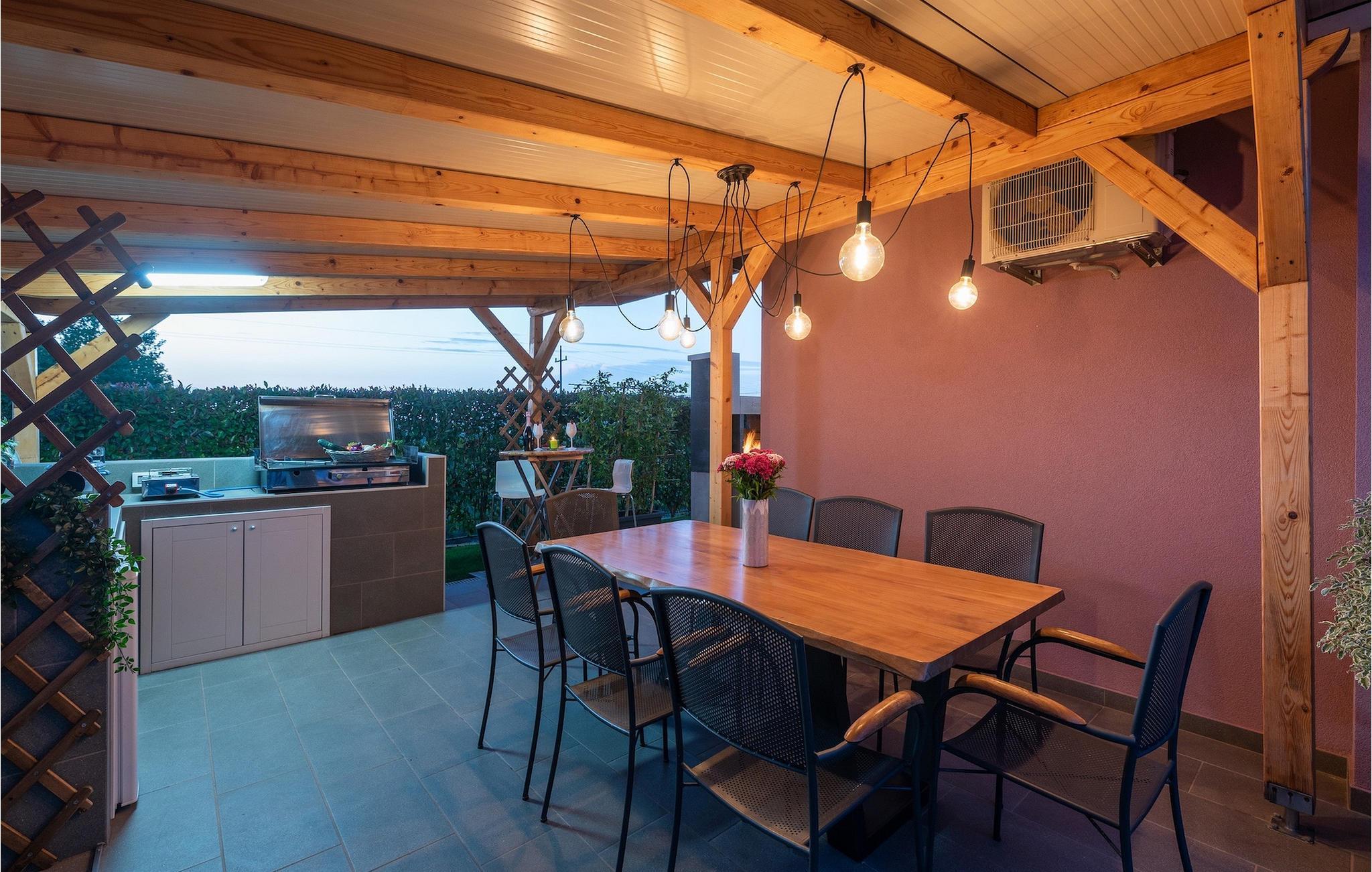 Die Villa verfügt über einen Kinderspielplatz, eigenen Fahrrädern, die den Gästen kostenlos zur Verfügung gestellt werden, und einem tollen Spielzimmer mit separatem Eingang. Während die kleinen Gäste spielen, können die restlichen Gäste ein erfrischendes Bad im Pool genießen oder auf einen der Liegestühle die Sonne Istriens genießen. Freunde des Grillens werden sich über die schöne Außenküche freuen. Dort können Sie die Augen über das unendliche Grün der Felder schweifen lassen, während sie ein schönes Gericht zubereiten. Der Essbereich auf der Terrasse bietet Platz für eine ganze Familie.