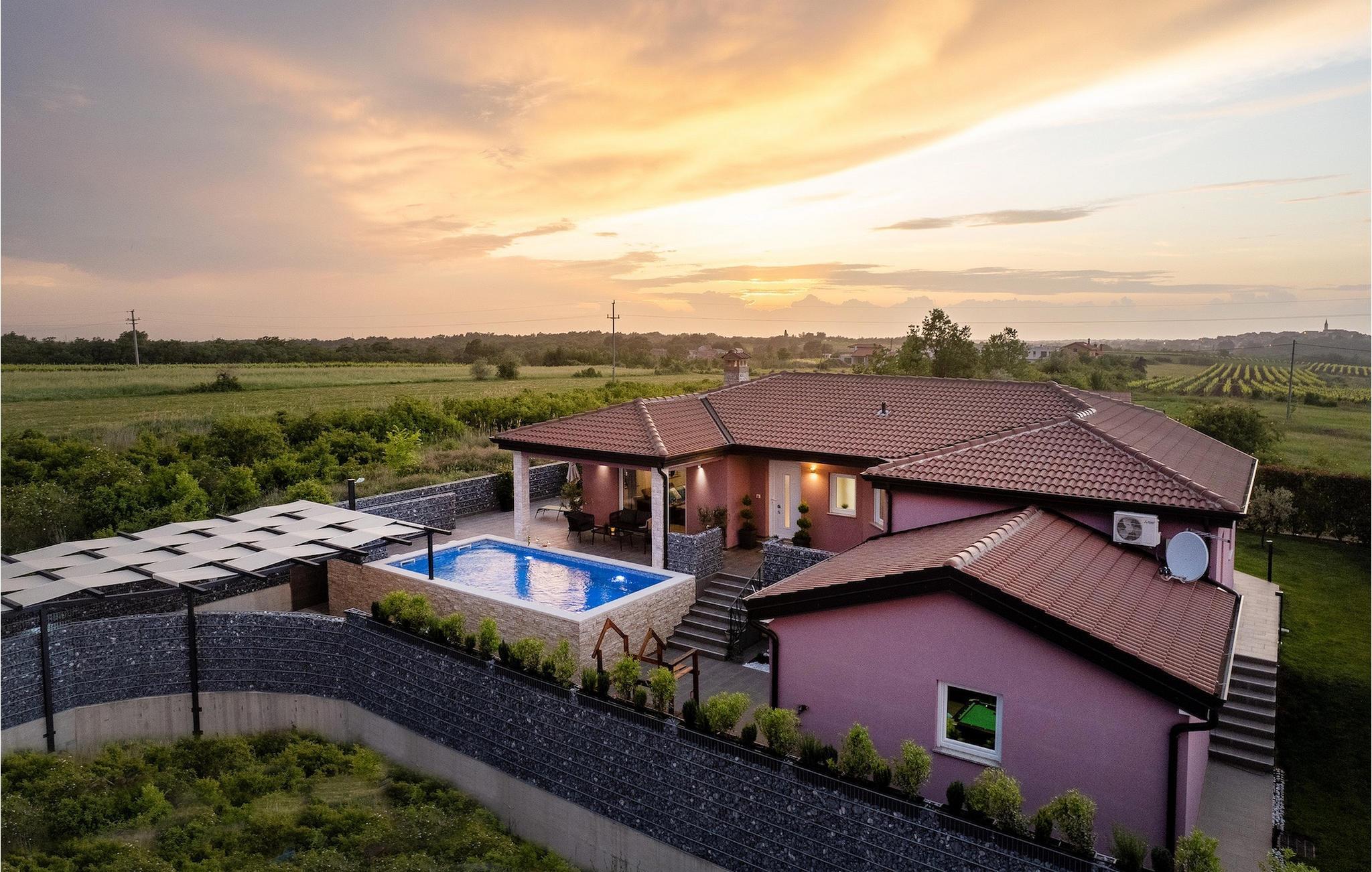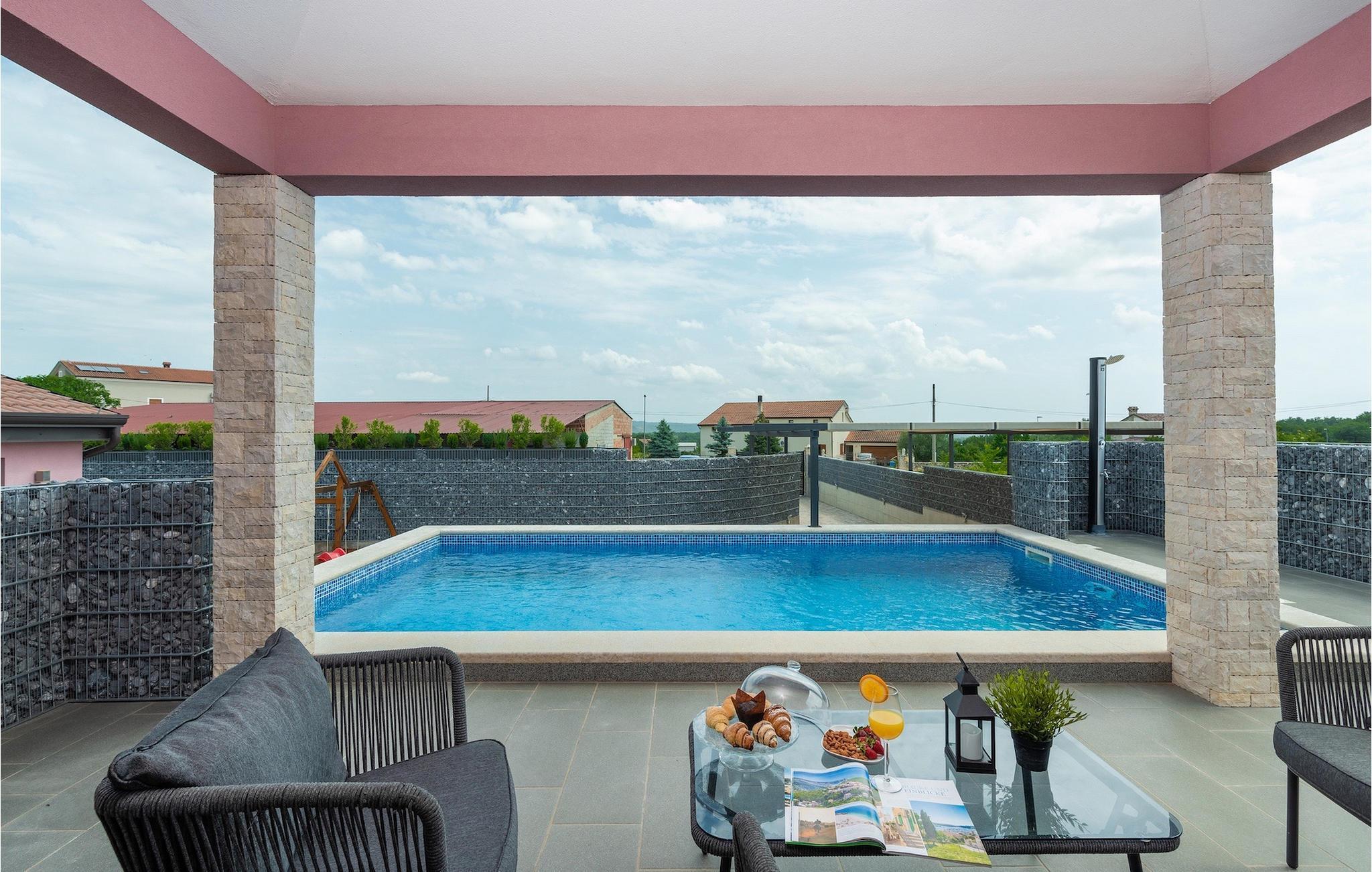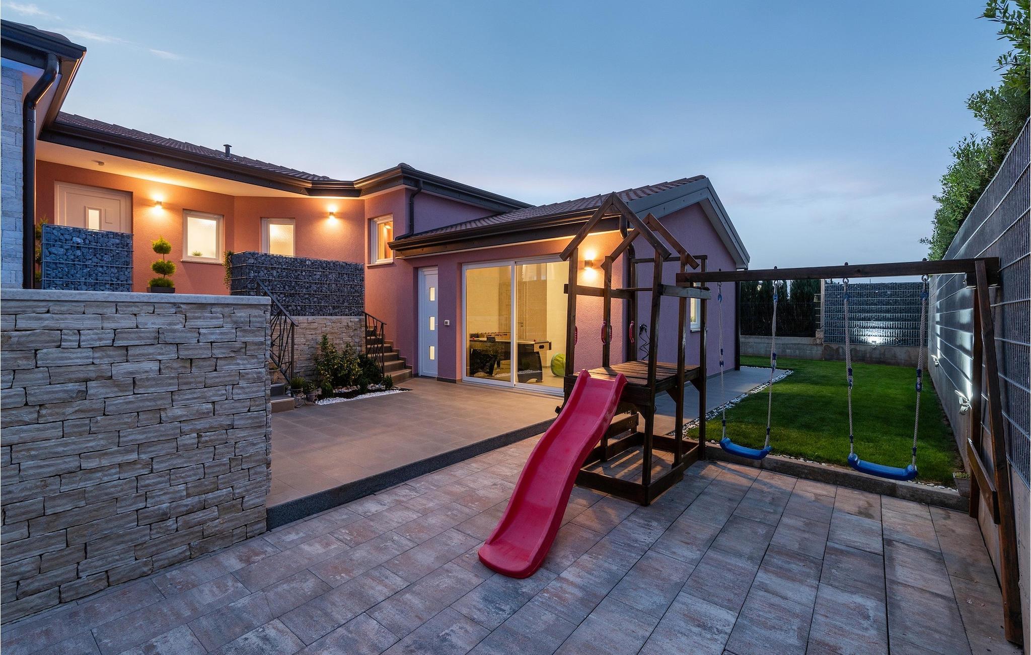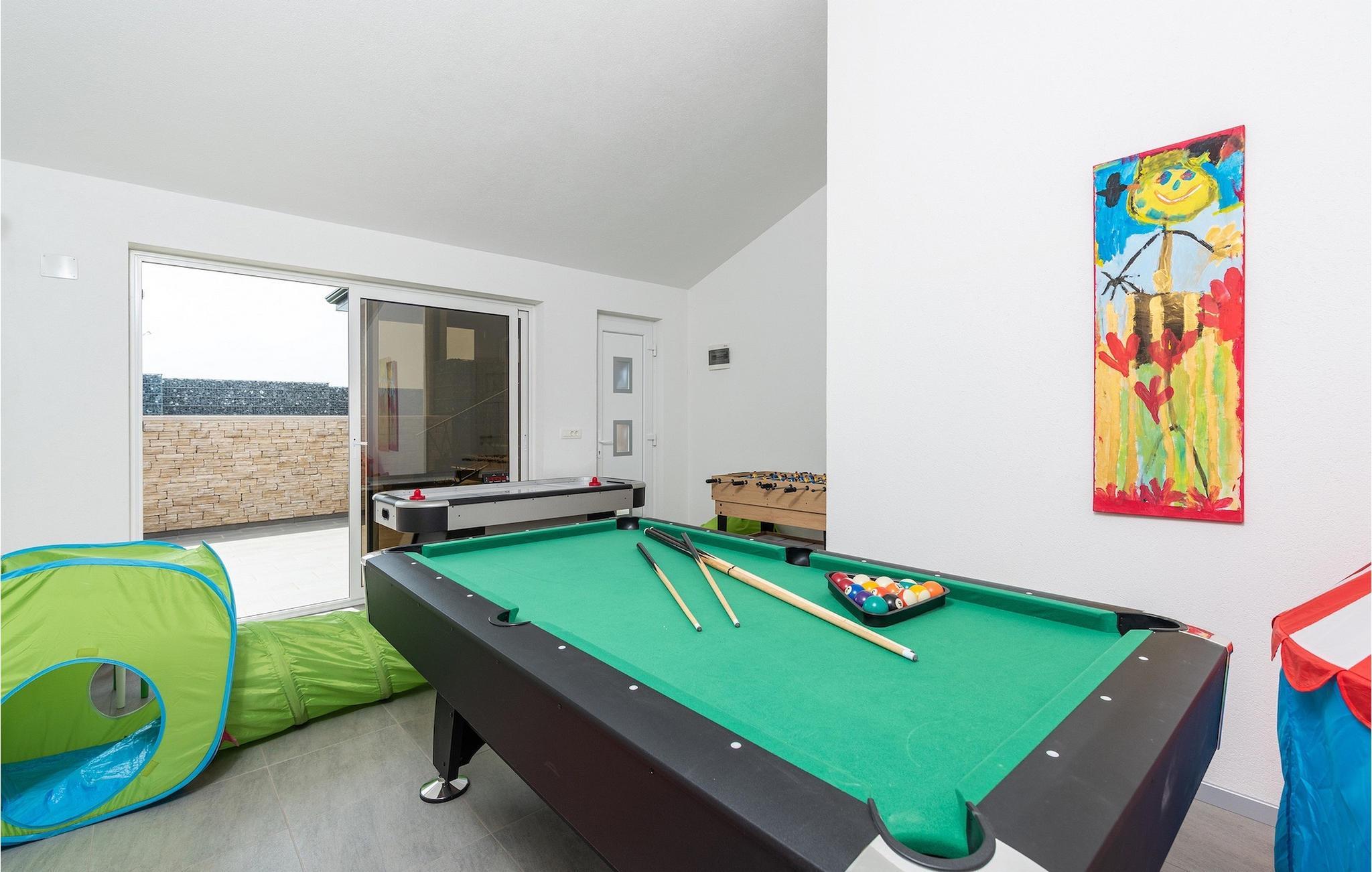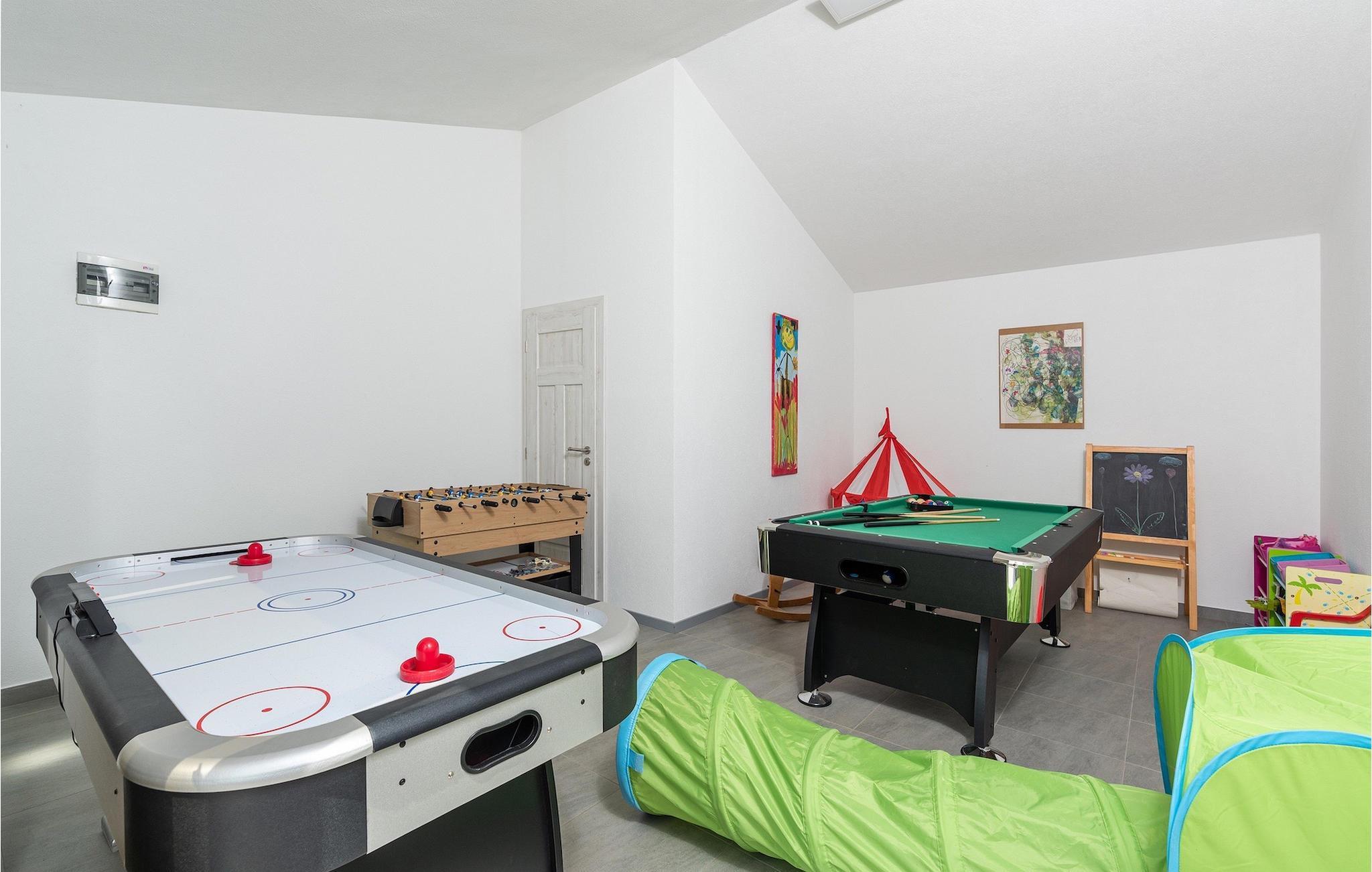 Die Villa verfügt über einen Kinderspielplatz, eigenen Fahrrädern, die den Gästen kostenlos zur Verfügung gestellt werden, und einem tollen Spielzimmer mit separatem Eingang. Während die kleinen Gäste spielen, können die restlichen Gäste ein erfrischendes Bad im Pool genießen oder auf einen der Liegestühle die Sonne Istriens genießen. Freunde des Grillens werden sich über die schöne Außenküche freuen. Dort können Sie die Augen über das unendliche Grün der Felder schweifen lassen, während sie ein schönes Gericht zubereiten. Der Essbereich auf der Terrasse bietet Platz für eine ganze Familie.