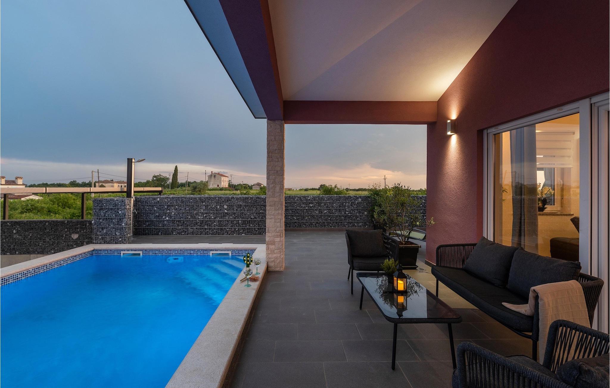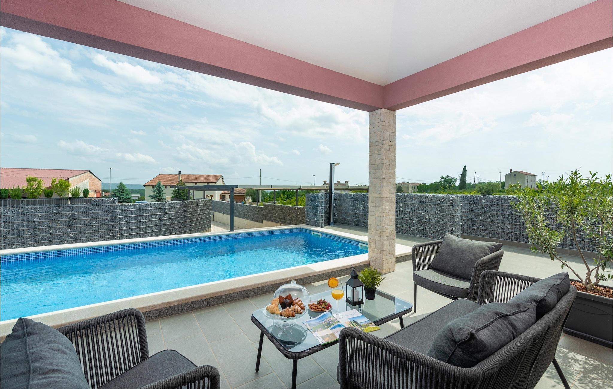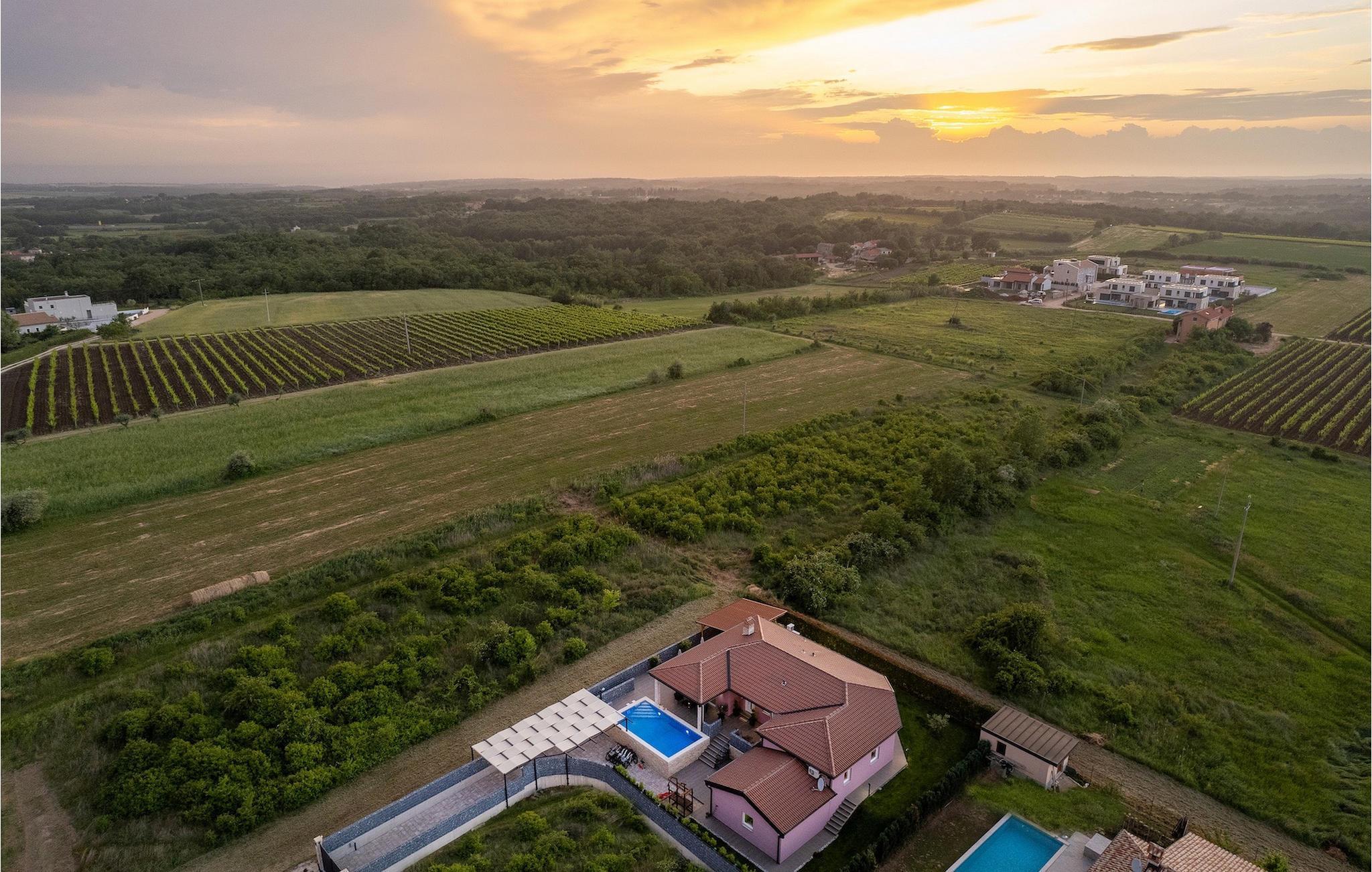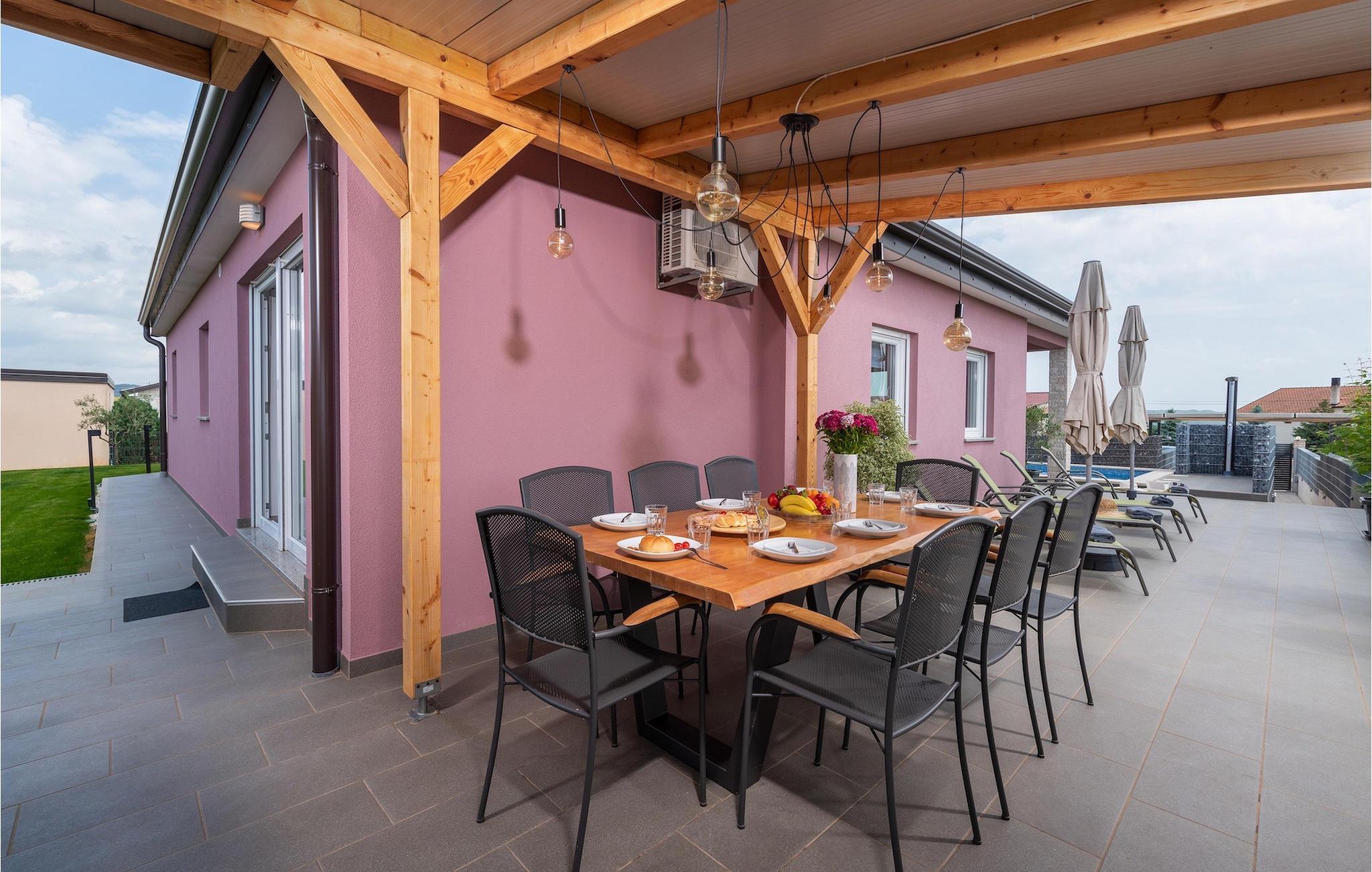 Die Villa verfügt über einen Kinderspielplatz, eigenen Fahrrädern, die den Gästen kostenlos zur Verfügung gestellt werden, und einem tollen Spielzimmer mit separatem Eingang. Während die kleinen Gäste spielen, können die restlichen Gäste ein erfrischendes Bad im Pool genießen oder auf einen der Liegestühle die Sonne Istriens genießen. Freunde des Grillens werden sich über die schöne Außenküche freuen. Dort können Sie die Augen über das unendliche Grün der Felder schweifen lassen, während sie ein schönes Gericht zubereiten. Der Essbereich auf der Terrasse bietet Platz für eine ganze Familie.