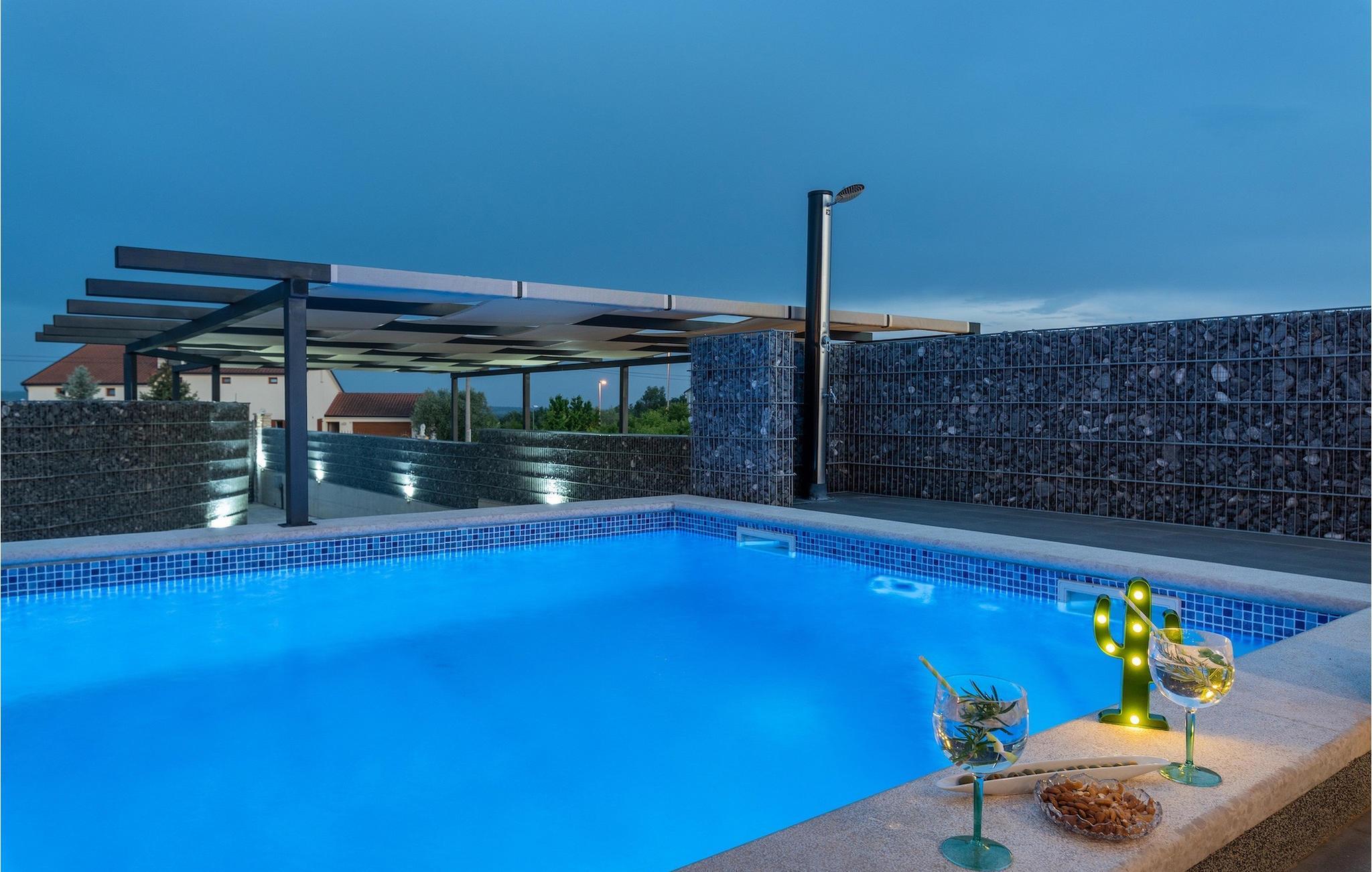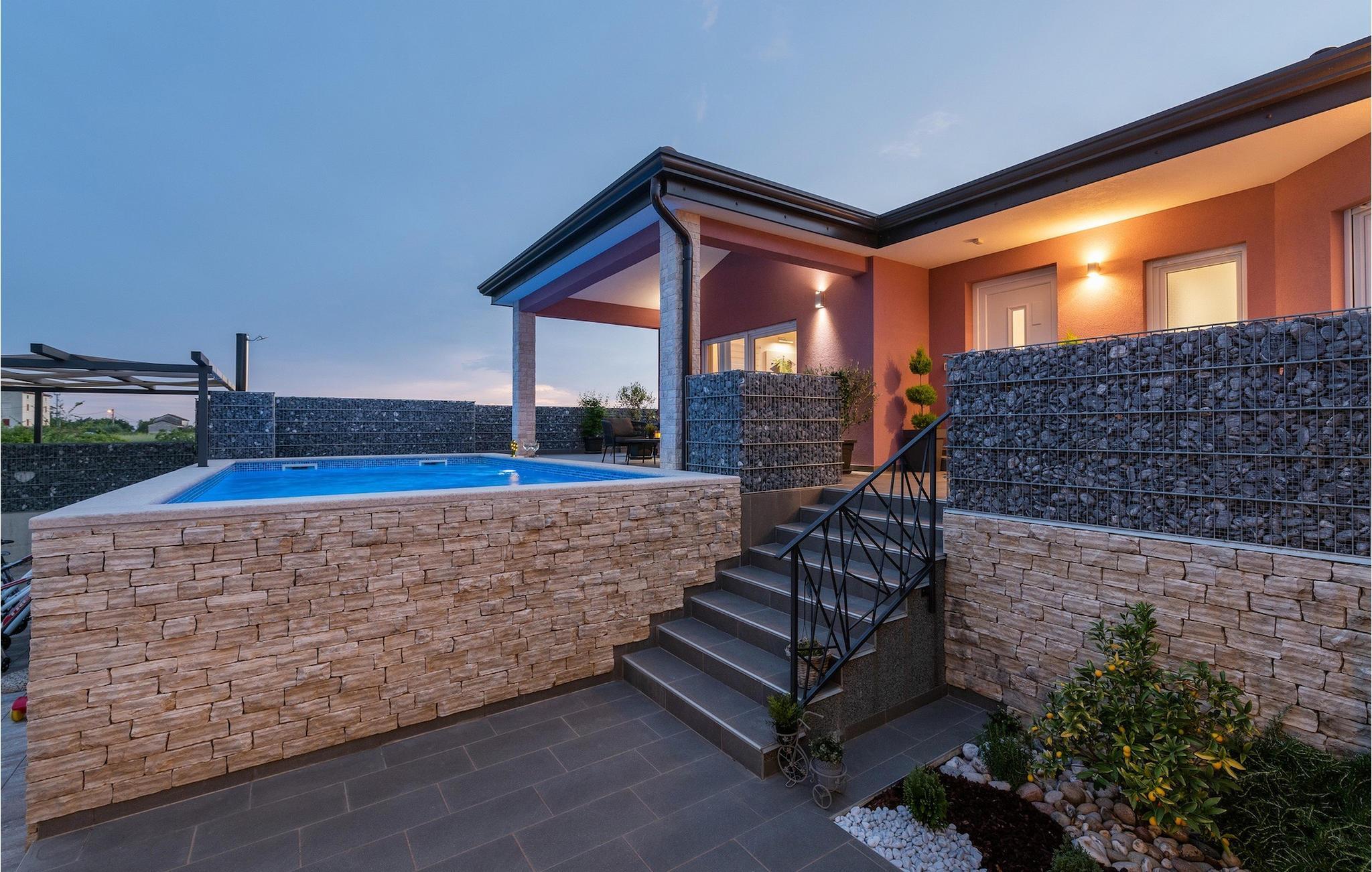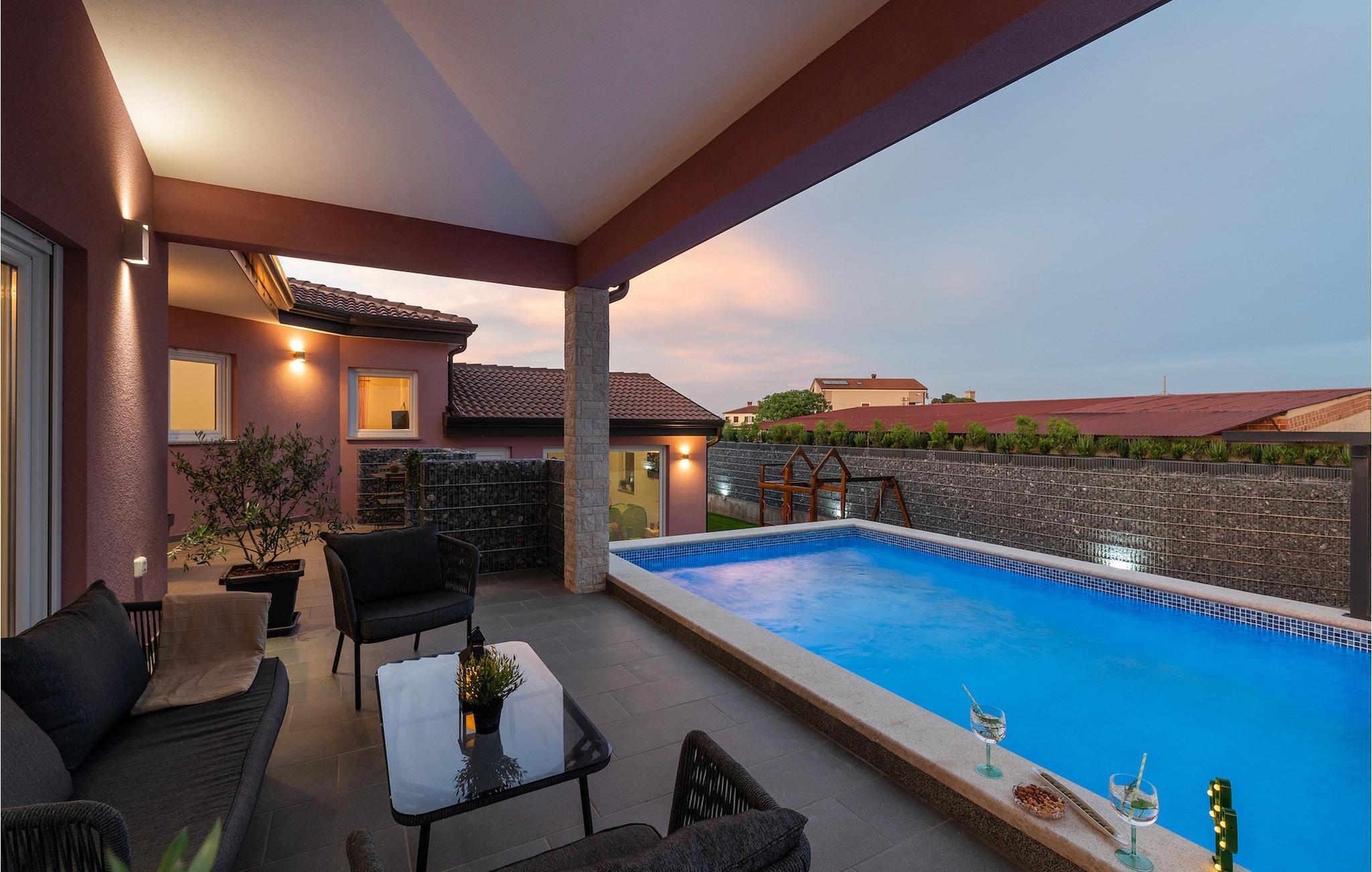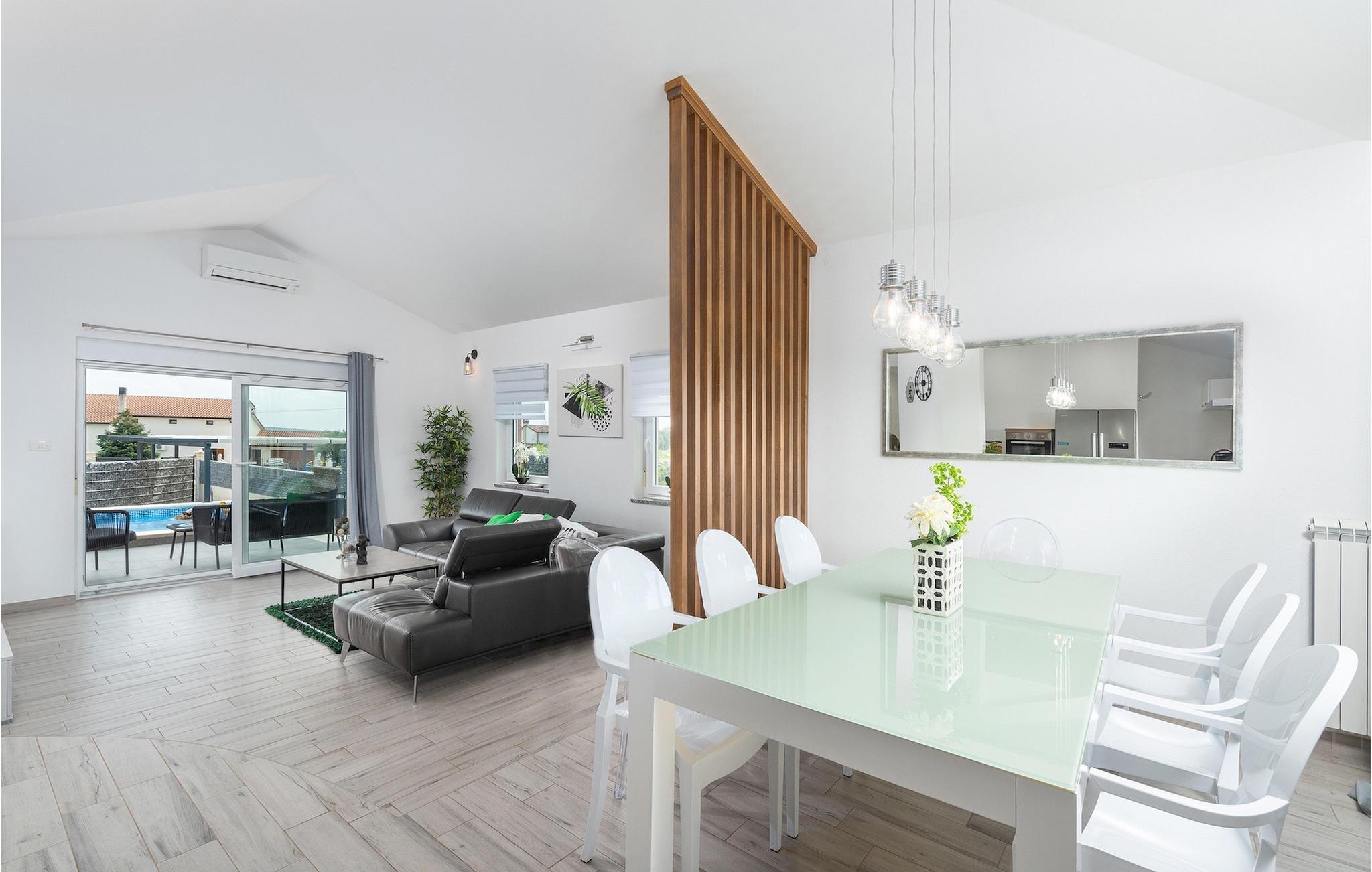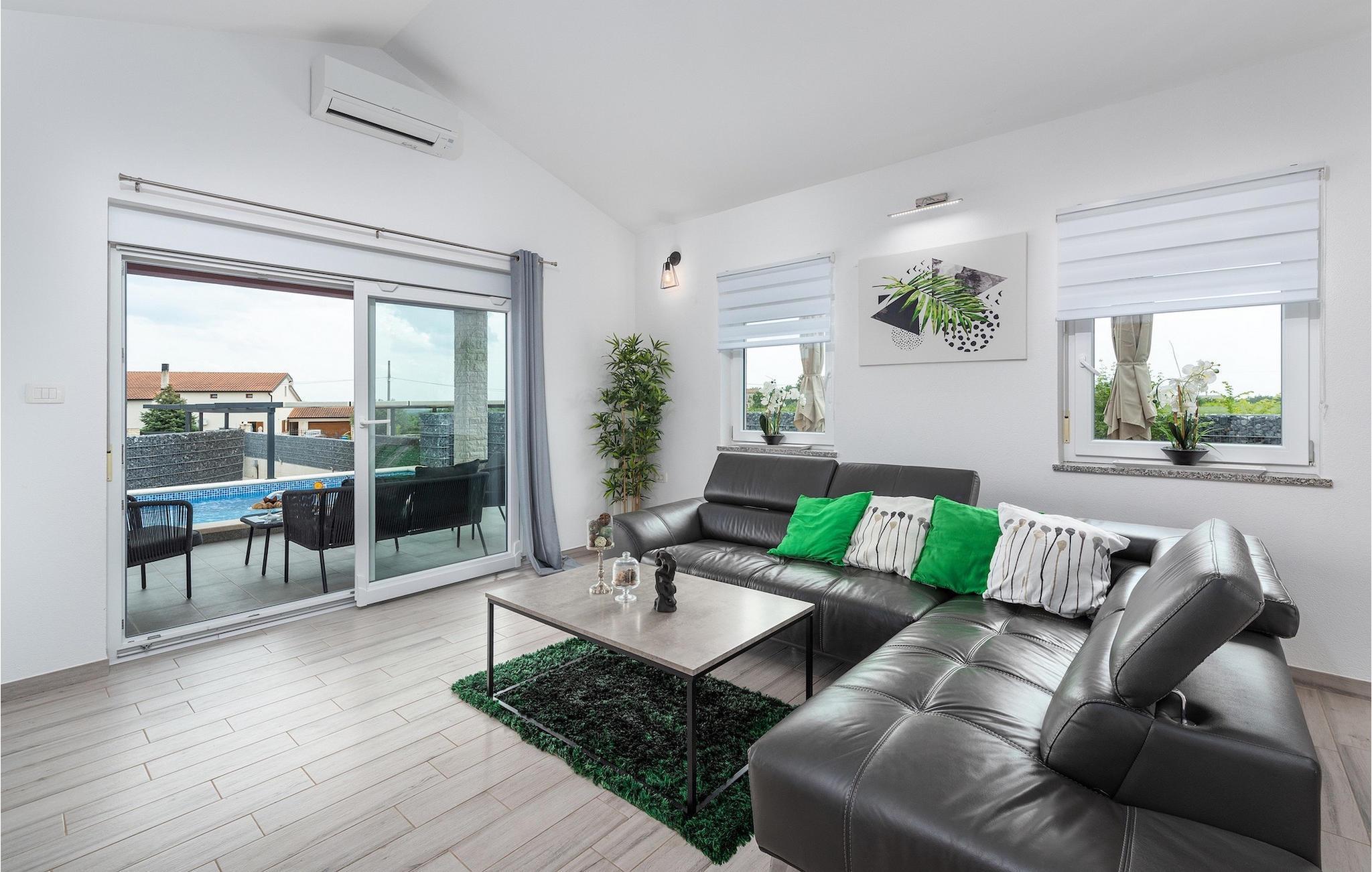 Die Villa verfügt über einen Kinderspielplatz, eigenen Fahrrädern, die den Gästen kostenlos zur Verfügung gestellt werden, und einem tollen Spielzimmer mit separatem Eingang. Während die kleinen Gäste spielen, können die restlichen Gäste ein erfrischendes Bad im Pool genießen oder auf einen der Liegestühle die Sonne Istriens genießen. Freunde des Grillens werden sich über die schöne Außenküche freuen. Dort können Sie die Augen über das unendliche Grün der Felder schweifen lassen, während sie ein schönes Gericht zubereiten. Der Essbereich auf der Terrasse bietet Platz für eine ganze Familie.