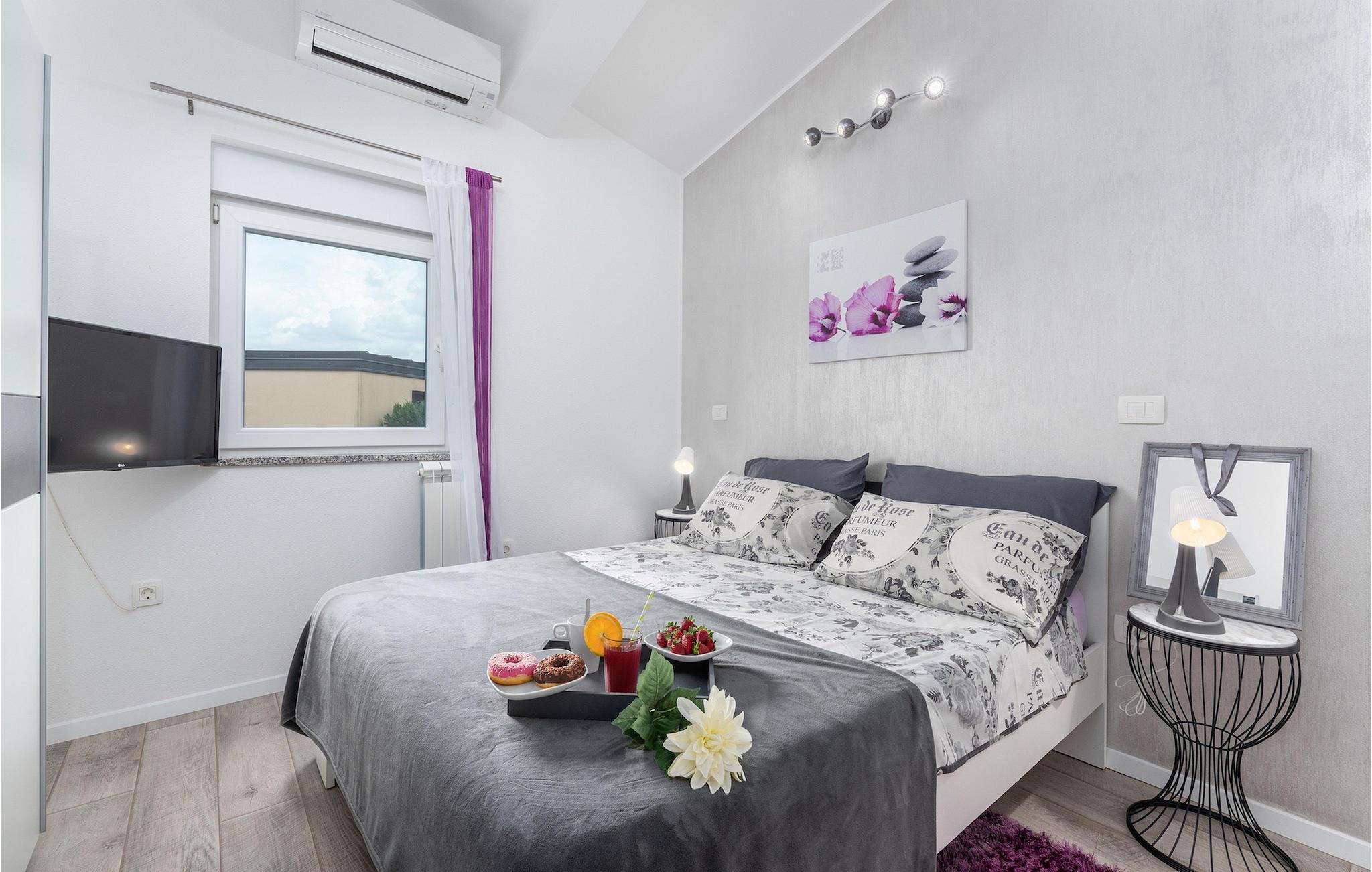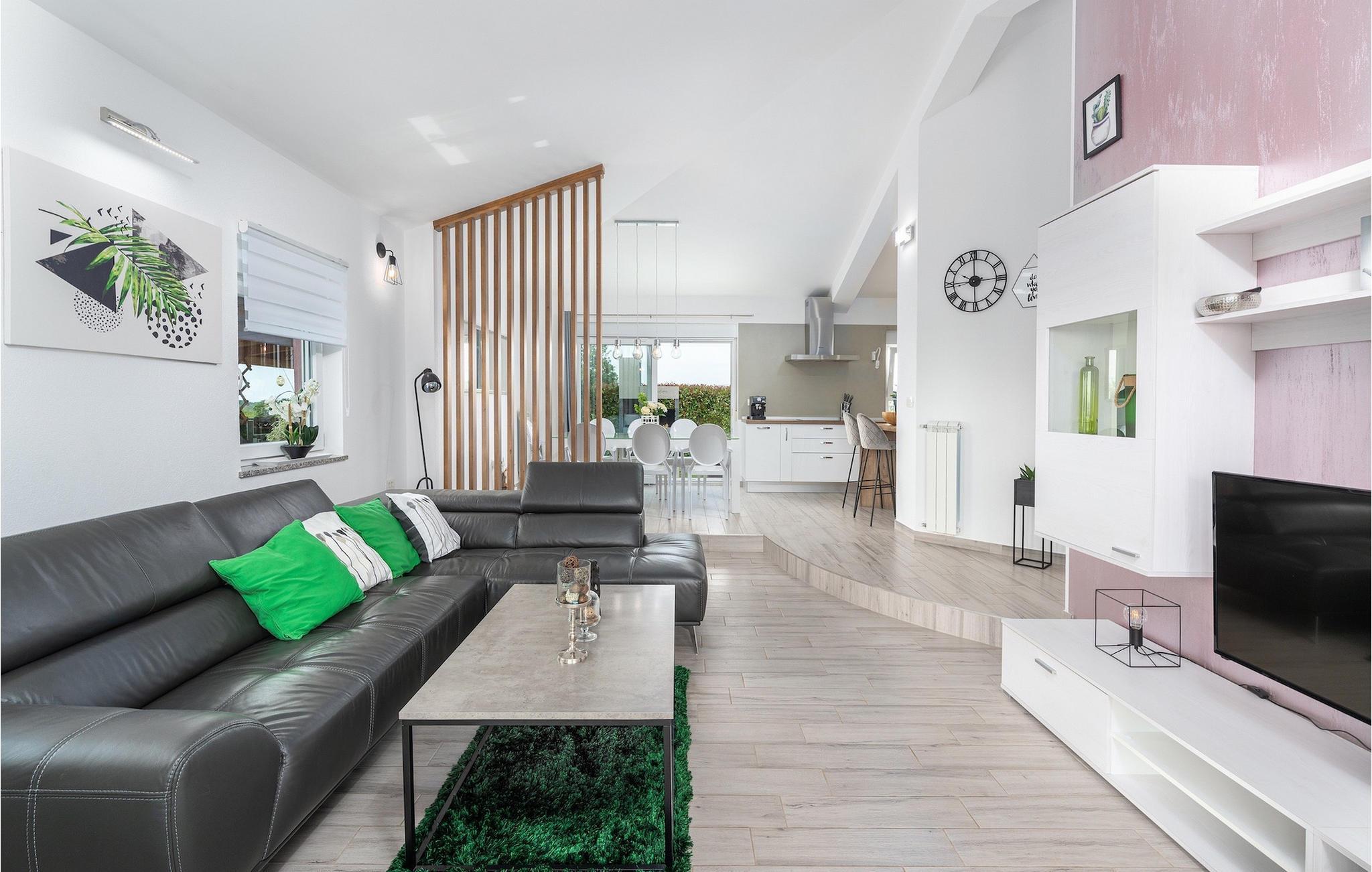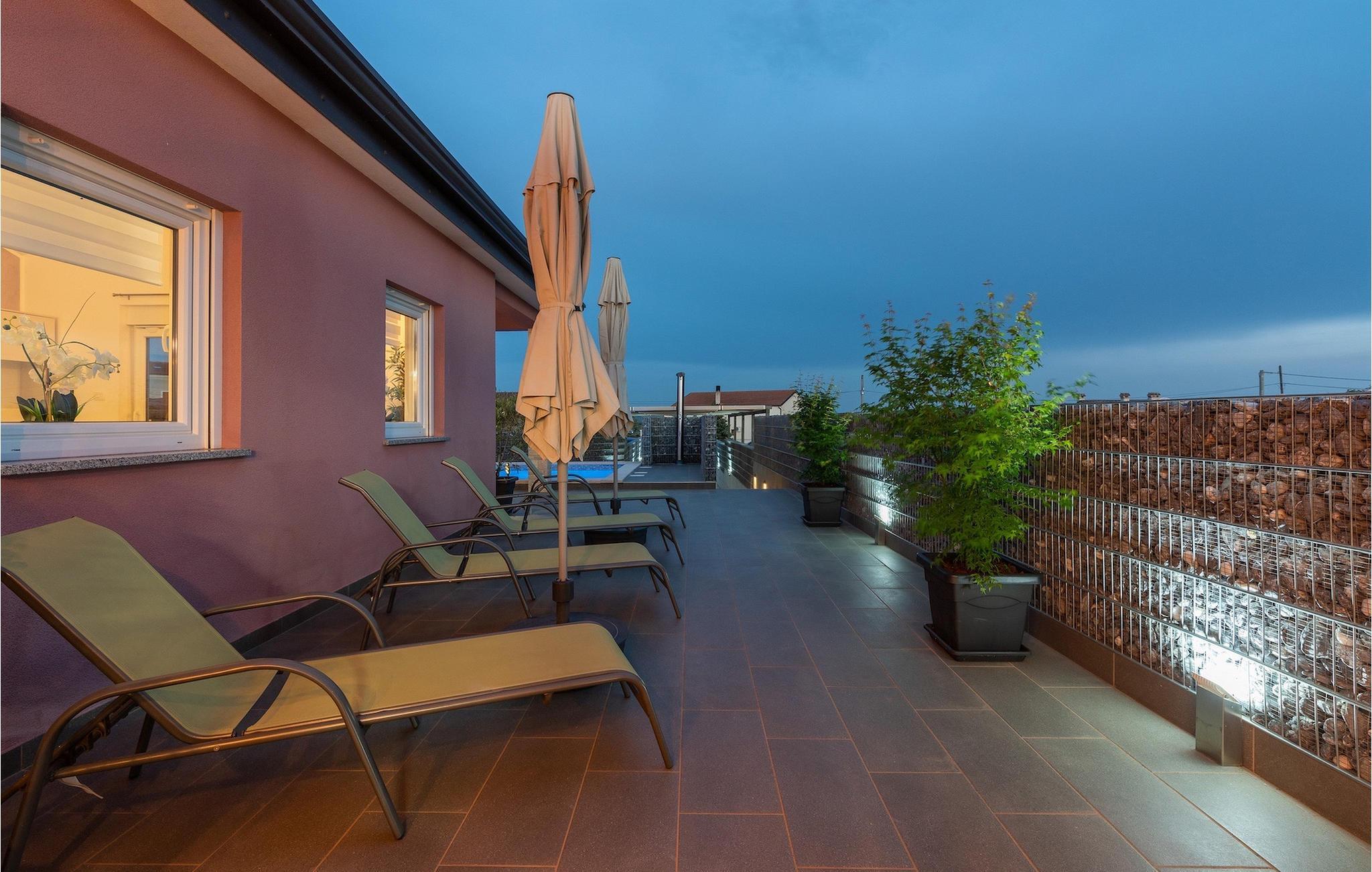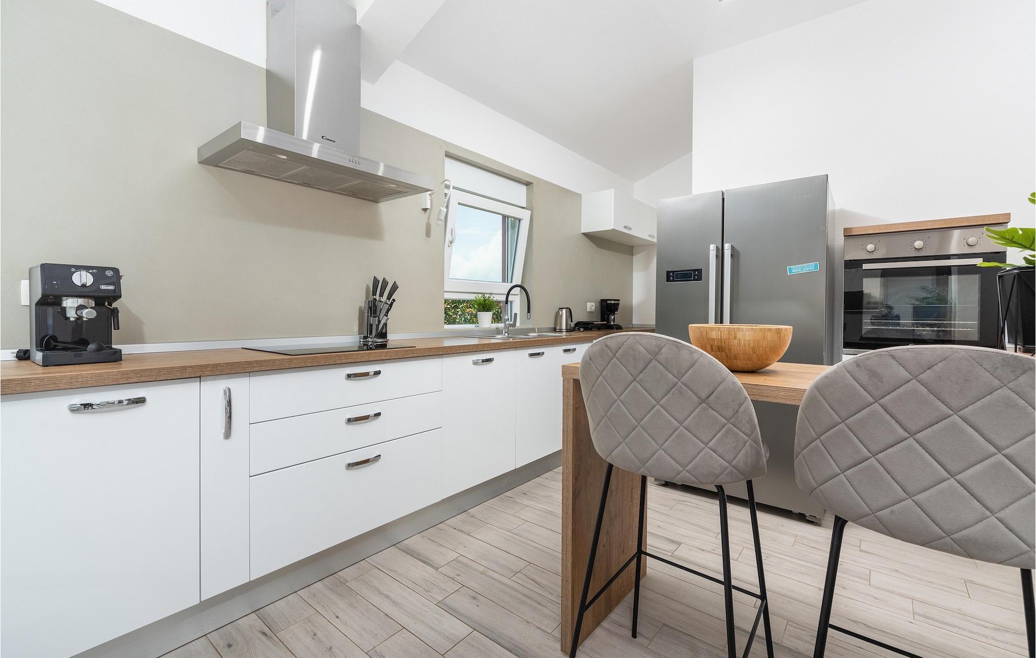 Das Innere der Villa überzeugt mit schlichter Eleganz. Alle Räume befinden sich auf einer Ebene - sehr praktisch, besonders wenn auch Kinder unter den Gästen sind. Vom Flur gelangen sie in die geräumige und helle Wohnküche, die zum Verweilen einlädt. Sie ist mit der Terrasse sowie dem Garten des Hauses verbunden. Die Küche bietet neben einer umfangreichen Ausstattung viel Platz für gemeinsames Kochen. Ruhe finden sie auf insgesamt 3 Schlafzimmern, wovon eines ein eigenes Badezimmer besitzt. Ein weiteres Badezimmer und eine Gästetoilette stehen den Gästen zur Verfügung. Villa Elorea ist klimatisiert, verfügt über WLAN und zwei privaten Parkplätzen. Sie nur eine kurze Autofahrt von den schönen Stränden Novigrads entfernt und bietet alles für einen erholsamen Urlaub im Westen Istriens, fern vom touristischen Trouble.Auch wenn Novigrad sich in ein beliebtes Touristenziel entwickelt hat, so hat es sich immer noch den unwiderstehlichen Reiz eines typischen, ruhigen mediterranen Fischerdorfes erhalten. Seine sanften Ufer umspült das Meer reich an Fischen, und die wunderschöne Natur wird vom angenehmen Mittelmeerklima verwöhnt. Entzückende enge Gassen bieten alte Kirchen, ehrwürdige Paläste, herrliche Stadtmauern und zahlreiche andere Kostbarkeiten, die sorgsam erhalten sind, als eine dauernde Erinnerung an eine reiche und turbulente Vergangenheit. Novigrad ist nicht nur ein architektonisches Schmuckstück, sondern auch eines der bekanntesten Gourmetziele der Region, mit einigen der besten Fischrestaurants in Istrien. Sie können eine sehr breite Auswahl an sportlichen Aktivitäten genießen, sich auf zahlreichen Stränden entspannen oder in Cafés und Cocktailbars rund um die Stadt unterhalten. Es gibt auch mehr! Erleben Sie puren Spaß im hervorragenden Aquapark Istralandia. Besuchen Sie das ornithologische Reservat Antenal-Mirna und beobachten Sie in wundervoller Natur die Vögel. Erkunden Sie die zahlreichen Radwege, die durch die schönsten Landschaften Istriens verlaufen. Entdecken Sie die Wein- und Olivenölpfade und kosten Sie die wertvollsten Produkte der istrischen Landwirtschaft. Machen Sie einen Tagesausflug und entdecken Sie die Schönheit der mittelalterlichen Städtchen im Inneren von Istrien oder machen Sie einen Bootsausflug und besuchen Sie die bekannten Städte an der westlichen Küste Istriens.