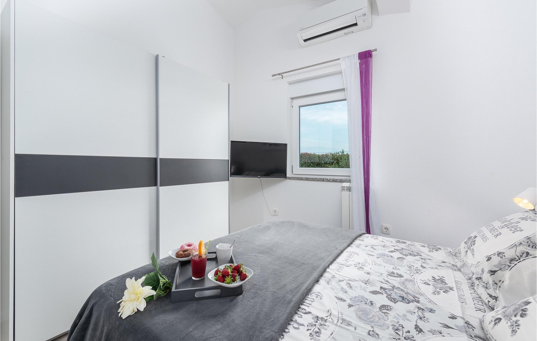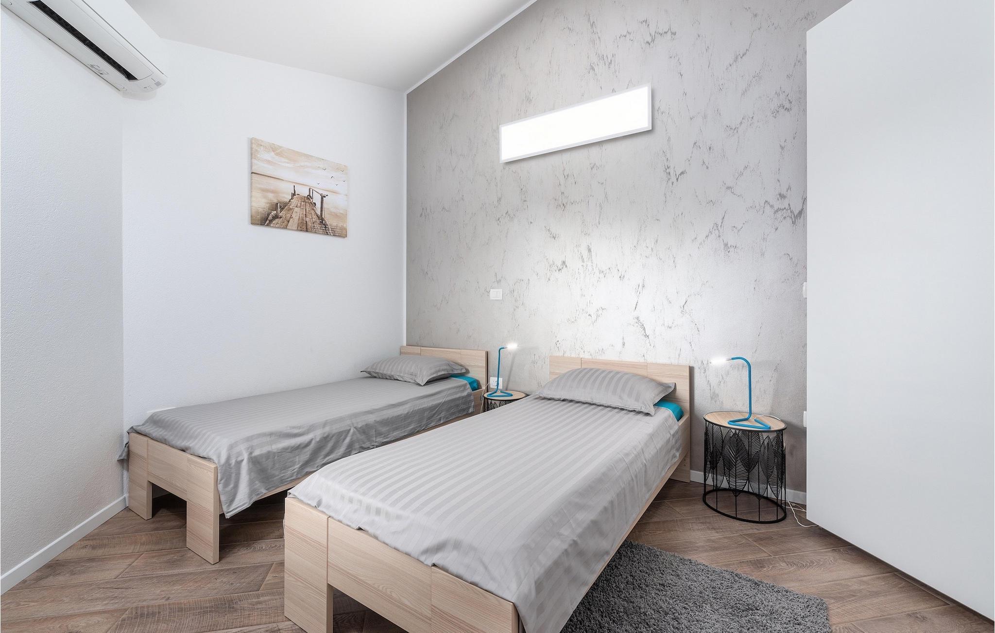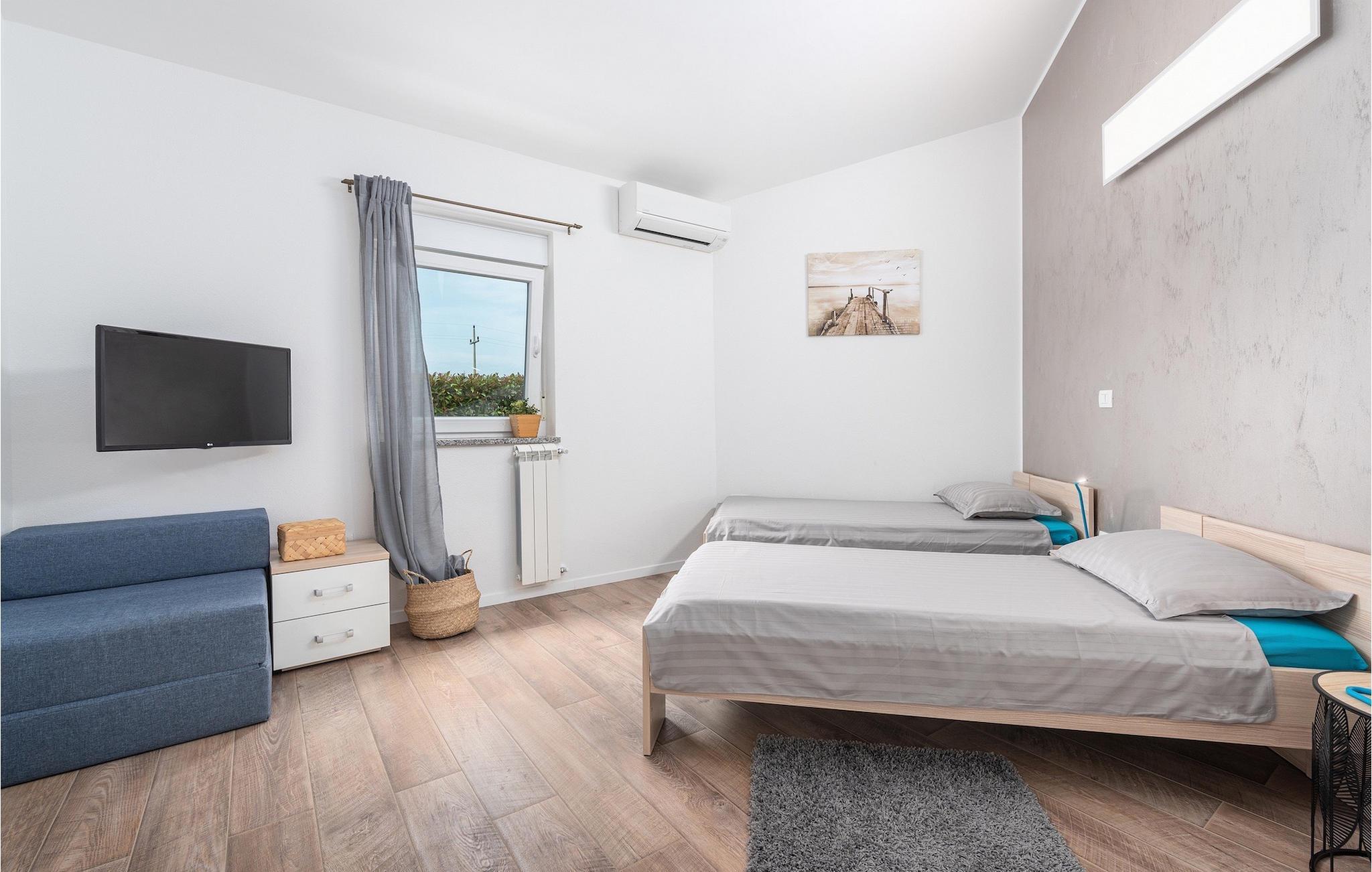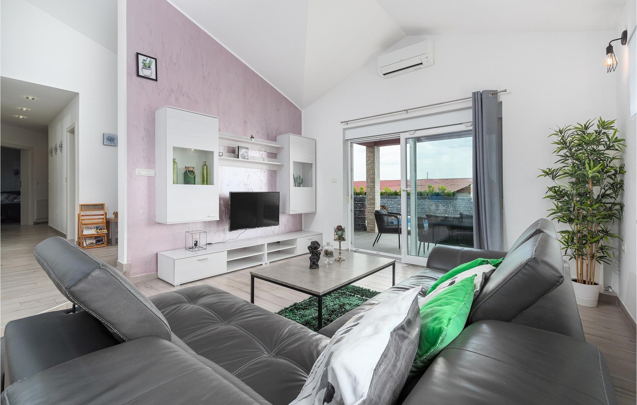 Das Innere der Villa überzeugt mit schlichter Eleganz. Alle Räume befinden sich auf einer Ebene - sehr praktisch, besonders wenn auch Kinder unter den Gästen sind. Vom Flur gelangen sie in die geräumige und helle Wohnküche, die zum Verweilen einlädt. Sie ist mit der Terrasse sowie dem Garten des Hauses verbunden. Die Küche bietet neben einer umfangreichen Ausstattung viel Platz für gemeinsames Kochen. Ruhe finden sie auf insgesamt 3 Schlafzimmern, wovon eines ein eigenes Badezimmer besitzt. Ein weiteres Badezimmer und eine Gästetoilette stehen den Gästen zur Verfügung. Villa Elorea ist klimatisiert, verfügt über WLAN und zwei privaten Parkplätzen. Sie nur eine kurze Autofahrt von den schönen Stränden Novigrads entfernt und bietet alles für einen erholsamen Urlaub im Westen Istriens, fern vom touristischen Trouble.Auch wenn Novigrad sich in ein beliebtes Touristenziel entwickelt hat, so hat es sich immer noch den unwiderstehlichen Reiz eines typischen, ruhigen mediterranen Fischerdorfes erhalten. Seine sanften Ufer umspült das Meer reich an Fischen, und die wunderschöne Natur wird vom angenehmen Mittelmeerklima verwöhnt. Entzückende enge Gassen bieten alte Kirchen, ehrwürdige Paläste, herrliche Stadtmauern und zahlreiche andere Kostbarkeiten, die sorgsam erhalten sind, als eine dauernde Erinnerung an eine reiche und turbulente Vergangenheit. Novigrad ist nicht nur ein architektonisches Schmuckstück, sondern auch eines der bekanntesten Gourmetziele der Region, mit einigen der besten Fischrestaurants in Istrien. Sie können eine sehr breite Auswahl an sportlichen Aktivitäten genießen, sich auf zahlreichen Stränden entspannen oder in Cafés und Cocktailbars rund um die Stadt unterhalten. Es gibt auch mehr! Erleben Sie puren Spaß im hervorragenden Aquapark Istralandia. Besuchen Sie das ornithologische Reservat Antenal-Mirna und beobachten Sie in wundervoller Natur die Vögel. Erkunden Sie die zahlreichen Radwege, die durch die schönsten Landschaften Istriens verlaufen. Entdecken Sie die Wein- und Olivenölpfade und kosten Sie die wertvollsten Produkte der istrischen Landwirtschaft. Machen Sie einen Tagesausflug und entdecken Sie die Schönheit der mittelalterlichen Städtchen im Inneren von Istrien oder machen Sie einen Bootsausflug und besuchen Sie die bekannten Städte an der westlichen Küste Istriens.
