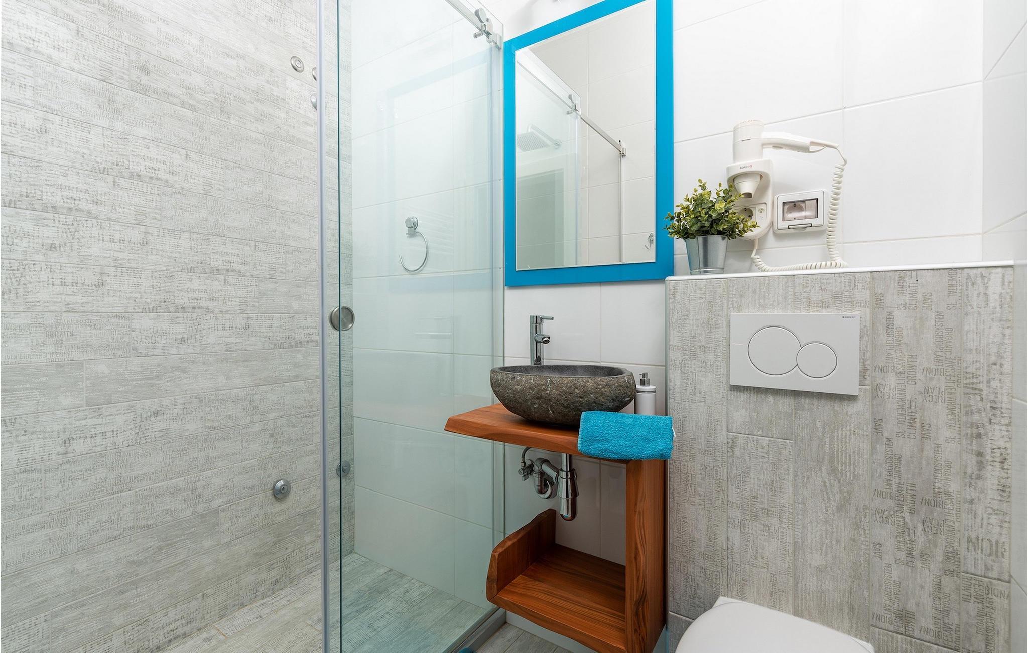 Badezimmer (nr. 2) - WC. Warmes und kaltes Wasser. Dusche