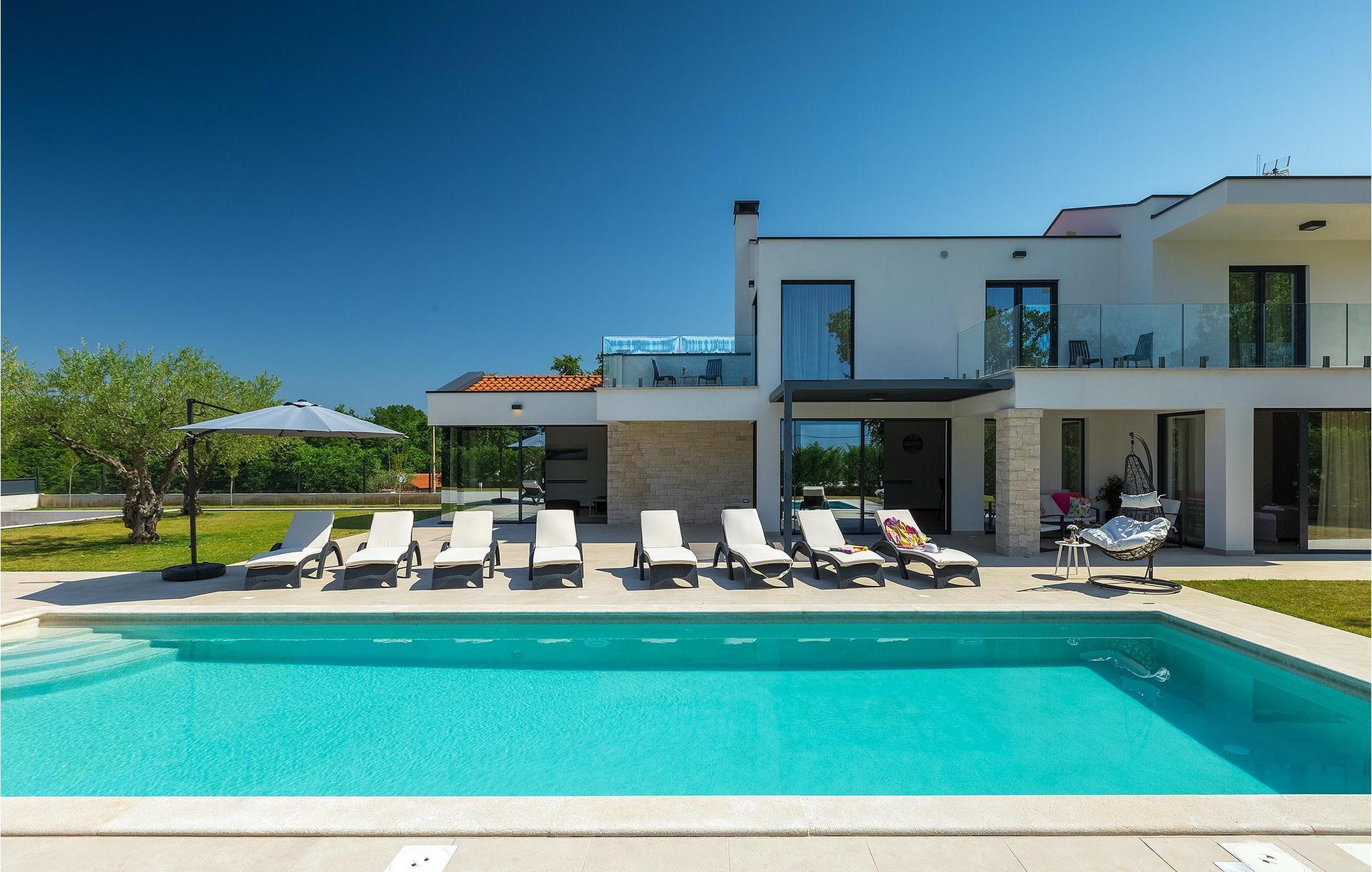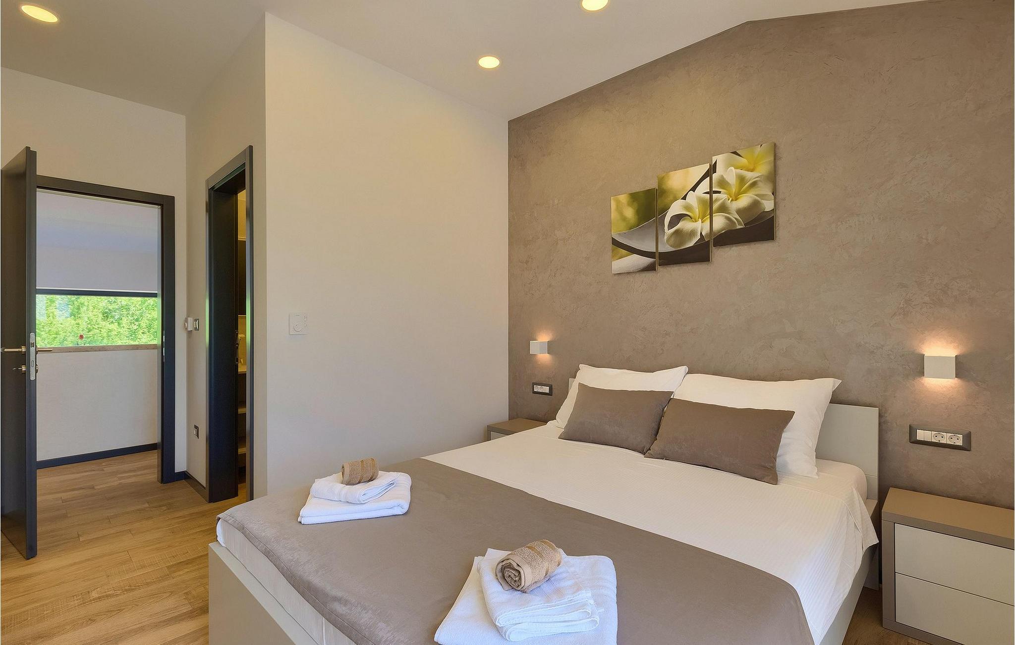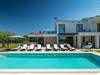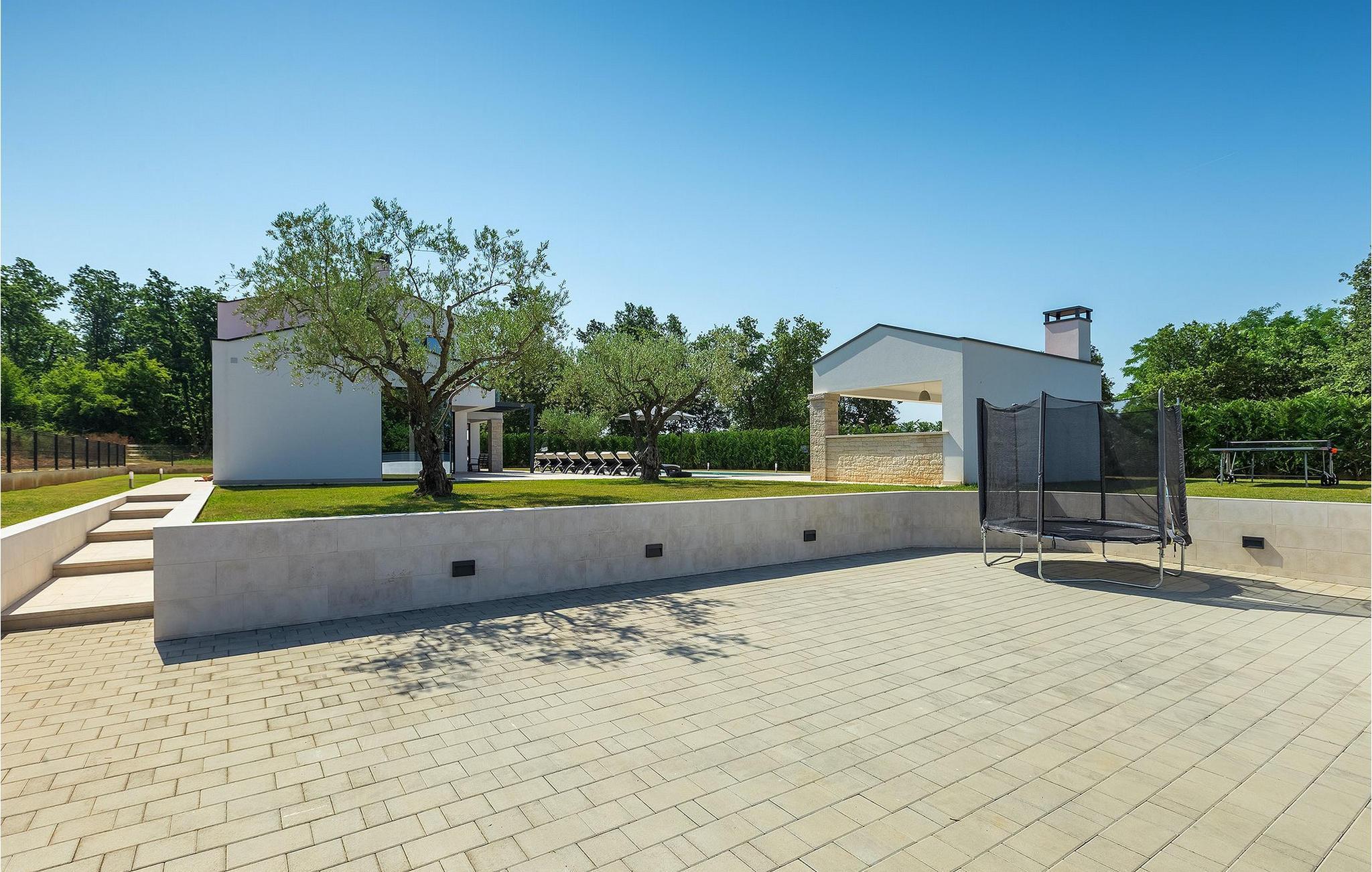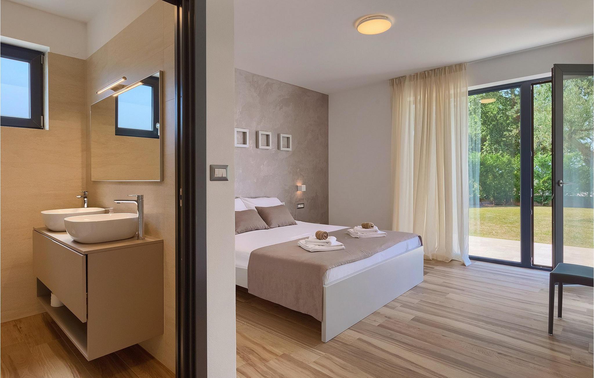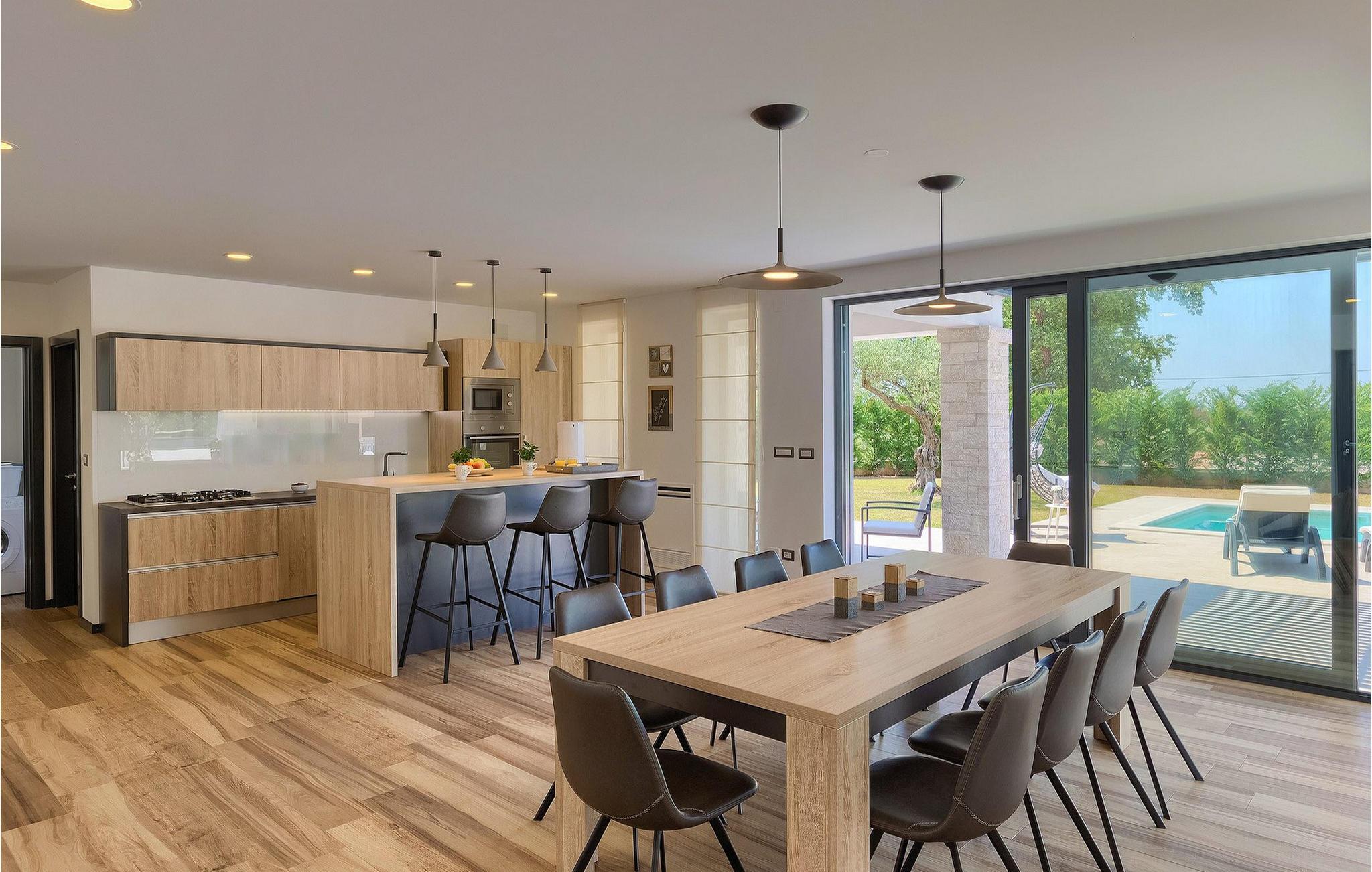 Villa Silvia ist eine elegante, komfortable Villa, gelegen in der Nähe von einem der beliebtesten touristischen Urlaubsdestinationen in Istrien - der schönen Stadt Porec. Die Villa verfügt über 4 Schlafzimmer und kann bis zu 10 Personen beherbergen. Im Erdgeschoss finden Sie ein geräumiges und elegantes Wohnzimmer verbunden mit dem Essbereich und einer völlig ausgestatteten Küche mit Frühstücksbar vor. Auf dieser Etage befinden sich auch ein Schlafzimmer mit en-suite Badezimmer, ein Wäscheraum und ein Gäste-WC. Die anderen 3 lichtdurchfluteten und gemütlichen Schlafzimmer befinden sich auf der oberen Etage. Sie sind alle mit einem Doppelbett ausgestattet und verfügen über ein eigenes Badezimmer. Zwei der Schlafzimmer im Obergeschoss teilen sich eine Terrasse, während ein Schlafzimmer eine eigene Terrasse hat. Von den Terrassen erstreckt sich ein schöner Ausblick auf den Pool und die Umgebung. Vom Wohn- / Essbereich haben Sie direkten Zugang zum 45 m2 großen privaten Pool. Der Außenbereich verfügt auch über eine Sommerküche mit Grill und einen Essbereich, wo sie einen entspannten Sommerabend mit lokalen Köstlichkeiten genießen können. Der gesamte Außenbereich und der Pool sind nachts beleuchtet.