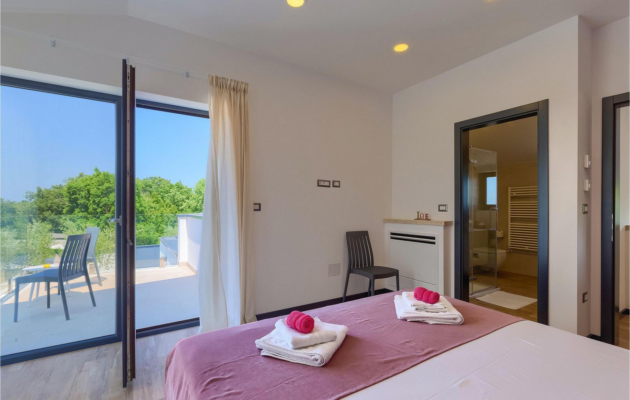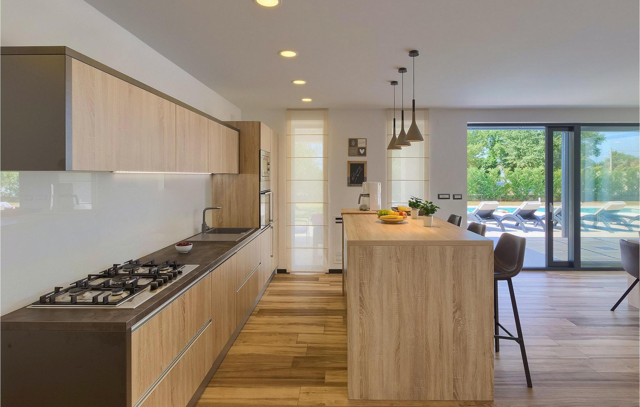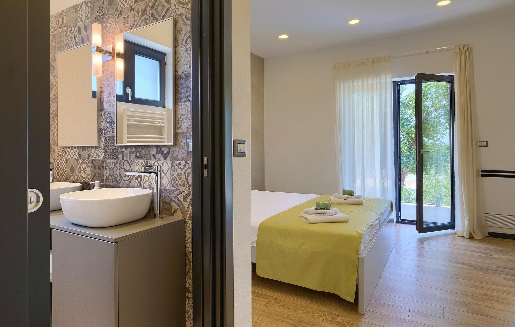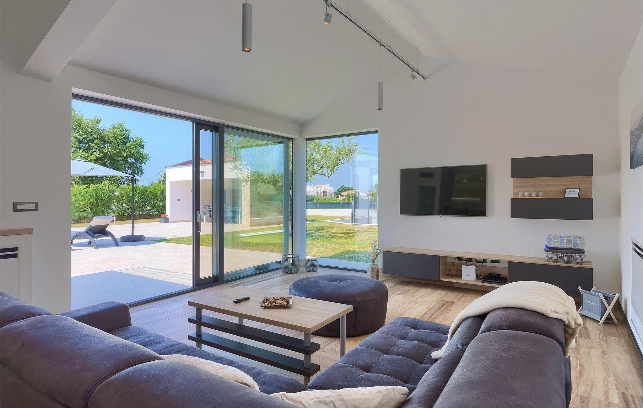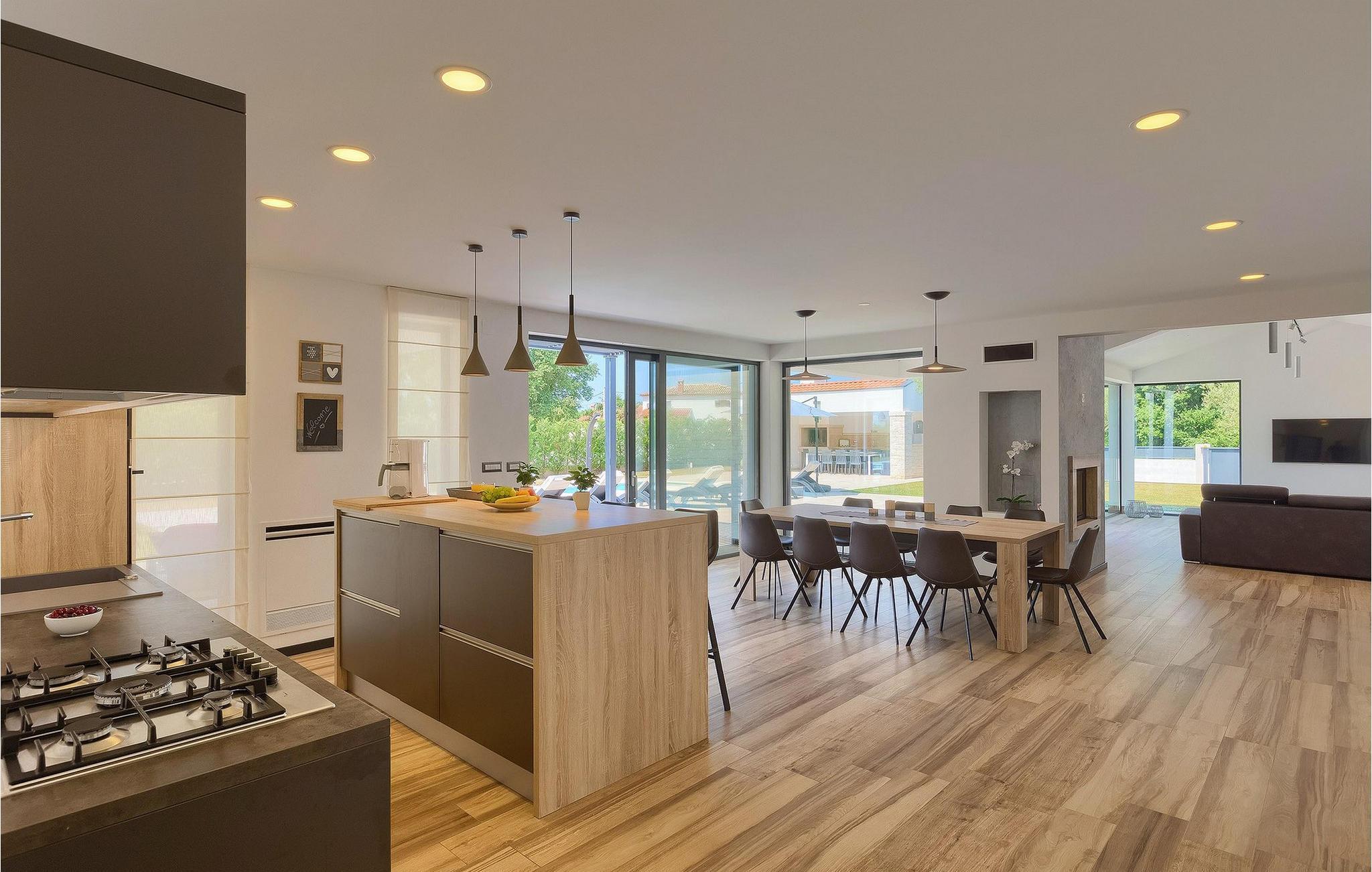 Villa Silvia ist eine elegante, komfortable Villa, gelegen in der Nähe von einem der beliebtesten touristischen Urlaubsdestinationen in Istrien - der schönen Stadt Porec. Die Villa verfügt über 4 Schlafzimmer und kann bis zu 10 Personen beherbergen. Im Erdgeschoss finden Sie ein geräumiges und elegantes Wohnzimmer verbunden mit dem Essbereich und einer völlig ausgestatteten Küche mit Frühstücksbar vor. Auf dieser Etage befinden sich auch ein Schlafzimmer mit en-suite Badezimmer, ein Wäscheraum und ein Gäste-WC. Die anderen 3 lichtdurchfluteten und gemütlichen Schlafzimmer befinden sich auf der oberen Etage. Sie sind alle mit einem Doppelbett ausgestattet und verfügen über ein eigenes Badezimmer. Zwei der Schlafzimmer im Obergeschoss teilen sich eine Terrasse, während ein Schlafzimmer eine eigene Terrasse hat. Von den Terrassen erstreckt sich ein schöner Ausblick auf den Pool und die Umgebung. Vom Wohn- / Essbereich haben Sie direkten Zugang zum 45 m2 großen privaten Pool. Der Außenbereich verfügt auch über eine Sommerküche mit Grill und einen Essbereich, wo sie einen entspannten Sommerabend mit lokalen Köstlichkeiten genießen können. Der gesamte Außenbereich und der Pool sind nachts beleuchtet.