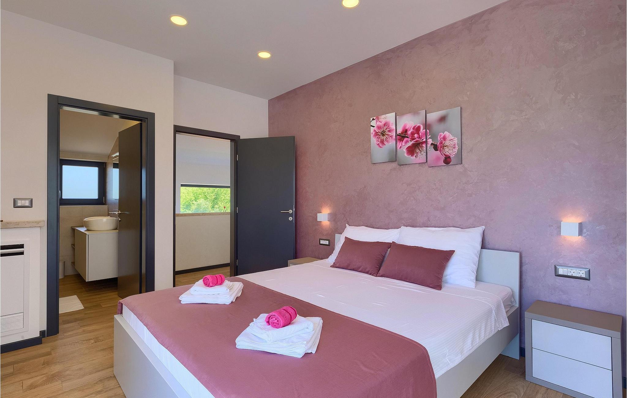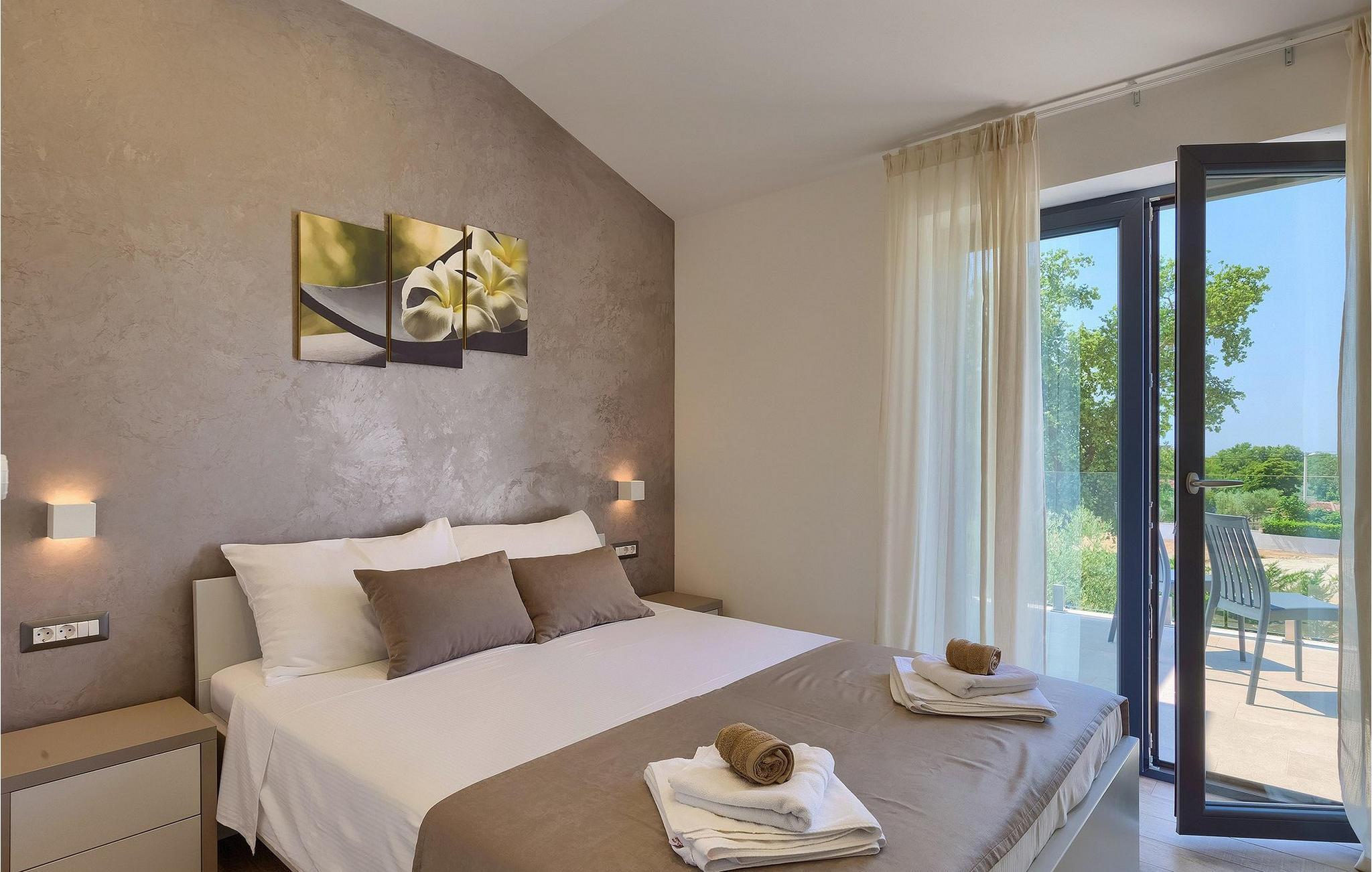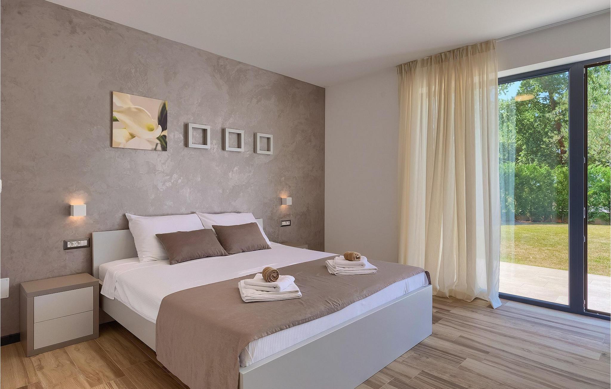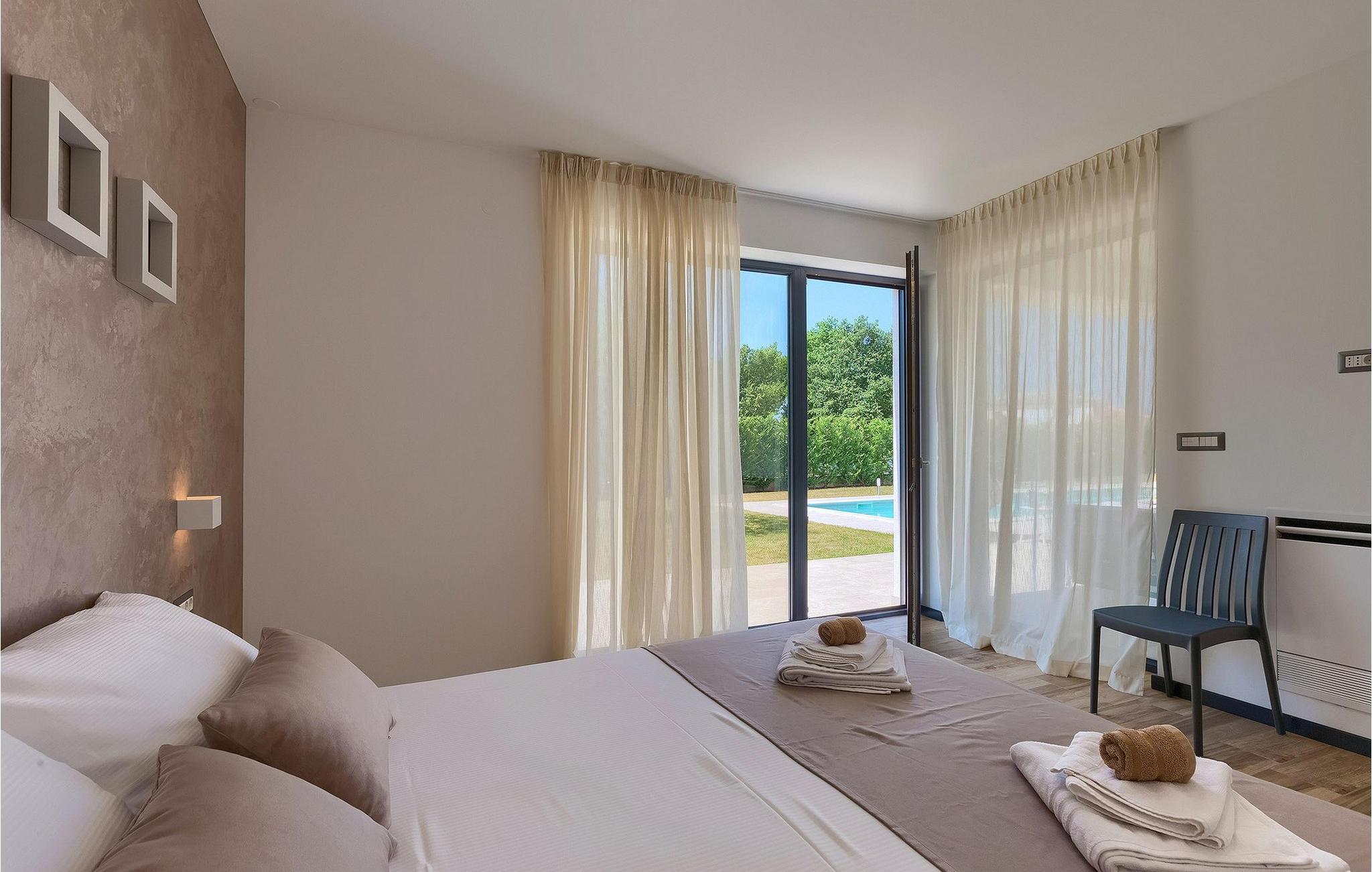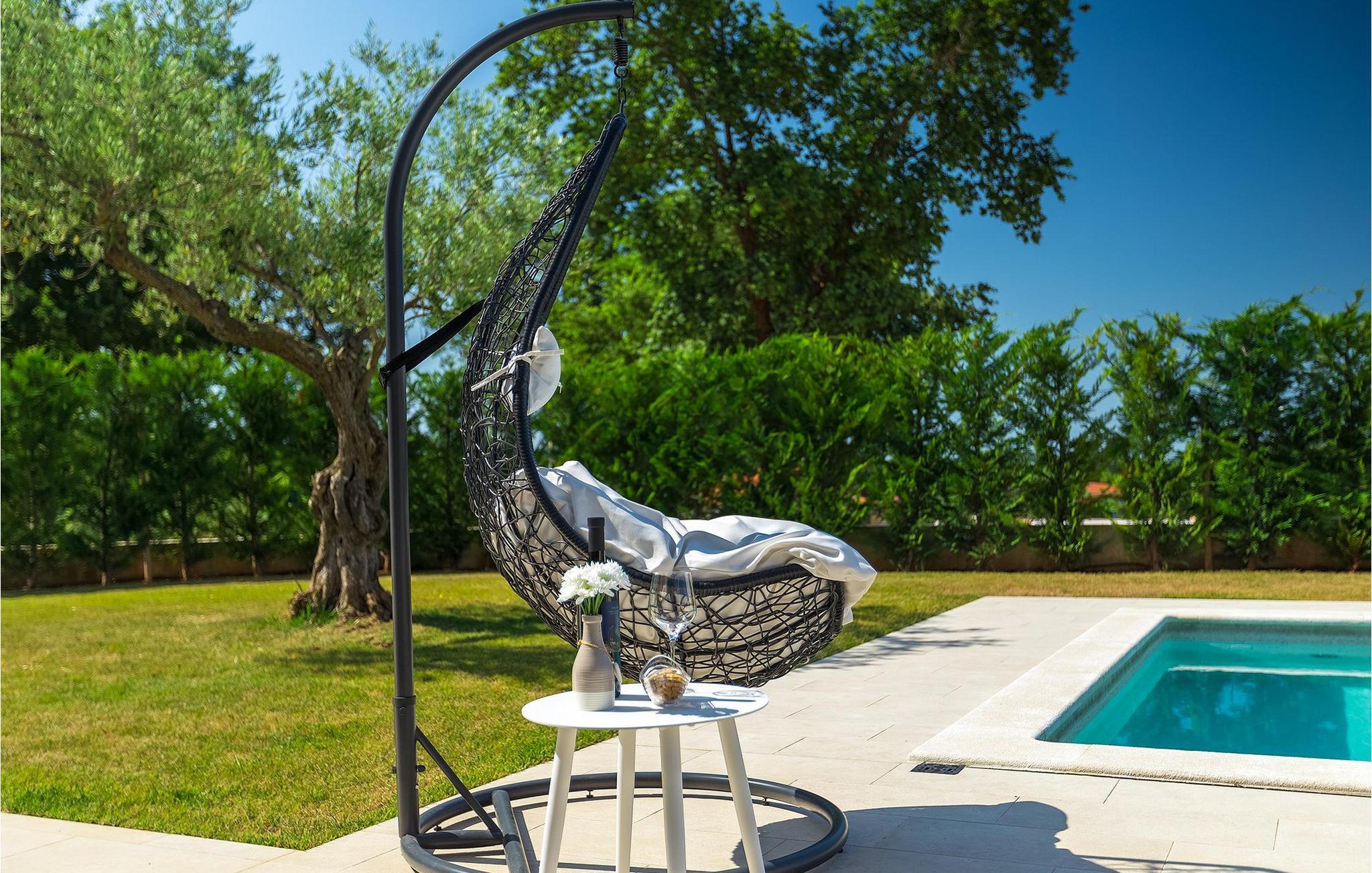Villa Silvia ist eine elegante, komfortable Villa, gelegen in der Nähe von einem der beliebtesten touristischen Urlaubsdestinationen in Istrien - der schönen Stadt Porec. Die Villa verfügt über 4 Schlafzimmer und kann bis zu 10 Personen beherbergen. Im Erdgeschoss finden Sie ein geräumiges und elegantes Wohnzimmer verbunden mit dem Essbereich und einer völlig ausgestatteten Küche mit Frühstücksbar vor. Auf dieser Etage befinden sich auch ein Schlafzimmer mit en-suite Badezimmer, ein Wäscheraum und ein Gäste-WC. Die anderen 3 lichtdurchfluteten und gemütlichen Schlafzimmer befinden sich auf der oberen Etage. Sie sind alle mit einem Doppelbett ausgestattet und verfügen über ein eigenes Badezimmer. Zwei der Schlafzimmer im Obergeschoss teilen sich eine Terrasse, während ein Schlafzimmer eine eigene Terrasse hat. Von den Terrassen erstreckt sich ein schöner Ausblick auf den Pool und die Umgebung. Vom Wohn- / Essbereich haben Sie direkten Zugang zum 45 m2 großen privaten Pool. Der Außenbereich verfügt auch über eine Sommerküche mit Grill und einen Essbereich, wo sie einen entspannten Sommerabend mit lokalen Köstlichkeiten genießen können. Der gesamte Außenbereich und der Pool sind nachts beleuchtet.