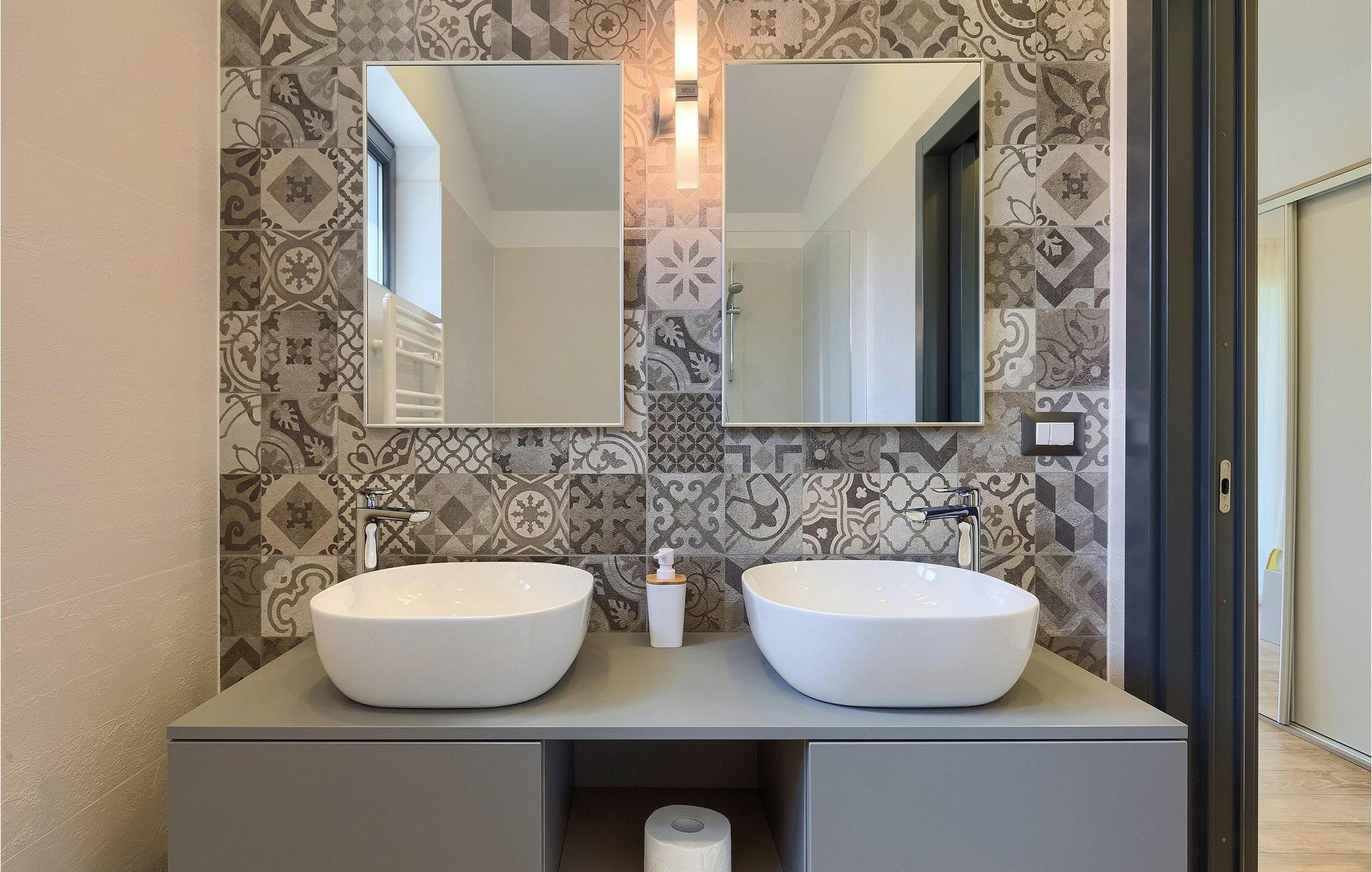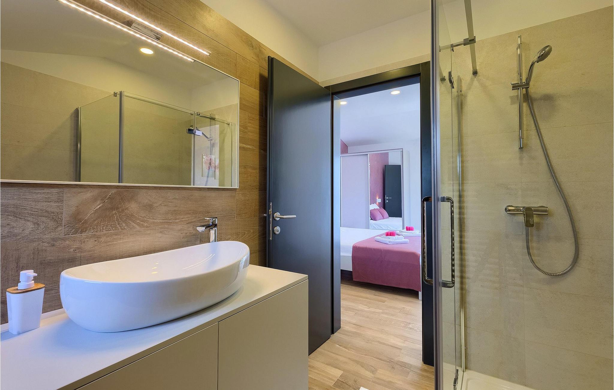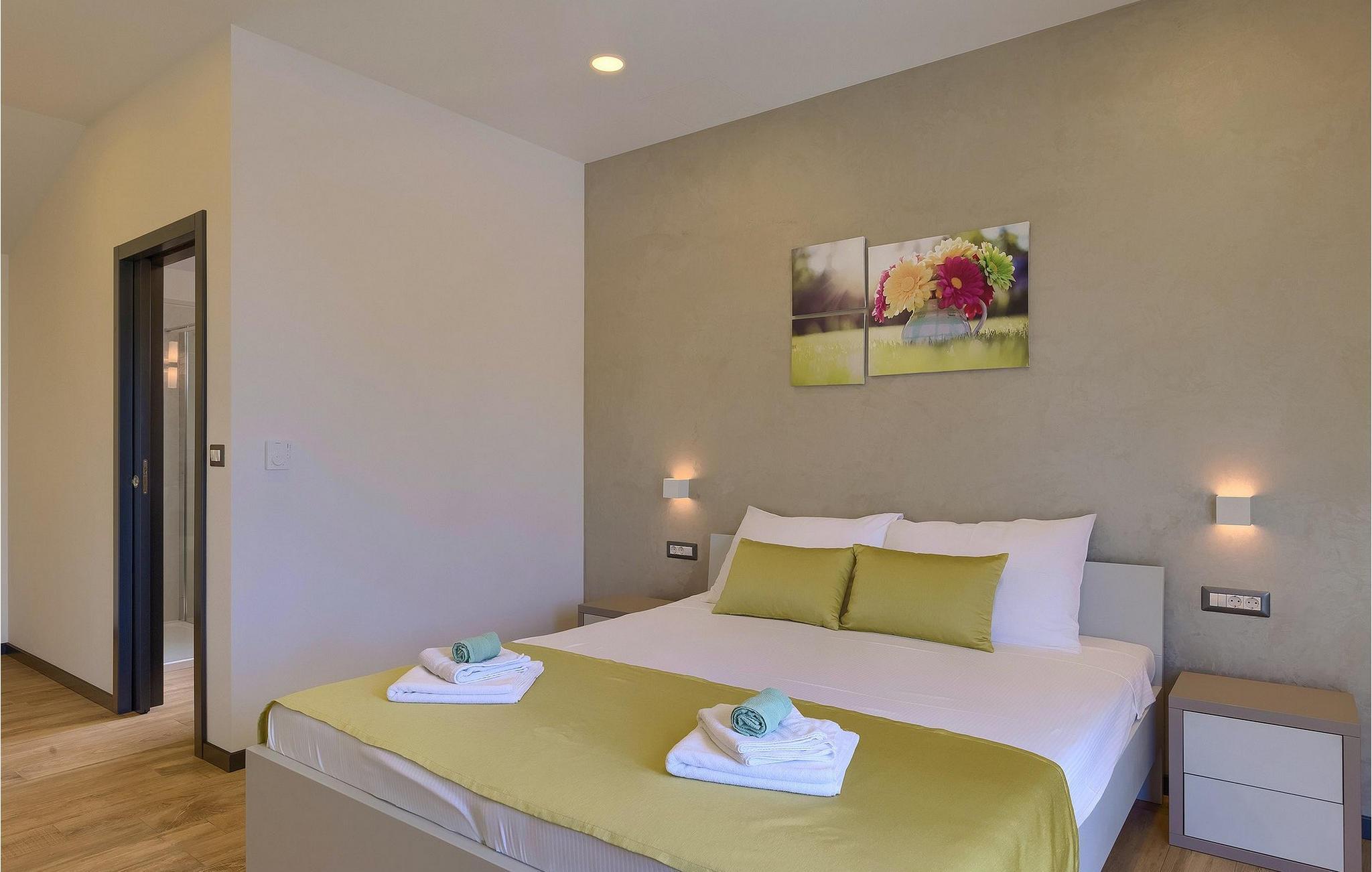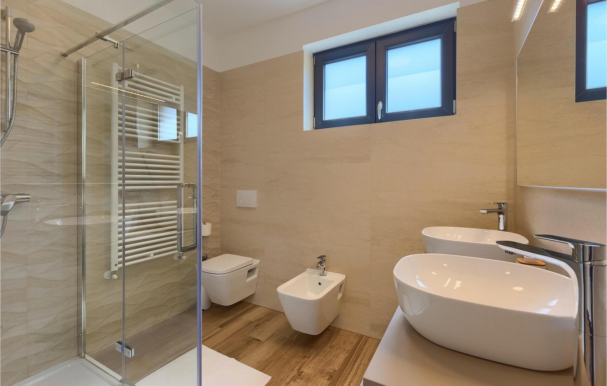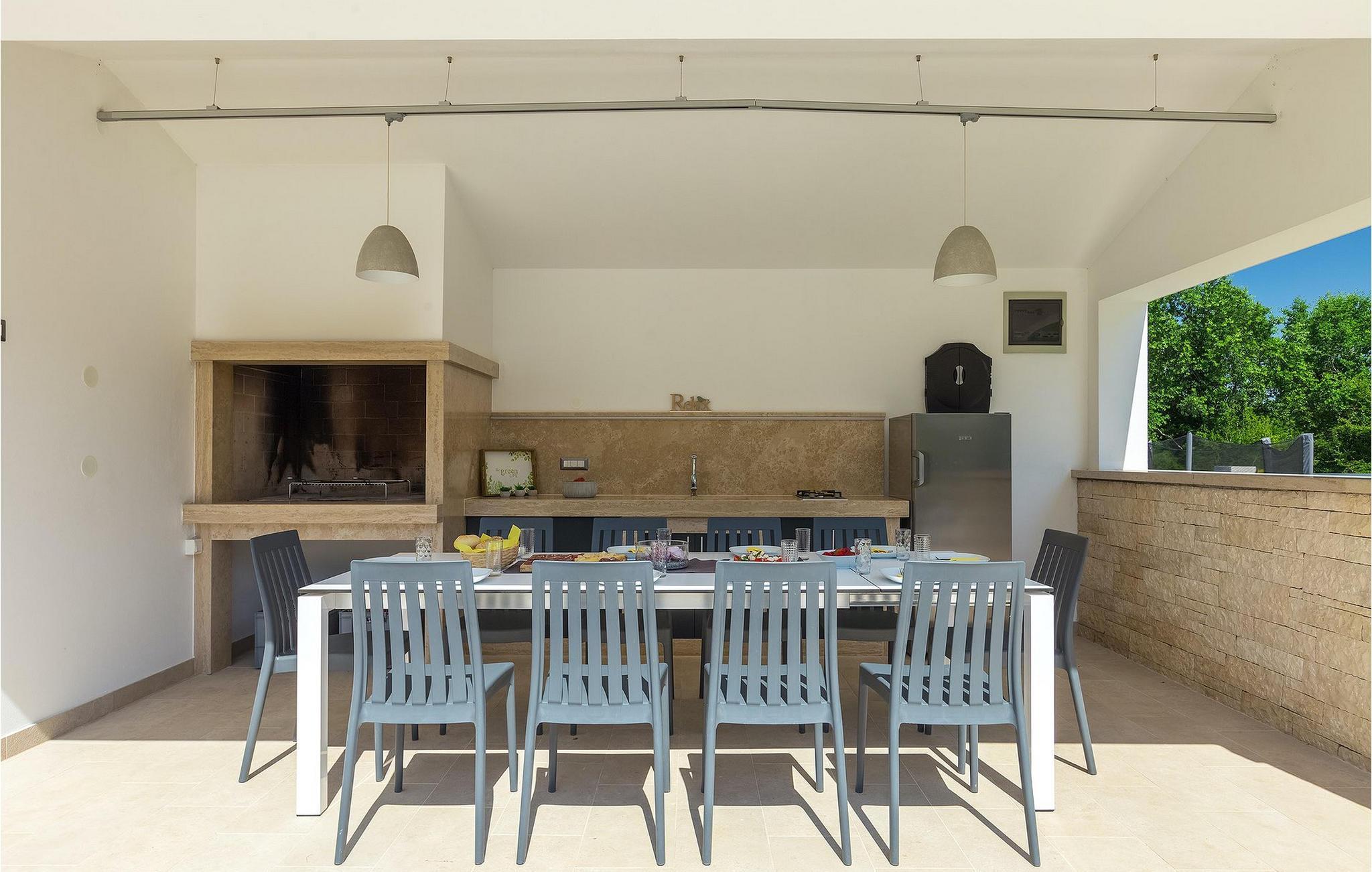 Villa Silvia ist eine elegante, komfortable Villa, gelegen in der Nähe von einem der beliebtesten touristischen Urlaubsdestinationen in Istrien - der schönen Stadt Porec. Die Villa verfügt über 4 Schlafzimmer und kann bis zu 10 Personen beherbergen. Im Erdgeschoss finden Sie ein geräumiges und elegantes Wohnzimmer verbunden mit dem Essbereich und einer völlig ausgestatteten Küche mit Frühstücksbar vor. Auf dieser Etage befinden sich auch ein Schlafzimmer mit en-suite Badezimmer, ein Wäscheraum und ein Gäste-WC. Die anderen 3 lichtdurchfluteten und gemütlichen Schlafzimmer befinden sich auf der oberen Etage. Sie sind alle mit einem Doppelbett ausgestattet und verfügen über ein eigenes Badezimmer. Zwei der Schlafzimmer im Obergeschoss teilen sich eine Terrasse, während ein Schlafzimmer eine eigene Terrasse hat. Von den Terrassen erstreckt sich ein schöner Ausblick auf den Pool und die Umgebung. Vom Wohn- / Essbereich haben Sie direkten Zugang zum 45 m2 großen privaten Pool. Der Außenbereich verfügt auch über eine Sommerküche mit Grill und einen Essbereich, wo sie einen entspannten Sommerabend mit lokalen Köstlichkeiten genießen können. Der gesamte Außenbereich und der Pool sind nachts beleuchtet.