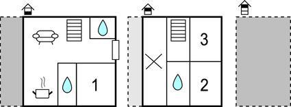 Badezimmer 3m2 (nr. 1) - WC. Warmes und kaltes Wasser. Dusche