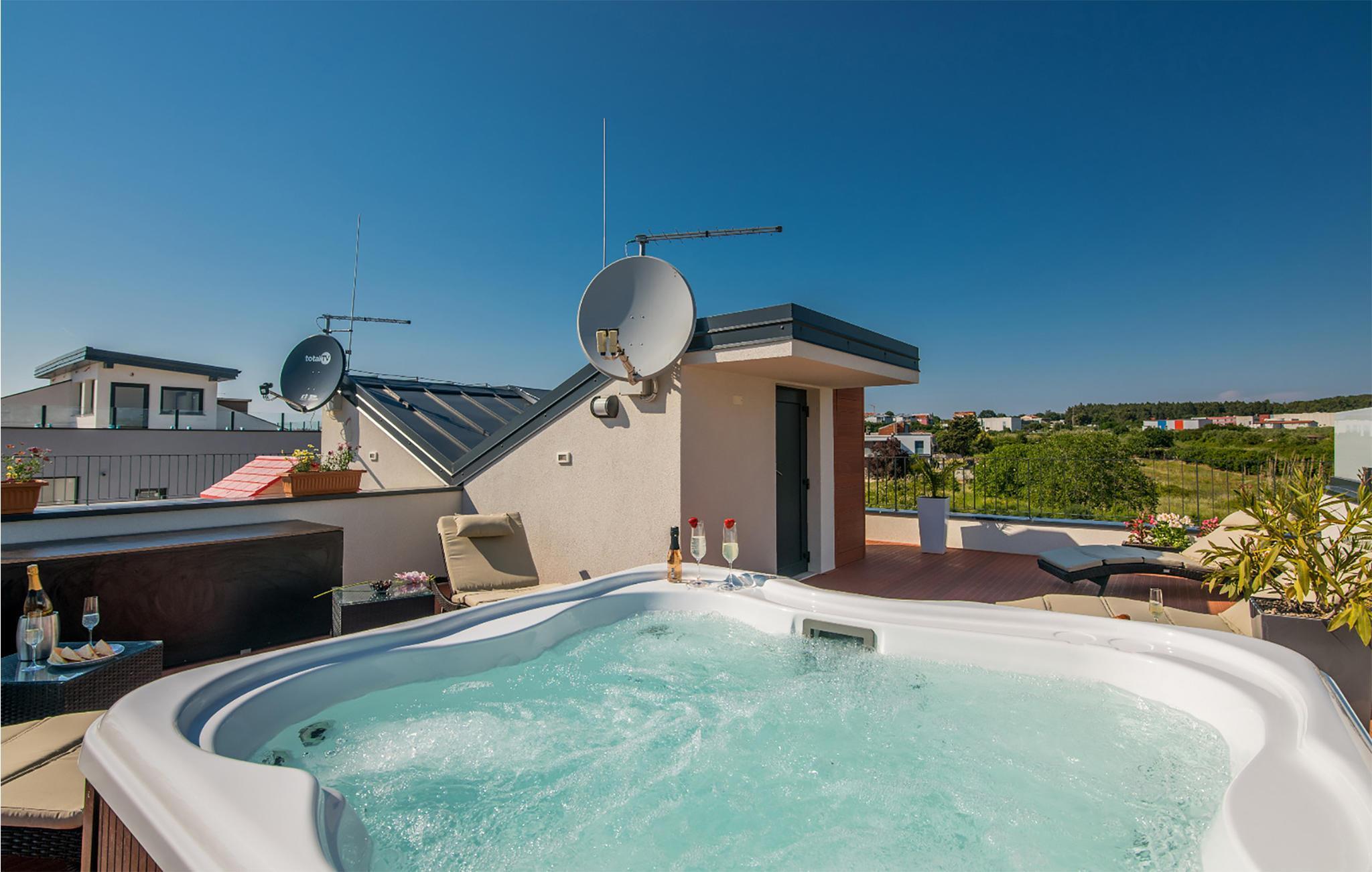 Entspannen Sie im Whirlpool auf der Dachterrasse unter dem kroatischen Sternenhimmel.