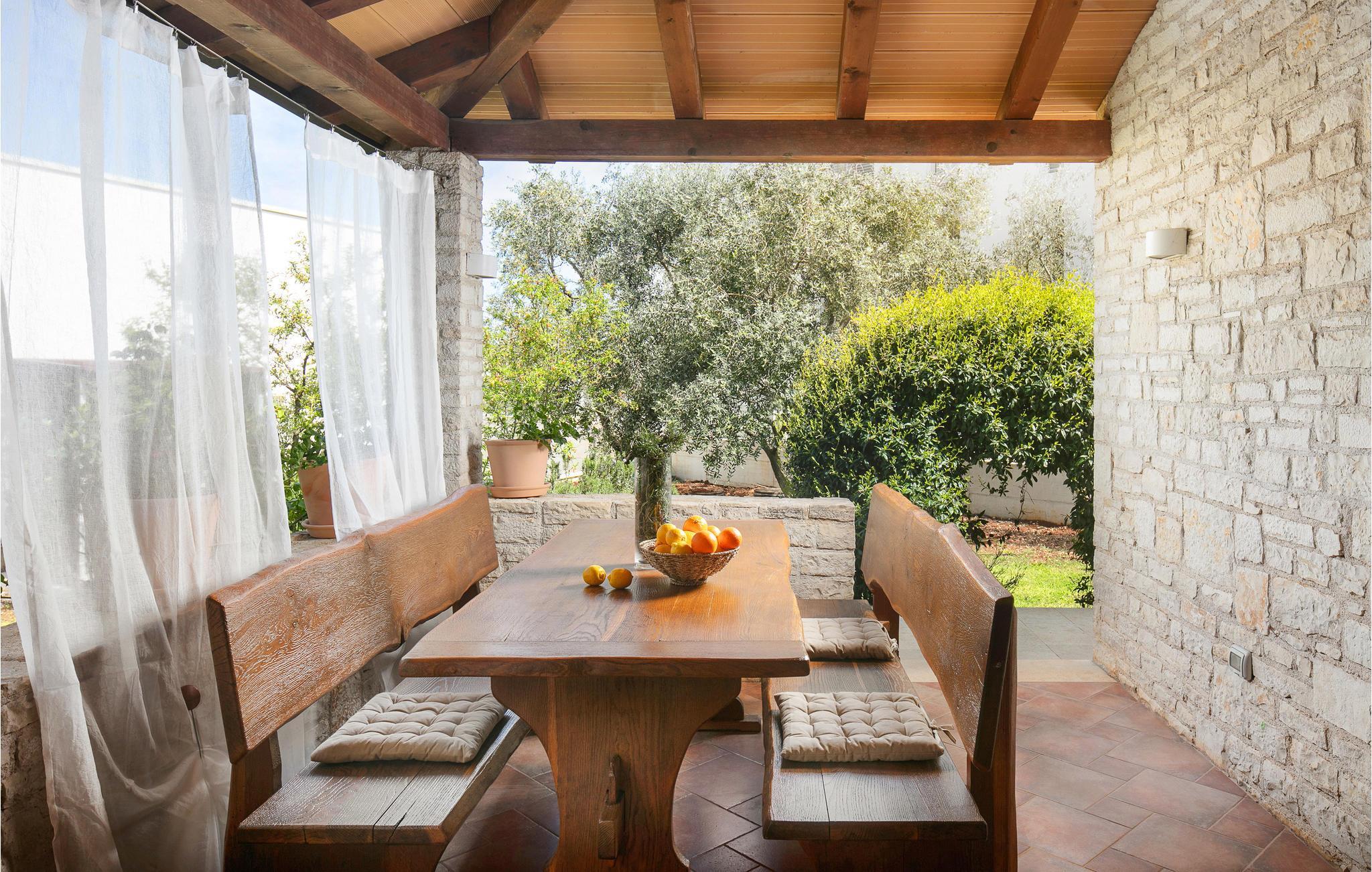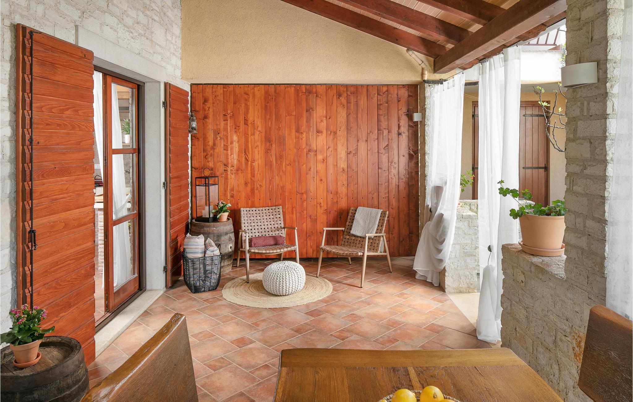 Reisen Sie nach Novigrad und wohnen mit Ihrer Familie in diesem schönen und kompakten Haus auf zwei Etagen. Eingerichtet mit der traditionell ausgestatteten Küche mit Kamin wird das Kocherlebnis zu einem Genuss. Fühlen Sie sich in der Unterkunft mit massiven Holzmöbeln zuhause und kommen zur Ruhe. Der Ausgang vom Esszimmer führt auf eine überdachte Terrasse, ausgestattet mit einem Tisch, wo Sie den Schatten sowie den Blick auf den grünen Rasen und den Garten genießen können. Grillen Sie am Abend und machen Pläne für den nächsten Urlaubstag.