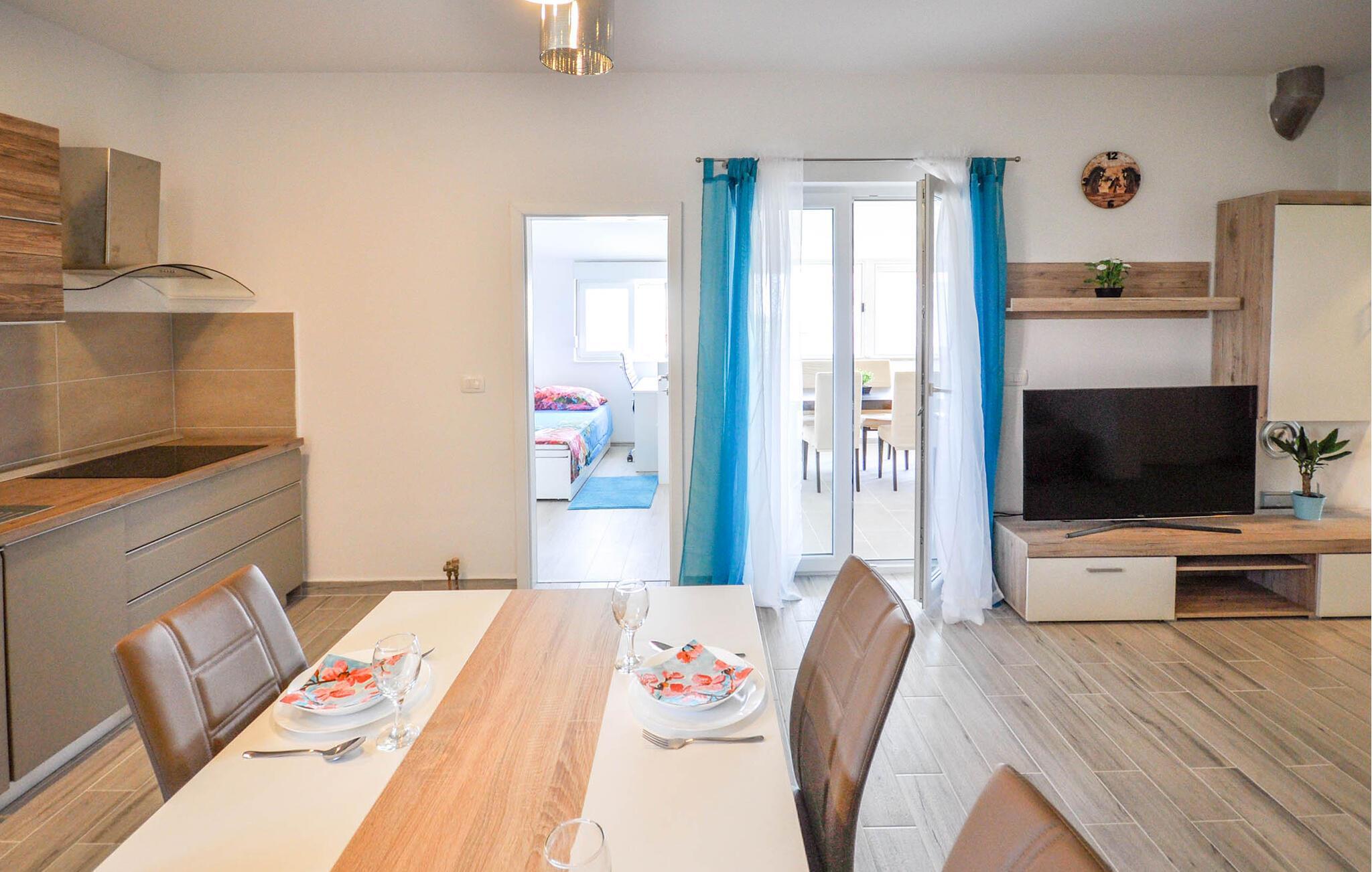 Die Ferienwohnung ist nur wenige Hundert Meter vom Meer entfernt, so dass Sie jederzeit entspannt zum Strand schlendern und das kristallklare Wasser der Adria genießen können. Dank der Nähe zum Zentrum erreichen Sie in kurzer Zeit die charmante Altstadt von Novigrad mit ihren lebendigen Gassen, gemütlichen Cafés und ausgezeichneten Restaurants. Flanieren Sie entlang der Uferpromenade, besuchen Sie den Hafen oder entdecken Sie kulturelle Highlights wie die historische Stadtmauer oder das Lapidarium-Museum. Ob Badevergnügen, kulinarischer Genuss oder mediterranes Lebensgefühl – hier ist alles ganz nah.