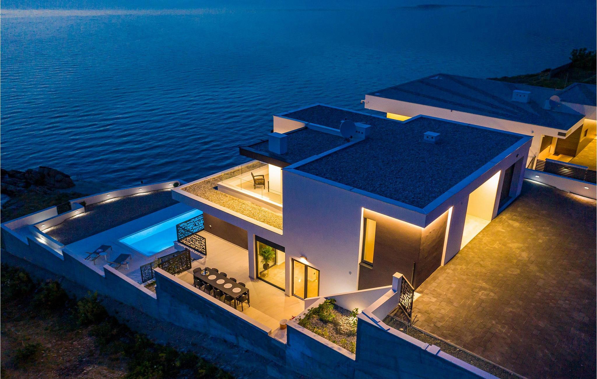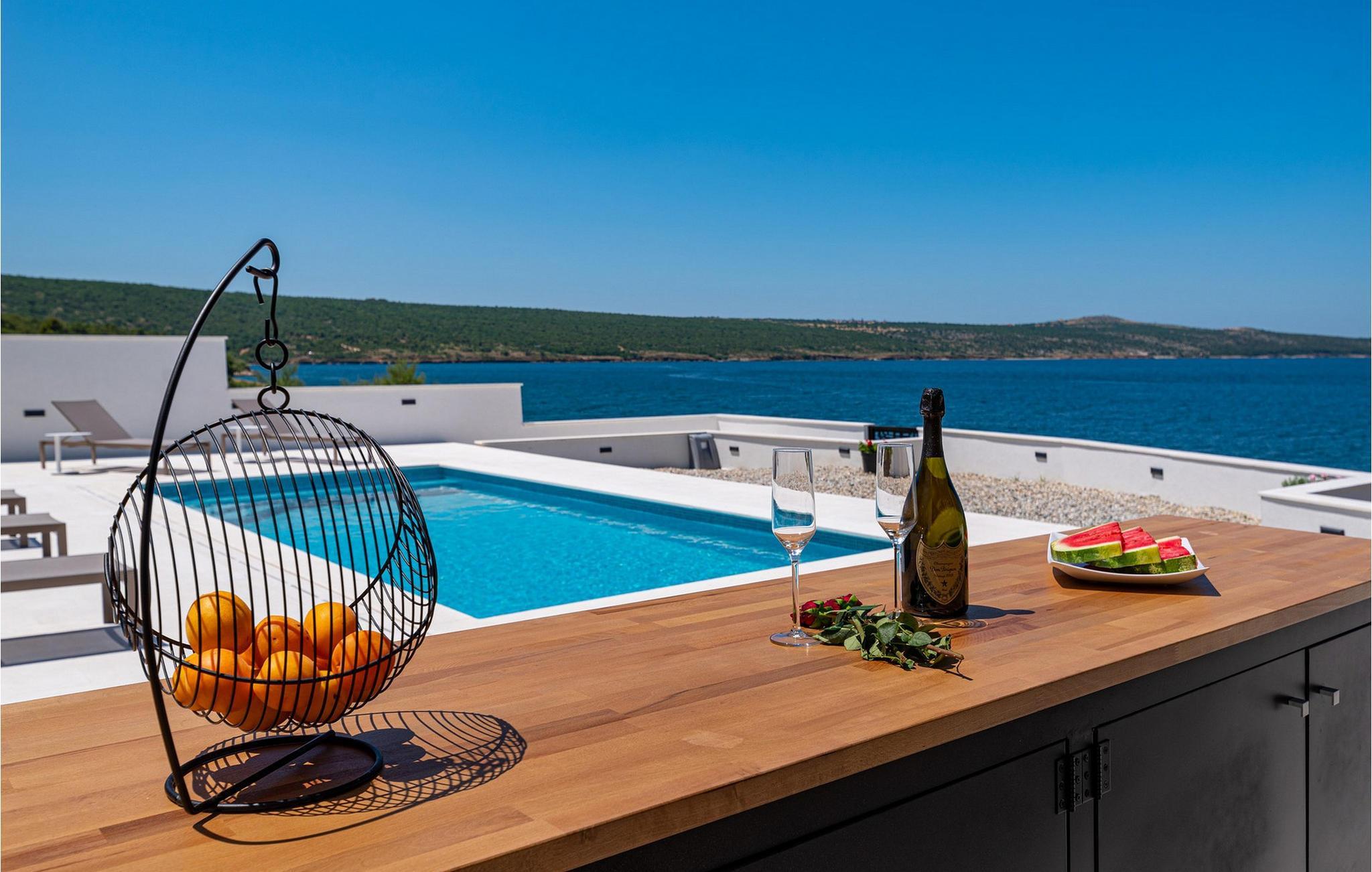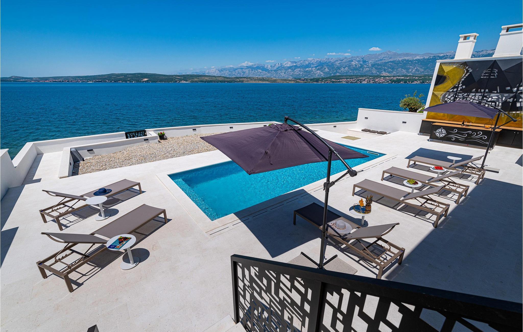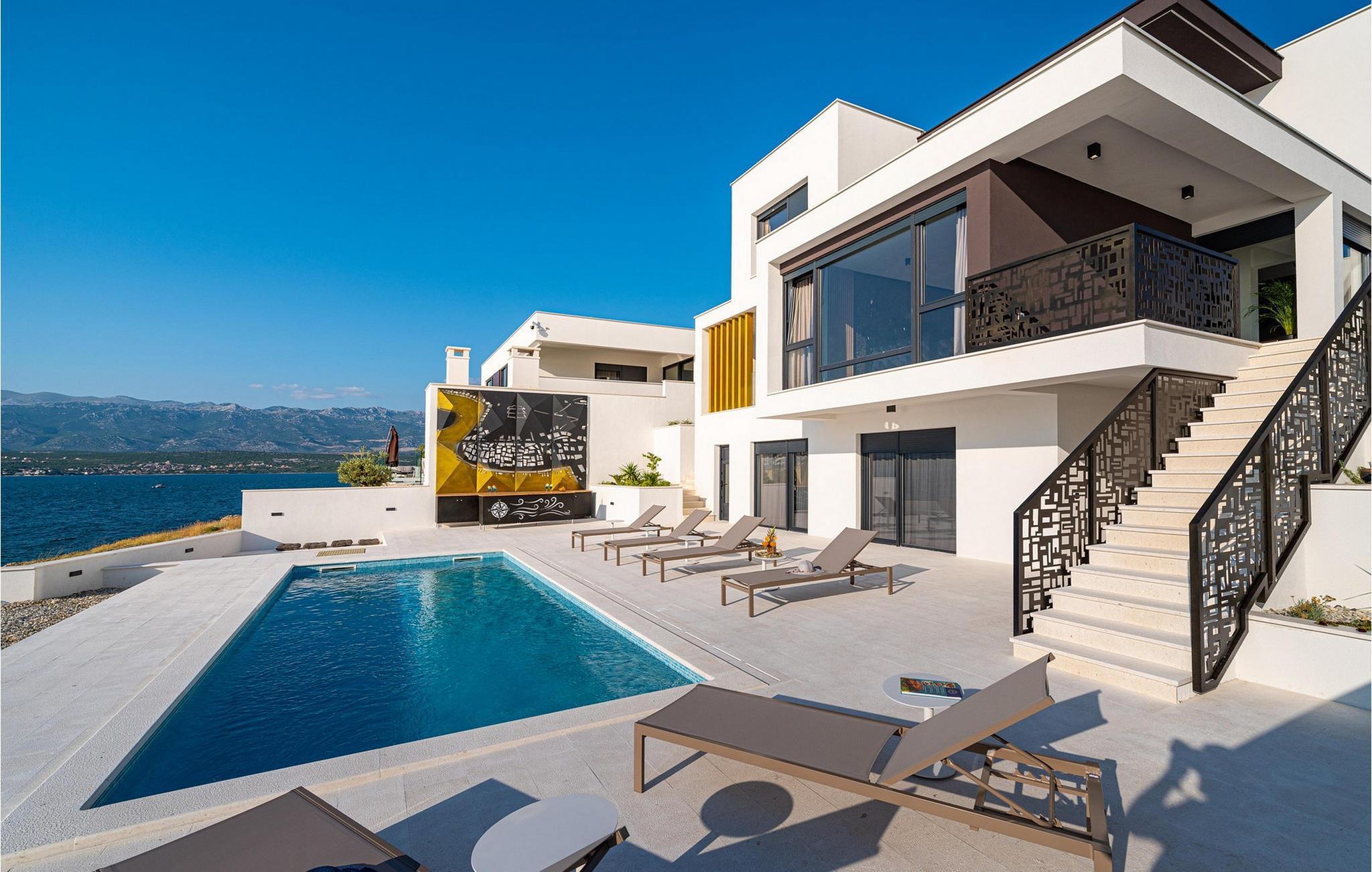 In der historischen dalmatinischen Stadt Novigrad, am Ufer des Novigrader Meeres, befindet sich die wunderschöne Villa Bonella. Die Stadt Novigrad liegt unterhalb des Berges Velebit und ist ein kleines Paradies für alle, die in unberührter Natur entspannen und die bezaubernden dalmatinischen Orte erkunden möchten. Wenn Sie diesen Ort für Ihren Urlaub wählen, werden Sie mit Ihrer Familie oder Ihren liebsten Freunden unvergessliche Momente der Entspannung und des Spaßes verbringen. Mit einer Fläche von 700 m² bietet die Villa Bonella einen Blick auf die klare Adria und ist eine ideale Wahl für maximal 10 Gäste. Sie verfügt über 5 Schlafzimmer mit Doppelbetten und 5 eigene Badezimmer mit Duschen. Im Erdgeschoss befinden sich 2 Schlafzimmer mit TV, Blick auf die Terrasse und den Pool sowie eine Sauna, in der Sie vollkommen entspannen und die Ruhe genießen können. Im ersten Stock befindet sich eine moderne Küche mit ausreichend Platz für die Zubereitung köstlicher Mahlzeiten, gefolgt von einem Esszimmer mit einem Tisch mit 10 Sitzplätzen. In der Nähe des Esszimmers befindet sich ein geräumiges Wohnzimmer mit Couchtisch und Fernseher, wo Sie interessante Filme oder Serien genießen können. Der Esstisch im Freien für 10 Personen ist ein Ort, an dem Sie mit Ihren Freunden bis spät in die Nacht Spaß haben werden. Im zweiten Stock befinden sich 3 weitere Schlafzimmer mit Doppelbetten und Blick auf das Meer. Wenn Sie mit Kindern unterwegs sind, stehen Ihnen auch ein Babybett und ein Hochstuhl zur Verfügung. Auf der oberen Außenterrasse gibt es eine Sitzgarnitur mit einem Tisch, an dem Sie Ihren Morgenkaffee mit Blick auf die Inseln genießen können. Auf der großen Terrasse gibt es einen beheizten Pool von 36 m2, der sich perfekt zum Schwimmen bei Nacht oder am Tag eignet. Daneben gibt es 6 Sonnenliegen und eine Bar im Freien, an der Sie köstliche Sommercocktails genießen können. Die umzäunte Villa Bonella bietet Ihnen die Möglichkeit, sich in völliger Privatsphäre zu sonnen und mit Ihrer Familie Spaß am Pool zu haben. Villa Bonella verfügt über 3 Parkplätze, und wenn Sie mit dem Boot statt mit dem Auto anreisen, gibt es auf Anfrage einen Bootsanlegeplatz. Entspannen Sie sich in der Villa Bonella, gönnen Sie sich den Luxusurlaub, den Sie verdienen, haben Sie Spaß auf dem Fluss Zrmanja, der Spaß beim Rafting und Kanufahren bietet, und Sie können sich im Kajakfahren versuchen. Besuchen Sie Nationalparks wie Paklenica, Plitvice, Krka oder Kornati, erkunden Sie den größten Höhlenkomplex Kroatiens – die Cerovac-Höhlen oder den Naturpark Velebit. Entfliehen Sie dem hektischen Alltag und die Villa Bonella vermittelt Ihnen ein Gefühl von Frieden und Ruhe. Willkommen! Bitte beachten Sie, dass diese Unterkunft keine Jugendgruppen oder Junggesellenabschiede akzeptiert. Eine Jugendgruppe in dieser Unterkunft besteht aus Personen unter 30 Jahren. Buchen Sie diese Unterkunft nicht, wenn Sie eine Jugendgruppe oder ein Junggesellenabschied sind, da Ihre Buchung nach der Buchung abgelehnt wird, was auch bei der Ankunft in der Unterkunft oder während Ihres Aufenthalts der Fall sein kann, und Sie keine Rückerstattung erhalten.