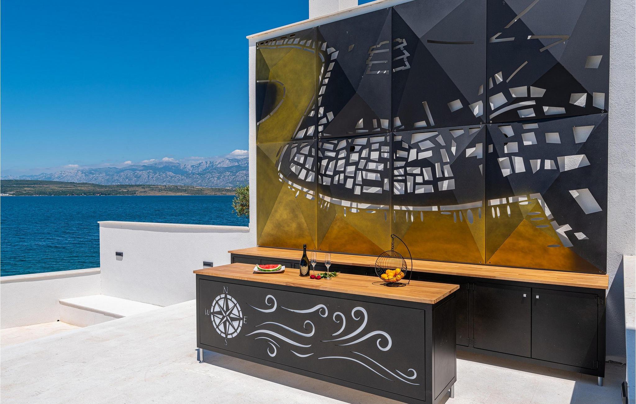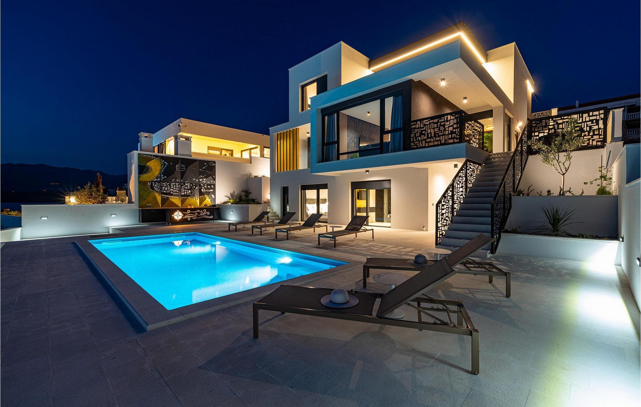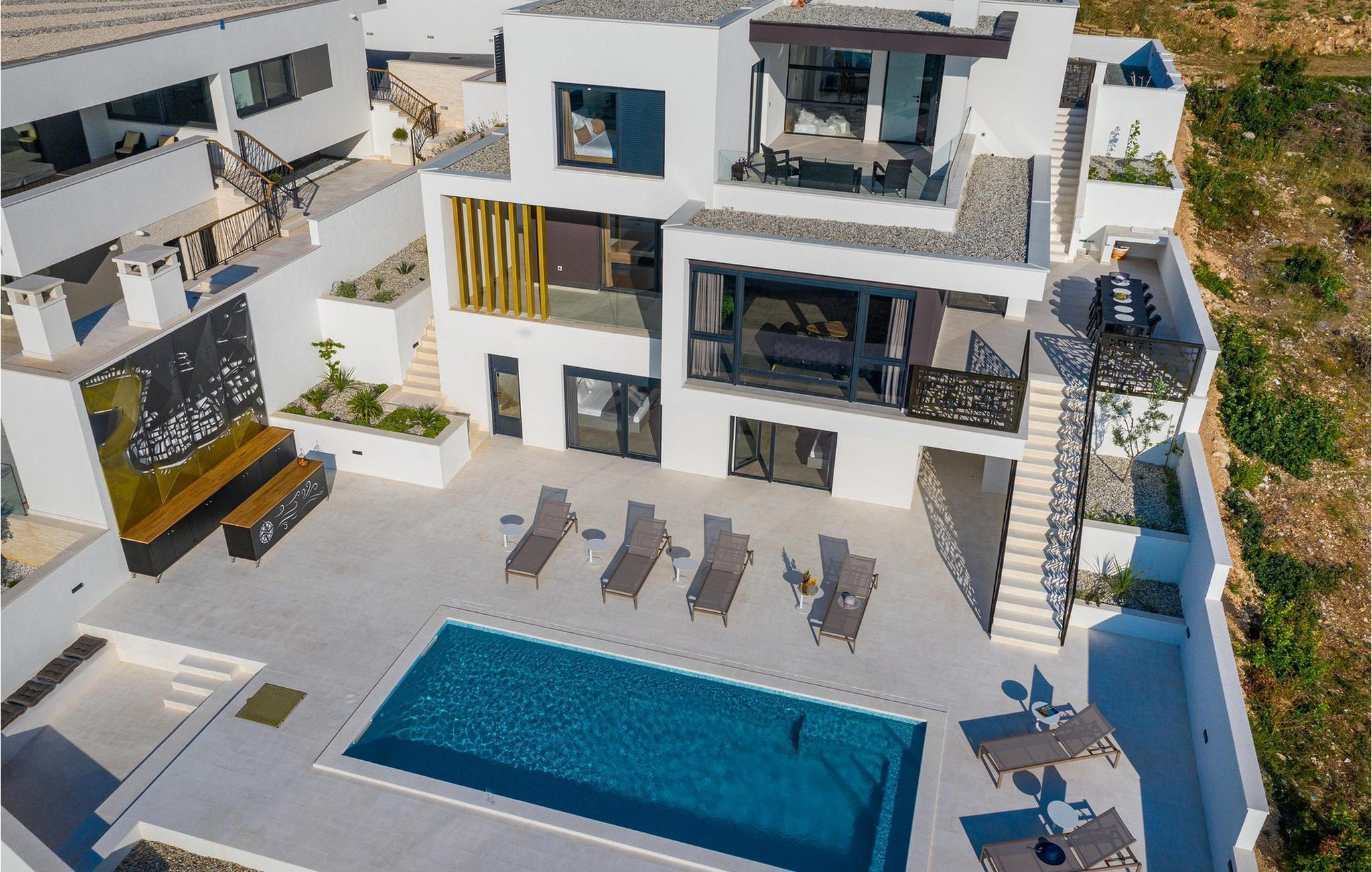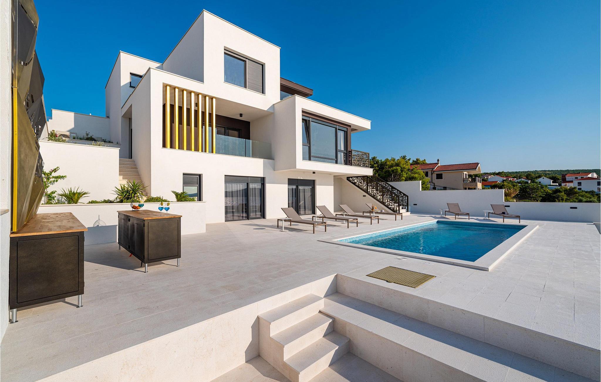 In der historischen dalmatinischen Stadt Novigrad, am Ufer des Novigrader Meeres, befindet sich die wunderschöne Villa Bonella. Die Stadt Novigrad liegt unterhalb des Berges Velebit und ist ein kleines Paradies für alle, die in unberührter Natur entspannen und die bezaubernden dalmatinischen Orte erkunden möchten. Wenn Sie diesen Ort für Ihren Urlaub wählen, werden Sie mit Ihrer Familie oder Ihren liebsten Freunden unvergessliche Momente der Entspannung und des Spaßes verbringen. Mit einer Fläche von 700 m² bietet die Villa Bonella einen Blick auf die klare Adria und ist eine ideale Wahl für maximal 10 Gäste. Sie verfügt über 5 Schlafzimmer mit Doppelbetten und 5 eigene Badezimmer mit Duschen. Im Erdgeschoss befinden sich 2 Schlafzimmer mit TV, Blick auf die Terrasse und den Pool sowie eine Sauna, in der Sie vollkommen entspannen und die Ruhe genießen können. Im ersten Stock befindet sich eine moderne Küche mit ausreichend Platz für die Zubereitung köstlicher Mahlzeiten, gefolgt von einem Esszimmer mit einem Tisch mit 10 Sitzplätzen. In der Nähe des Esszimmers befindet sich ein geräumiges Wohnzimmer mit Couchtisch und Fernseher, wo Sie interessante Filme oder Serien genießen können. Der Esstisch im Freien für 10 Personen ist ein Ort, an dem Sie mit Ihren Freunden bis spät in die Nacht Spaß haben werden. Im zweiten Stock befinden sich 3 weitere Schlafzimmer mit Doppelbetten und Blick auf das Meer. Wenn Sie mit Kindern unterwegs sind, stehen Ihnen auch ein Babybett und ein Hochstuhl zur Verfügung. Auf der oberen Außenterrasse gibt es eine Sitzgarnitur mit einem Tisch, an dem Sie Ihren Morgenkaffee mit Blick auf die Inseln genießen können. Auf der großen Terrasse gibt es einen beheizten Pool von 36 m2, der sich perfekt zum Schwimmen bei Nacht oder am Tag eignet. Daneben gibt es 6 Sonnenliegen und eine Bar im Freien, an der Sie köstliche Sommercocktails genießen können. Die umzäunte Villa Bonella bietet Ihnen die Möglichkeit, sich in völliger Privatsphäre zu sonnen und mit Ihrer Familie Spaß am Pool zu haben. Villa Bonella verfügt über 3 Parkplätze, und wenn Sie mit dem Boot statt mit dem Auto anreisen, gibt es auf Anfrage einen Bootsanlegeplatz. Entspannen Sie sich in der Villa Bonella, gönnen Sie sich den Luxusurlaub, den Sie verdienen, haben Sie Spaß auf dem Fluss Zrmanja, der Spaß beim Rafting und Kanufahren bietet, und Sie können sich im Kajakfahren versuchen. Besuchen Sie Nationalparks wie Paklenica, Plitvice, Krka oder Kornati, erkunden Sie den größten Höhlenkomplex Kroatiens – die Cerovac-Höhlen oder den Naturpark Velebit. Entfliehen Sie dem hektischen Alltag und die Villa Bonella vermittelt Ihnen ein Gefühl von Frieden und Ruhe. Willkommen! Bitte beachten Sie, dass diese Unterkunft keine Jugendgruppen oder Junggesellenabschiede akzeptiert. Eine Jugendgruppe in dieser Unterkunft besteht aus Personen unter 30 Jahren. Buchen Sie diese Unterkunft nicht, wenn Sie eine Jugendgruppe oder ein Junggesellenabschied sind, da Ihre Buchung nach der Buchung abgelehnt wird, was auch bei der Ankunft in der Unterkunft oder während Ihres Aufenthalts der Fall sein kann, und Sie keine Rückerstattung erhalten.
