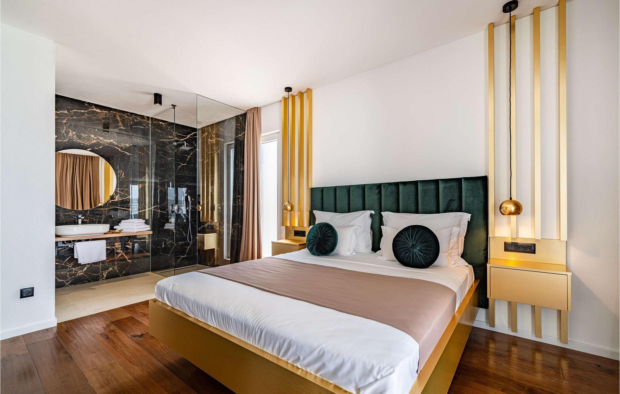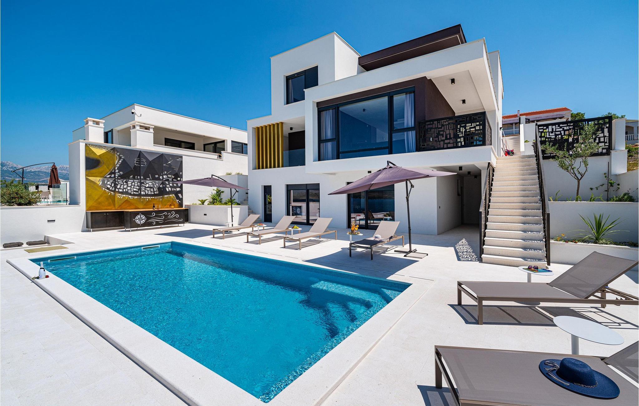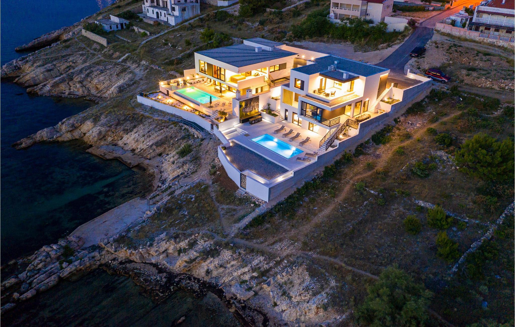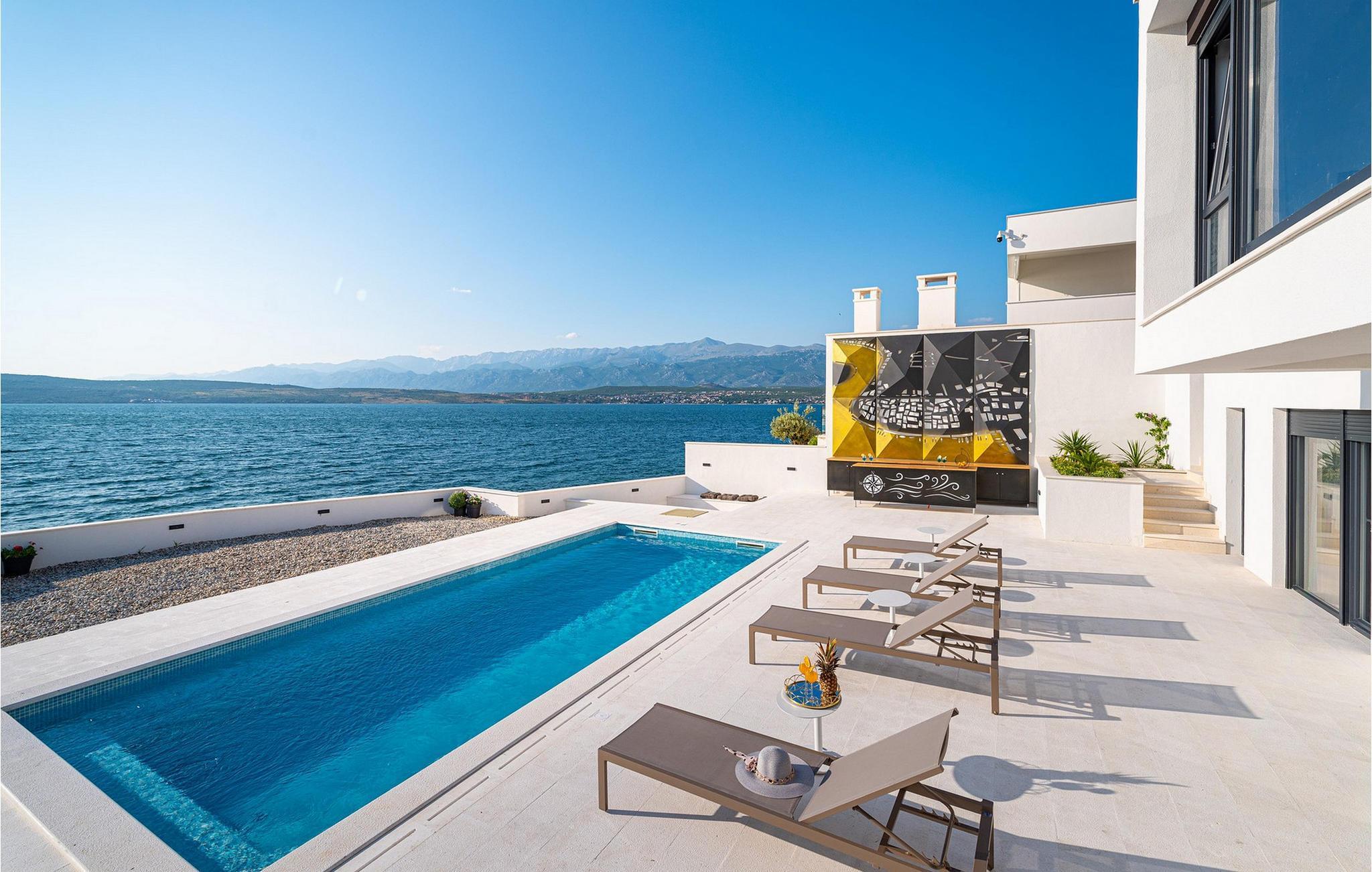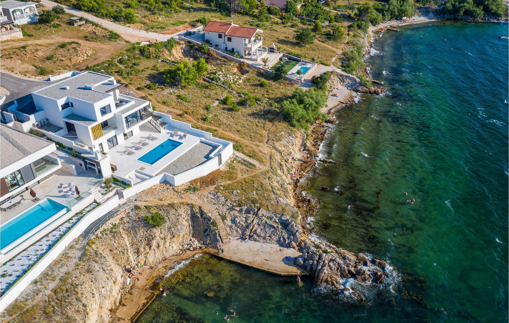 In der historischen dalmatinischen Stadt Novigrad, am Ufer des Novigrader Meeres, befindet sich die wunderschöne Villa Bonella. Die Stadt Novigrad liegt unterhalb des Berges Velebit und ist ein kleines Paradies für alle, die in unberührter Natur entspannen und die bezaubernden dalmatinischen Orte erkunden möchten. Wenn Sie diesen Ort für Ihren Urlaub wählen, werden Sie mit Ihrer Familie oder Ihren liebsten Freunden unvergessliche Momente der Entspannung und des Spaßes verbringen. Mit einer Fläche von 700 m² bietet die Villa Bonella einen Blick auf die klare Adria und ist eine ideale Wahl für maximal 10 Gäste. Sie verfügt über 5 Schlafzimmer mit Doppelbetten und 5 eigene Badezimmer mit Duschen. Im Erdgeschoss befinden sich 2 Schlafzimmer mit TV, Blick auf die Terrasse und den Pool sowie eine Sauna, in der Sie vollkommen entspannen und die Ruhe genießen können. Im ersten Stock befindet sich eine moderne Küche mit ausreichend Platz für die Zubereitung köstlicher Mahlzeiten, gefolgt von einem Esszimmer mit einem Tisch mit 10 Sitzplätzen. In der Nähe des Esszimmers befindet sich ein geräumiges Wohnzimmer mit Couchtisch und Fernseher, wo Sie interessante Filme oder Serien genießen können. Der Esstisch im Freien für 10 Personen ist ein Ort, an dem Sie mit Ihren Freunden bis spät in die Nacht Spaß haben werden. Im zweiten Stock befinden sich 3 weitere Schlafzimmer mit Doppelbetten und Blick auf das Meer. Wenn Sie mit Kindern unterwegs sind, stehen Ihnen auch ein Babybett und ein Hochstuhl zur Verfügung. Auf der oberen Außenterrasse gibt es eine Sitzgarnitur mit einem Tisch, an dem Sie Ihren Morgenkaffee mit Blick auf die Inseln genießen können. Auf der großen Terrasse gibt es einen beheizten Pool von 36 m2, der sich perfekt zum Schwimmen bei Nacht oder am Tag eignet. Daneben gibt es 6 Sonnenliegen und eine Bar im Freien, an der Sie köstliche Sommercocktails genießen können. Die umzäunte Villa Bonella bietet Ihnen die Möglichkeit, sich in völliger Privatsphäre zu sonnen und mit Ihrer Familie Spaß am Pool zu haben. Villa Bonella verfügt über 3 Parkplätze, und wenn Sie mit dem Boot statt mit dem Auto anreisen, gibt es auf Anfrage einen Bootsanlegeplatz. Entspannen Sie sich in der Villa Bonella, gönnen Sie sich den Luxusurlaub, den Sie verdienen, haben Sie Spaß auf dem Fluss Zrmanja, der Spaß beim Rafting und Kanufahren bietet, und Sie können sich im Kajakfahren versuchen. Besuchen Sie Nationalparks wie Paklenica, Plitvice, Krka oder Kornati, erkunden Sie den größten Höhlenkomplex Kroatiens – die Cerovac-Höhlen oder den Naturpark Velebit. Entfliehen Sie dem hektischen Alltag und die Villa Bonella vermittelt Ihnen ein Gefühl von Frieden und Ruhe. Willkommen! Bitte beachten Sie, dass diese Unterkunft keine Jugendgruppen oder Junggesellenabschiede akzeptiert. Eine Jugendgruppe in dieser Unterkunft besteht aus Personen unter 30 Jahren. Buchen Sie diese Unterkunft nicht, wenn Sie eine Jugendgruppe oder ein Junggesellenabschied sind, da Ihre Buchung nach der Buchung abgelehnt wird, was auch bei der Ankunft in der Unterkunft oder während Ihres Aufenthalts der Fall sein kann, und Sie keine Rückerstattung erhalten.