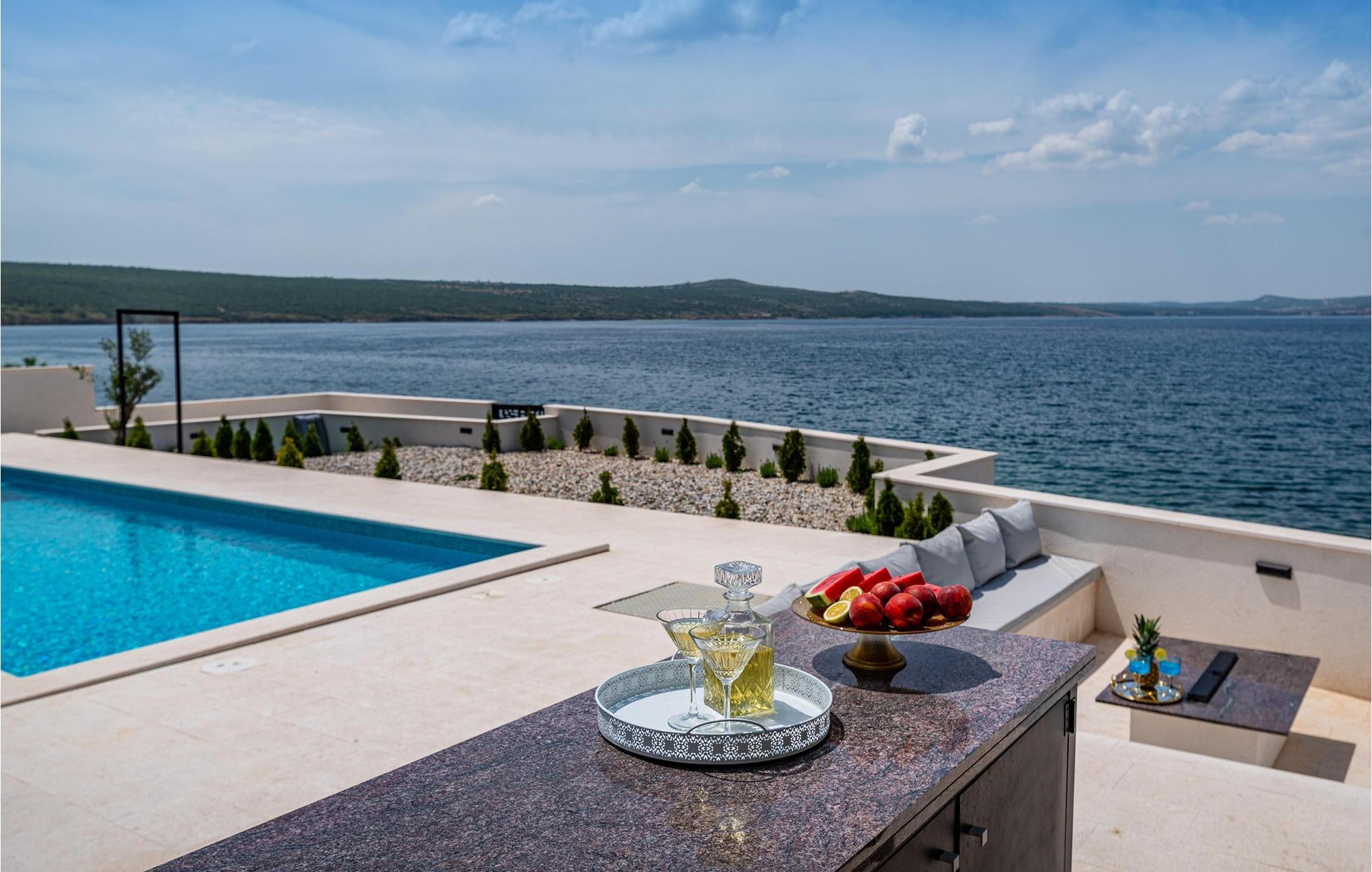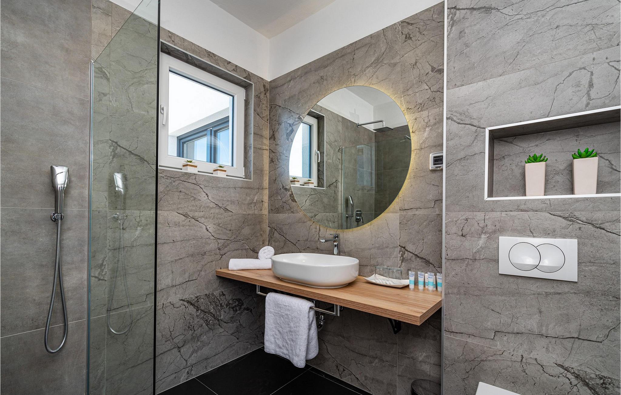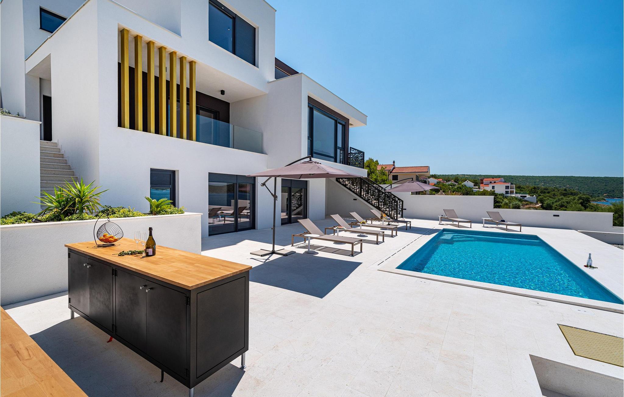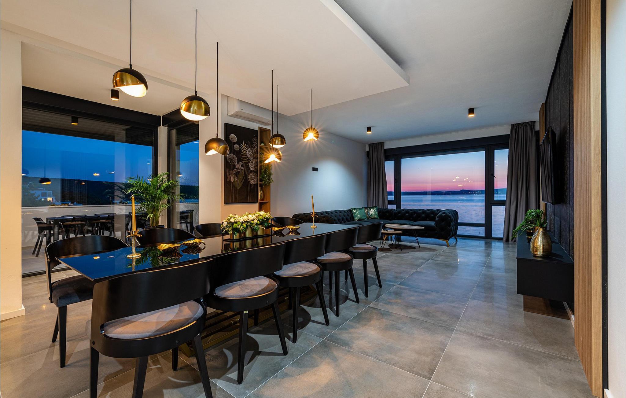In der historischen dalmatinischen Stadt Novigrad, am Ufer des Novigrader Meeres, befindet sich die wunderschöne Villa Bonella. Die Stadt Novigrad liegt unterhalb des Berges Velebit und ist ein kleines Paradies für alle, die in unberührter Natur entspannen und die bezaubernden dalmatinischen Orte erkunden möchten. Wenn Sie diesen Ort für Ihren Urlaub wählen, werden Sie mit Ihrer Familie oder Ihren liebsten Freunden unvergessliche Momente der Entspannung und des Spaßes verbringen. Mit einer Fläche von 700 m² bietet die Villa Bonella einen Blick auf die klare Adria und ist eine ideale Wahl für maximal 10 Gäste. Sie verfügt über 5 Schlafzimmer mit Doppelbetten und 5 eigene Badezimmer mit Duschen. Im Erdgeschoss befinden sich 2 Schlafzimmer mit TV, Blick auf die Terrasse und den Pool sowie eine Sauna, in der Sie vollkommen entspannen und die Ruhe genießen können. Im ersten Stock befindet sich eine moderne Küche mit ausreichend Platz für die Zubereitung köstlicher Mahlzeiten, gefolgt von einem Esszimmer mit einem Tisch mit 10 Sitzplätzen. In der Nähe des Esszimmers befindet sich ein geräumiges Wohnzimmer mit Couchtisch und Fernseher, wo Sie interessante Filme oder Serien genießen können. Der Esstisch im Freien für 10 Personen ist ein Ort, an dem Sie mit Ihren Freunden bis spät in die Nacht Spaß haben werden. Im zweiten Stock befinden sich 3 weitere Schlafzimmer mit Doppelbetten und Blick auf das Meer. Wenn Sie mit Kindern unterwegs sind, stehen Ihnen auch ein Babybett und ein Hochstuhl zur Verfügung. Auf der oberen Außenterrasse gibt es eine Sitzgarnitur mit einem Tisch, an dem Sie Ihren Morgenkaffee mit Blick auf die Inseln genießen können. Auf der großen Terrasse gibt es einen beheizten Pool von 36 m2, der sich perfekt zum Schwimmen bei Nacht oder am Tag eignet. Daneben gibt es 6 Sonnenliegen und eine Bar im Freien, an der Sie köstliche Sommercocktails genießen können. Die umzäunte Villa Bonella bietet Ihnen die Möglichkeit, sich in völliger Privatsphäre zu sonnen und mit Ihrer Familie Spaß am Pool zu haben. Villa Bonella verfügt über 3 Parkplätze, und wenn Sie mit dem Boot statt mit dem Auto anreisen, gibt es auf Anfrage einen Bootsanlegeplatz. Entspannen Sie sich in der Villa Bonella, gönnen Sie sich den Luxusurlaub, den Sie verdienen, haben Sie Spaß auf dem Fluss Zrmanja, der Spaß beim Rafting und Kanufahren bietet, und Sie können sich im Kajakfahren versuchen. Besuchen Sie Nationalparks wie Paklenica, Plitvice, Krka oder Kornati, erkunden Sie den größten Höhlenkomplex Kroatiens – die Cerovac-Höhlen oder den Naturpark Velebit. Entfliehen Sie dem hektischen Alltag und die Villa Bonella vermittelt Ihnen ein Gefühl von Frieden und Ruhe. Willkommen! Bitte beachten Sie, dass diese Unterkunft keine Jugendgruppen oder Junggesellenabschiede akzeptiert. Eine Jugendgruppe in dieser Unterkunft besteht aus Personen unter 30 Jahren. Buchen Sie diese Unterkunft nicht, wenn Sie eine Jugendgruppe oder ein Junggesellenabschied sind, da Ihre Buchung nach der Buchung abgelehnt wird, was auch bei der Ankunft in der Unterkunft oder während Ihres Aufenthalts der Fall sein kann, und Sie keine Rückerstattung erhalten.