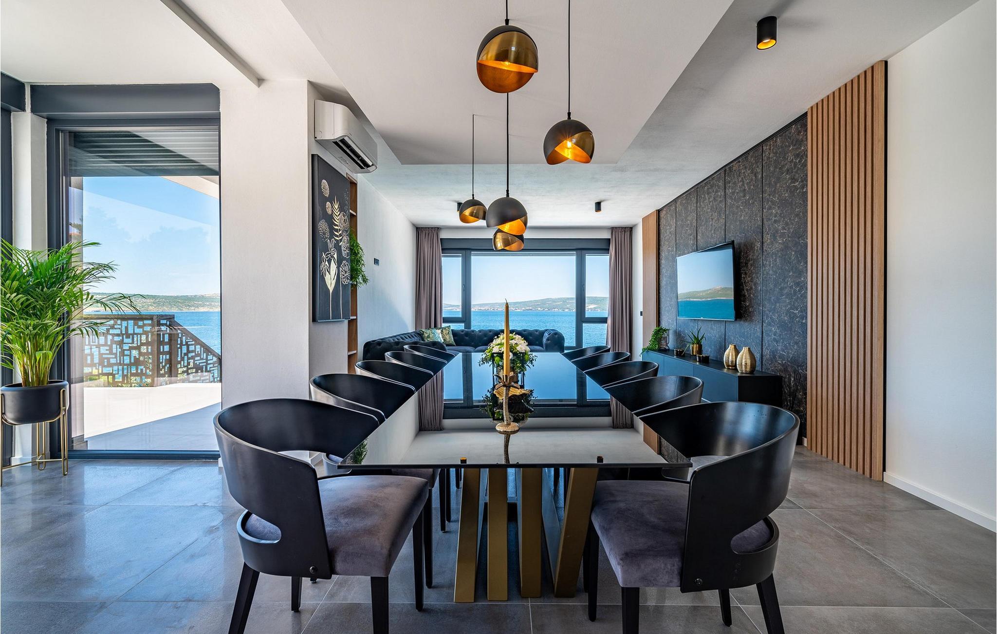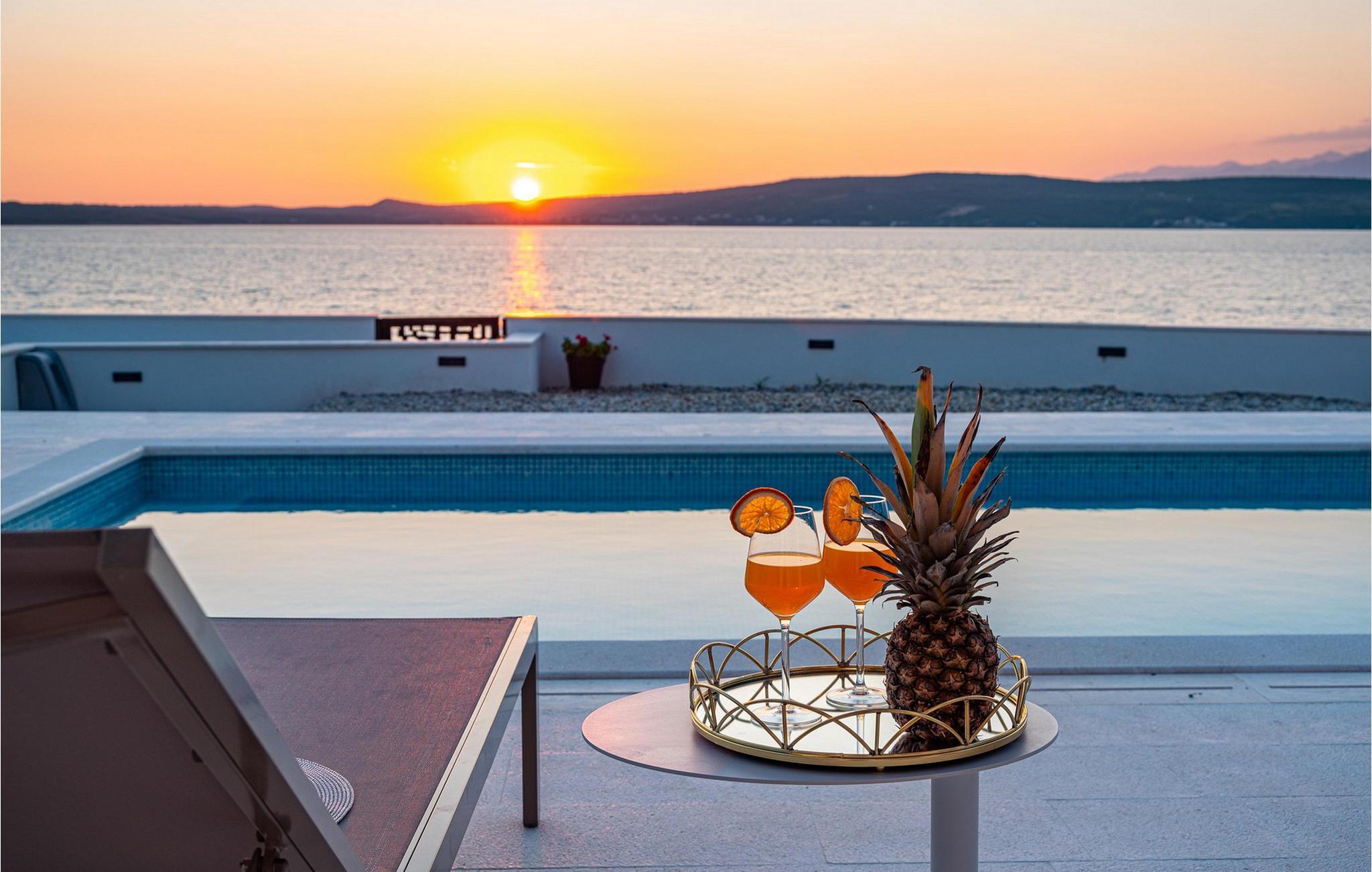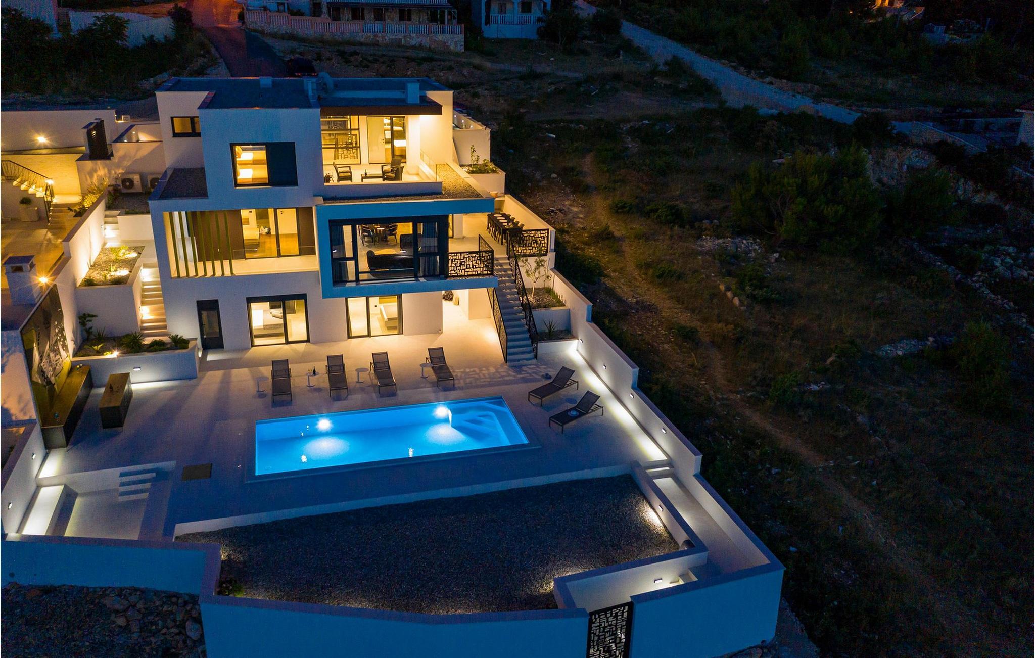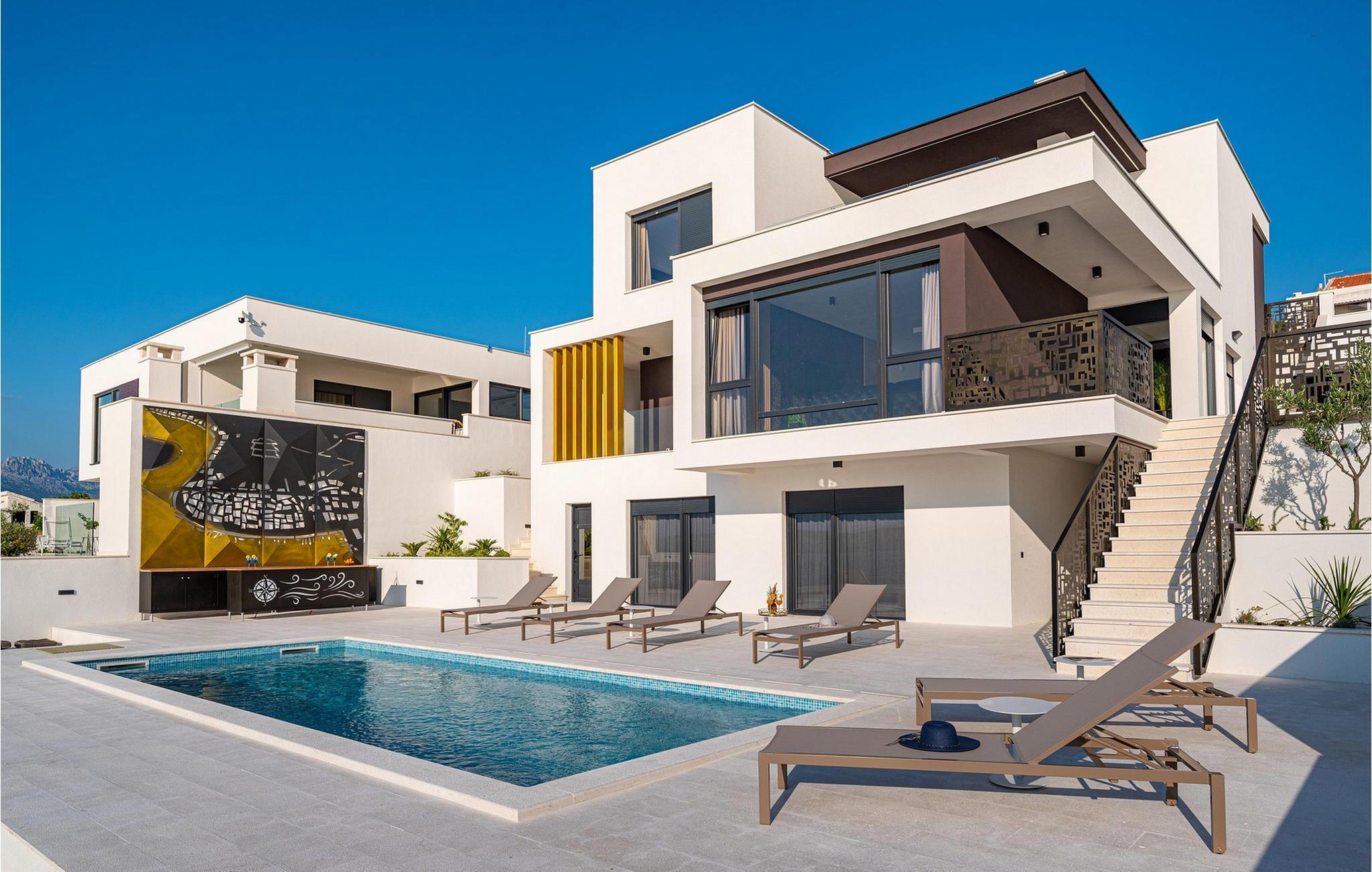 In der historischen dalmatinischen Stadt Novigrad, am Ufer des Novigrader Meeres, befindet sich die wunderschöne Villa Bonella. Die Stadt Novigrad liegt unterhalb des Berges Velebit und ist ein kleines Paradies für alle, die in unberührter Natur entspannen und die bezaubernden dalmatinischen Orte erkunden möchten. Wenn Sie diesen Ort für Ihren Urlaub wählen, werden Sie mit Ihrer Familie oder Ihren liebsten Freunden unvergessliche Momente der Entspannung und des Spaßes verbringen. Mit einer Fläche von 700 m² bietet die Villa Bonella einen Blick auf die klare Adria und ist eine ideale Wahl für maximal 10 Gäste. Sie verfügt über 5 Schlafzimmer mit Doppelbetten und 5 eigene Badezimmer mit Duschen. Im Erdgeschoss befinden sich 2 Schlafzimmer mit TV, Blick auf die Terrasse und den Pool sowie eine Sauna, in der Sie vollkommen entspannen und die Ruhe genießen können. Im ersten Stock befindet sich eine moderne Küche mit ausreichend Platz für die Zubereitung köstlicher Mahlzeiten, gefolgt von einem Esszimmer mit einem Tisch mit 10 Sitzplätzen. In der Nähe des Esszimmers befindet sich ein geräumiges Wohnzimmer mit Couchtisch und Fernseher, wo Sie interessante Filme oder Serien genießen können. Der Esstisch im Freien für 10 Personen ist ein Ort, an dem Sie mit Ihren Freunden bis spät in die Nacht Spaß haben werden. Im zweiten Stock befinden sich 3 weitere Schlafzimmer mit Doppelbetten und Blick auf das Meer. Wenn Sie mit Kindern unterwegs sind, stehen Ihnen auch ein Babybett und ein Hochstuhl zur Verfügung. Auf der oberen Außenterrasse gibt es eine Sitzgarnitur mit einem Tisch, an dem Sie Ihren Morgenkaffee mit Blick auf die Inseln genießen können. Auf der großen Terrasse gibt es einen beheizten Pool von 36 m2, der sich perfekt zum Schwimmen bei Nacht oder am Tag eignet. Daneben gibt es 6 Sonnenliegen und eine Bar im Freien, an der Sie köstliche Sommercocktails genießen können. Die umzäunte Villa Bonella bietet Ihnen die Möglichkeit, sich in völliger Privatsphäre zu sonnen und mit Ihrer Familie Spaß am Pool zu haben. Villa Bonella verfügt über 3 Parkplätze, und wenn Sie mit dem Boot statt mit dem Auto anreisen, gibt es auf Anfrage einen Bootsanlegeplatz. Entspannen Sie sich in der Villa Bonella, gönnen Sie sich den Luxusurlaub, den Sie verdienen, haben Sie Spaß auf dem Fluss Zrmanja, der Spaß beim Rafting und Kanufahren bietet, und Sie können sich im Kajakfahren versuchen. Besuchen Sie Nationalparks wie Paklenica, Plitvice, Krka oder Kornati, erkunden Sie den größten Höhlenkomplex Kroatiens – die Cerovac-Höhlen oder den Naturpark Velebit. Entfliehen Sie dem hektischen Alltag und die Villa Bonella vermittelt Ihnen ein Gefühl von Frieden und Ruhe. Willkommen! Bitte beachten Sie, dass diese Unterkunft keine Jugendgruppen oder Junggesellenabschiede akzeptiert. Eine Jugendgruppe in dieser Unterkunft besteht aus Personen unter 30 Jahren. Buchen Sie diese Unterkunft nicht, wenn Sie eine Jugendgruppe oder ein Junggesellenabschied sind, da Ihre Buchung nach der Buchung abgelehnt wird, was auch bei der Ankunft in der Unterkunft oder während Ihres Aufenthalts der Fall sein kann, und Sie keine Rückerstattung erhalten.