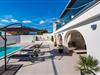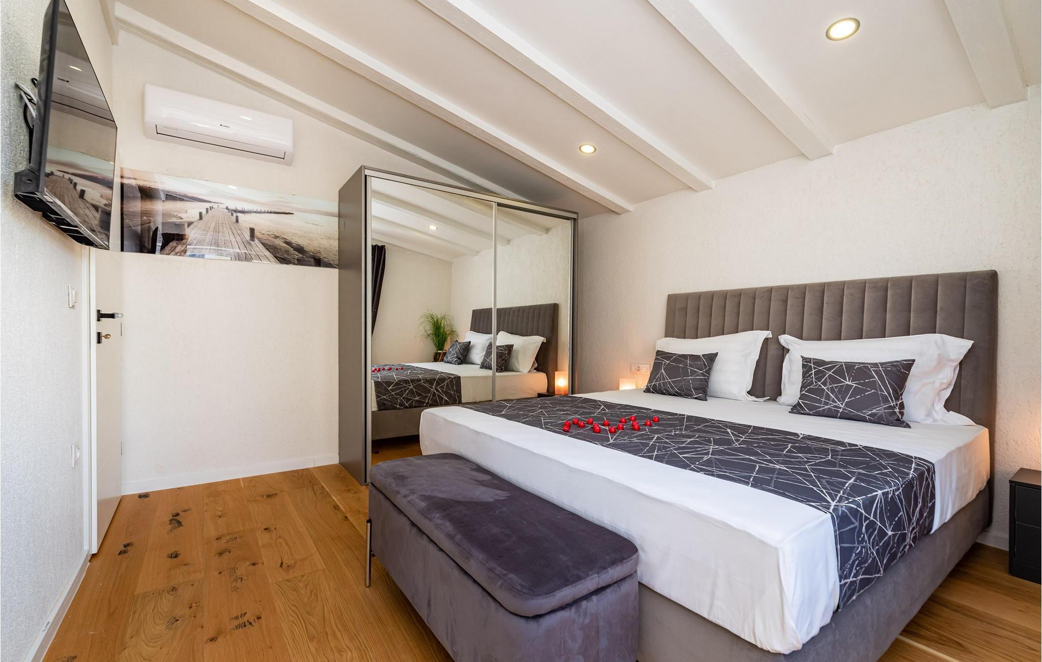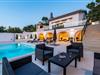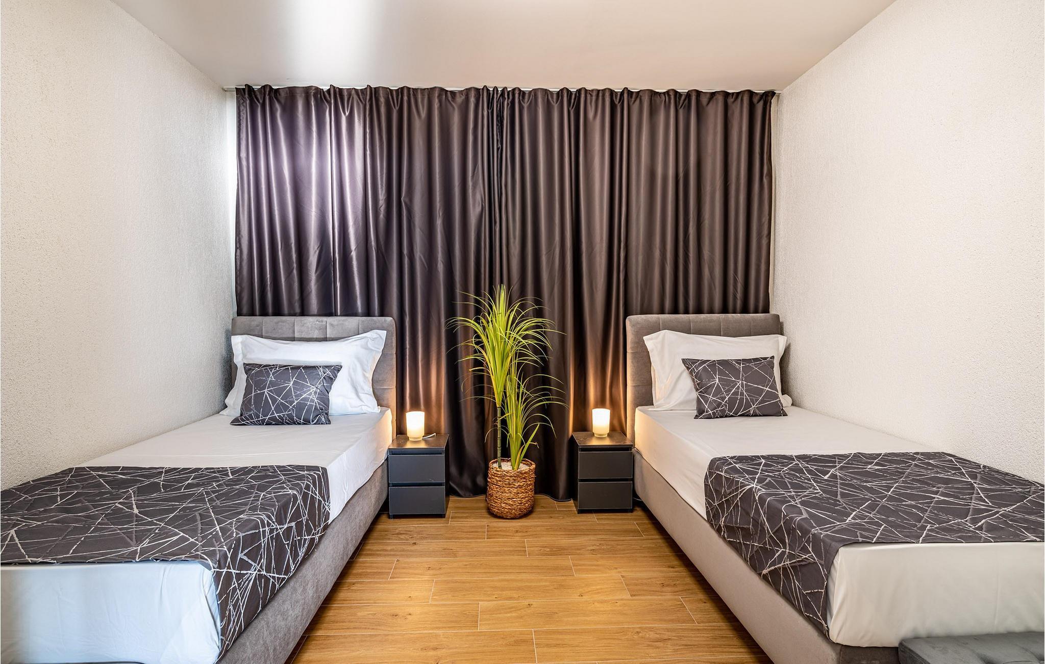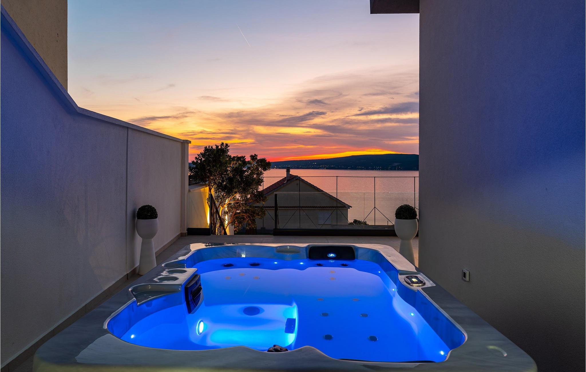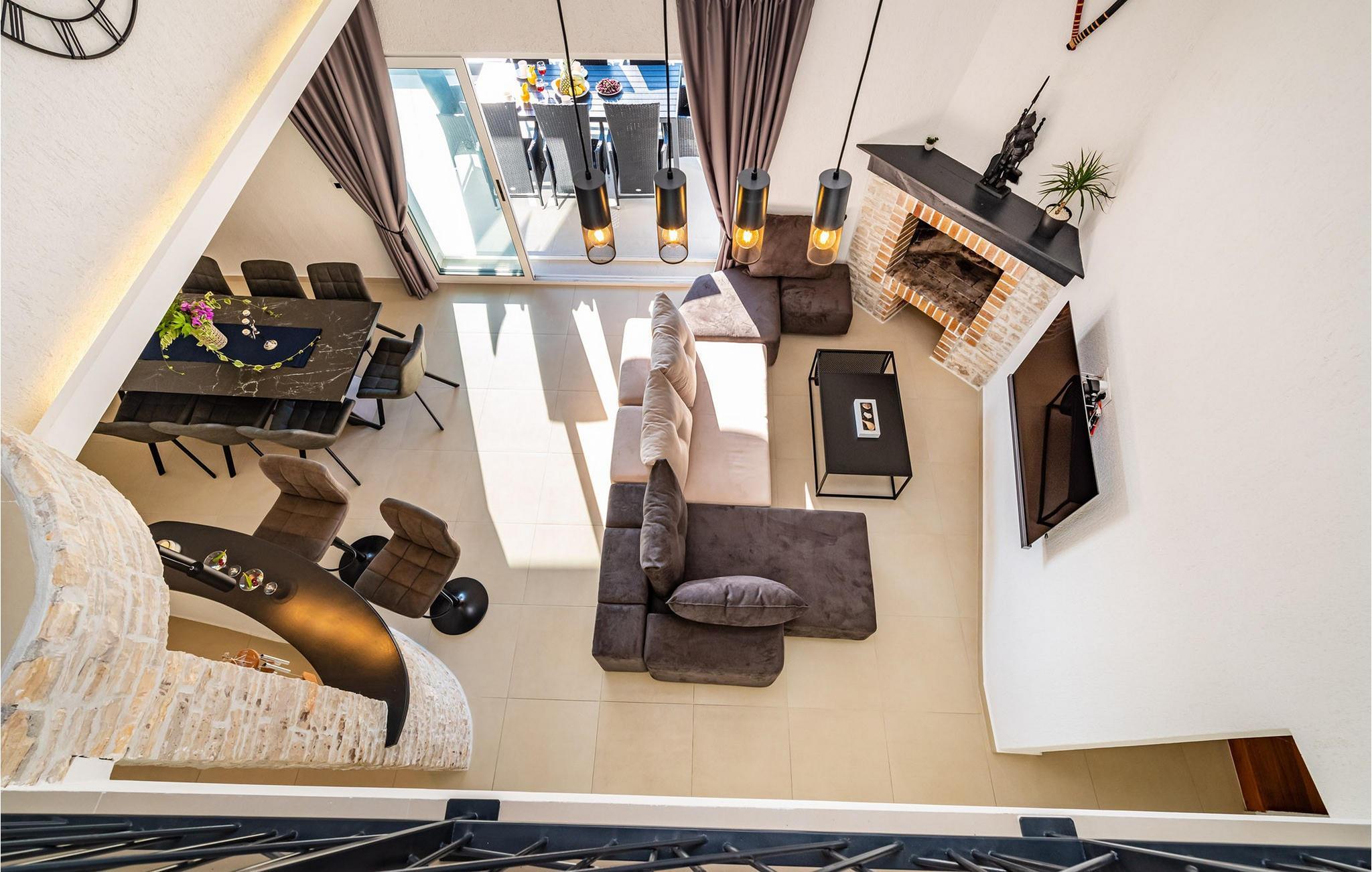 Für den ultimativen modernen Kurzurlaub und Urlaub an der Adria ist die Villa Ava in Novigrad in der Nähe von Zadar genau das Richtige. Diese moderne Villa in Novigrad bietet viele Möglichkeiten zur völligen Entspannung und zum Vergessen des Alltagslebens. Das prächtige, für absolute Privatsphäre geschützte Gebäude auf insgesamt drei Etagen bietet Vergnügen ohne Ablenkung und die Innen- und Außenanlagen sind mit modernen Annehmlichkeiten für einen äußerst angenehmen Aufenthalt für Erwachsene und Kinder auf insgesamt 1.000 Quadratmetern ausgestattet. Der Innen- und Außenbereich ist sorgfältig mit stilvollem Design und zeitloser Eleganz gestaltet, was zu einem ruhigen Raumgefühl führt. Eines der Lieblingsmerkmale dieser Villa ist die Tatsache, dass die Innen- und Außenräume ideal miteinander kommunizieren und mit all ihren modernen und funktionalen Annehmlichkeiten ein äußerst angenehmes Ganzes bilden. In der obersten Etage befinden sich zwei geräumige, helle, modern eingerichtete Schlafzimmer mit angeschlossenen En-Suite-Badezimmern in luxuriösem Design mit Badewannen und begehbaren Duschen, von denen eines über eine eigene Terrasse mit dazugehörigen Einrichtungen zum Entspannen verfügt. Neben den Zimmern gibt es auch eine Ecke zum Entspannen und Lesen mit einem Massagesessel. Die mittlere Etage besteht aus einem geräumigen, modern eingerichteten Wohnzimmer, Esszimmer, Küche, Schlafzimmern, Badezimmern und darunter einer Wellnessoase mit finnischer Sauna und einem Ruhebereich mit Zugang zu einem Teil der Terrasse mit Whirlpool. Vom Wohnzimmer aus gibt es einen Ausgang zu einer geräumigen Terrasse mit Blick auf das Meer und das Velebit-Gebirge. Die Terrasse ist mit einem Steingrill im Freien abgeschlossen. Die untere Etage ist die endgültige Kombination aus der Sport- und Erholungszone und der Hedonismus- und Unterhaltungszone im Außen- und Innenbereich. Im Innenteil gibt es nämlich eine Taverne mit überdachter Außenküche und Esszimmer, dann Innen- und Außenduschen, einen Bereich mit Massagetisch, ein Spielzimmer mit PlayStation, einen weiteren Raum mit Tischfußball und Darts sowie ein Fitnessstudio Davor steht ein Projektor für ein sommerliches Kinoerlebnis. Daran schließt sich ein großer Innenhofbereich mit einem wunderschönen perlweißen Swimmingpool an, von dem aus Sie einen Blick auf die gesamte Landschaft und das Novigrader Meer genießen können, sowie auf den dazugehörigen Tennisplatz aus Kunstrasen. Auf dem Tennisplatz gibt es auch weitere Sportmöglichkeiten für Fußball und Basketball. Schauen Sie sich für einen besseren Eindruck die Fotos an und erleben Sie sorgfältig ausgewählte Details und Dekorationen im Innen- und Außenbereich visuell. Bitte beachten Sie, dass diese Unterkunft keine Jugendgruppen oder Junggesellenabschiede akzeptiert. Eine Jugendgruppe in dieser Unterkunft besteht aus Personen unter 30 Jahren. Buchen Sie diese Unterkunft nicht, wenn Sie eine Jugendgruppe oder ein Junggesellenabschied sind, da Ihre Buchung nach der Buchung abgelehnt wird, was auch bei der Ankunft in der Unterkunft oder während Ihres Aufenthalts der Fall sein kann, und Sie keine Rückerstattung erhalten.