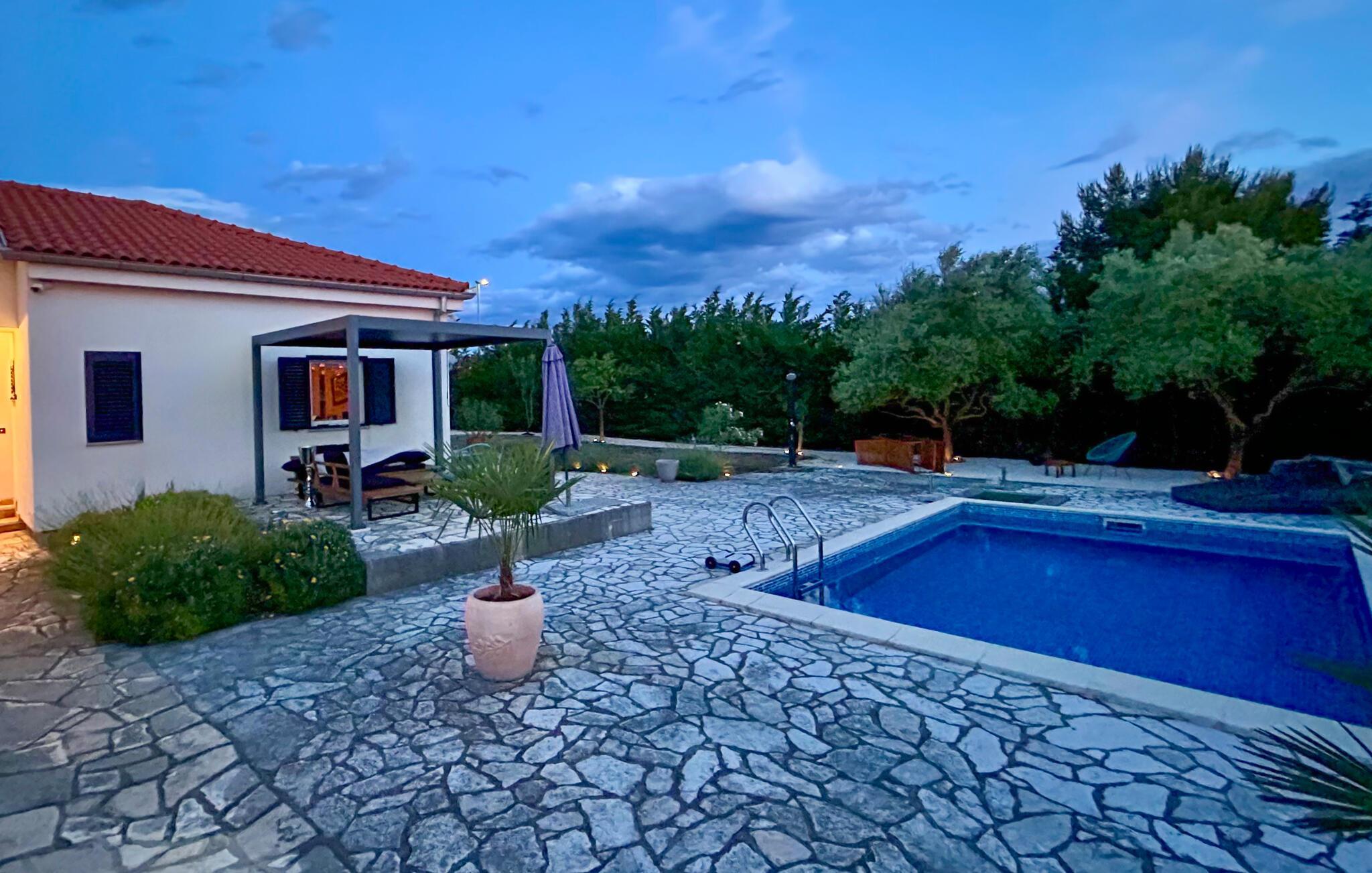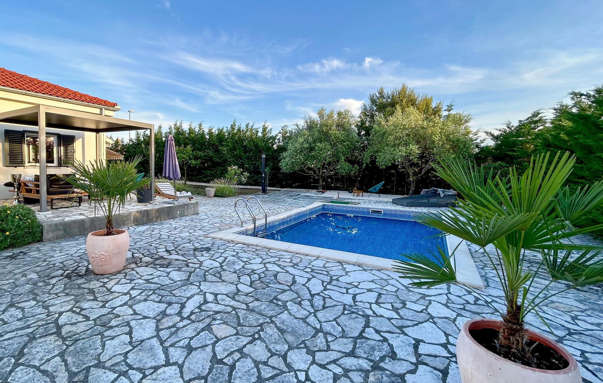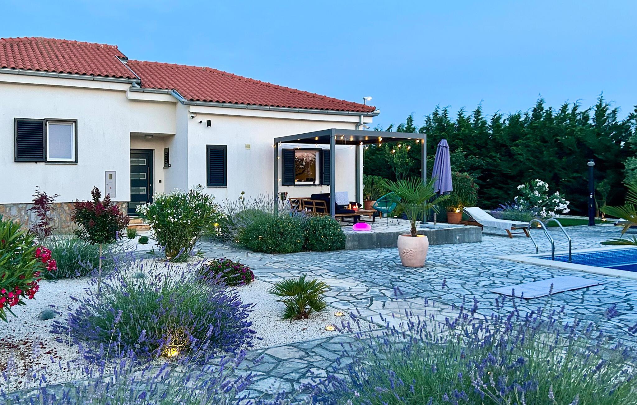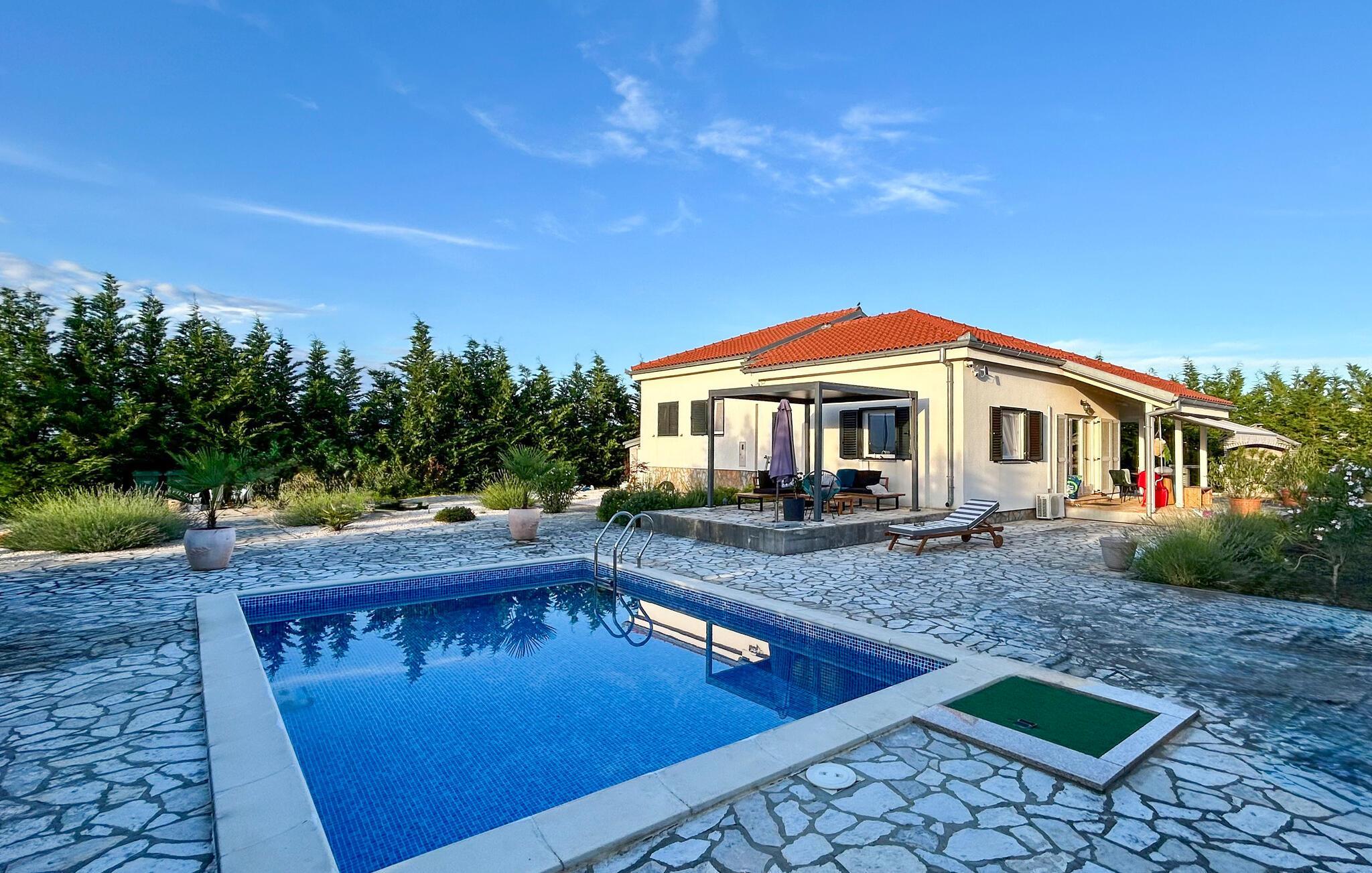 Diese schöne einstöckige Villa liegt nur 3 km vom Meer in Novigrad entfernt und bietet einen wunderschönen Panoramblick auf den Berg Velebit. Es ist ein Ort, an dem das Meer und die Berge zusammenkommen und wilde dalmatinische aromatische Kräuter ein zusätzliches Gefühl von Frische und Vergnügen bieten.