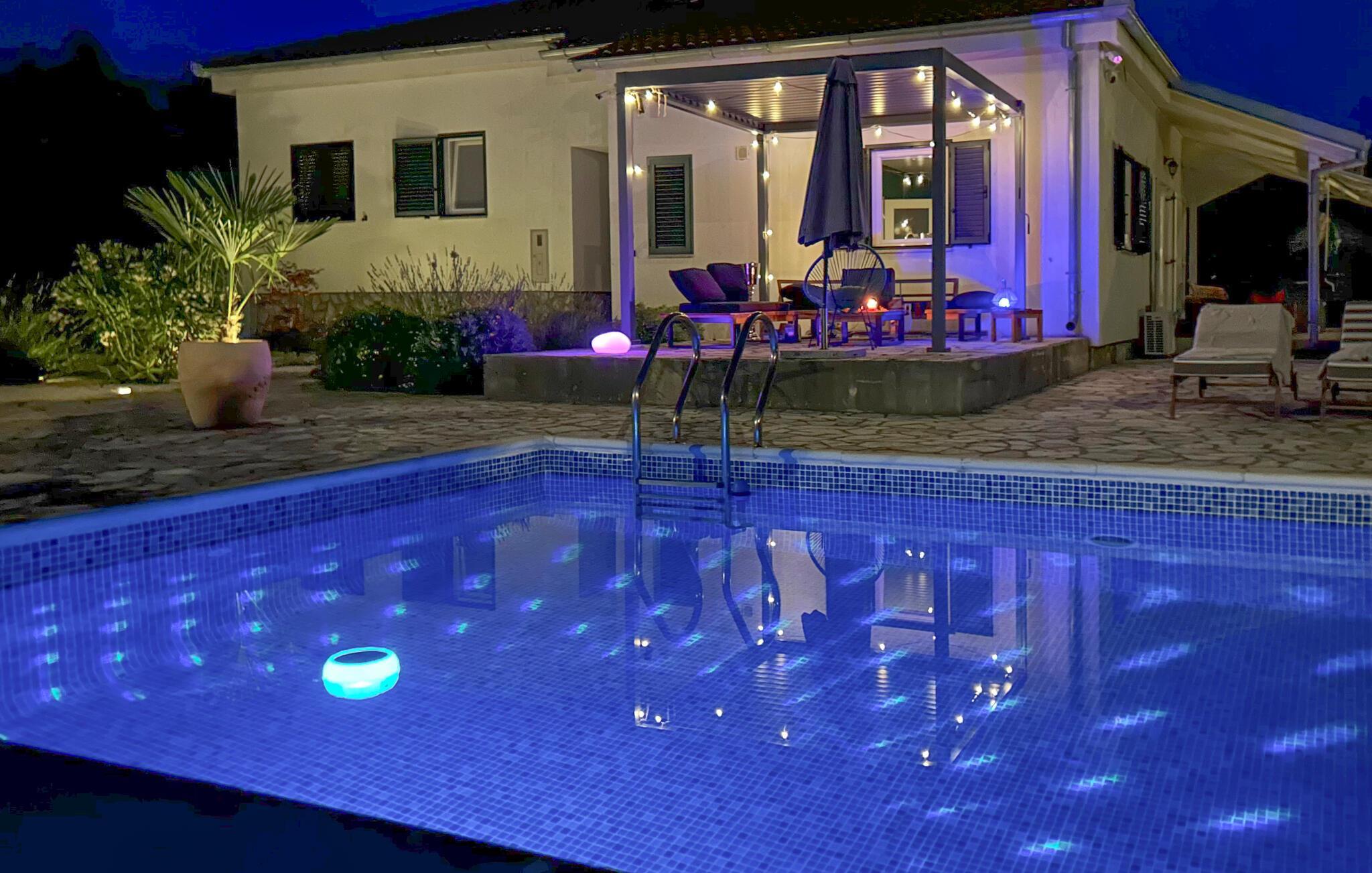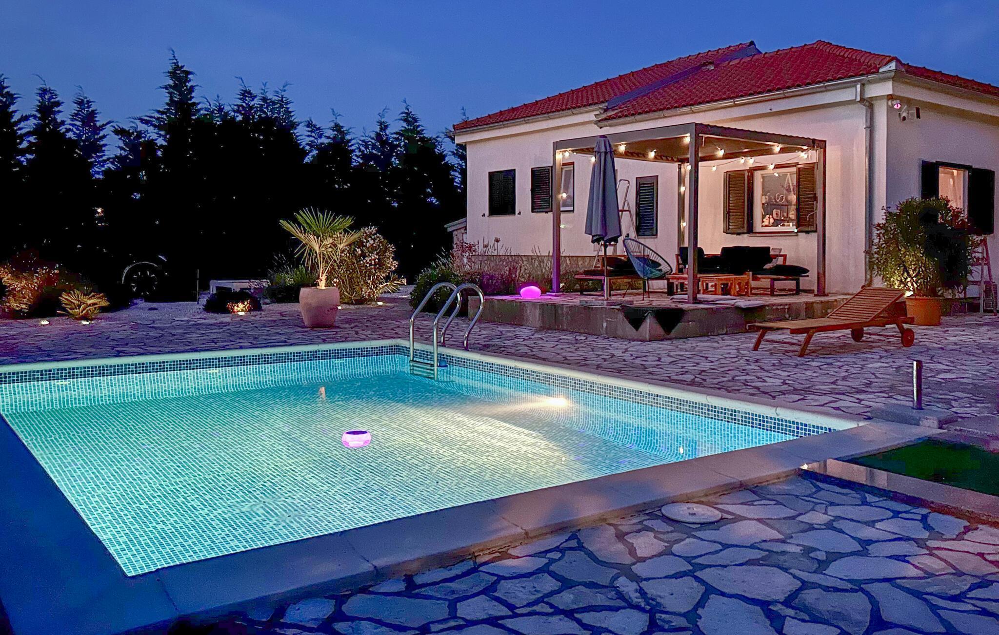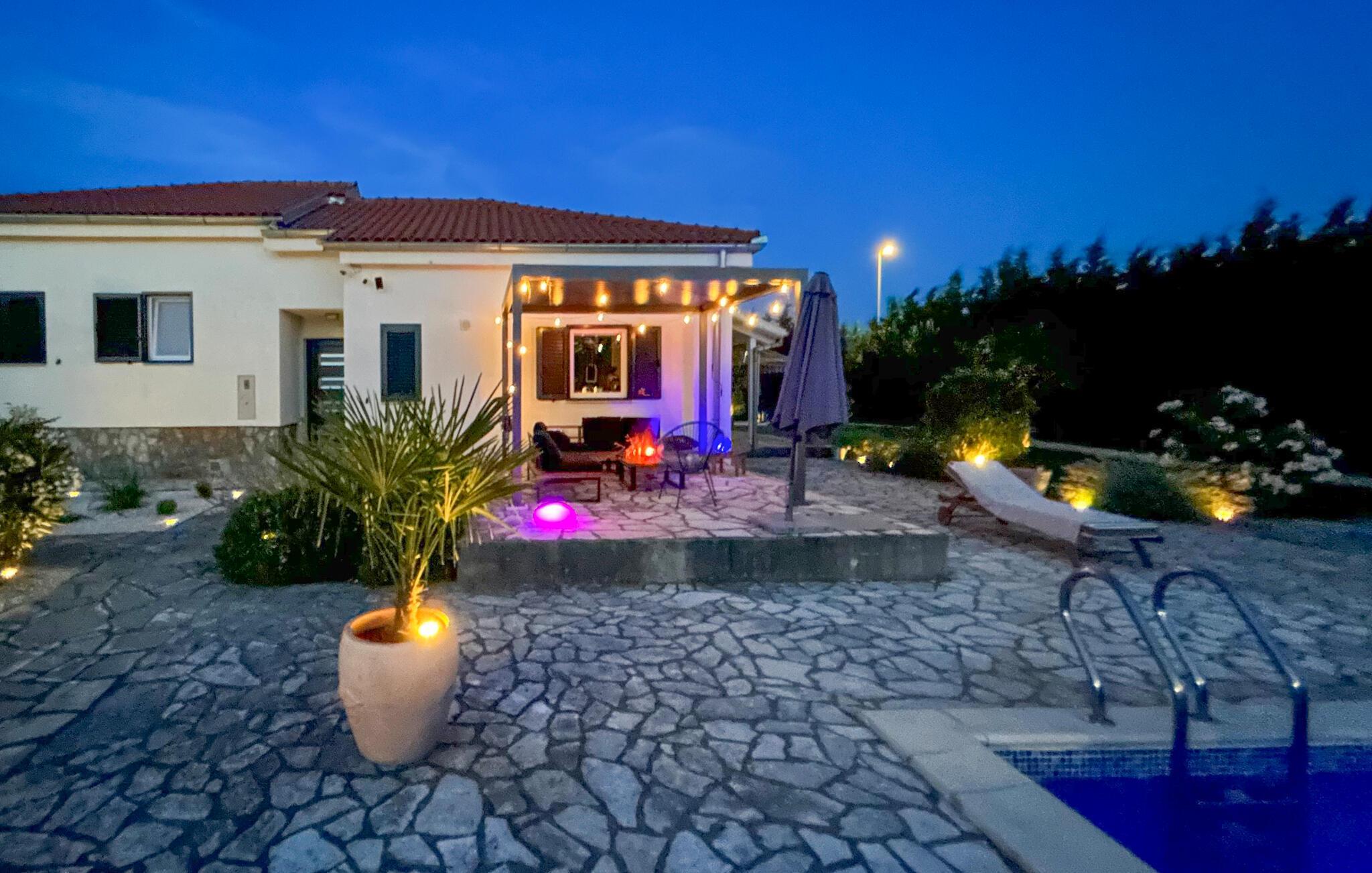 Das Haus liegt isoliert in einer sehr ruhigen Gegend, ist aber nur ungefähr 15 km vom Flughafen Zadar entfernt. Es bietet alle notwendigen Annehmlichkeiten, die Sie im Urlaub benötigen könnten.