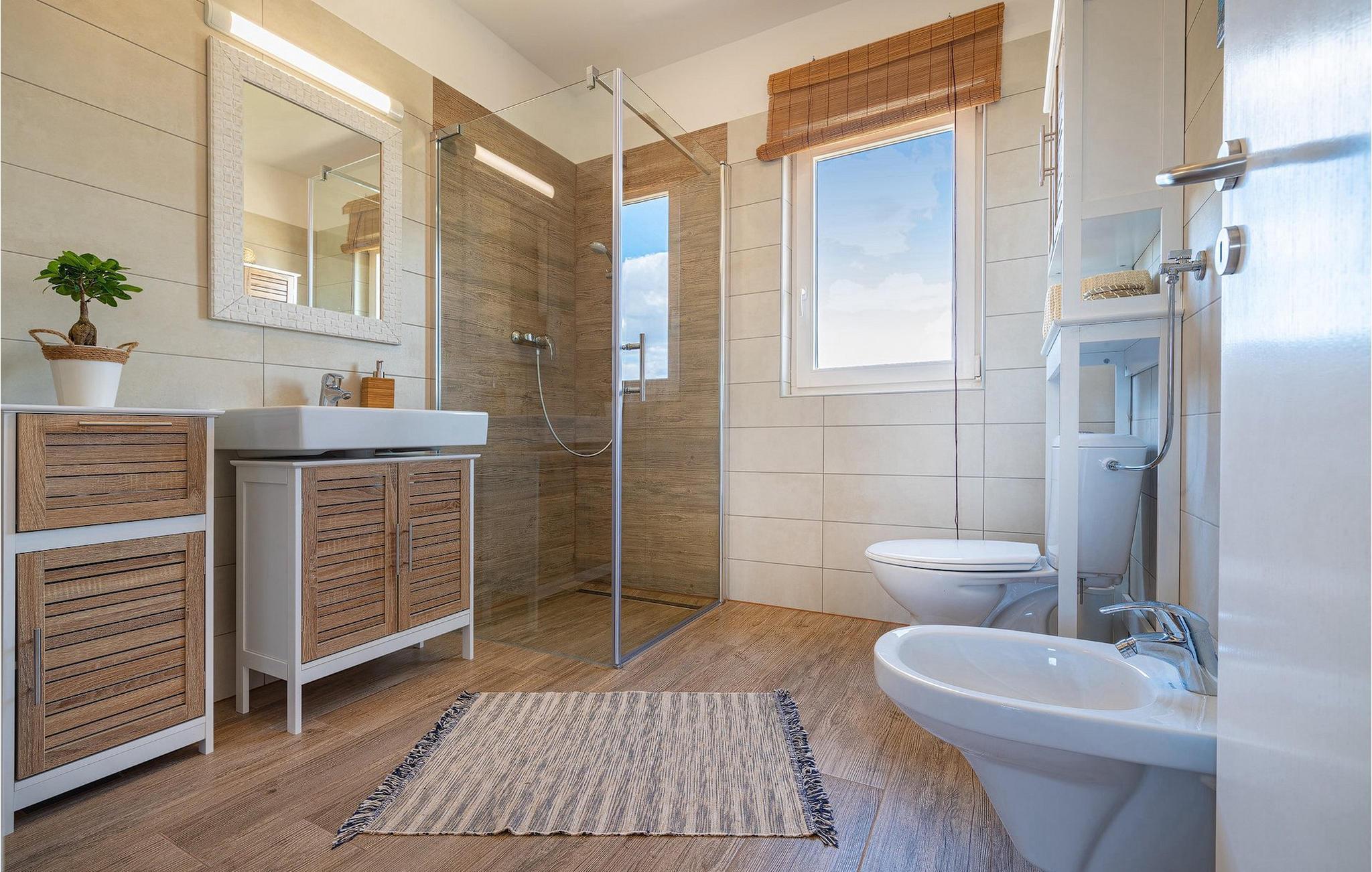 Badezimmer (nr. 2) - WC. Warmes und kaltes Wasser. Dusche