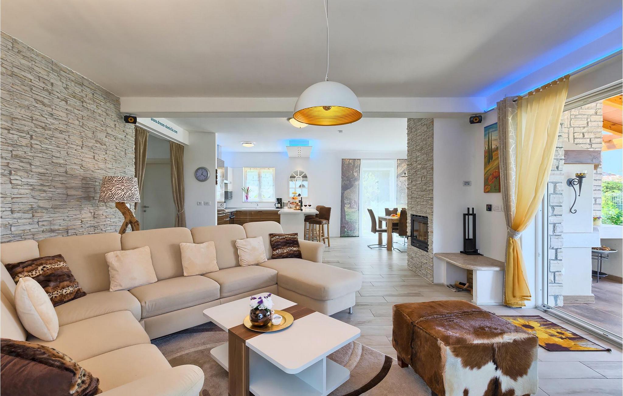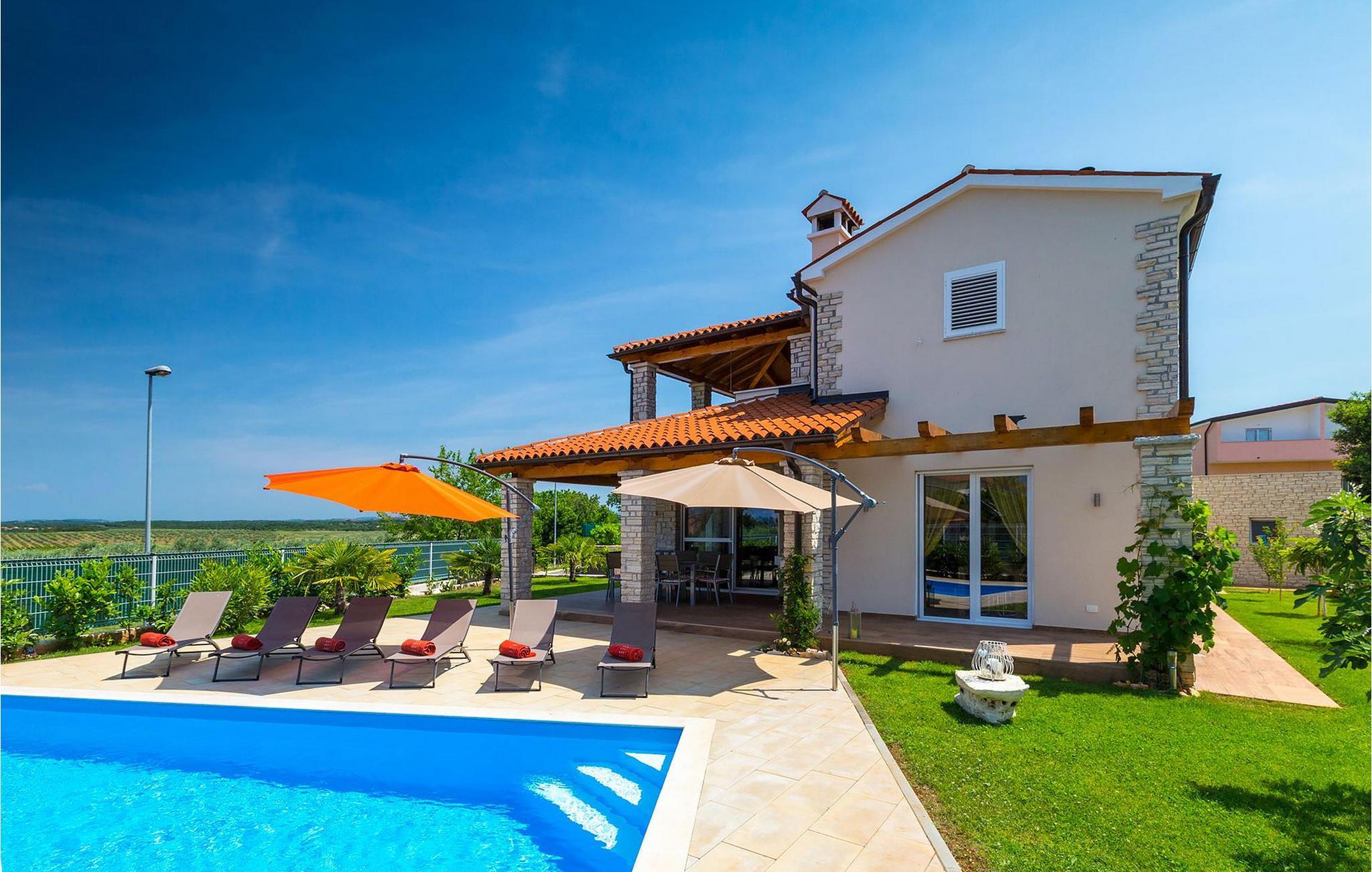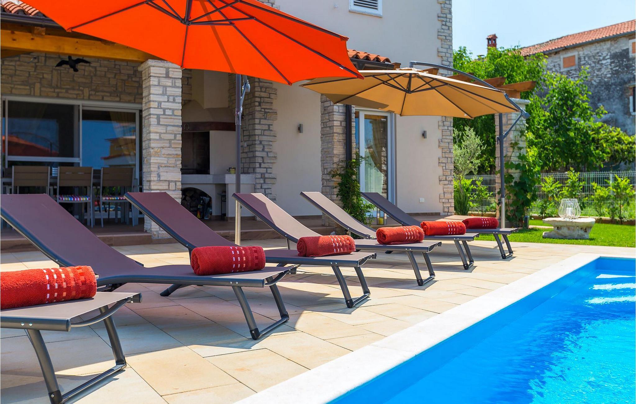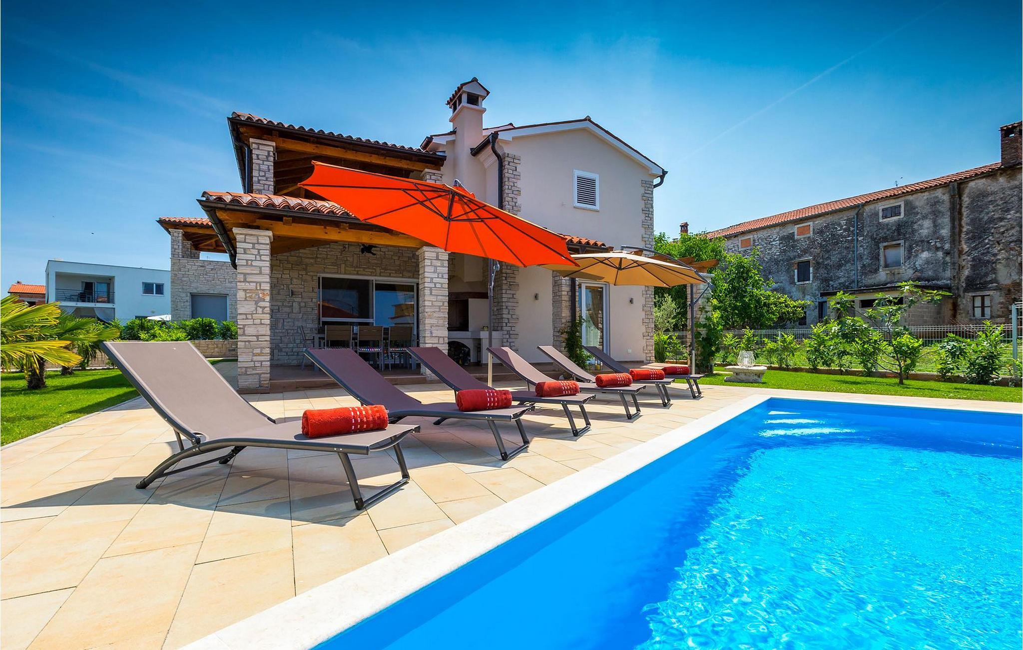 Mit ihrer hervorragenden ruhigen Lage löst diese wunderschöne Villa das Landschaft-oder-Küste Dilemma, da sie von idyllischen Olivenhainen, waldreichen Hügeln und smaragdgrünen Wiesen umgeben ist, während in unmittelbarer Nähe die populäre Küstenstadt Novigrad liegt, wo eine breite Auswahl an Geschäften, Bars, Cafés und Restaurants, sowie eine hübsche Marina und zahlreiche Strände zu finden sind. Sorgfältig auf die Urlaubszeit zugeschnitten ist diese neuerbaute Villa in modernem Stil eingerichtet mit wunderbarer Collage von Texturen und Farben und sorgt so für eine gemütliche Atmosphäre.