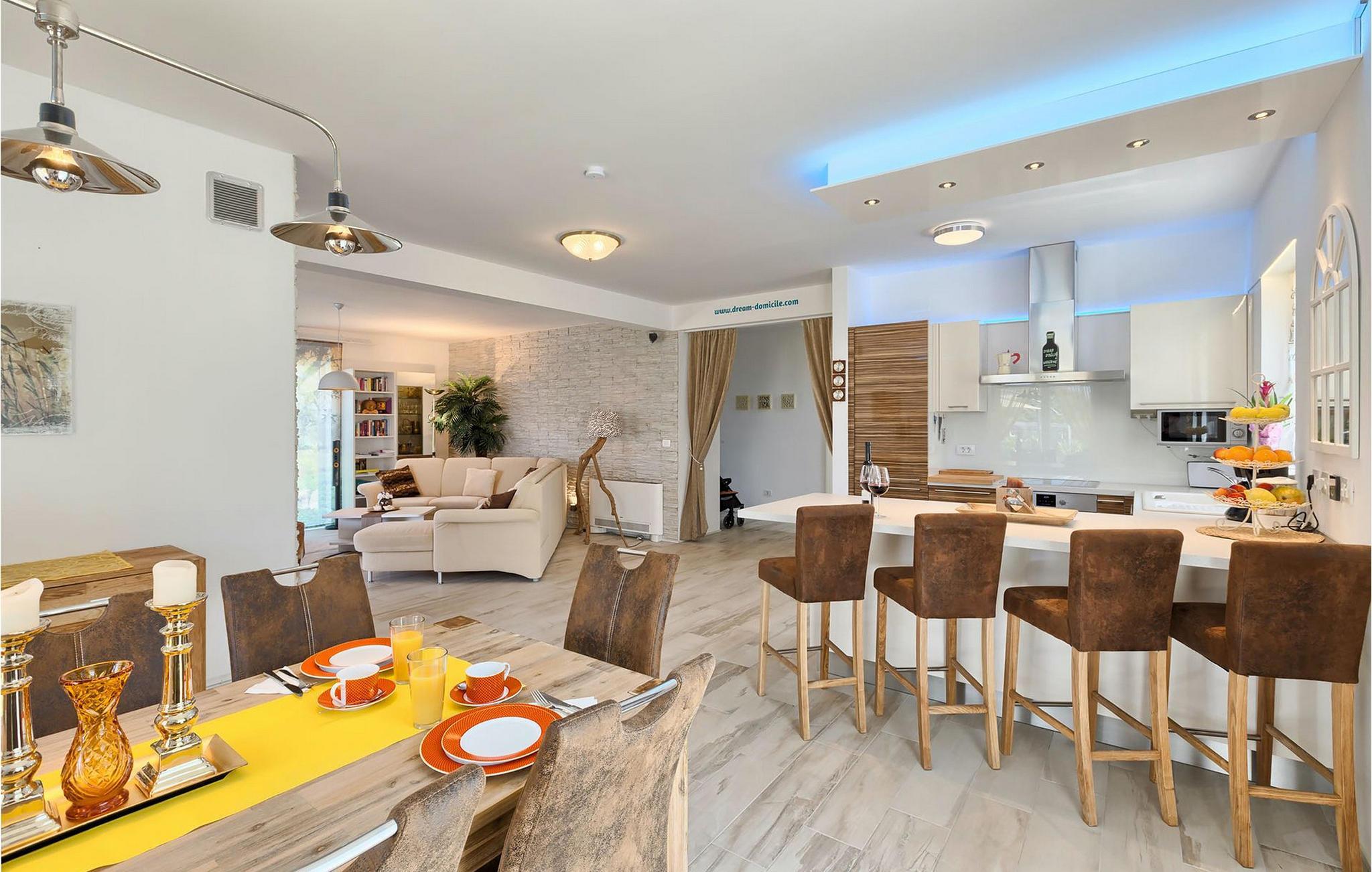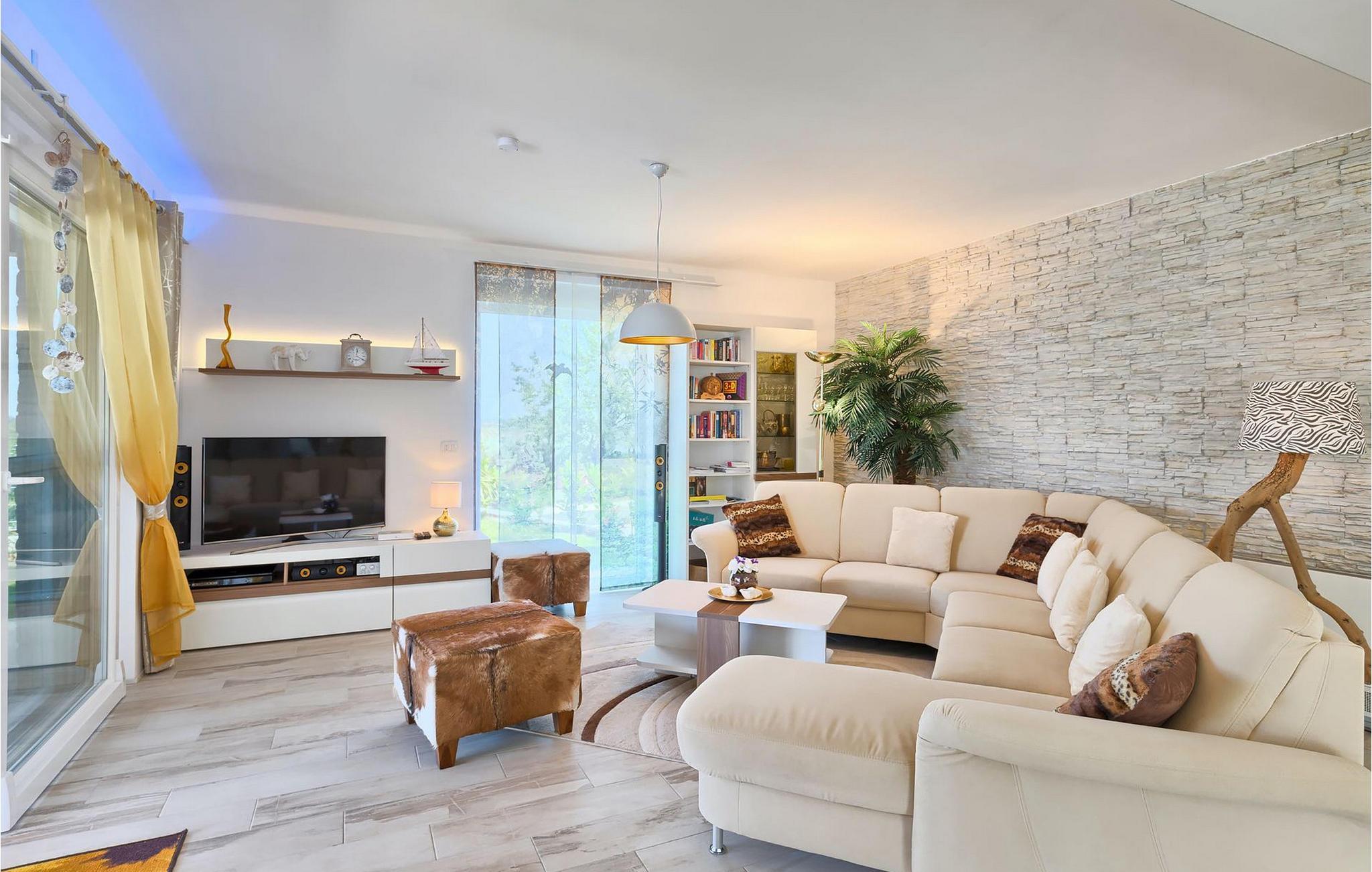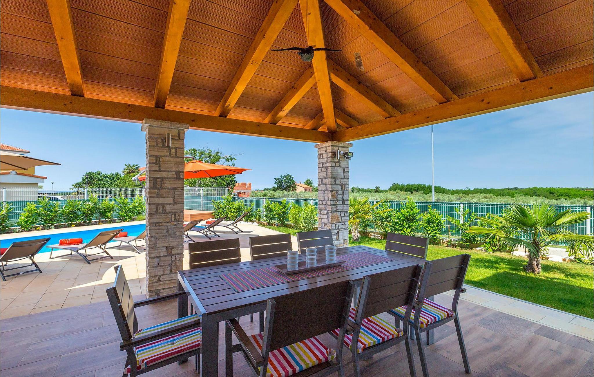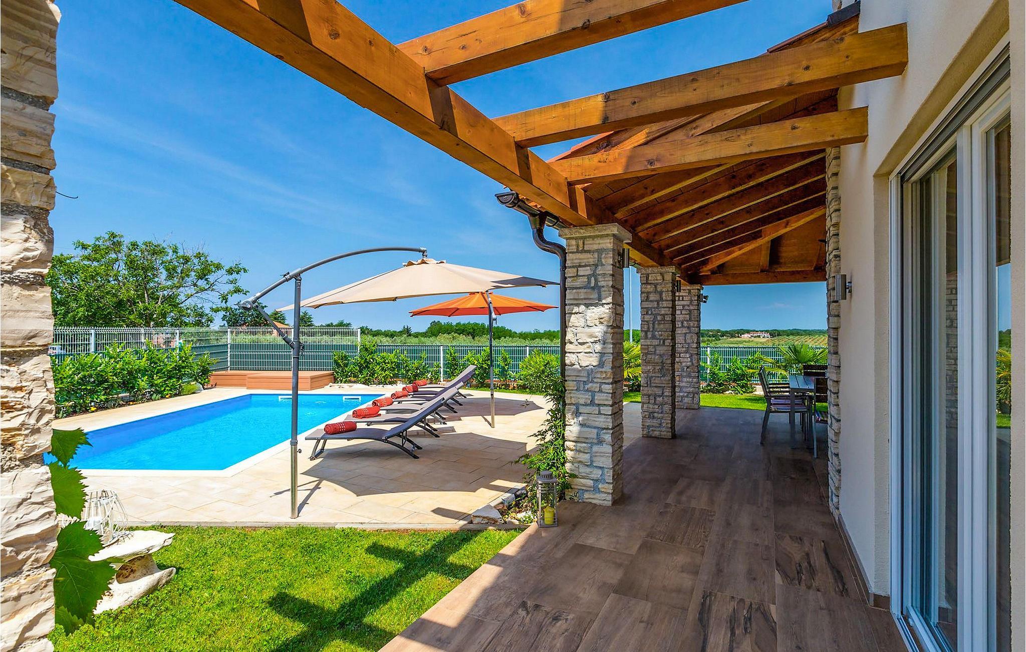 Mit ihrer hervorragenden ruhigen Lage löst diese wunderschöne Villa das Landschaft-oder-Küste Dilemma, da sie von idyllischen Olivenhainen, waldreichen Hügeln und smaragdgrünen Wiesen umgeben ist, während in unmittelbarer Nähe die populäre Küstenstadt Novigrad liegt, wo eine breite Auswahl an Geschäften, Bars, Cafés und Restaurants, sowie eine hübsche Marina und zahlreiche Strände zu finden sind. Sorgfältig auf die Urlaubszeit zugeschnitten ist diese neuerbaute Villa in modernem Stil eingerichtet mit wunderbarer Collage von Texturen und Farben und sorgt so für eine gemütliche Atmosphäre.