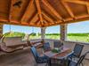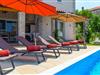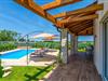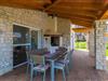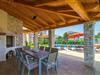 Tritt man aus dem Wohnzimmer auf die riesige überdachte Terasse mit grossem Esstisch, findet man einen einladenden Grillbereich mit offenem Kamin vor. Davor liegt die großzügig angelegte Sonnenterasse mit einem verlockenden beheizbaren privaten Pool - perfekt für genussvolle Sonnenbäder, während Sie die angenehme würzige Naturluft der Wein- und Olivenhaine genießen können. Zum Parken steht eine Parkfläche auf dem Grundstück zur Verfügung.