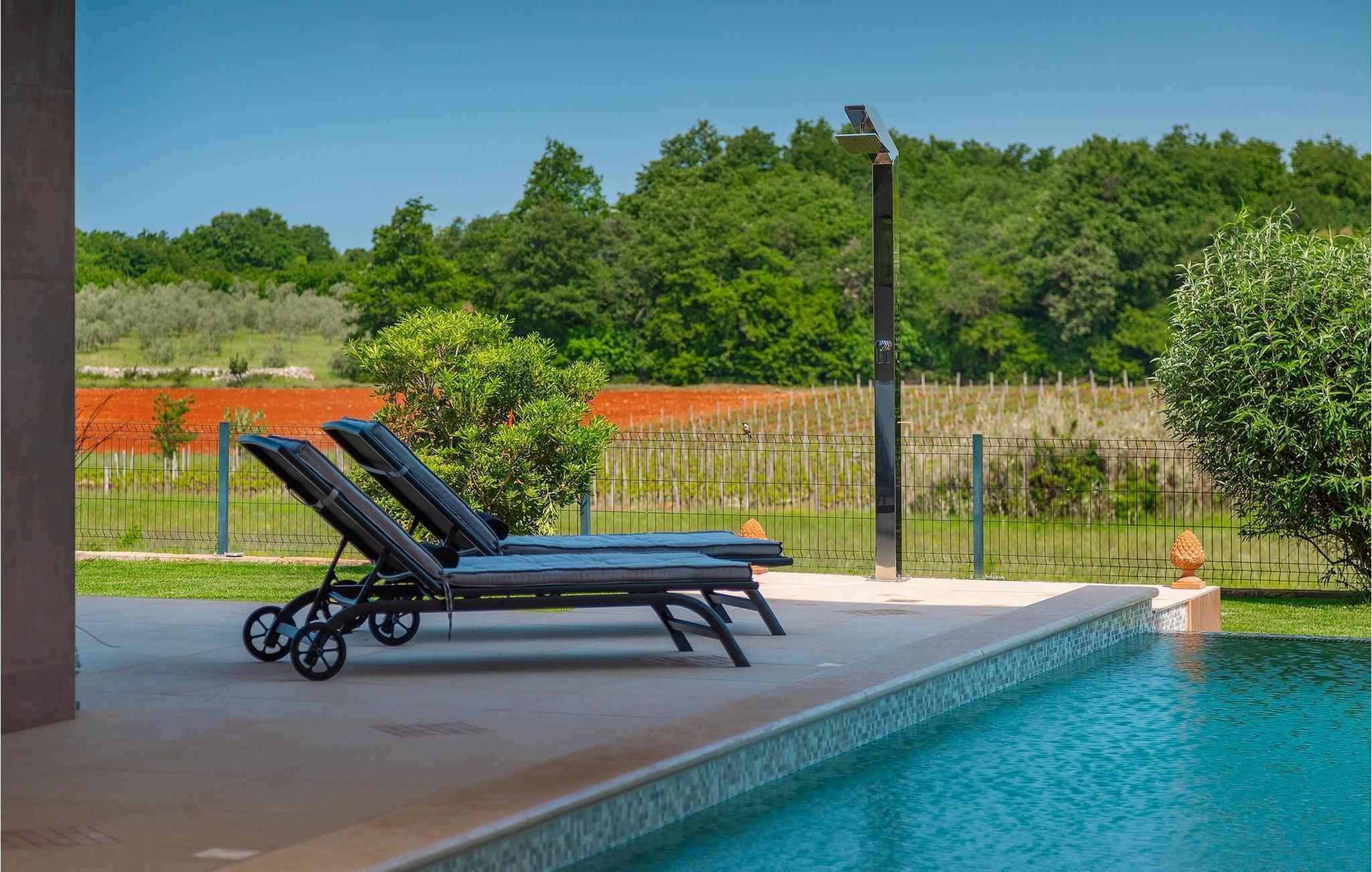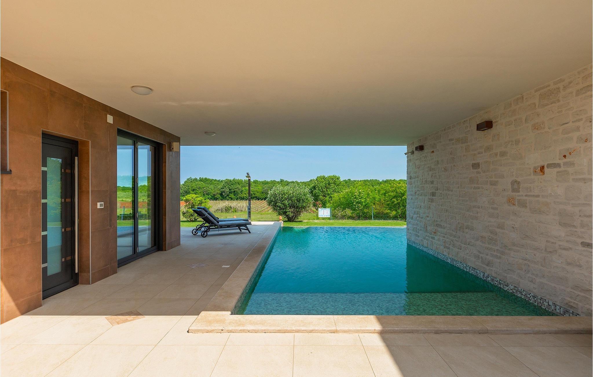 Am Stadtrand von Novigrad an der Westküste Istriens liegt die luxuriöse Villa Felice Novigrad umgeben von grüner Landschaft. Dies ist die Villa, in der Sie Ihren wohlverdienten Urlaub mit Familie und Freunden in vollen Zügen genießen können. Der absolute Hingucker ist neben dem modernen Design der Villa sicherlich der 50m2 große private Pool. Erfrischen Sie sich hier an heißen Sommertagen und lassen Sie die Seele baumeln, während Sie Ihren Blick über die grüne Umgebung schweifen lassen. Entspannen Sie auf einer der Sonnenliegen und tanken Sie die istrische Sonne.