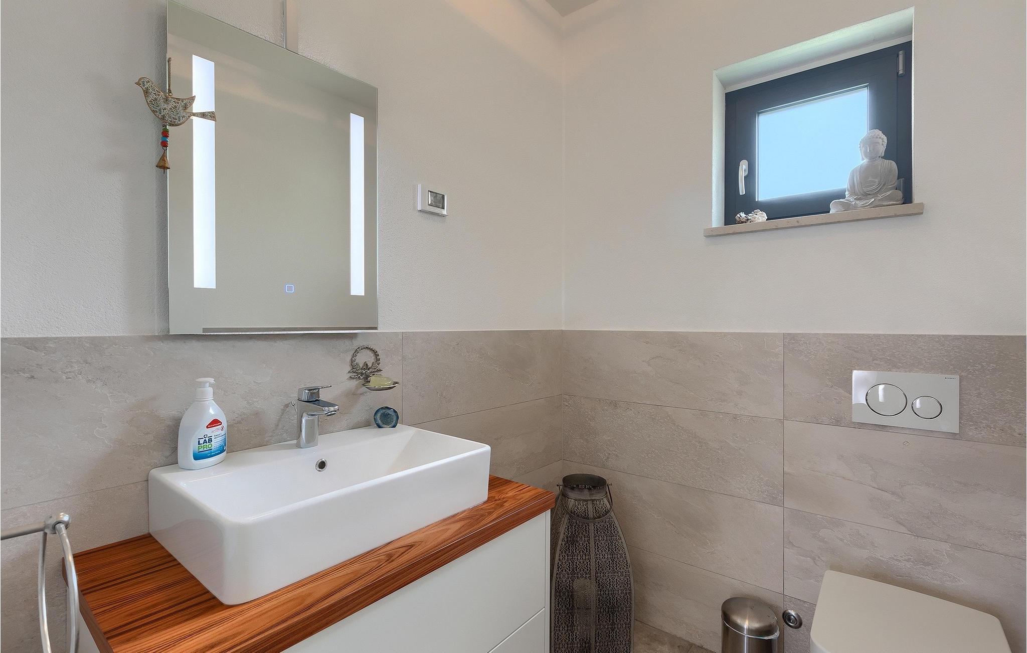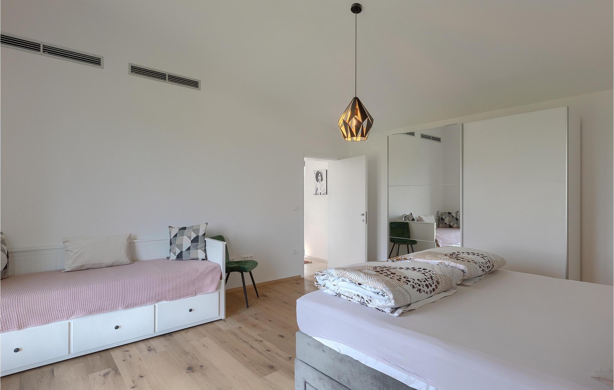 Betreten Sie das helle und offene Interieur der Villa Felice Novigrad, so befinden Sie sich im voll klimatisierten Wohn- und Essbereich mit gut ausgestatteter Küche. Die 3 großzügigen Schlafzimmer auf der oberen Etage verfügen über gemütliche Doppelbetten, die erholsame Nächte versprechen. In einem der Schlafzimmer gibt es dazu noch eine Schlafcouch für 2 Personen. Zwei der Schlafzimmer haben Zugang zum großen Balkon. Hervorzuheben ist die fantastische Lage der Villa Felice Novigrad, denn sie liegt nur 2,8km entfernt vom nächsten Kiesstrand.