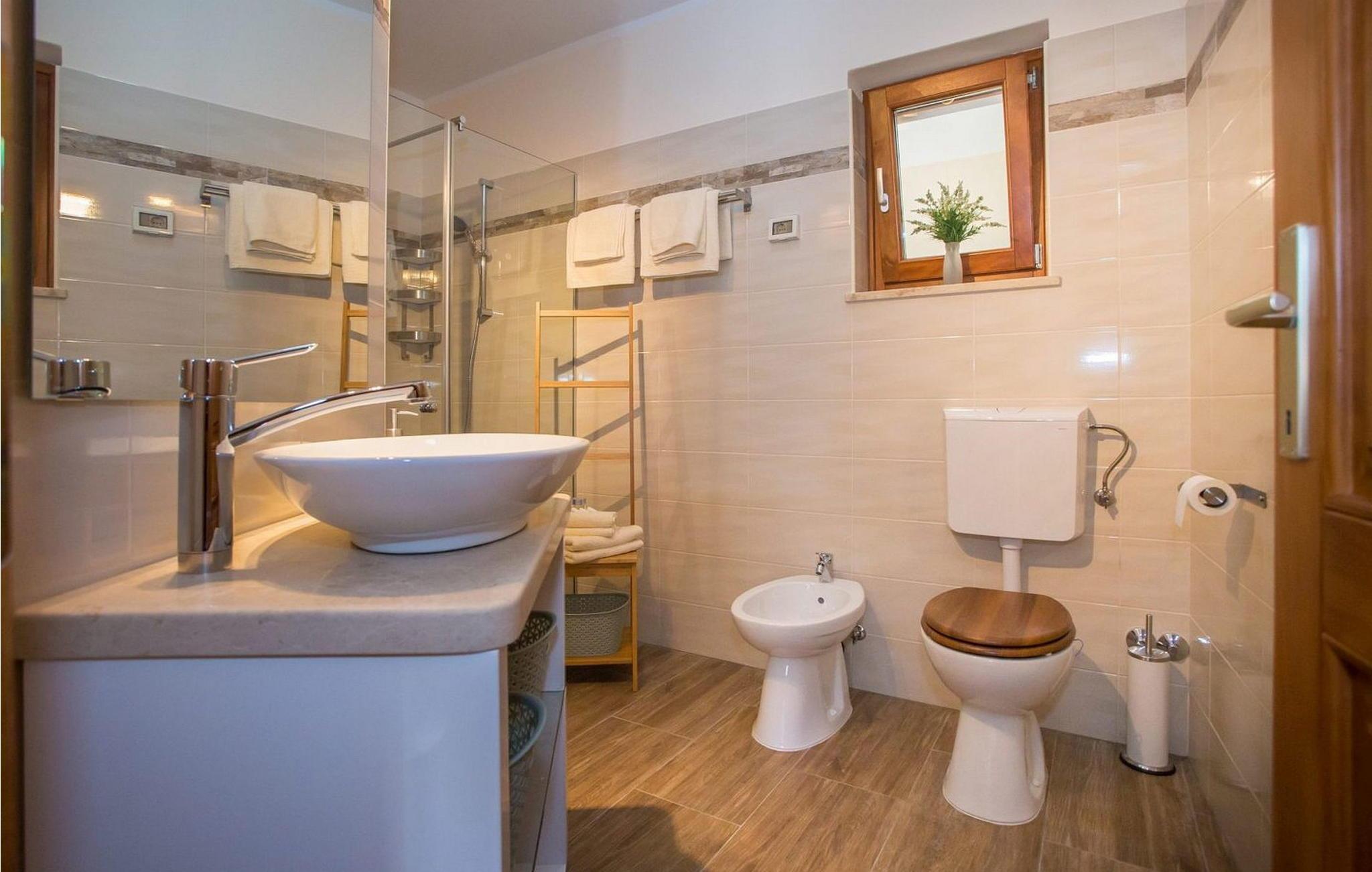 Badezimmer (nr. 1) - WC. Warmes und kaltes Wasser. Dusche