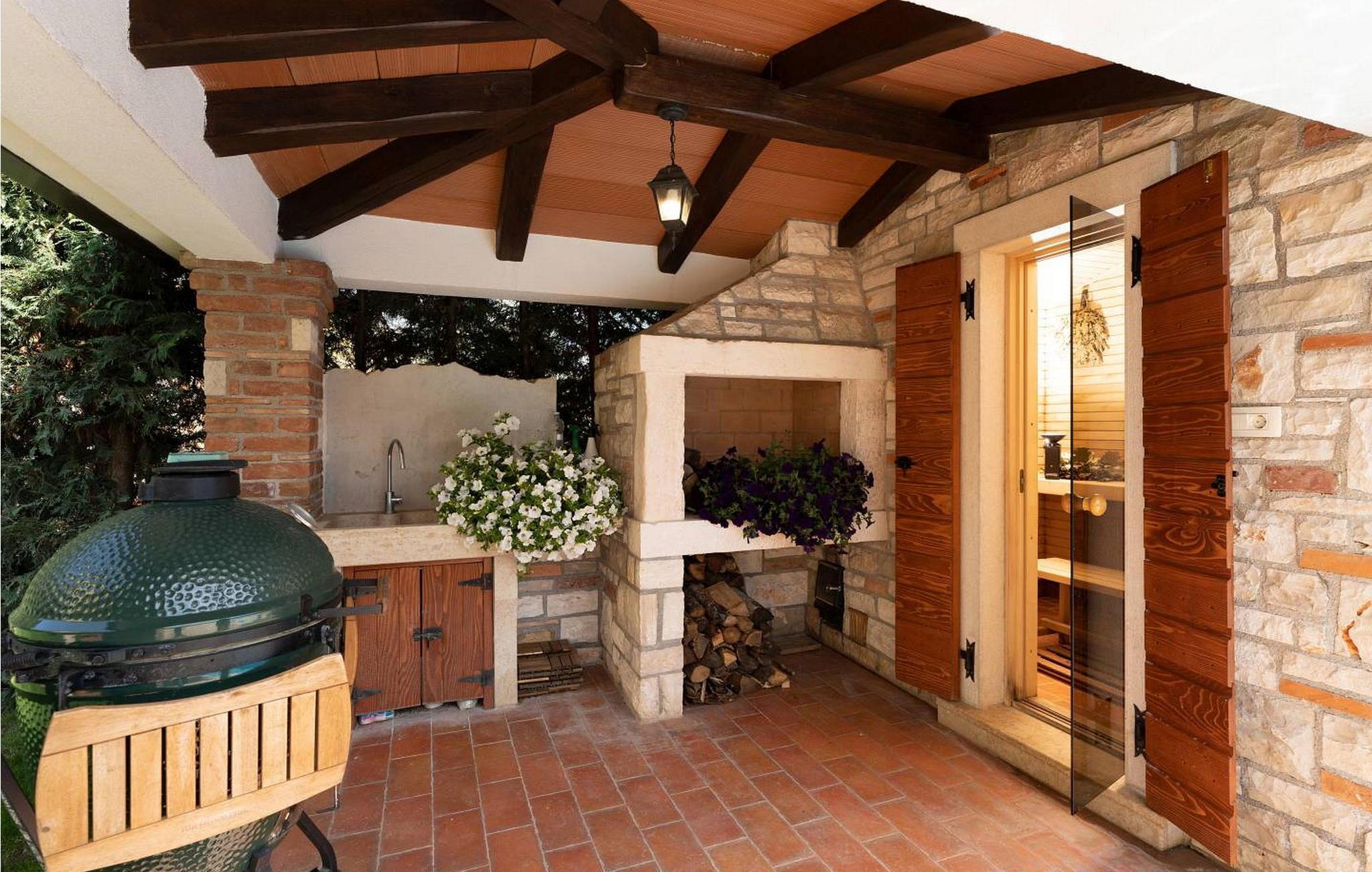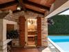 Villa Eva verfügt über einen Swimmingpool, Sonnenliegen, einen Esstisch, eine überdachte Sommerküche mit Kamin, eine Sauna, zwei Fahrräder und mehrere Parkplätze in ihrem vollständig umzäunten und sorgfältig gepflegten Garten. Der Strand und die Geschäfte sind nur wenige Gehminuten entfernt, während der Wasserpark 8 km entfernt ist. Die Stadt Novigrad mit vielen touristischen Einrichtungen, Restaurants, Tavernen, Cafés, Geschäften, Souvenirläden und historischen Sehenswürdigkeiten ist nur 4 km entfernt.