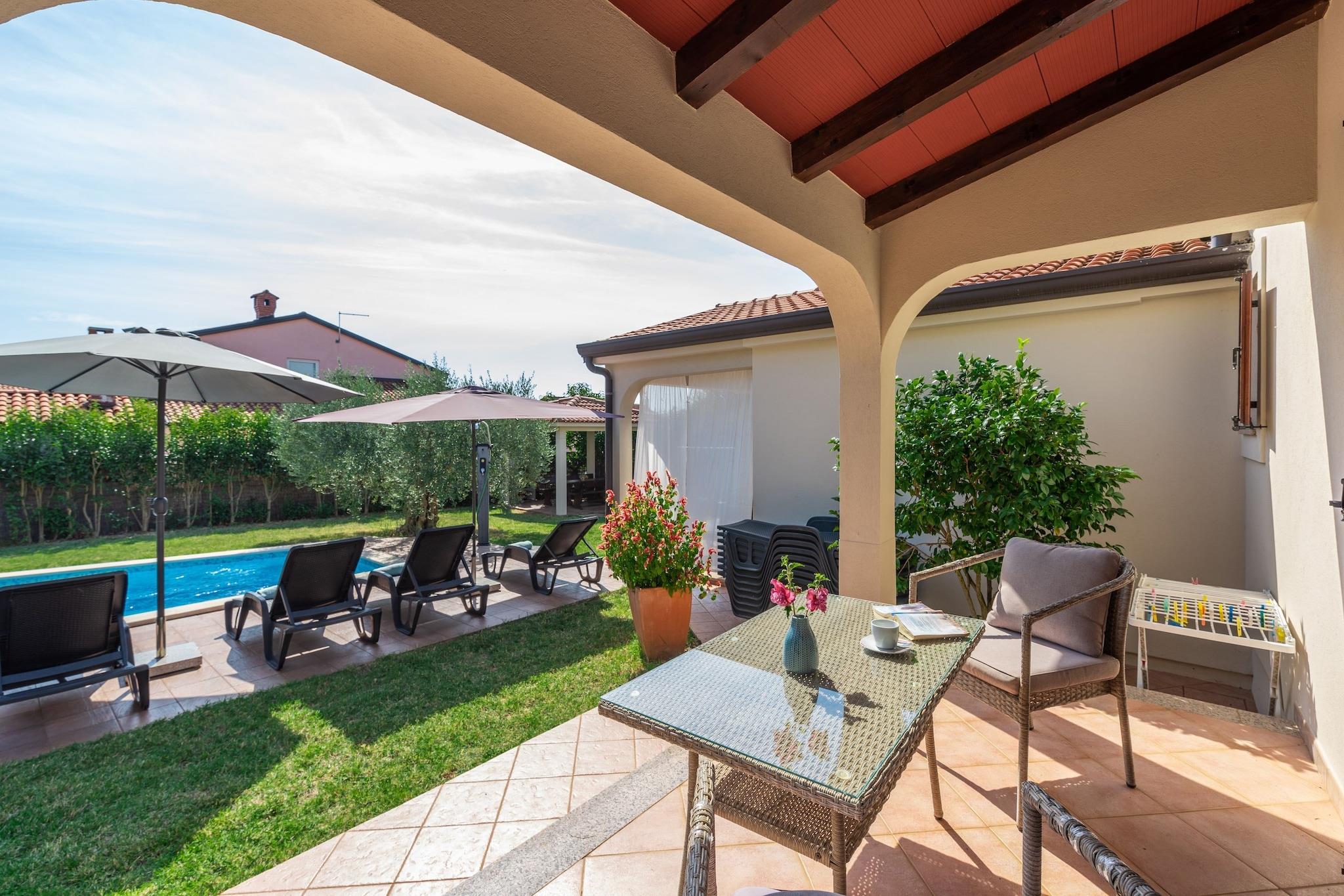 Dieses Ferienhaus mit eigenem Pool befindet sich auf 2 Etagen und verfügt über 3 Schlafzimmer, einen Flachbild-Sat-TV , Klimaanlage und eine voll ausgestattete Küche mit Geschirrspüler, Kühlschrank, Waschmaschine und Backofen im Außenpool oder entspannen Sie im Garten und nutzen Sie die Grillmöglichkeiten.Die antike Stadt Novigrad stand im Mittelpunkt faszinierender historischer Ereignisse, die Spuren hinterlassen haben, die in der beeindruckenden Architektur ihrer Festungsmauern, Sommerpaläste und des gesamten Altstadt, die einst eine Insel war. Heute ist Novigrad ein ruhiges Fischerdorf, in dem das Leben immer noch in einem angenehmen, entspannten Tempo verläuft. Außer im Sommer, wenn es zur Bühne für spannende Events wird, von urbanen Musikfestivals bis hin zu kulinarischen Festen zu Jakobsmuscheln, Sardinen oder wildem Spargel. Die Restaurants von Novigrad werden Ihre Geschmacksknospen begeistern – besonders wenn Sie Meeresfrüchte lieben – während die Parks und Mauern Sie zu romantischen Spaziergängen im Mondschein verführen.