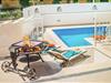 Parterre: (Wohnzimmer(TV(Satellit), Sitzecke, Klimaanlage), offene Küche(Esstisch, Wasserkocher, Kochherd, Kaffeemaschine(Espresso), Backofen, Spülmaschine, Kühl-/Gefrierkombination), Toilette, Waschraum(Trockner, Bügeleisen), Terrasse(überdacht)) In der 1. Etage: (Schlafzimmer(Doppelbett, TV(Satellit), Klimaanlage, Terrasse), Schlafzimmer(Doppelbett, TV(Satellit), Klimaanlage), Schlafzimmer mit Badezimmer(Etagenbett, TV(Satellit), Dusche, Waschbecken, Toilette, Klimaanlage, Terrasse), Badezimmer(Dusche, Waschbecken, Toilette), Badezimmer(Dusche, Waschbecken, Toilette)) In der 2. Etage: (Whirlwanne, Dachterasse, Liegen) Dusche(im Garten), Terrasse(umzäunt), Gartenmöbel, Liegen, Grill, Parkplatz, Sonnenschirm, Pool(alleinige Nutzung, 7 x 4 m.), Kinderbett