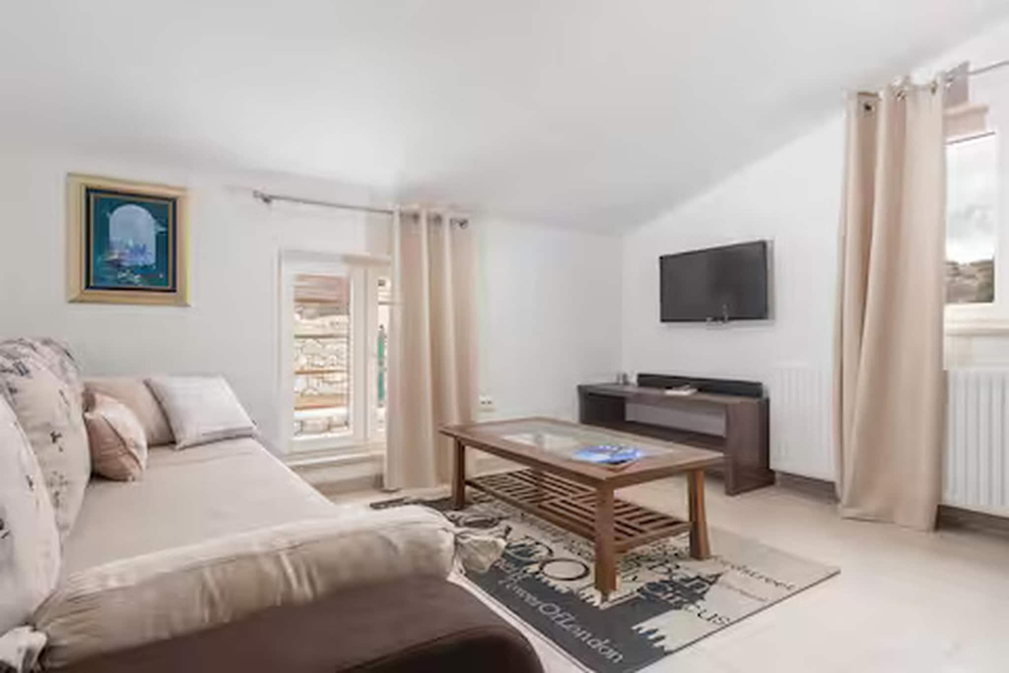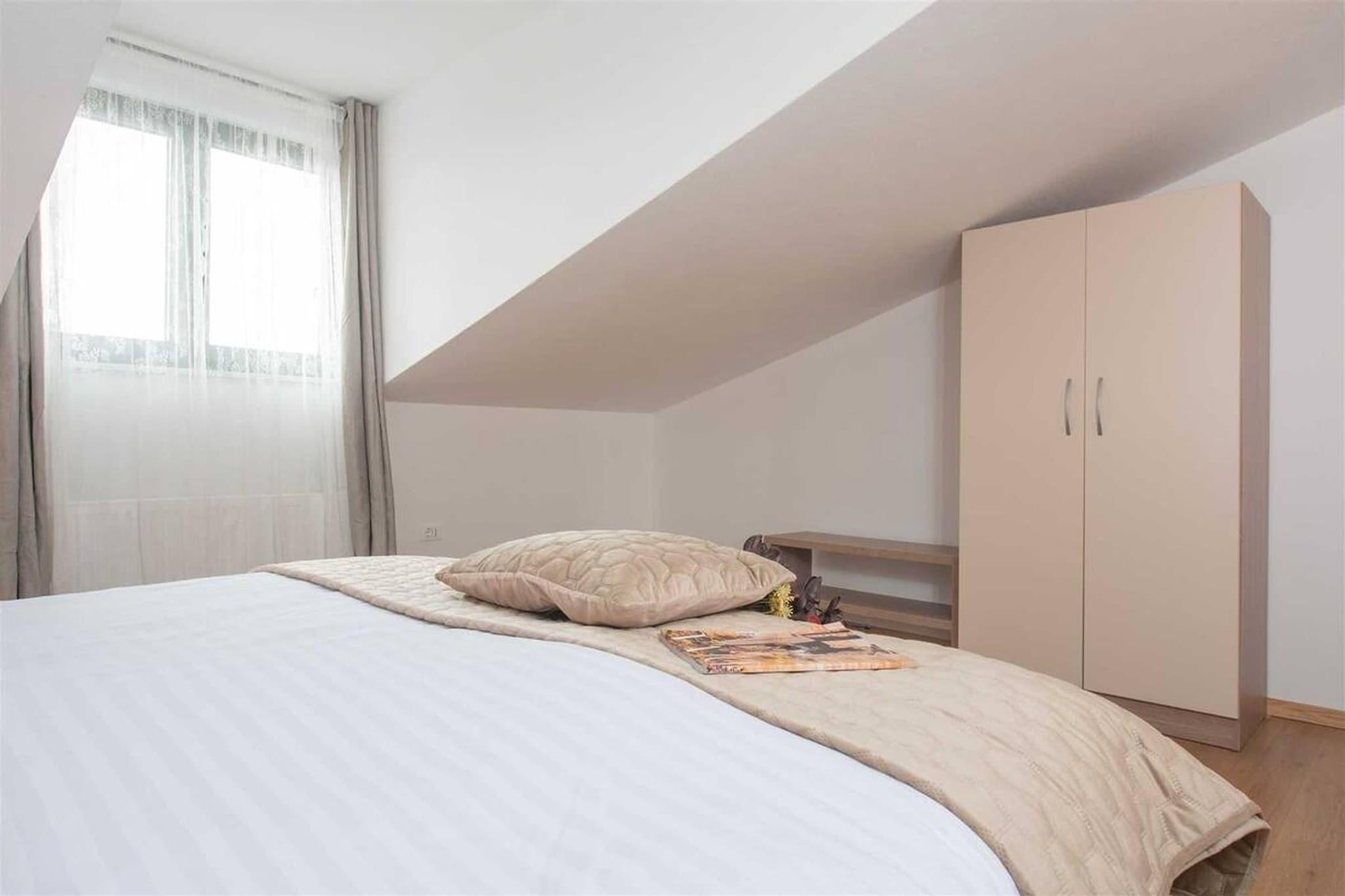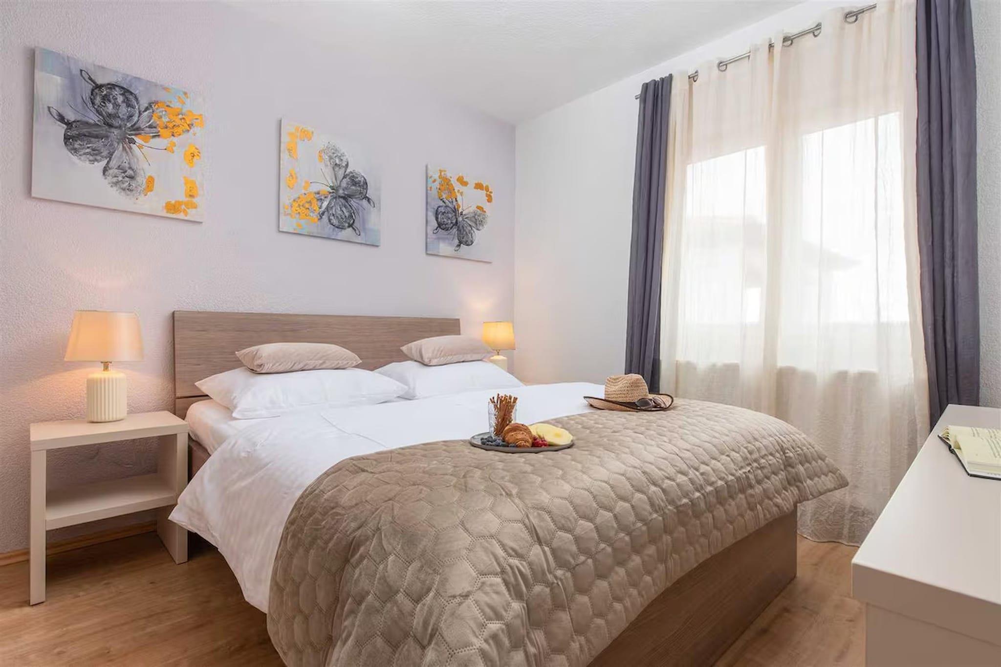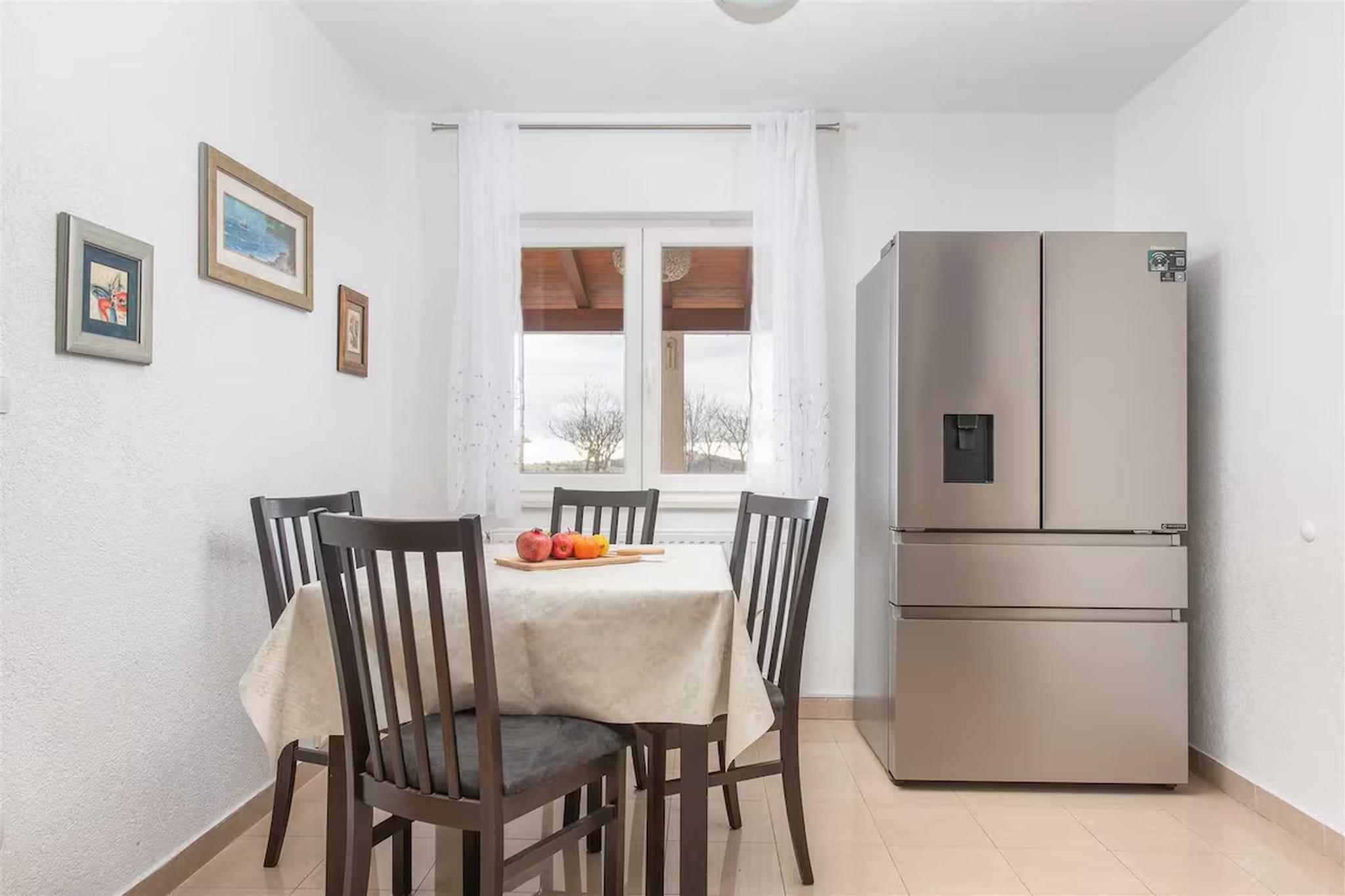 Inmitten der wunderschönen Küstenlandschaft von Okrug Gornji nahe der historischen Stadt Trogir bietet diese geräumige Villa einen eleganten mediterranen Rückzugsort, ideal für entspannte Gruppenaufenthalte. Umgeben vom Charme der dalmatinischen Küste, bietet das Anwesen eine ruhige Umgebung, in der Gäste sonnige Tage am Pool, malerische Spaziergänge am Meer und die Nähe zu Stränden, Cafés und Restaurants am Wasser genießen können. Die Villa ist durchdacht auf mehrere Ebenen aufgeteilt und bietet so ausreichend Platz für größere Gruppen. Im Erdgeschoss befinden sich ein heller Wohn- und Essbereich mit bequemen Sitzgelegenheiten, Kamin, Fernseher und Esstisch sowie eine offene Küche mit Kaffeemaschine, Backofen, Geschirrspüler und Kühl-/Gefrierkombination. Ein Schlafzimmer auf dieser Ebene verfügt über ein Doppelbett, ein Schlafsofa und ein modernes Badezimmer mit Dusche und WC. Im ersten Stock ergänzt eine weitere offene Küche mit allen notwendigen Geräten zwei weitere Schlafzimmer, die jeweils mit einem Doppelbett und einem eigenen Badezimmer ausgestattet sind. Ein Nebengebäude sorgt für zusätzliche Privatsphäre mit einer weiteren offenen Küche und einem vierten Schlafzimmer mit Doppelbett und Badezimmer. Klimaanlage, Heizung, WLAN, Waschmaschine und Wäschetrockner garantieren Komfort während des gesamten Aufenthalts. Der Außenbereich ist ideal zum Entspannen und für gesellige Stunden. Ein privater, beheizter Swimmingpool mit Sonnenliegen und Gartenmöbeln lädt zum Verweilen unter der dalmatinischen Sonne ein. Gäste können außerdem den Garten mit Grill, Außenkamin und Essbereich im Freien nutzen. Billard, Tischtennis und Fitnessgeräte runden das Angebot ab. Parkplätze stehen direkt am Haus zur Verfügung.